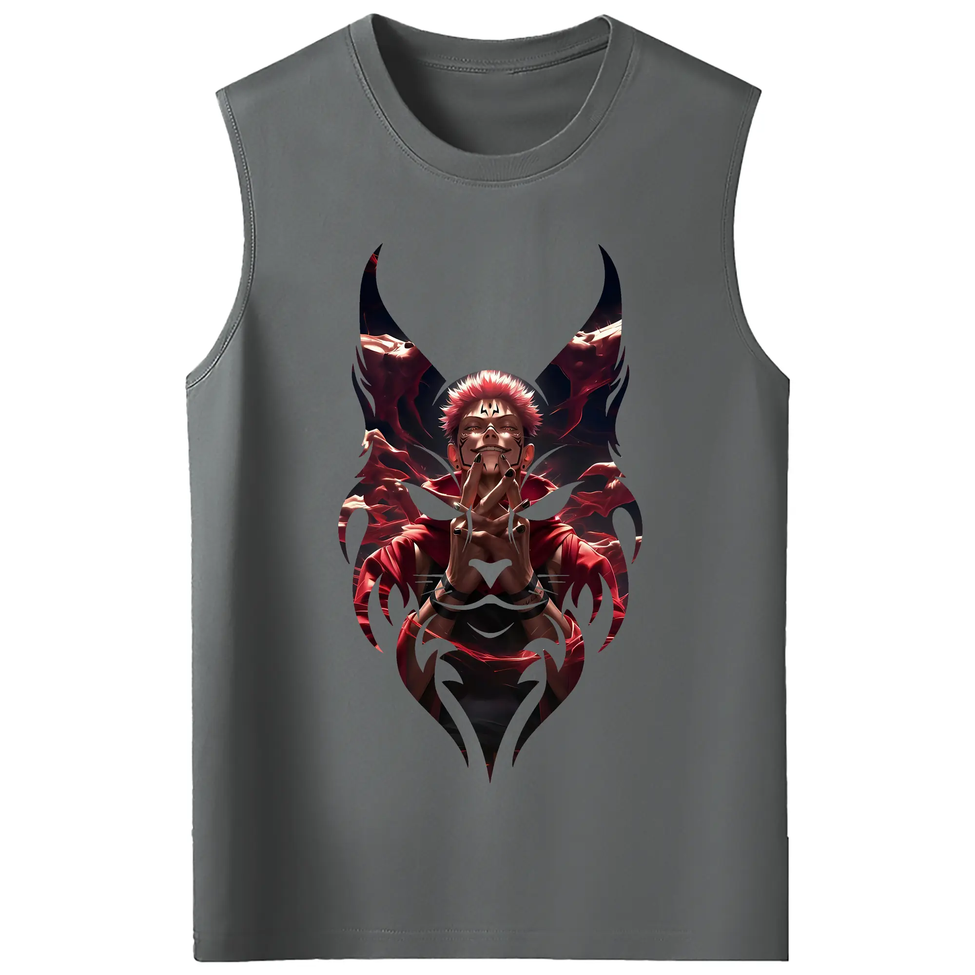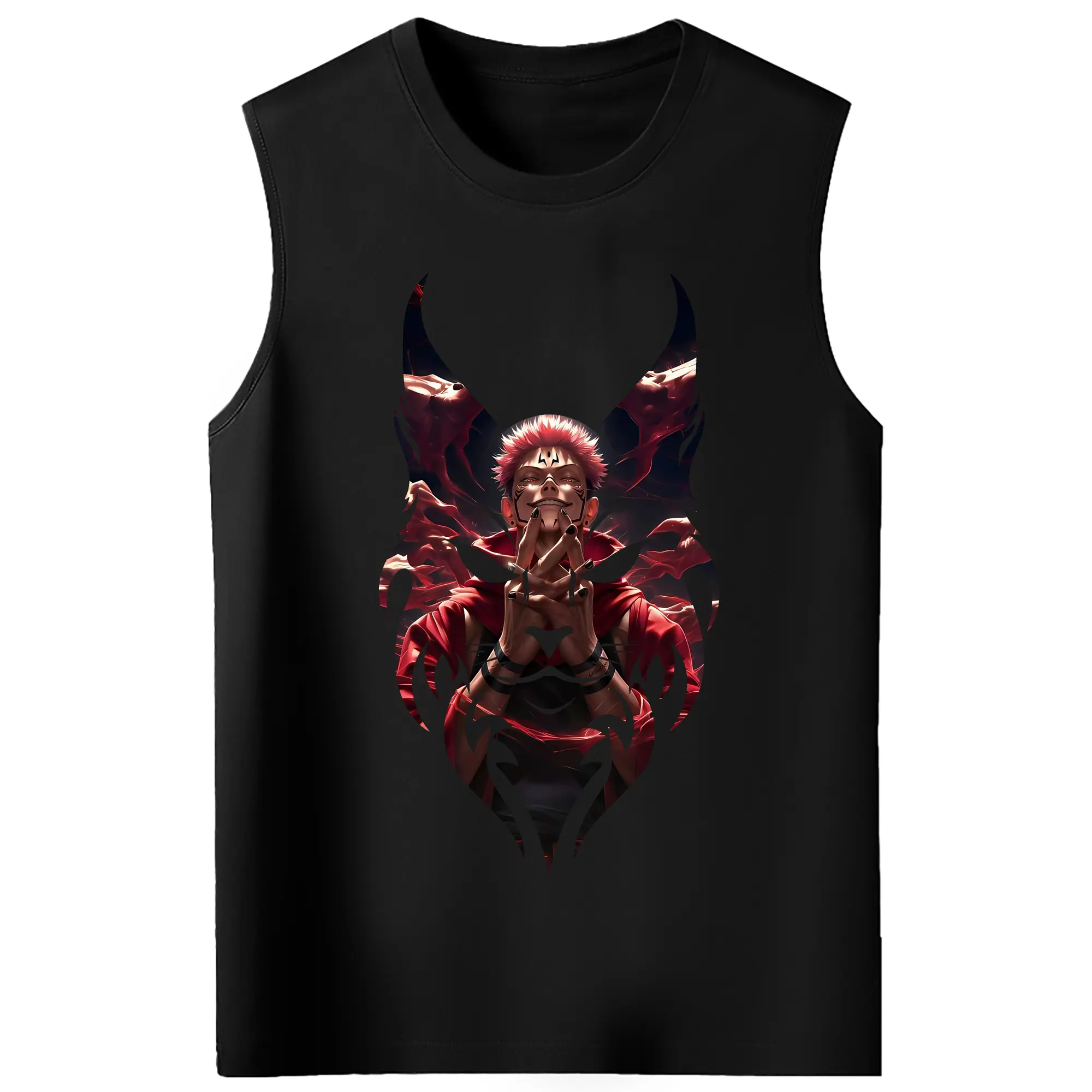 呪術廻戦 グッズ,両面宿儺 - コットン100% タンクトップ ・ フロントプリント ・ タイトフィット ・ 快適 通気性 ・ スポーツ カジュアル 散歩用