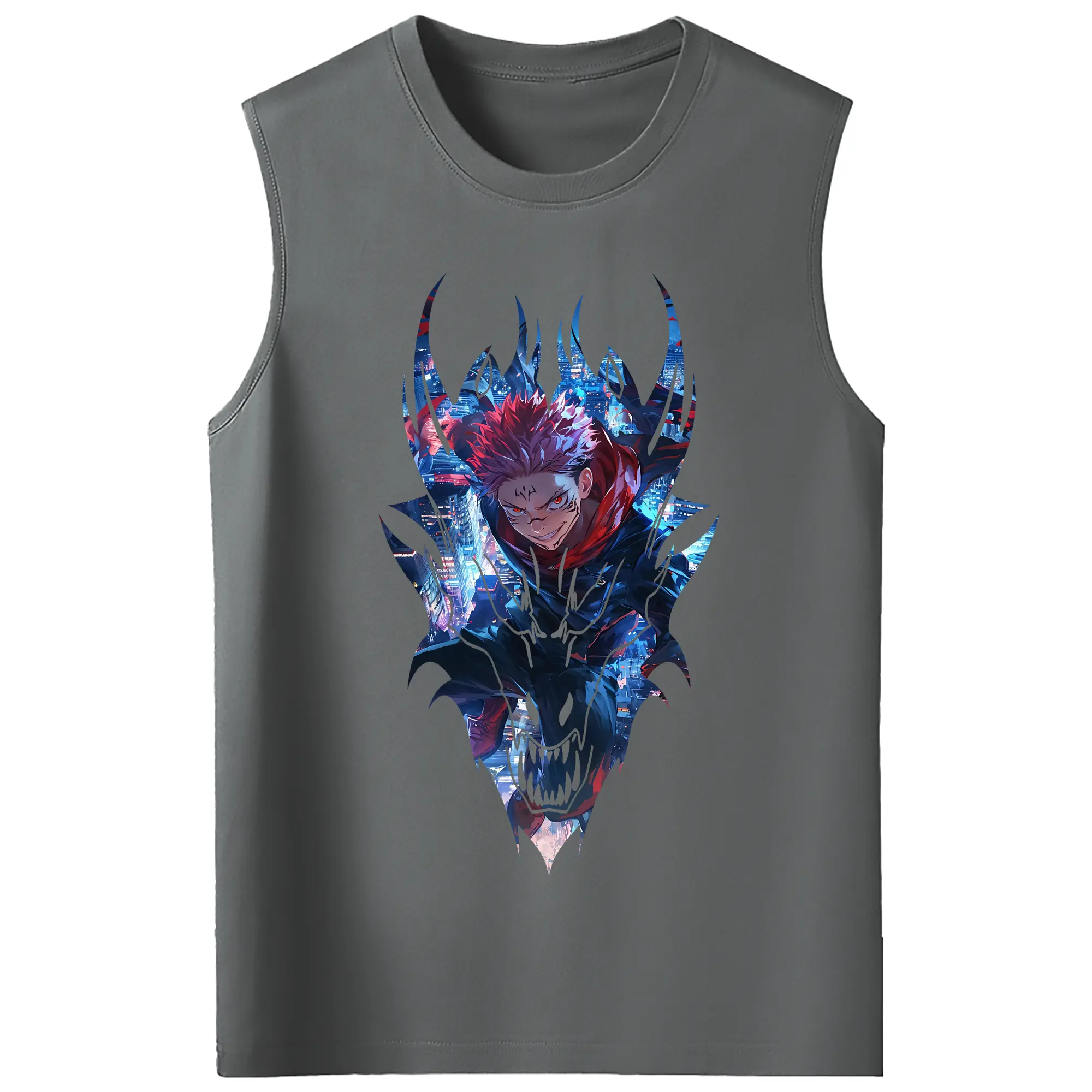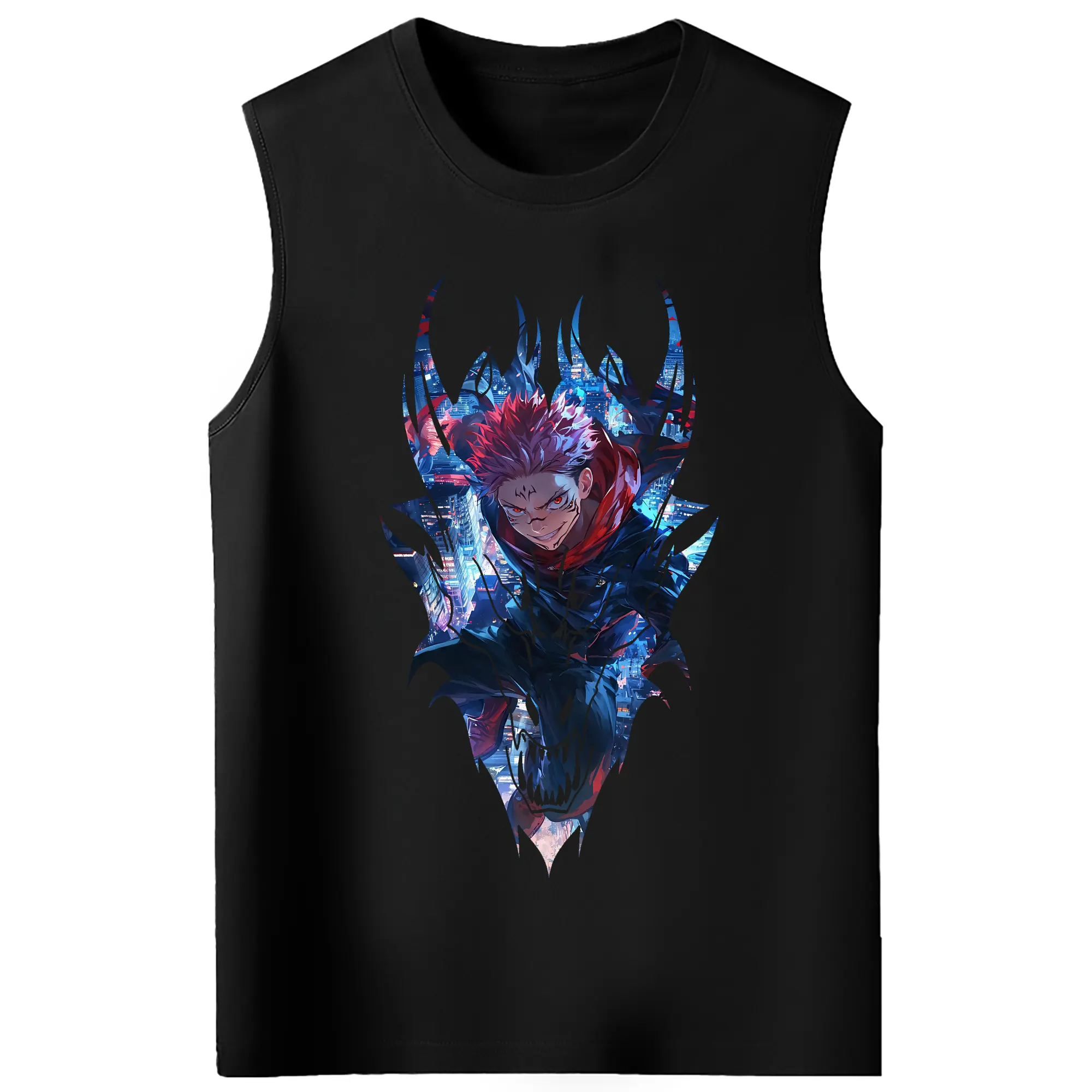 呪術廻戦 グッズ,両面宿儺 - コットン100% タンクトップ ・ フロントプリント ・ タイトフィット ・ 快適 通気性 ・ スポーツ カジュアル 散歩用