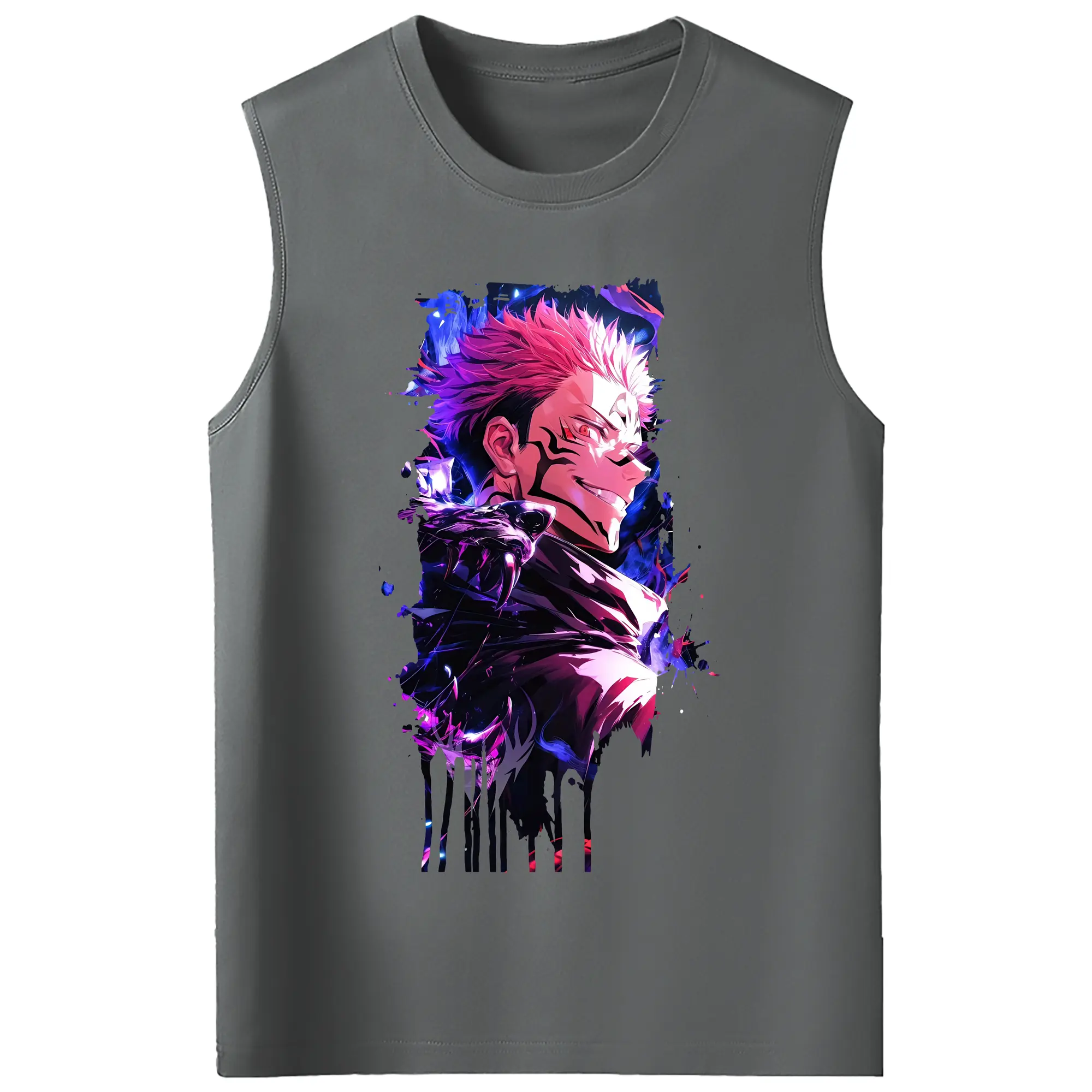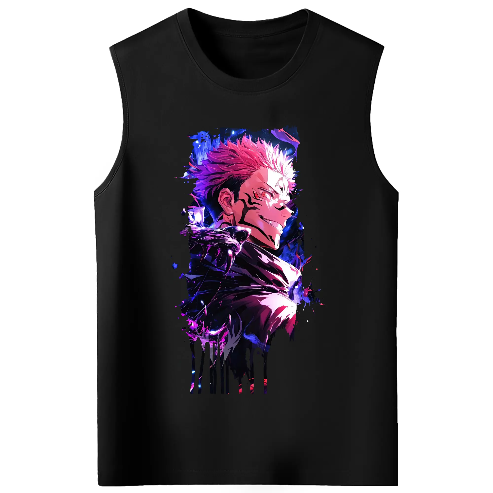 呪術廻戦 グッズ,両面宿儺 - コットン100% タンクトップ ・ フロントプリント ・ タイトフィット ・ 快適 通気性 ・ スポーツ カジュアル 散歩用