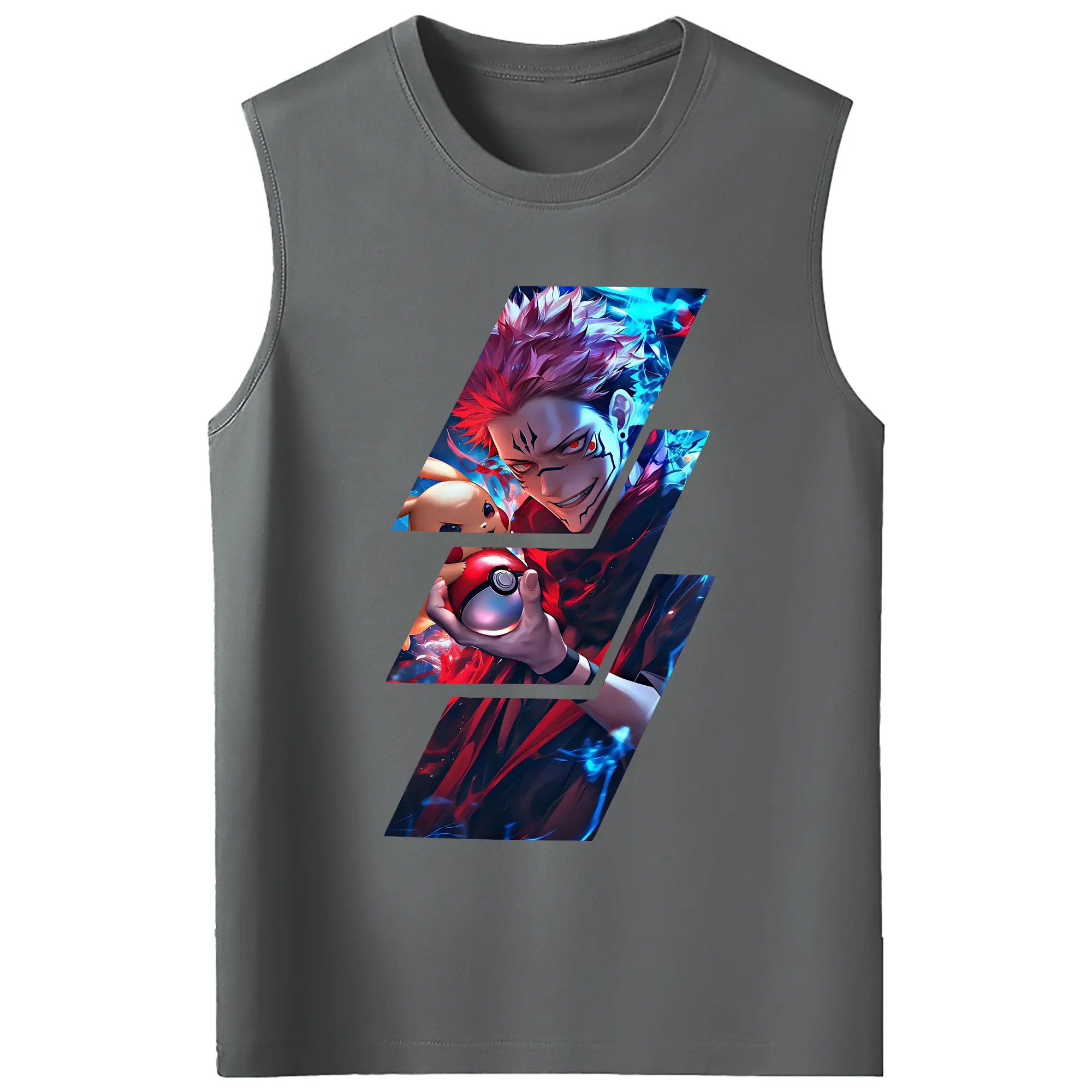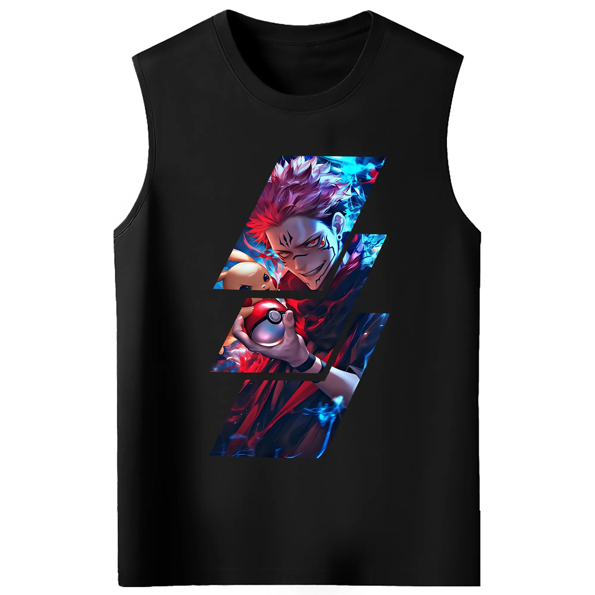 呪術廻戦 グッズ,両面宿儺 - コットン100% タンクトップ ・ フロントプリント ・ タイトフィット ・ 快適 通気性 ・ スポーツ カジュアル 散歩用