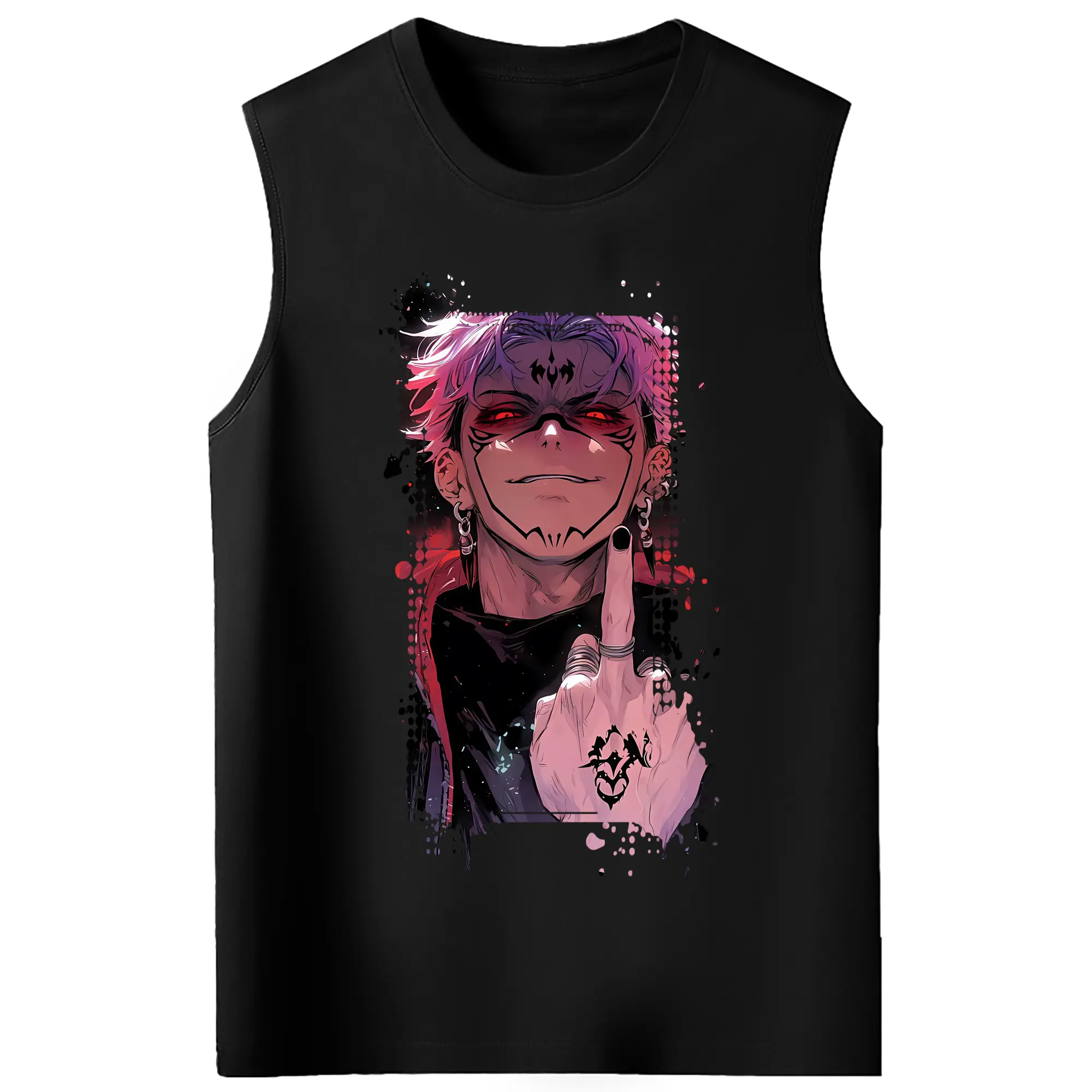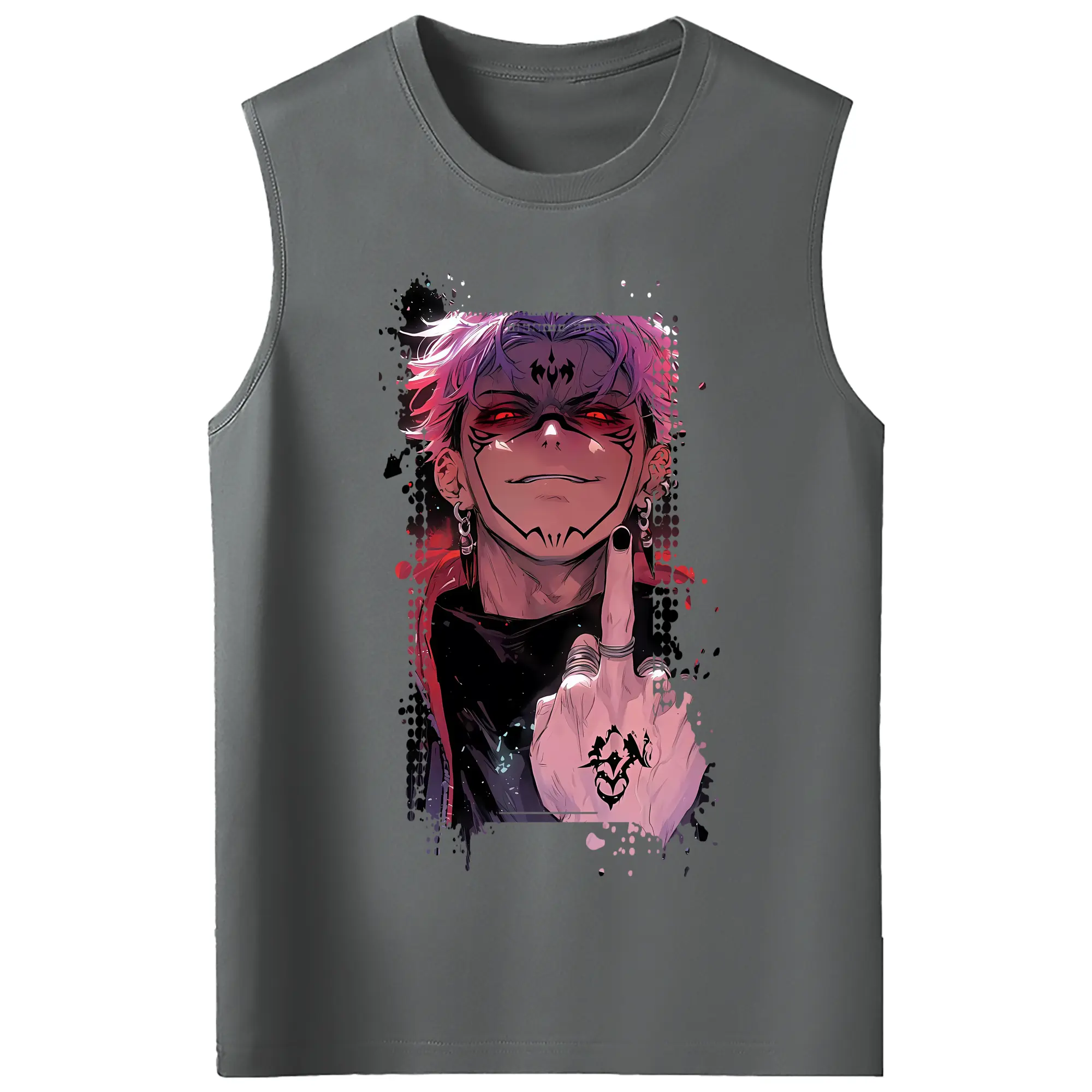 呪術廻戦 グッズ,両面宿儺 - コットン100% タンクトップ ・ フロントプリント ・ タイトフィット ・ 快適 通気性 ・ スポーツ カジュアル 散歩用