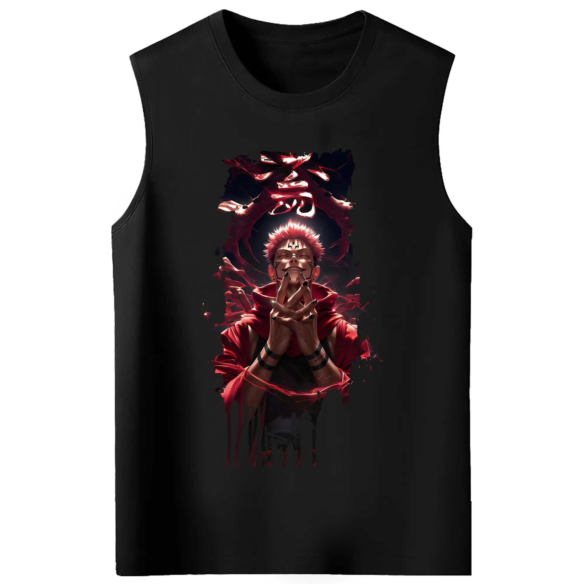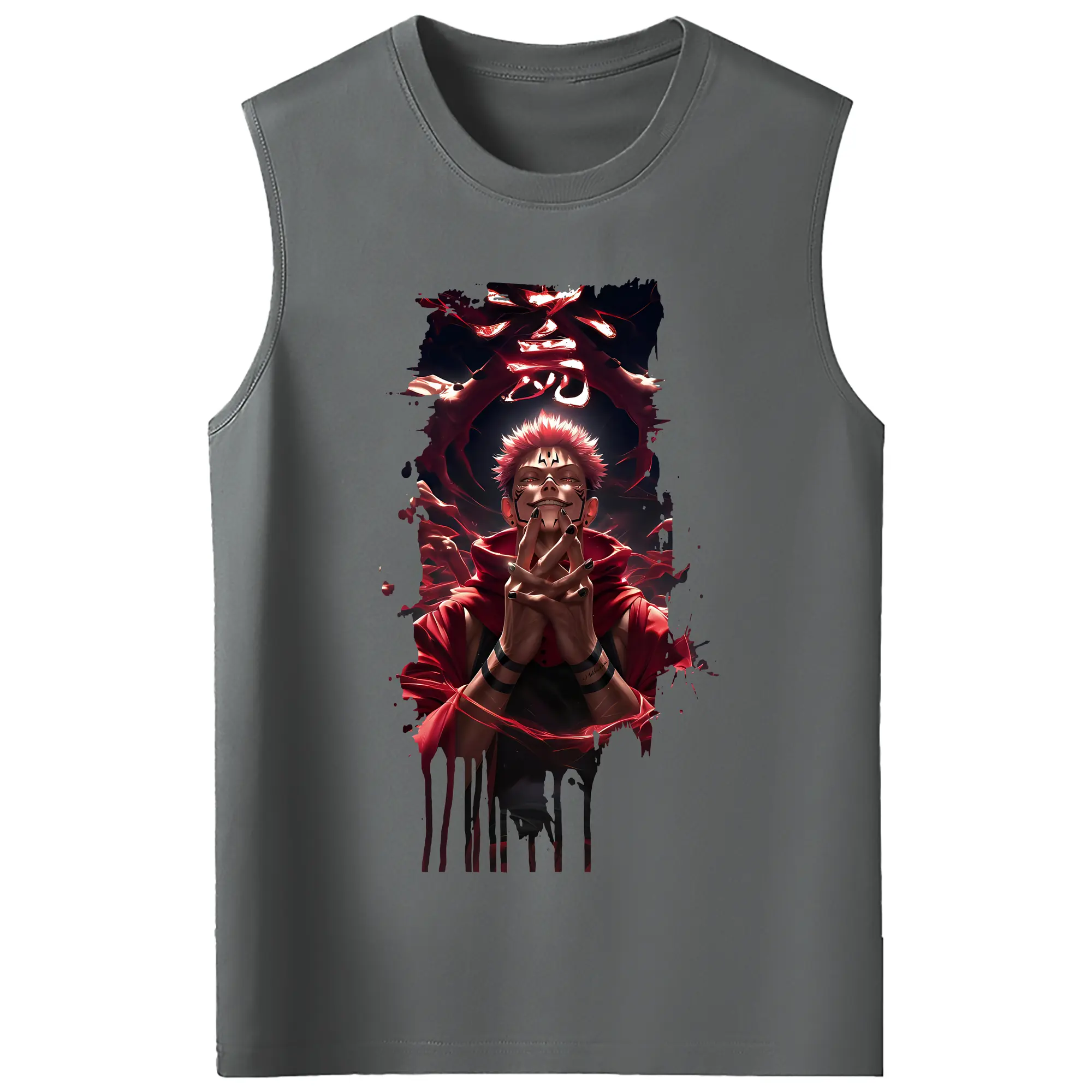 呪術廻戦 グッズ,両面宿儺 - コットン100% タンクトップ ・ フロントプリント ・ タイトフィット ・ 快適 通気性 ・ スポーツ カジュアル 散歩用