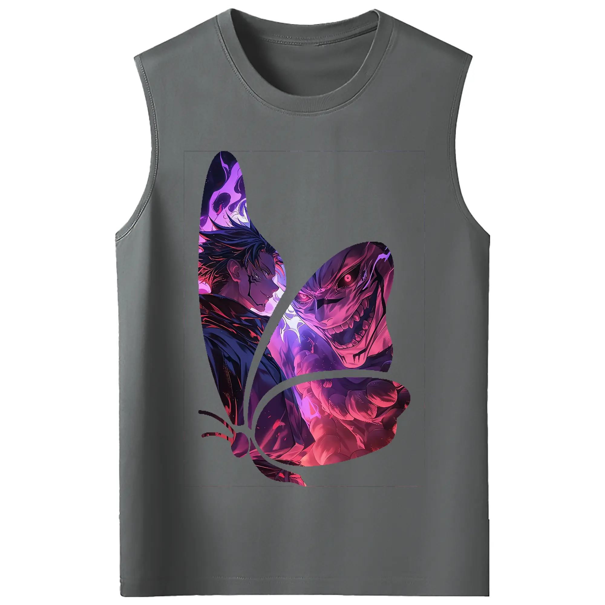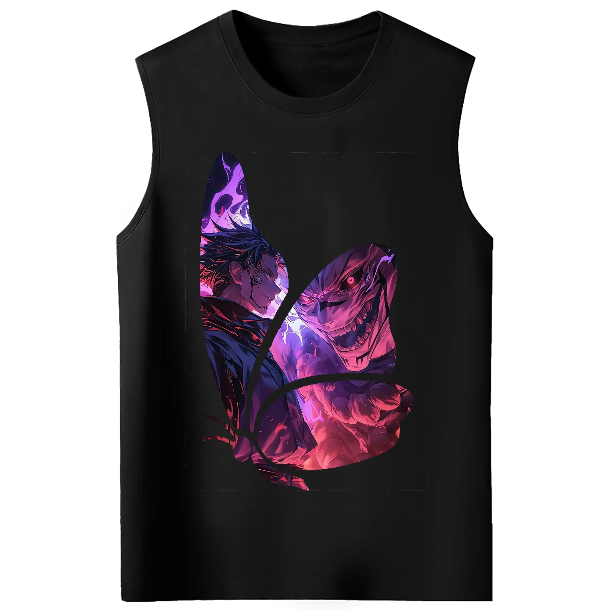 呪術廻戦 グッズ,両面宿儺 - コットン100% タンクトップ ・ フロントプリント ・ タイトフィット ・ 快適 通気性 ・ スポーツ カジュアル 散歩用