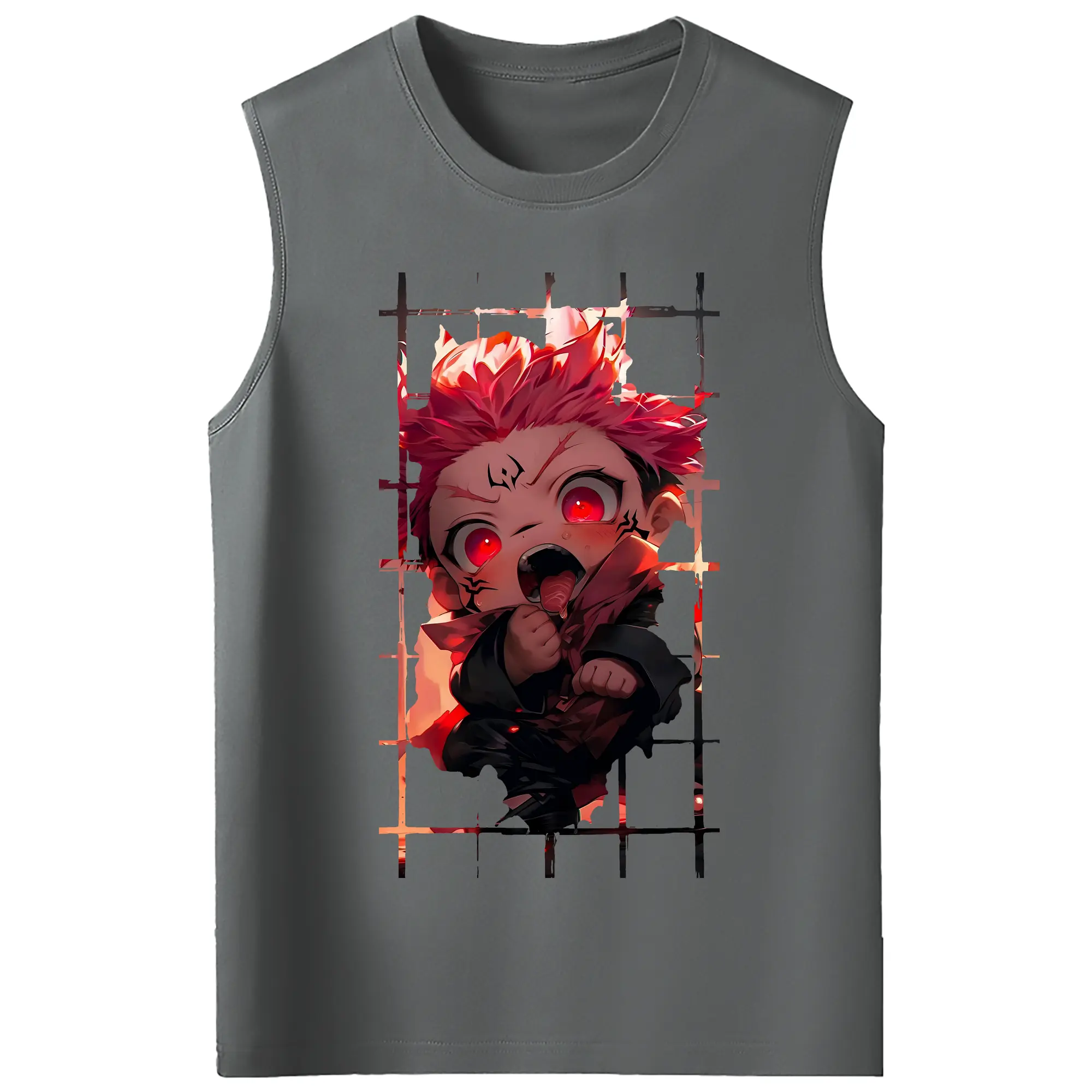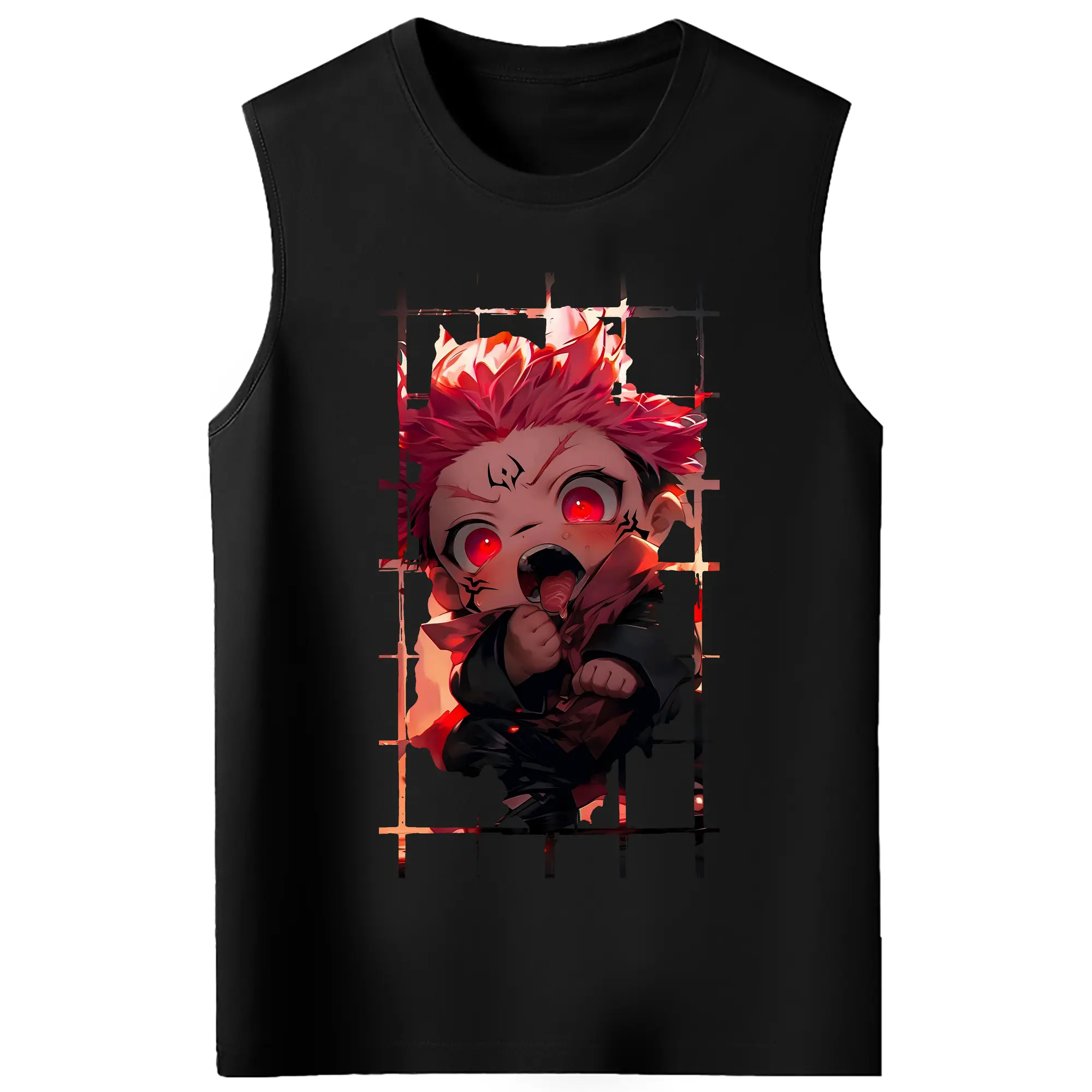 呪術廻戦 グッズ,両面宿儺 - コットン100% タンクトップ ・ フロントプリント ・ タイトフィット ・ 快適 通気性 ・ スポーツ カジュアル 散歩用