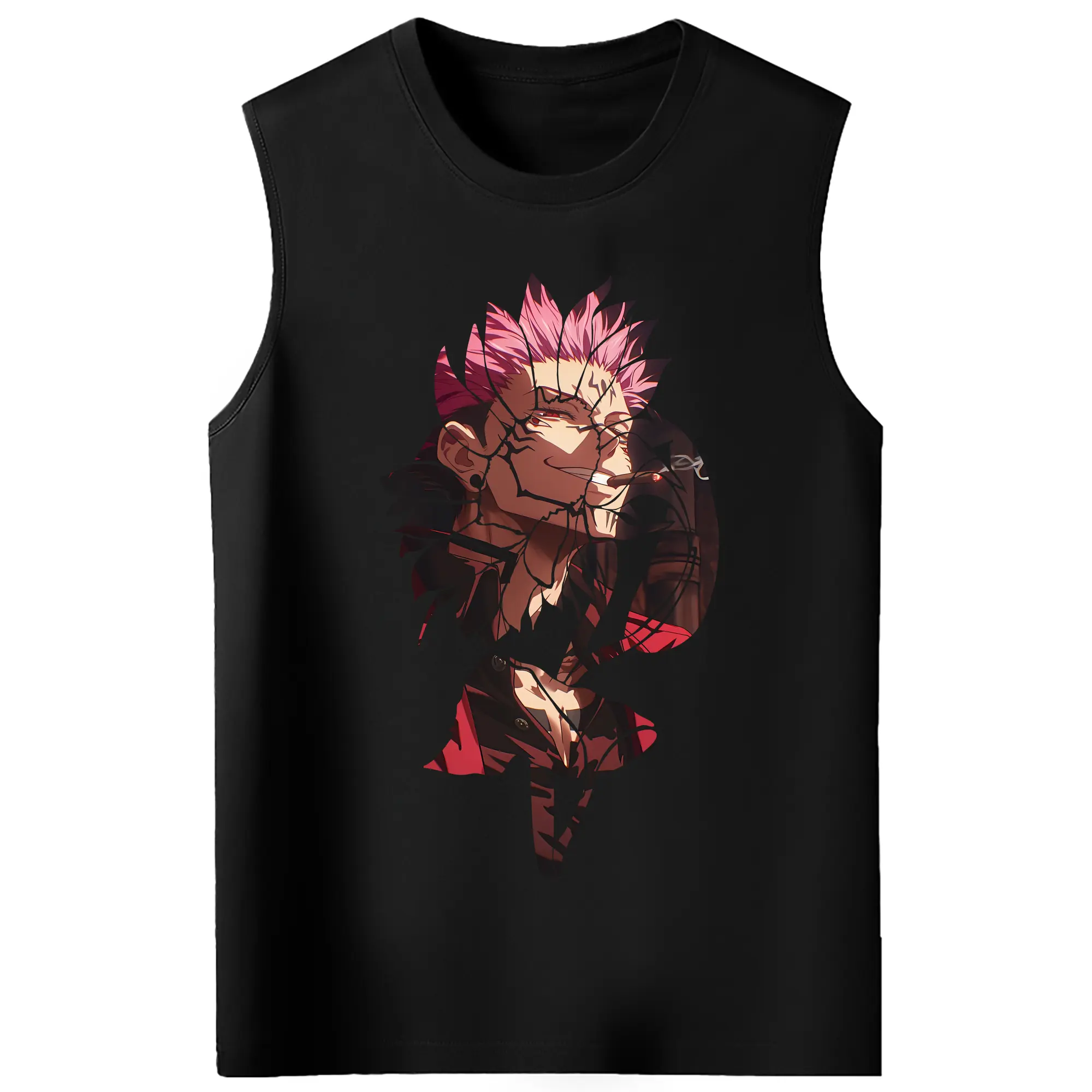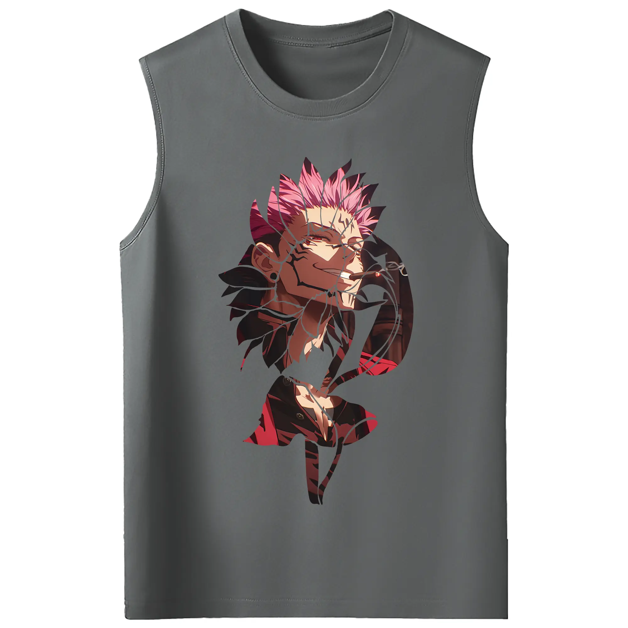 呪術廻戦 グッズ,両面宿儺 - コットン100% タンクトップ ・ フロントプリント ・ タイトフィット ・ 快適 通気性 ・ スポーツ カジュアル 散歩用