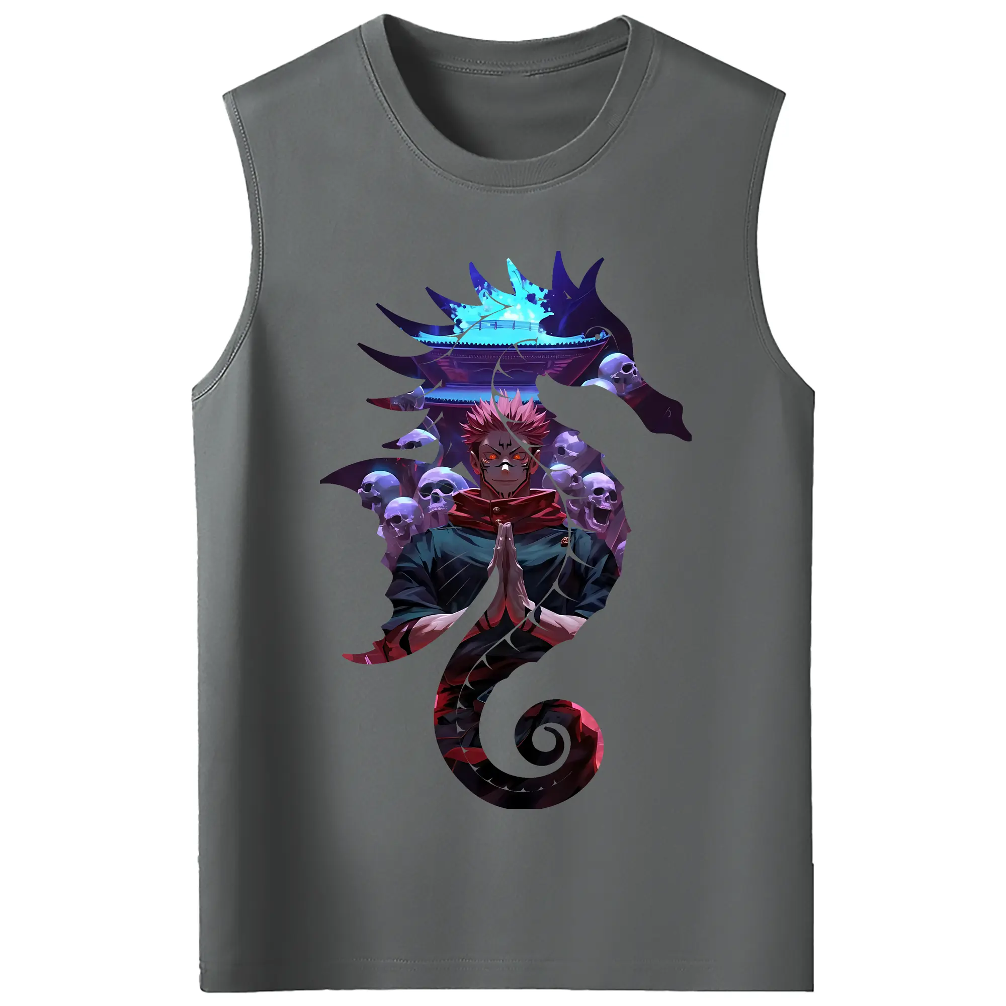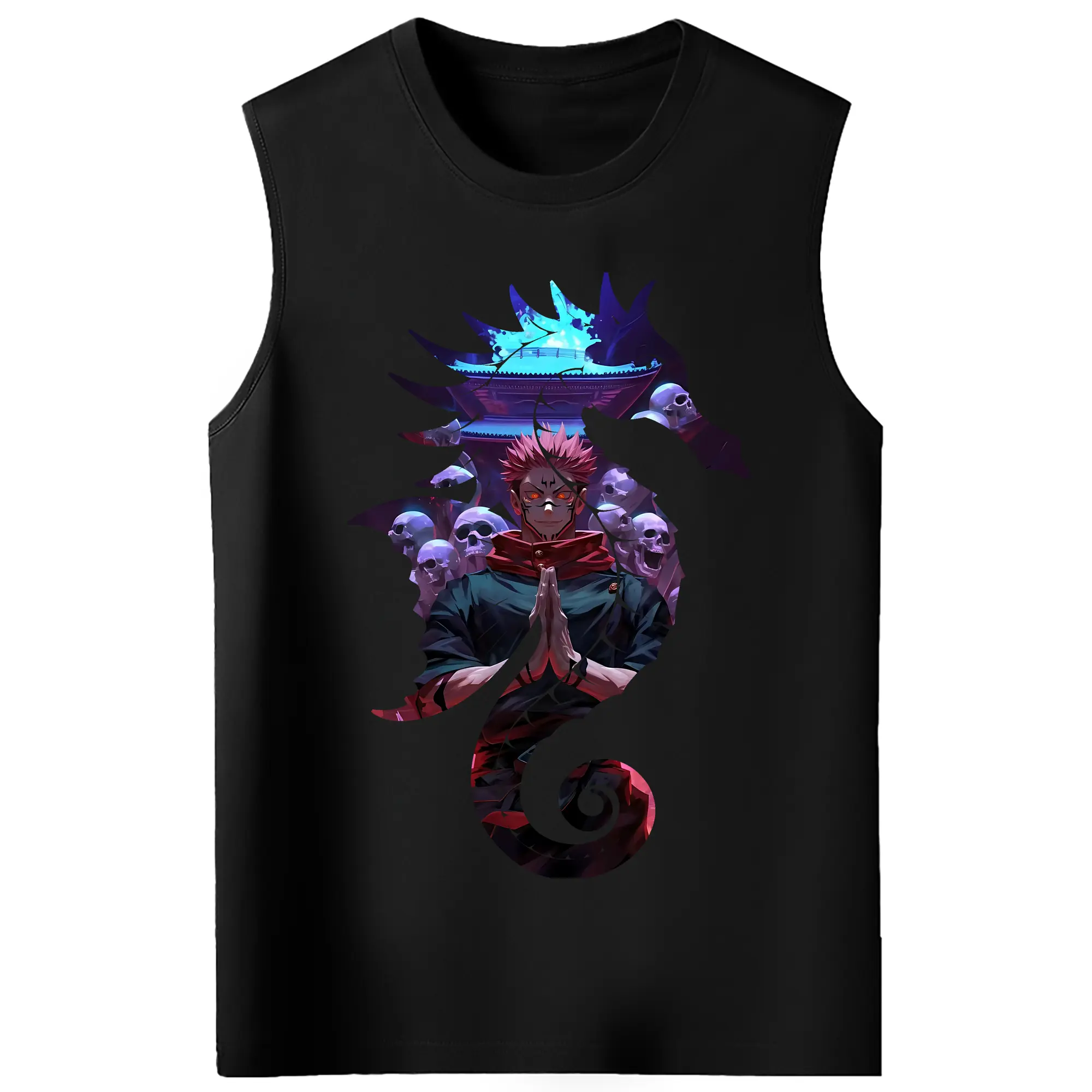 呪術廻戦 グッズ,両面宿儺 - コットン100% タンクトップ ・ フロントプリント ・ タイトフィット ・ 快適 通気性 ・ スポーツ カジュアル 散歩用
