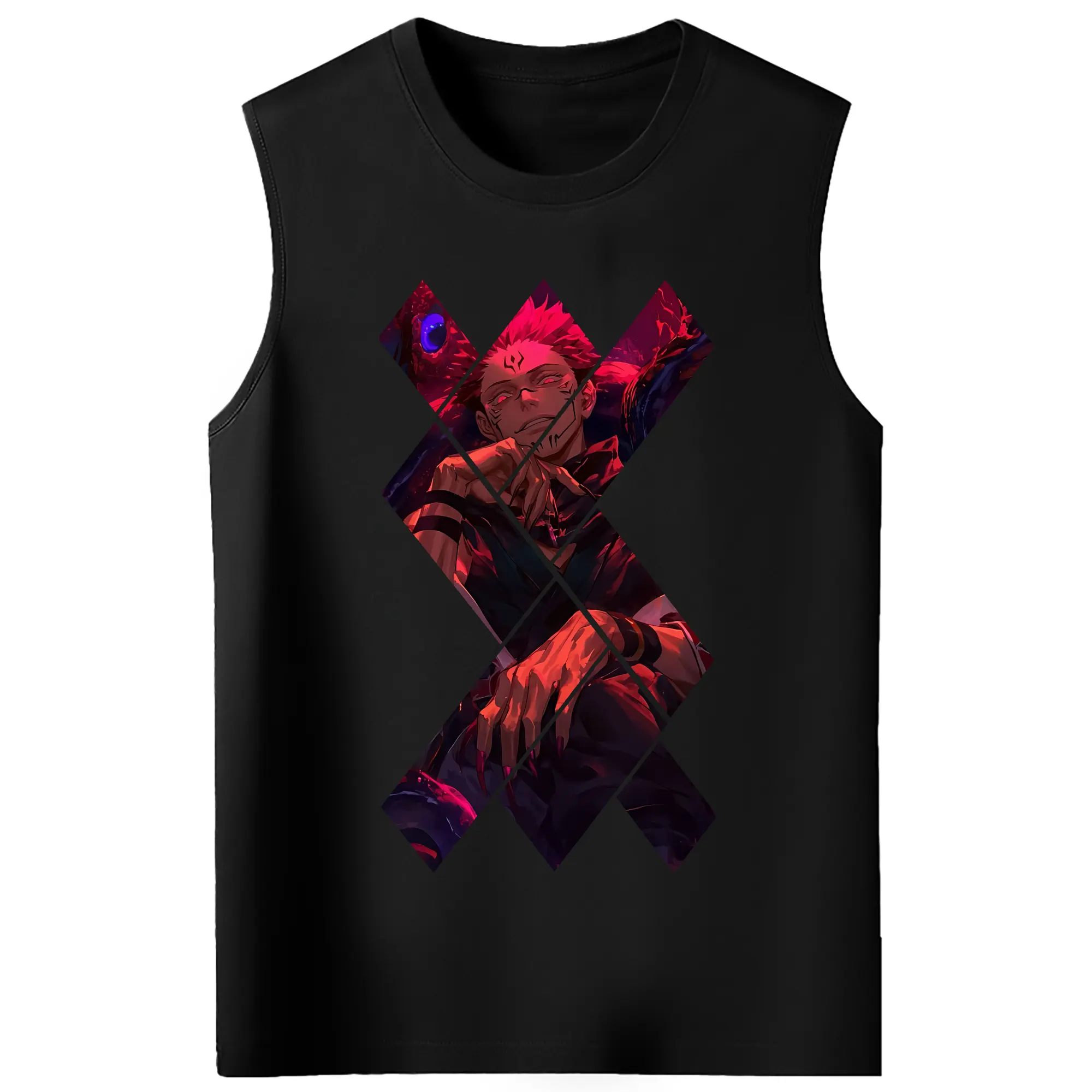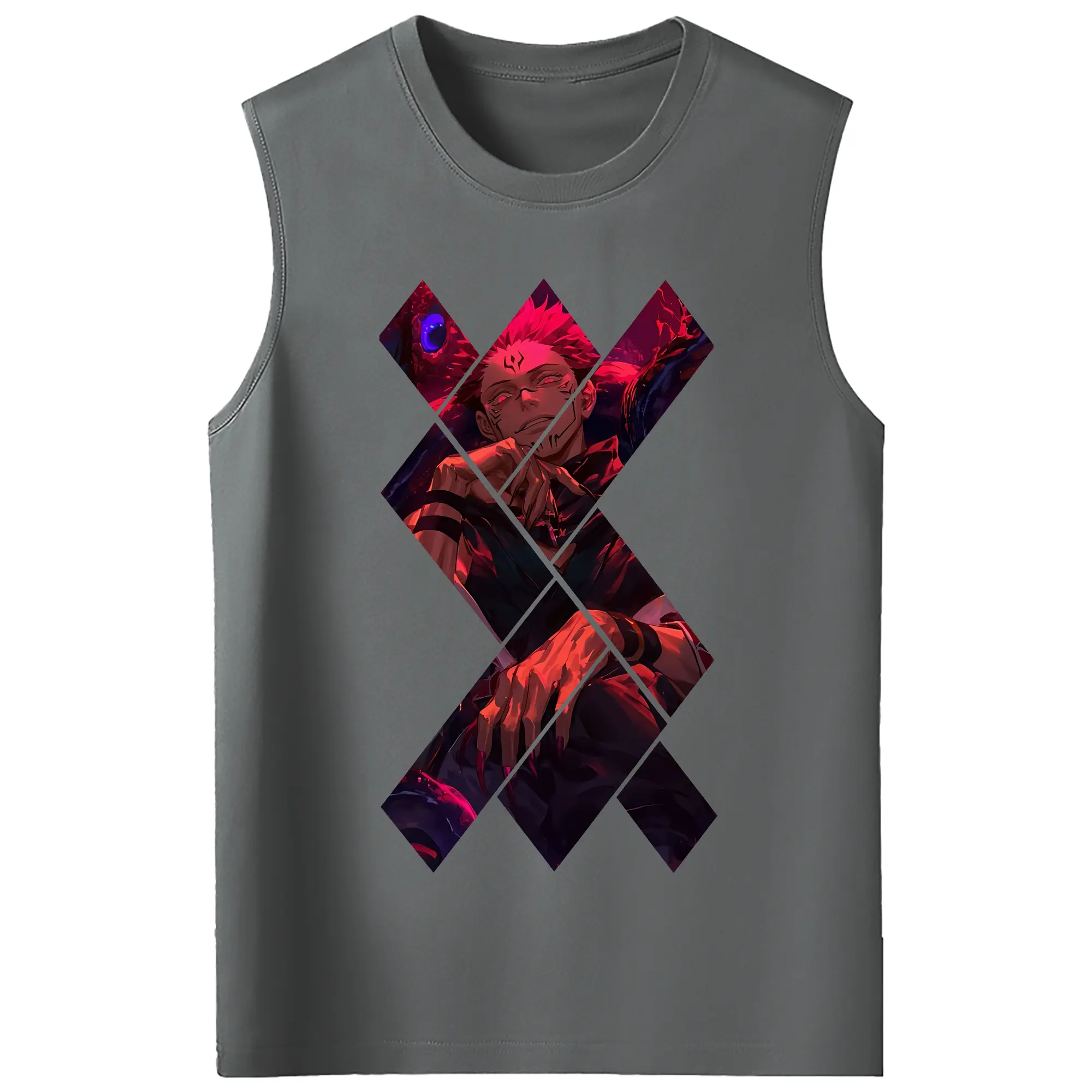 呪術廻戦 グッズ,両面宿儺 - コットン100% タンクトップ ・ フロントプリント ・ タイトフィット ・ 快適 通気性 ・ スポーツ カジュアル 散歩用