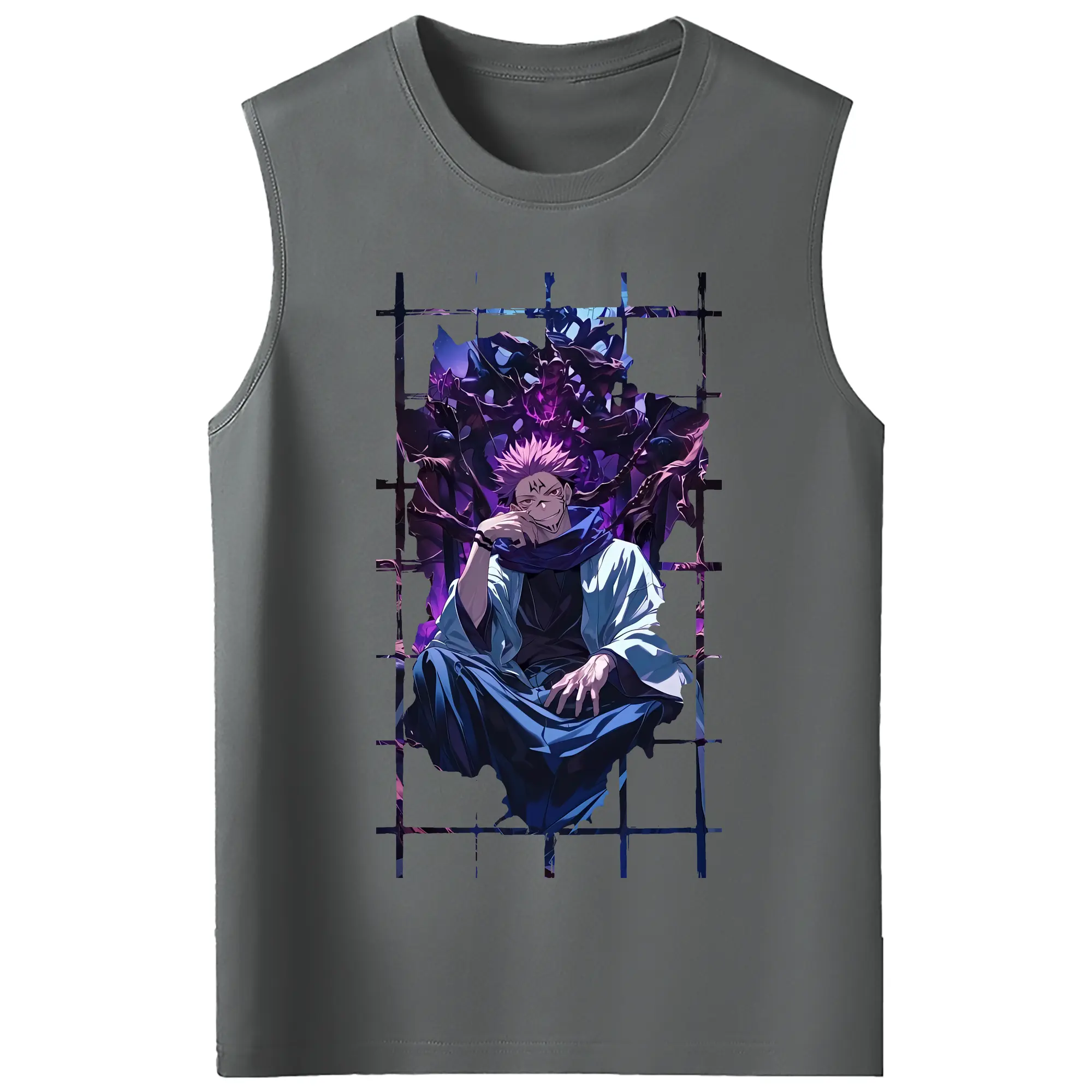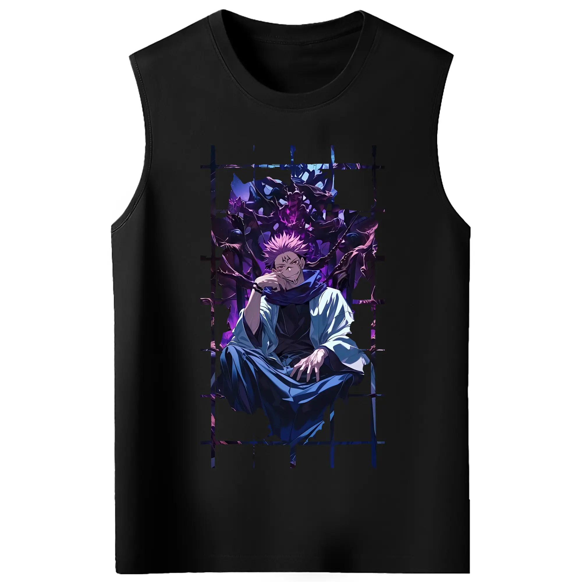 呪術廻戦 グッズ,両面宿儺 - コットン100% タンクトップ ・ フロントプリント ・ タイトフィット ・ 快適 通気性 ・ スポーツ カジュアル 散歩用
