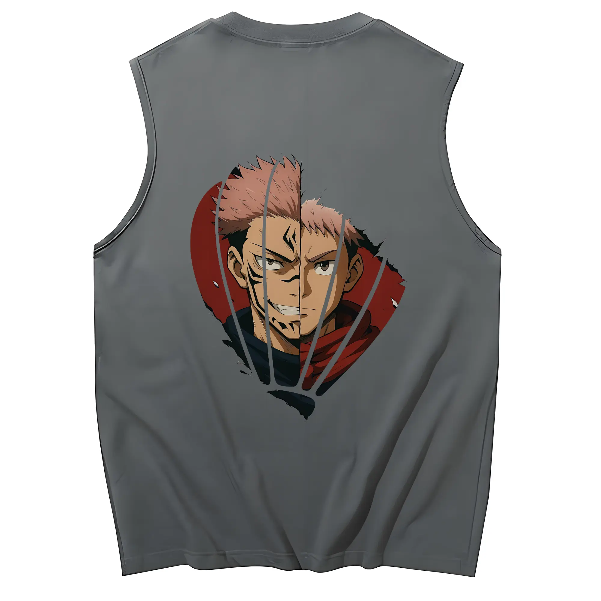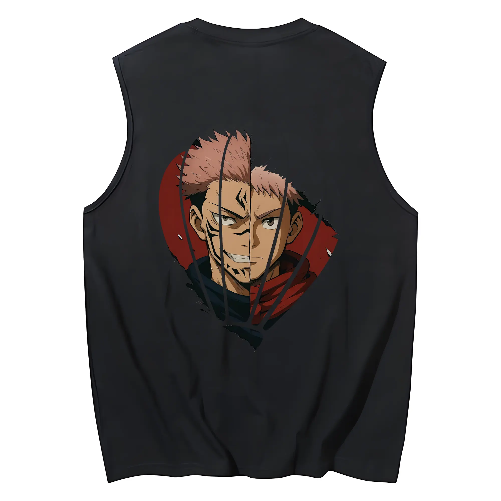 呪術廻戦 グッズ,両面宿儺 - コットン100% タンクトップ ・ 背面プリント ・ タイトシルエット ・ 快適 通気性 ・ スポーツ カジュアル 散歩用