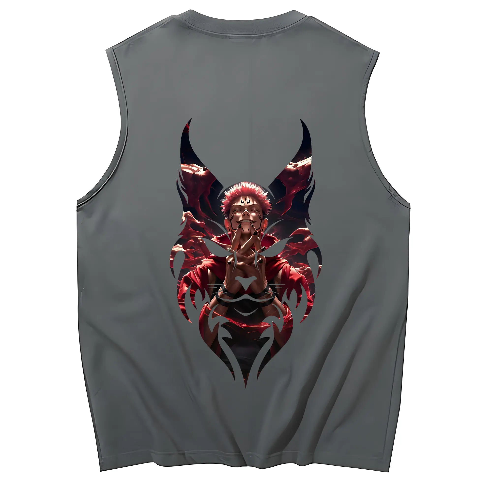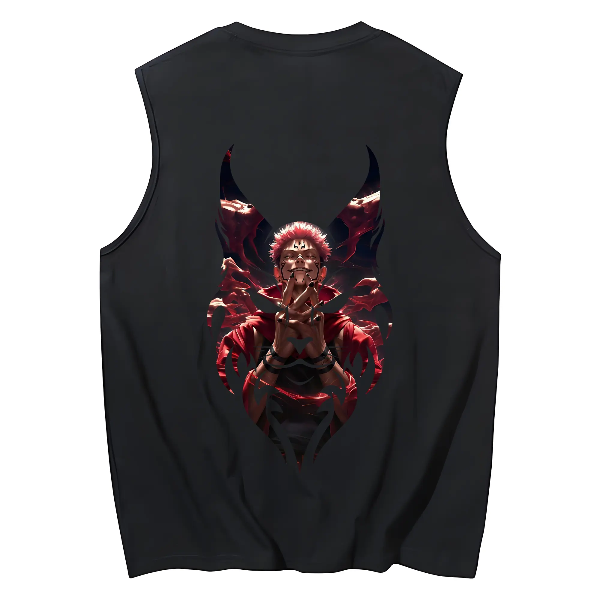 呪術廻戦 グッズ,両面宿儺 - コットン100% タンクトップ ・ 背面プリント ・ タイトシルエット ・ 快適 通気性 ・ スポーツ カジュアル 散歩用