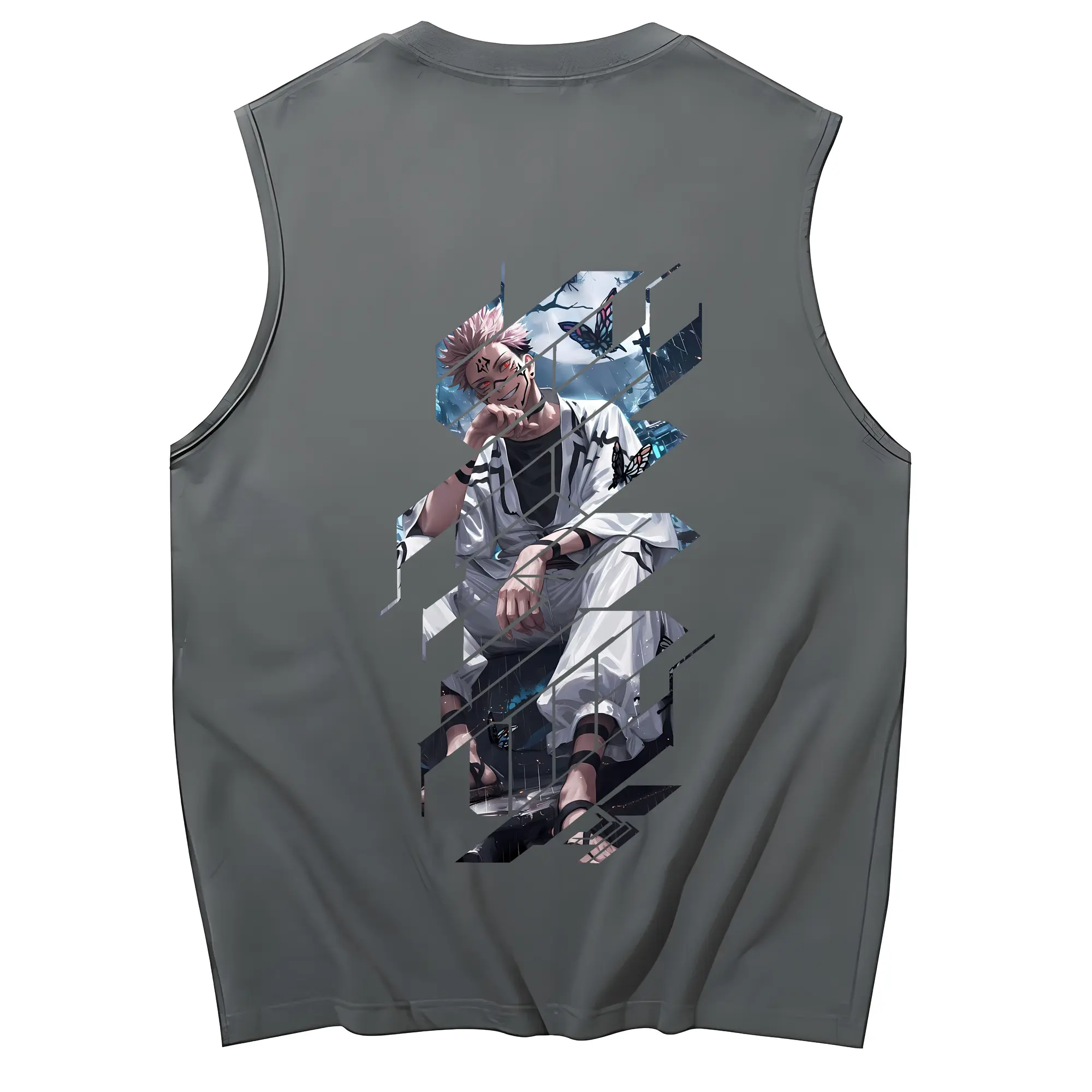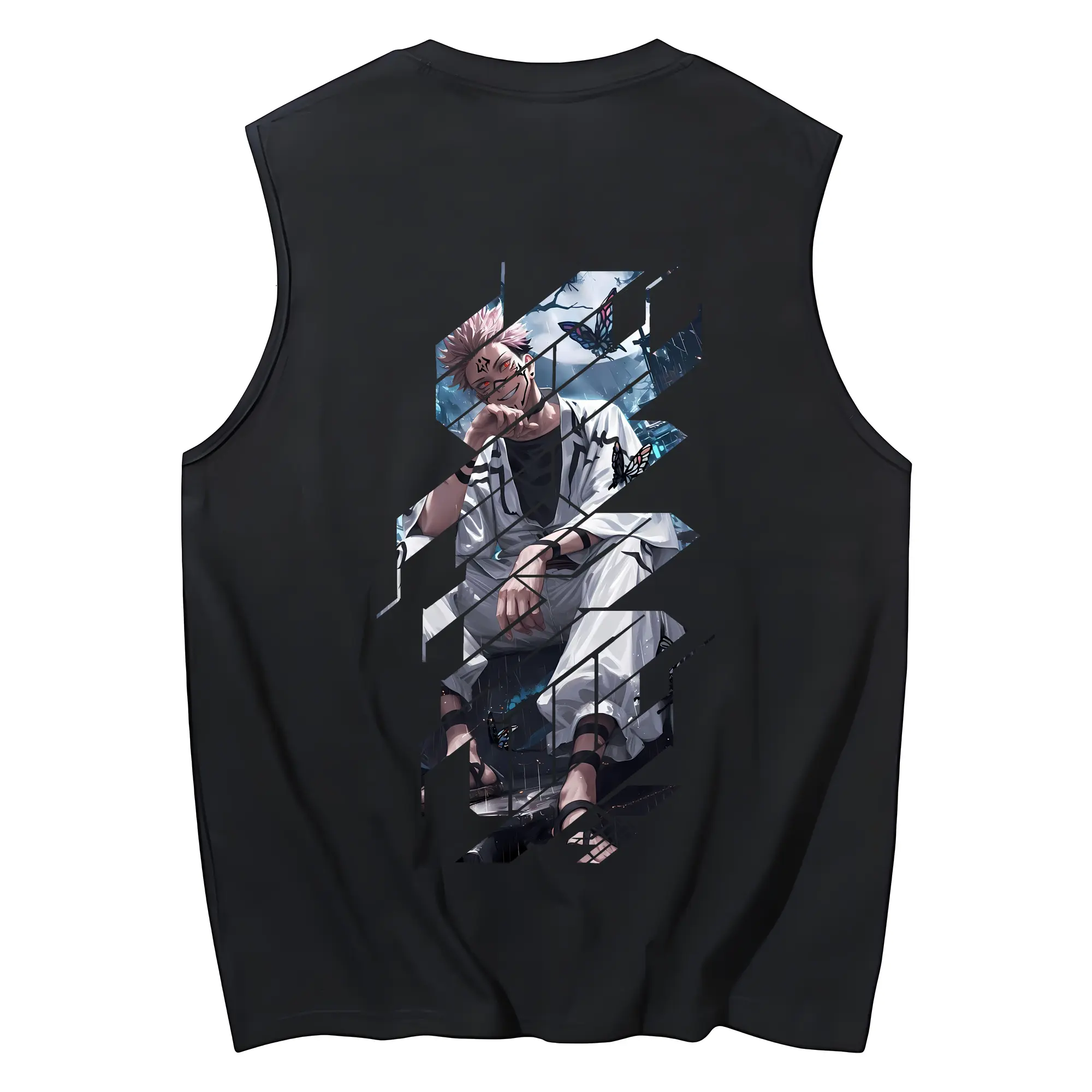 呪術廻戦 グッズ,両面宿儺 - コットン100% タンクトップ ・ 背面プリント ・ タイトシルエット ・ 快適 通気性 ・ スポーツ カジュアル 散歩用