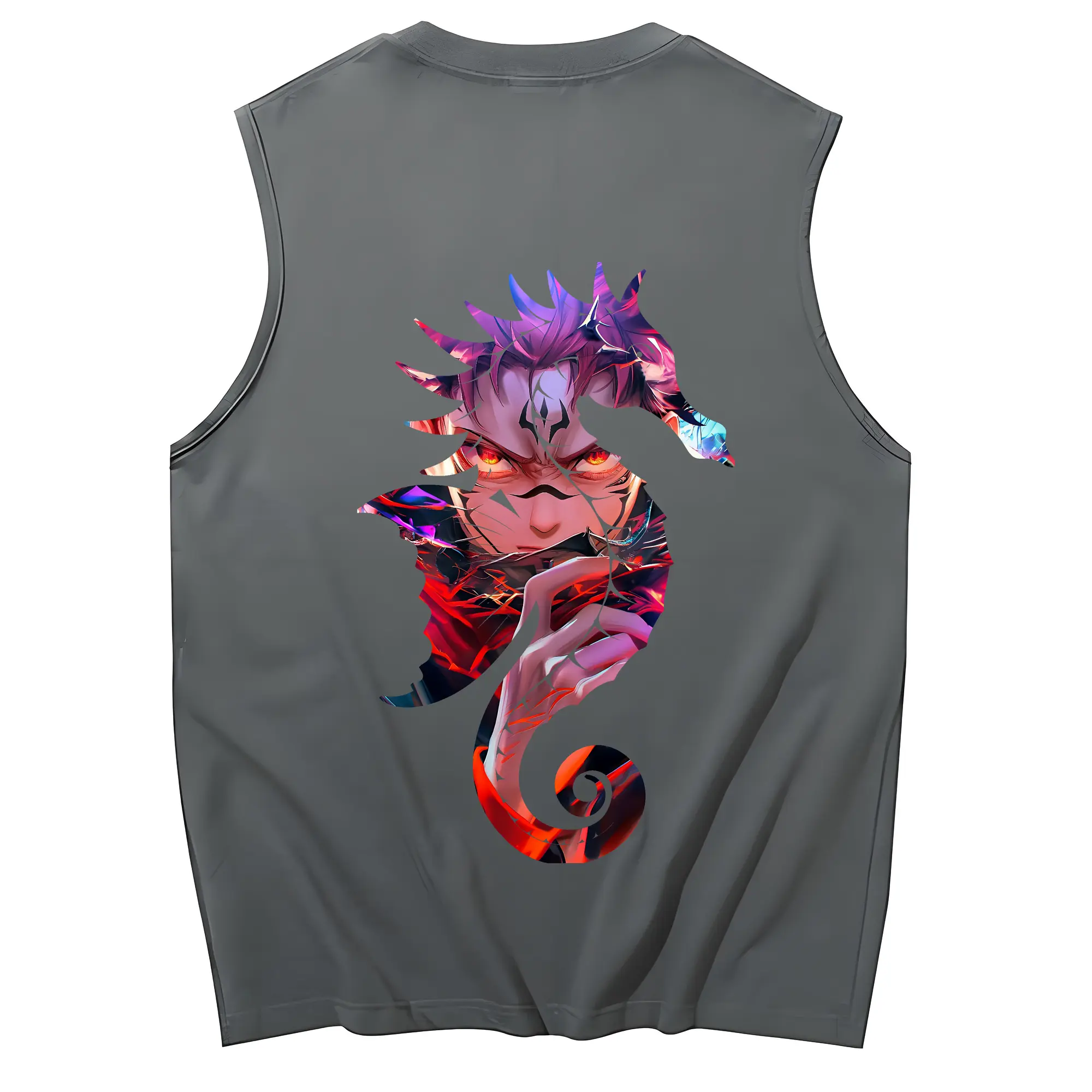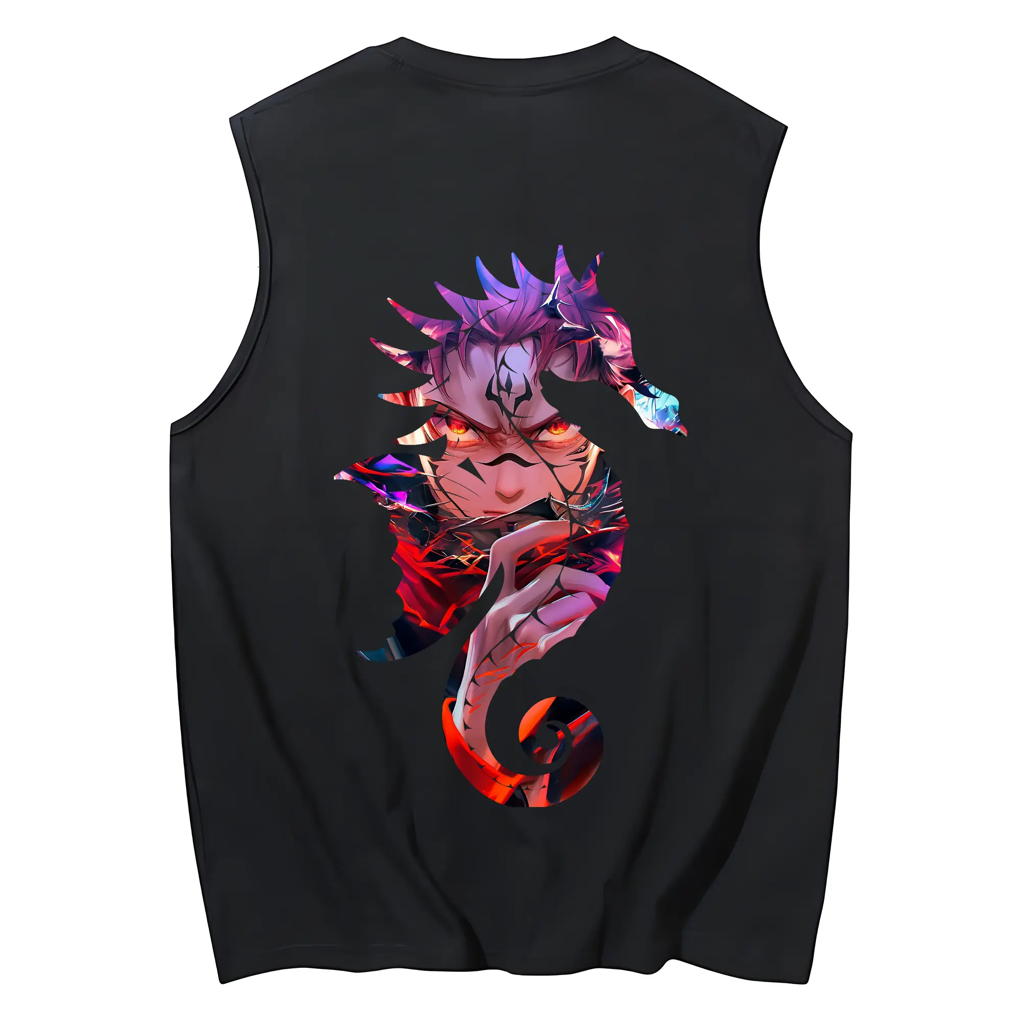 呪術廻戦 グッズ,両面宿儺 - コットン100% タンクトップ ・ 背面プリント ・ タイトシルエット ・ 快適 通気性 ・ スポーツ カジュアル 散歩用