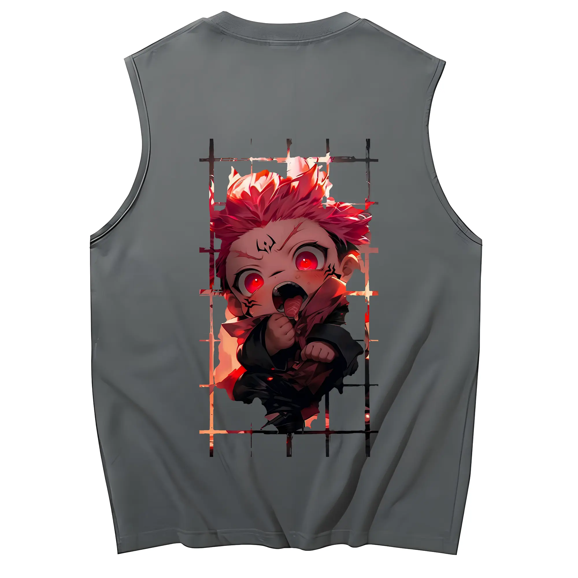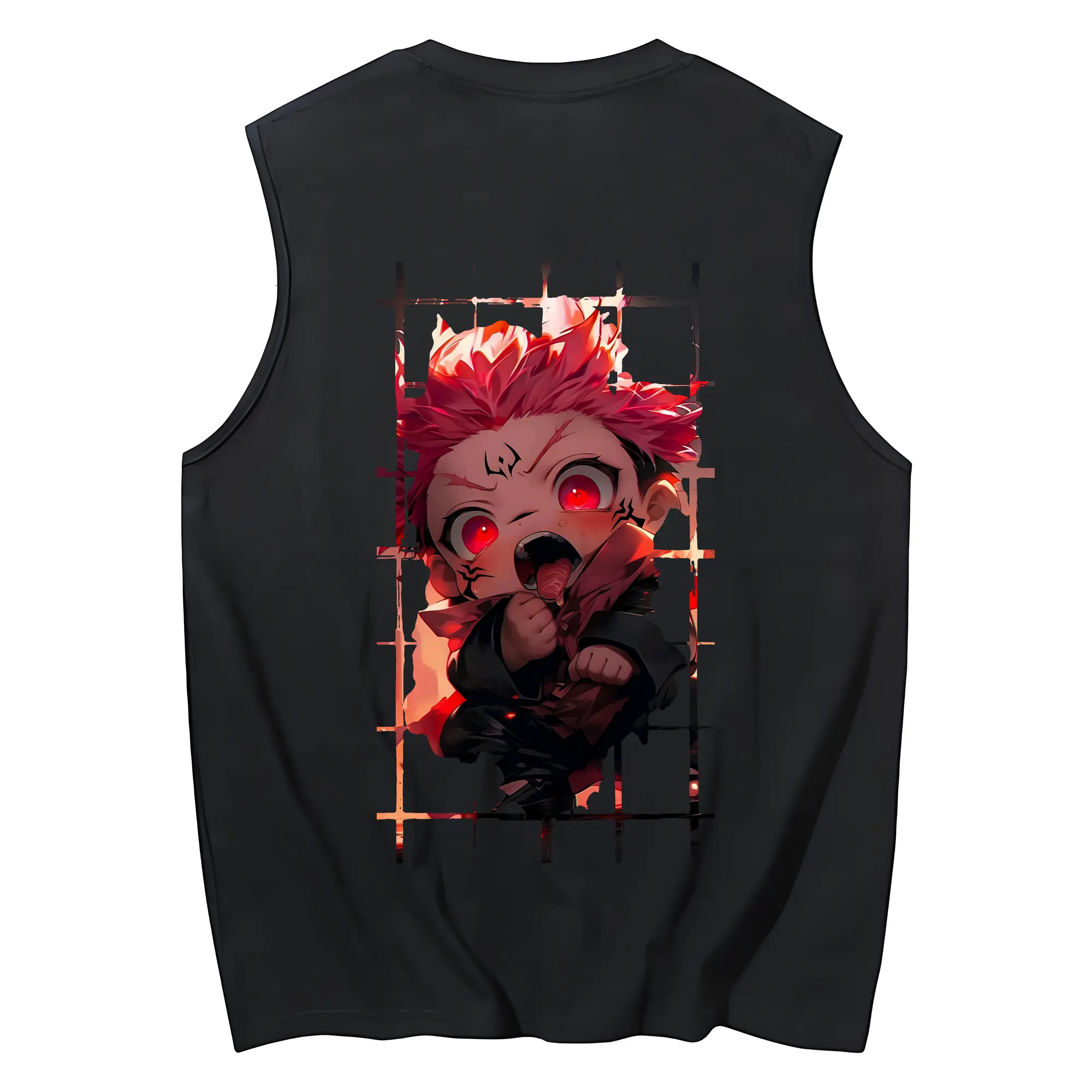 呪術廻戦 グッズ,両面宿儺 - コットン100% タンクトップ ・ 背面プリント ・ タイトシルエット ・ 快適 通気性 ・ スポーツ カジュアル 散歩用