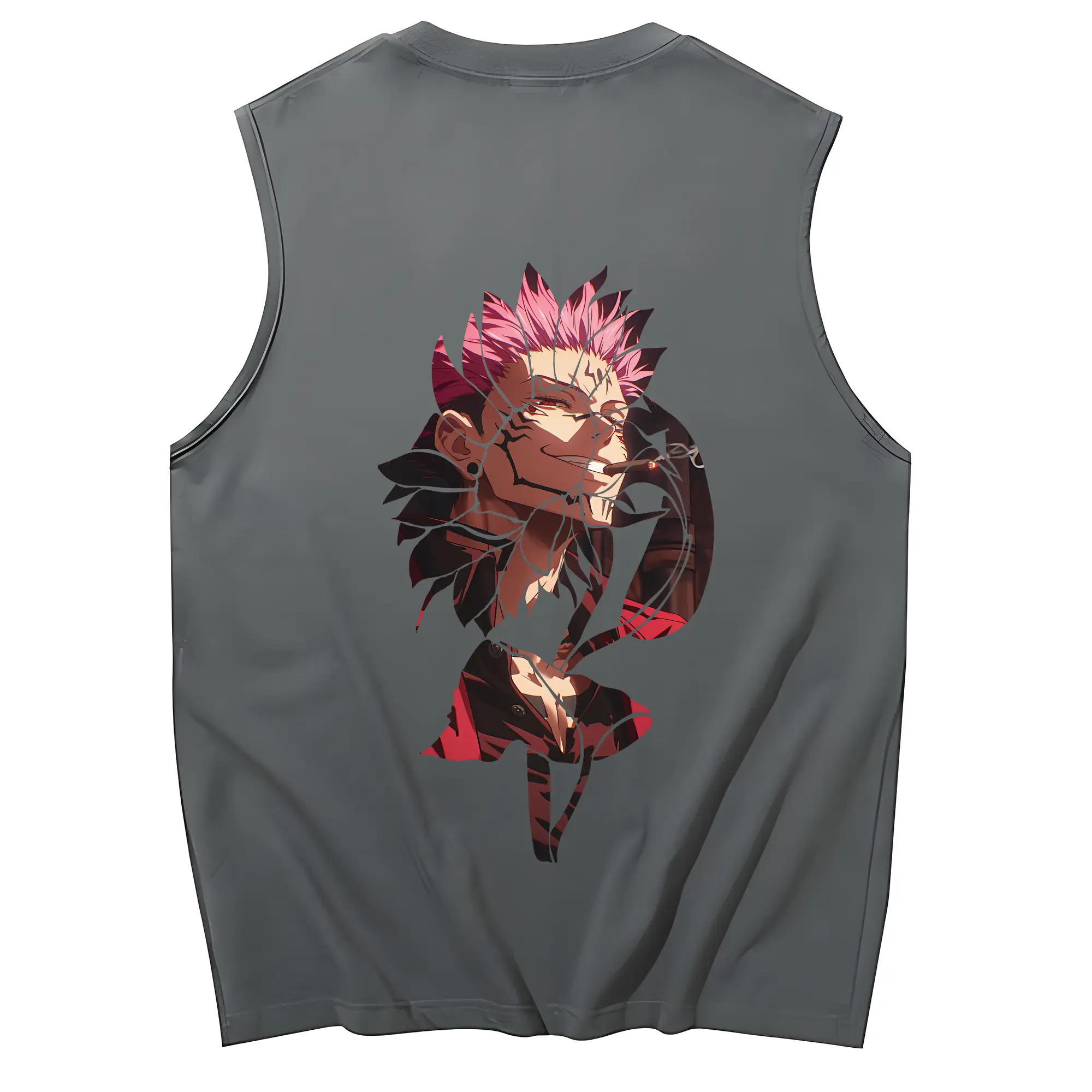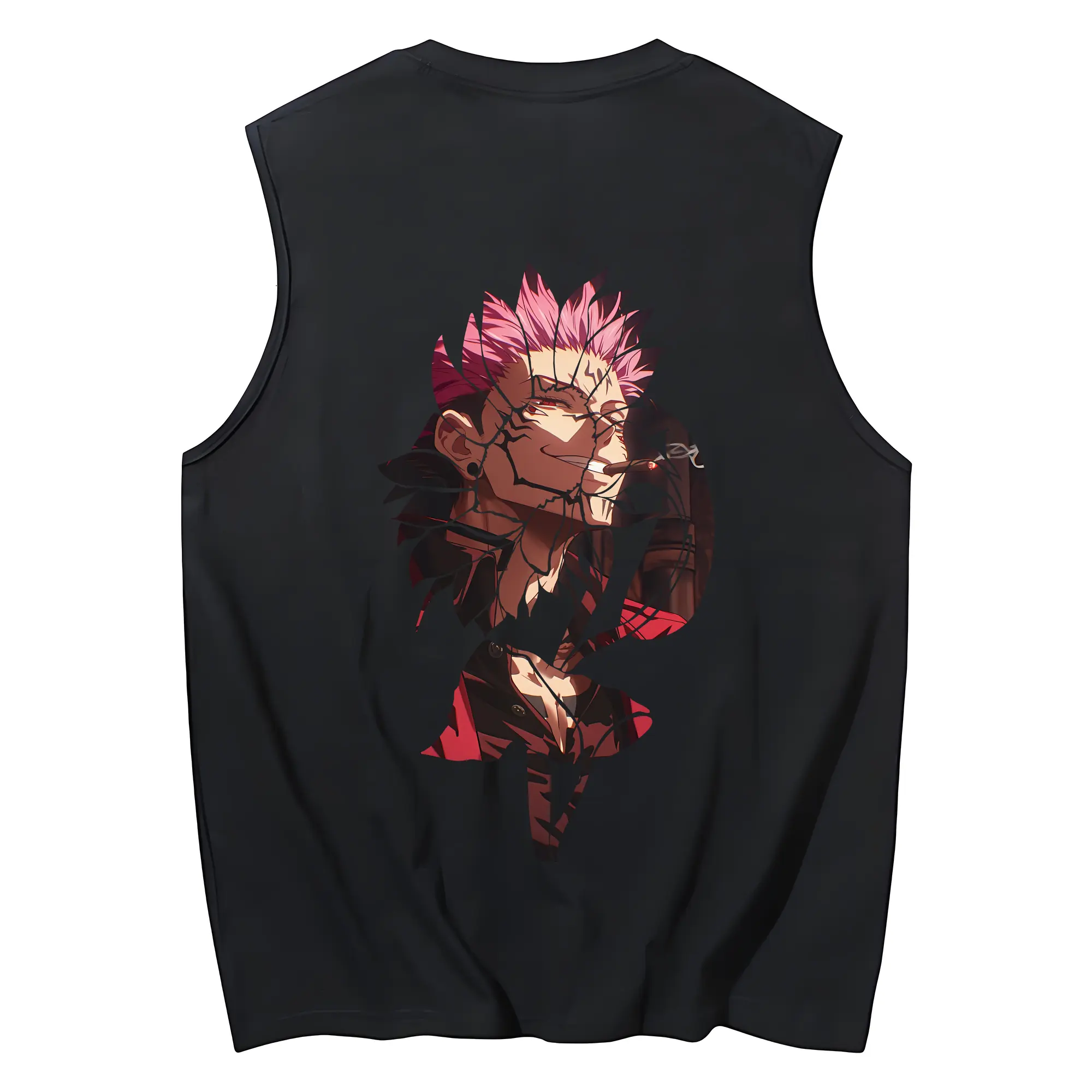 呪術廻戦 グッズ,両面宿儺 - コットン100% タンクトップ ・ 背面プリント ・ タイトシルエット ・ 快適 通気性 ・ スポーツ カジュアル 散歩用