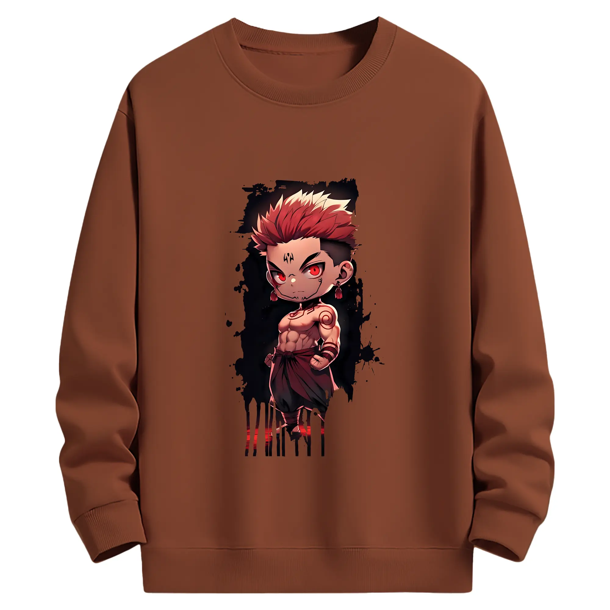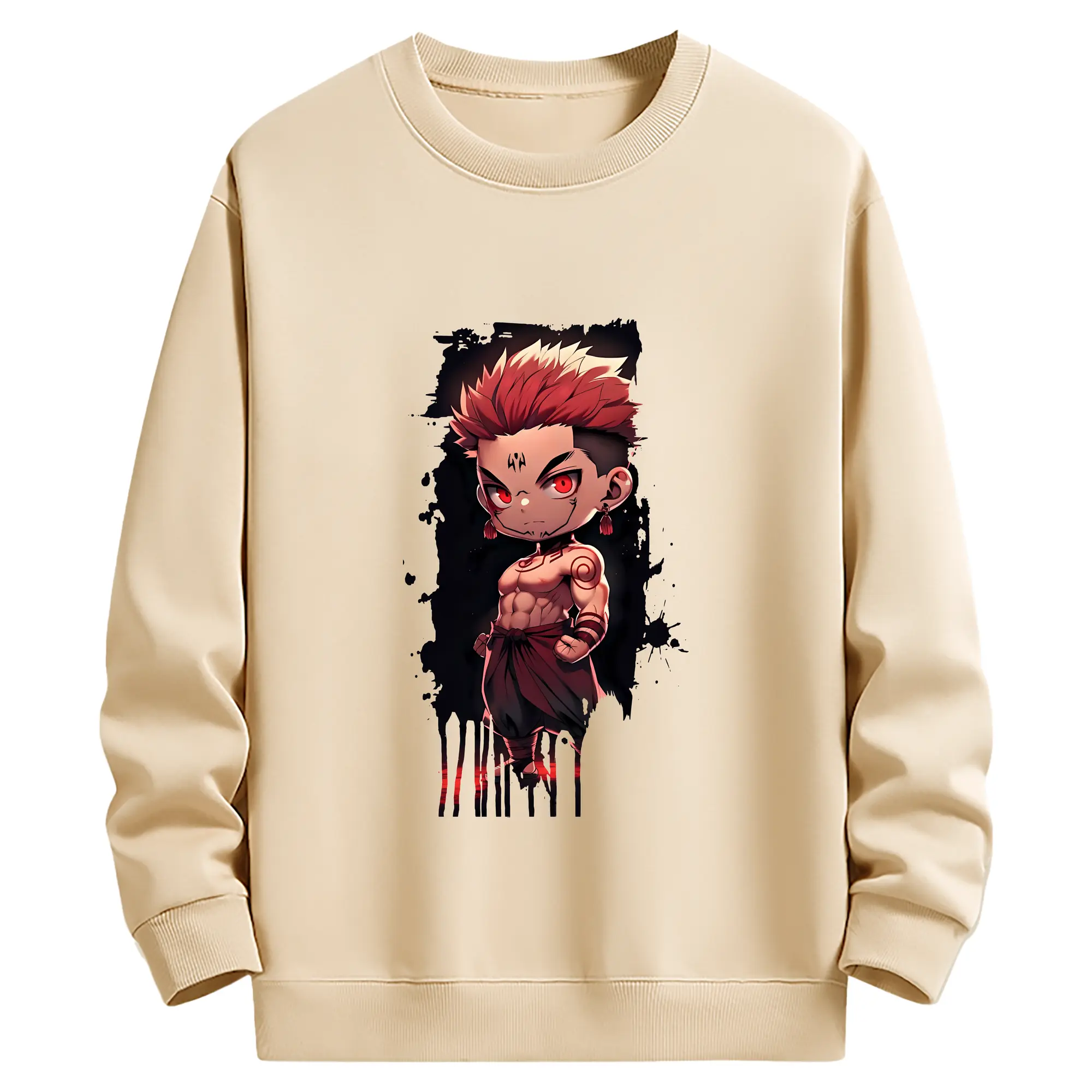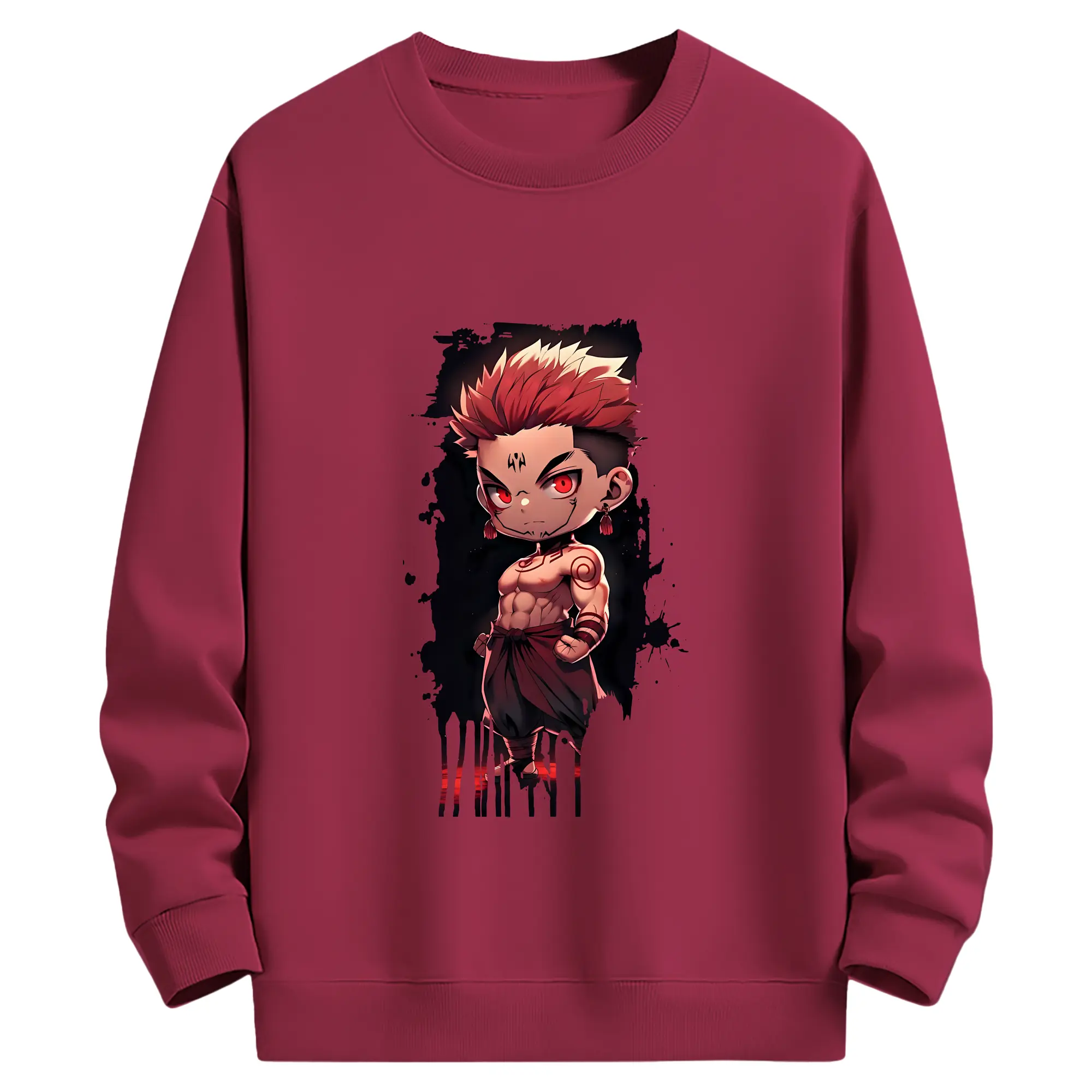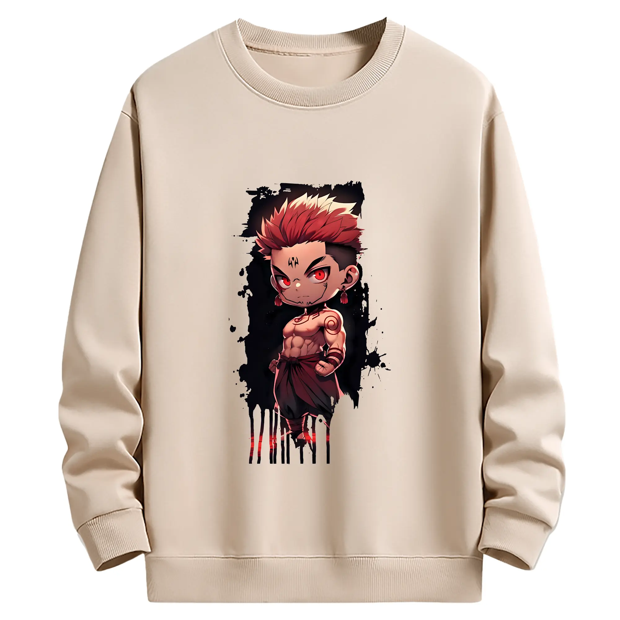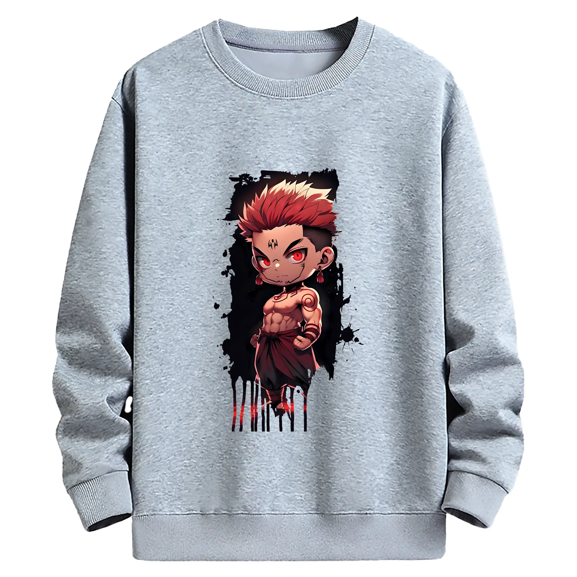 呪術廻戦 グッズ,両面宿儺 - 薄手 クルーネック スウェット 裏毛260g · ポリエステル 春秋向け カジュアル 男女兼用 · トレーナー デイリー スポーツ 散歩に最適