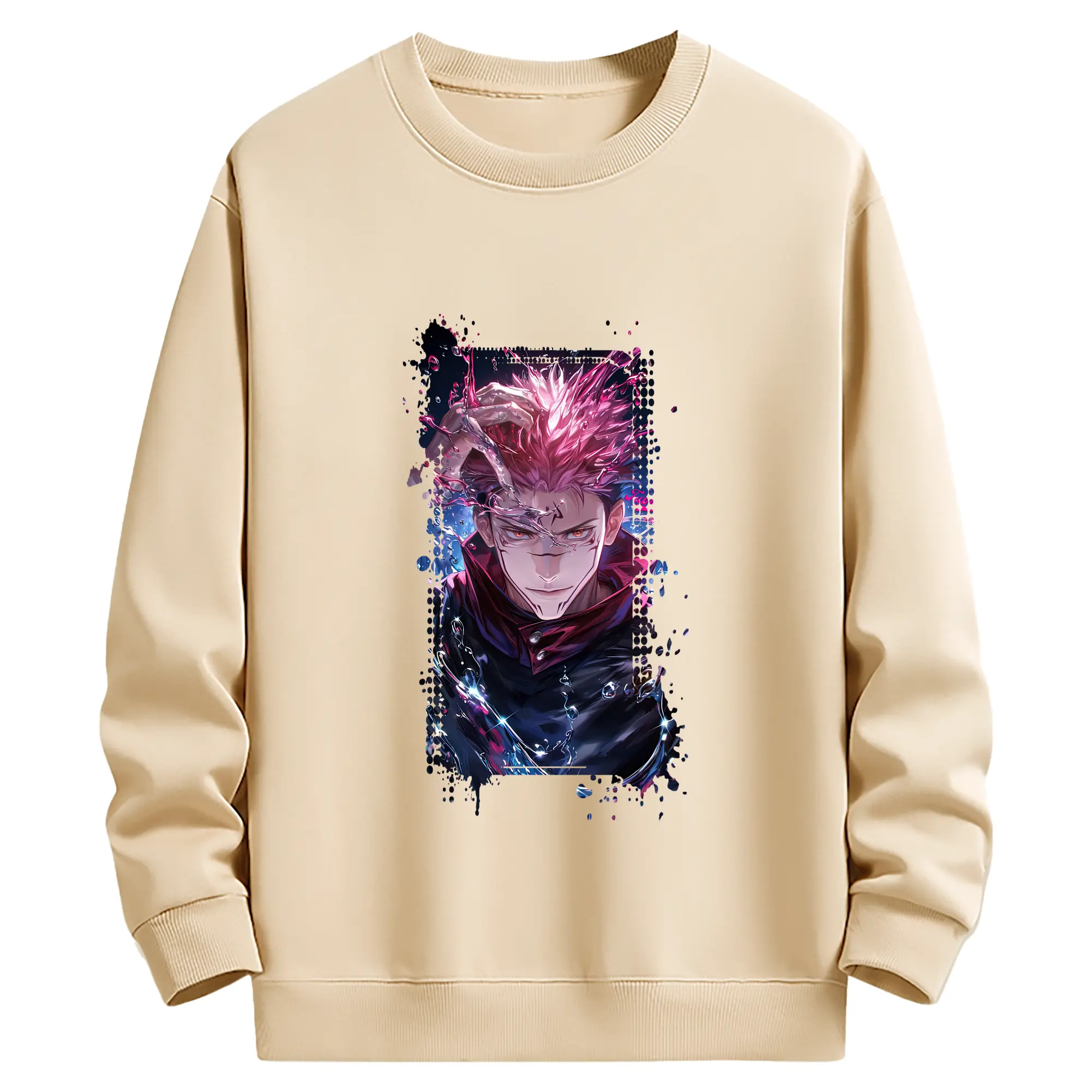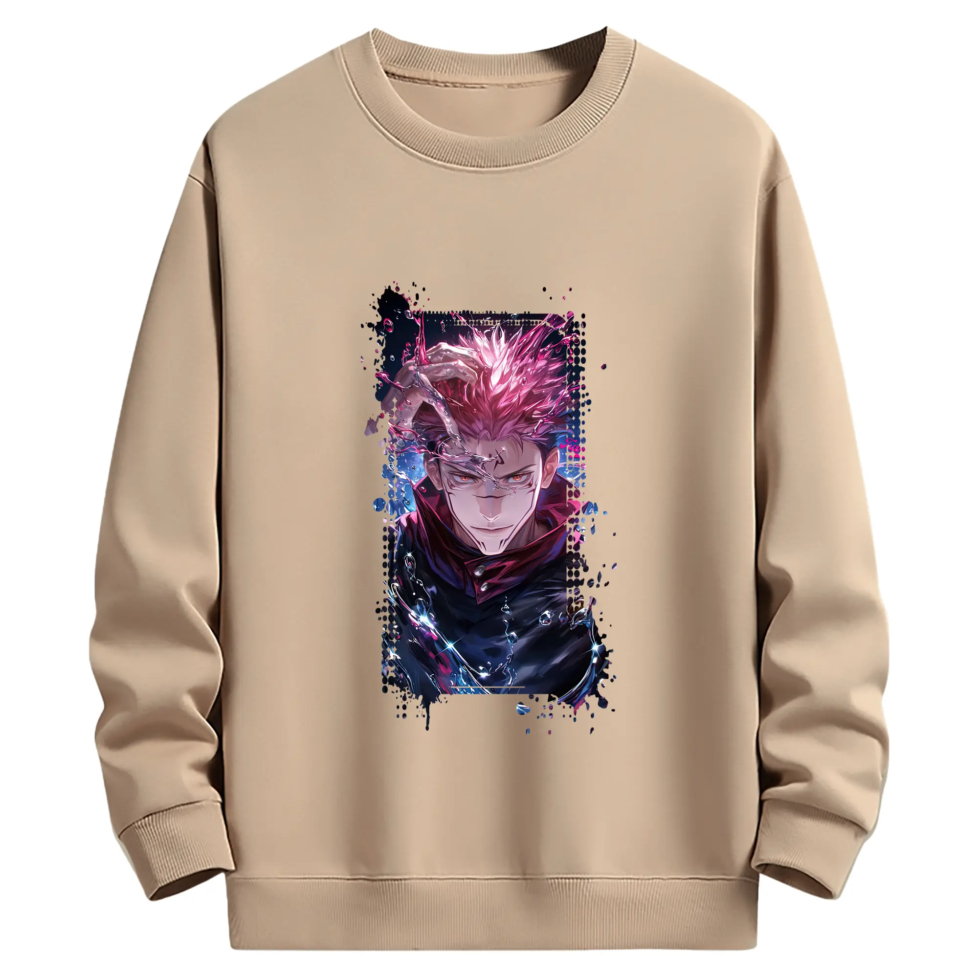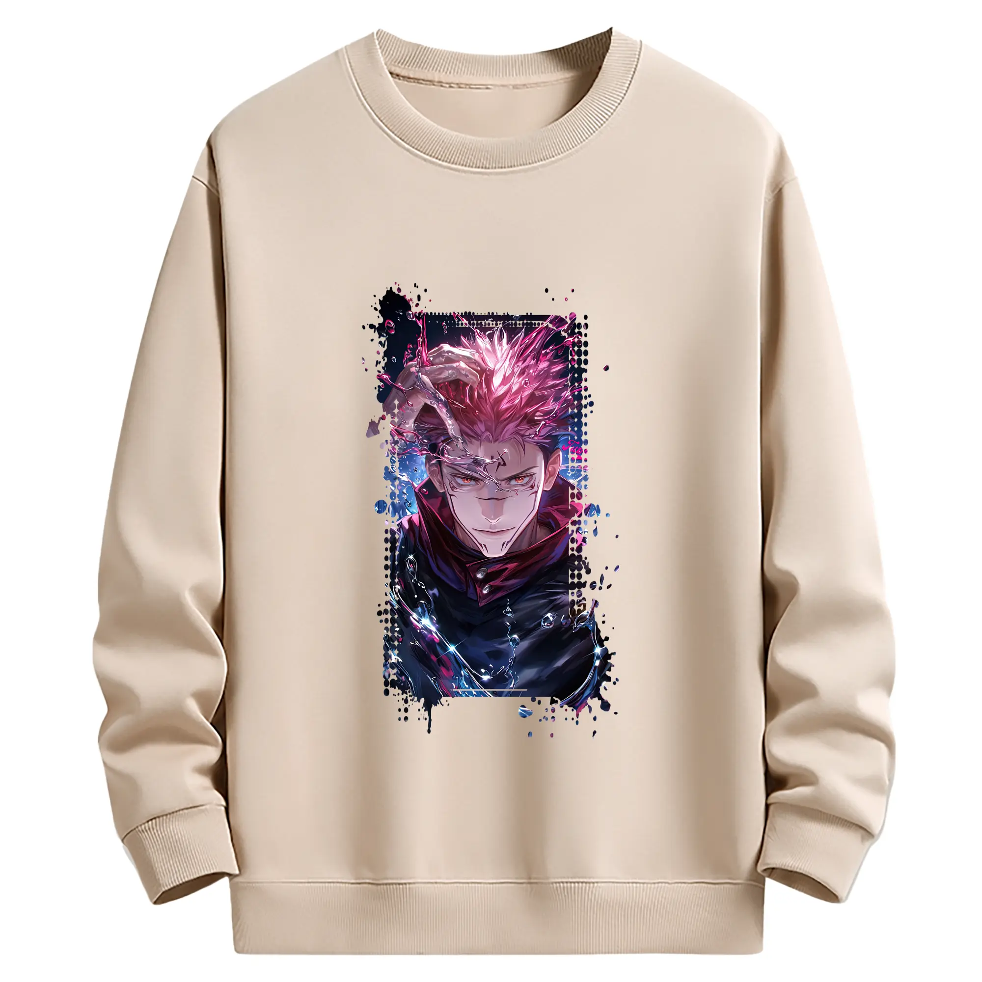 呪術廻戦 グッズ,両面宿儺 - 薄手 クルーネック スウェット 裏毛260g · ポリエステル 春秋向け カジュアル 男女兼用 · トレーナー デイリー スポーツ 散歩に最適