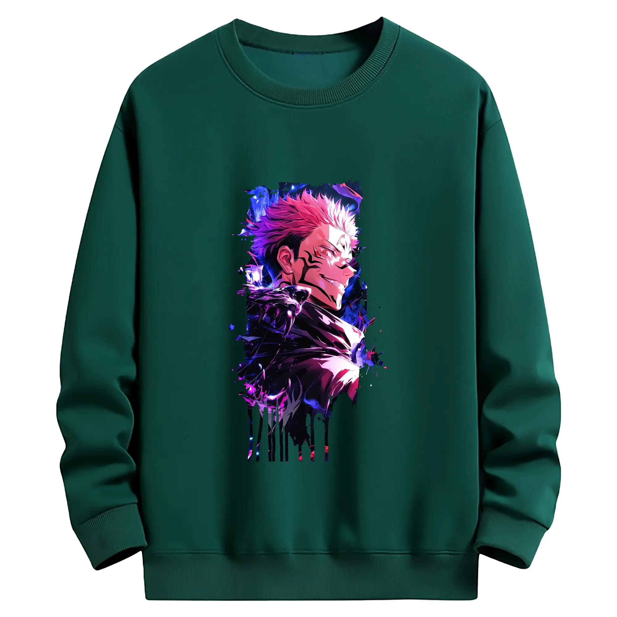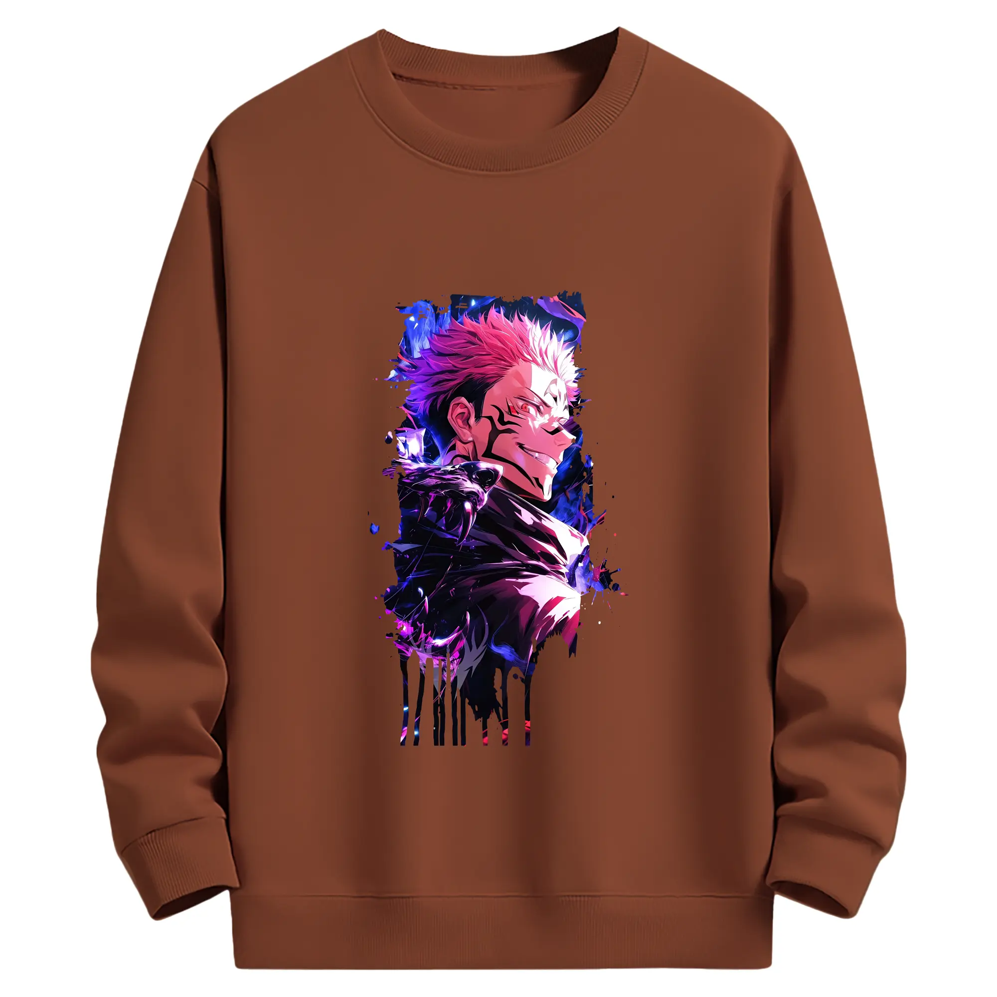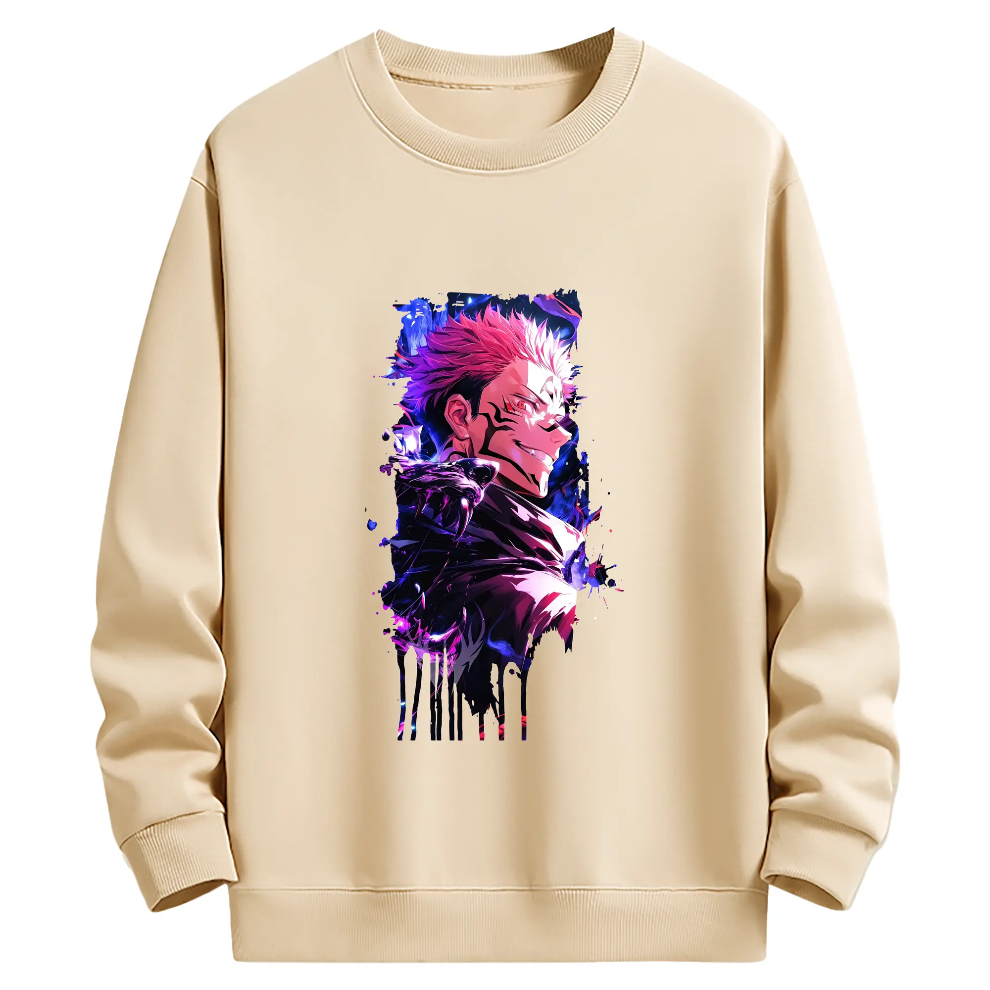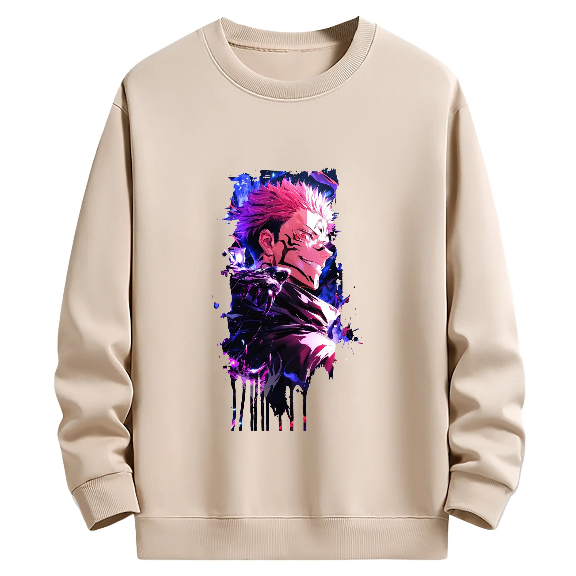 呪術廻戦 グッズ,両面宿儺 - 薄手 クルーネック スウェット 裏毛260g · ポリエステル 春秋向け カジュアル 男女兼用 · トレーナー デイリー スポーツ 散歩に最適