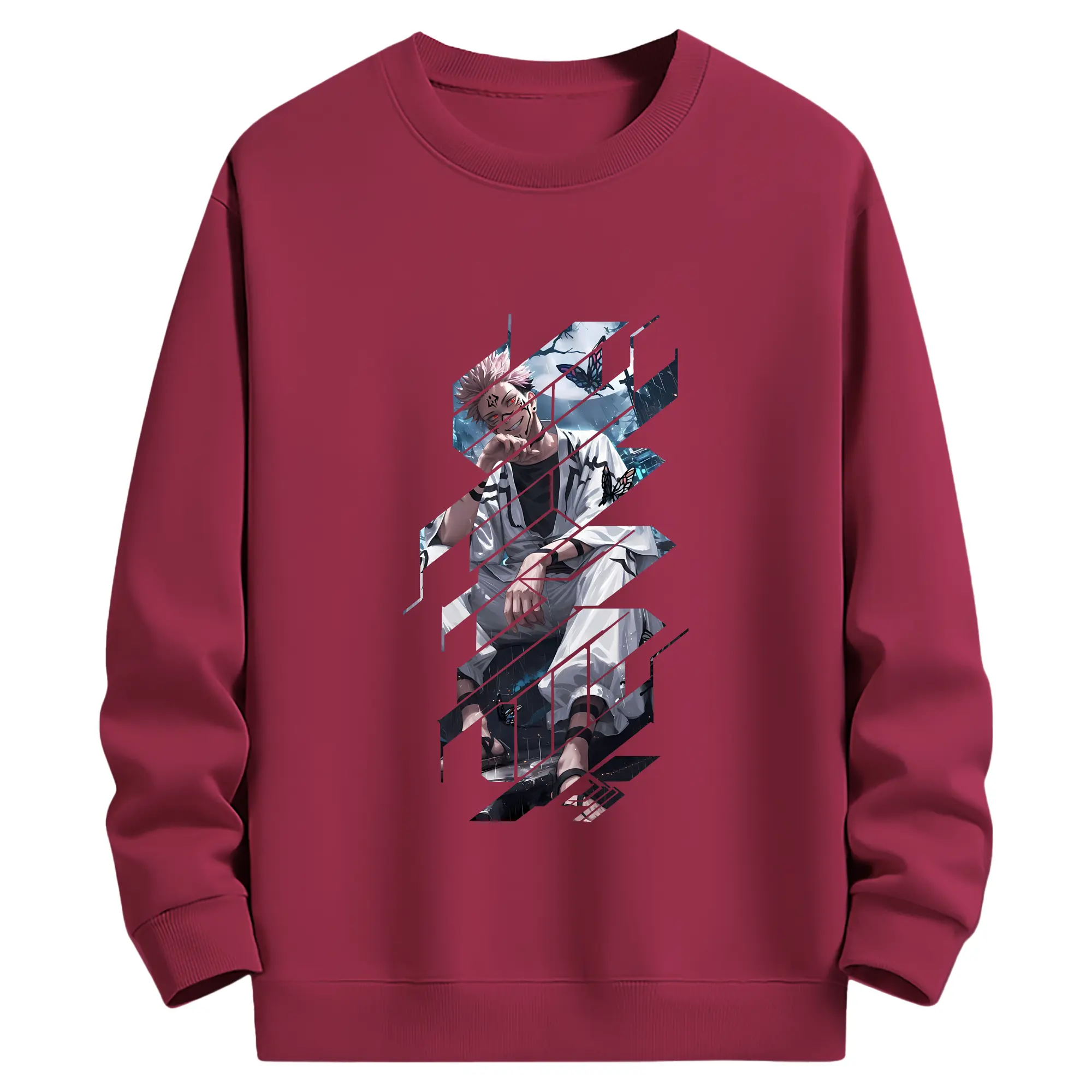 呪術廻戦 グッズ,両面宿儺 - 薄手 クルーネック スウェット 裏毛260g · ポリエステル 春秋向け カジュアル 男女兼用 · トレーナー デイリー スポーツ 散歩に最適