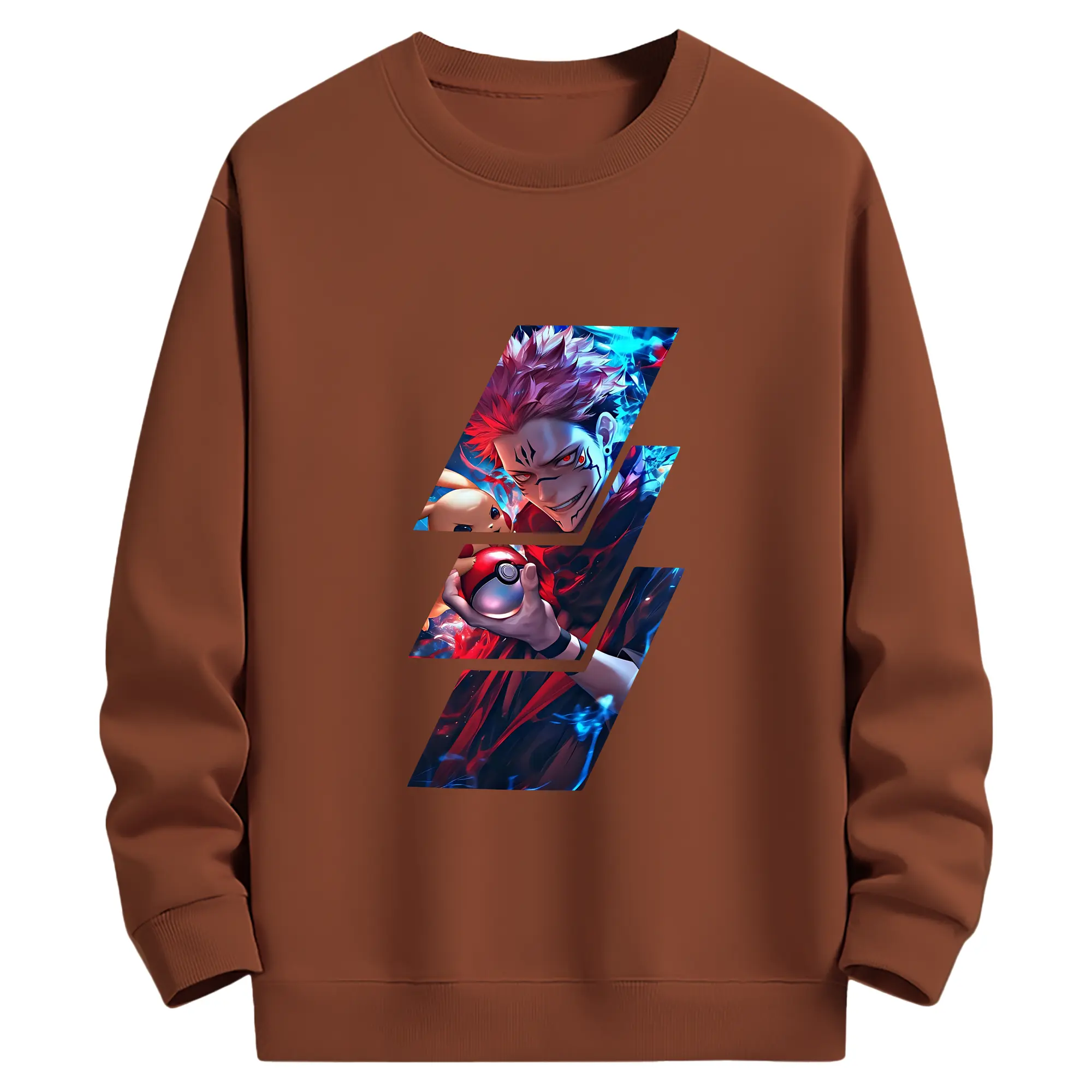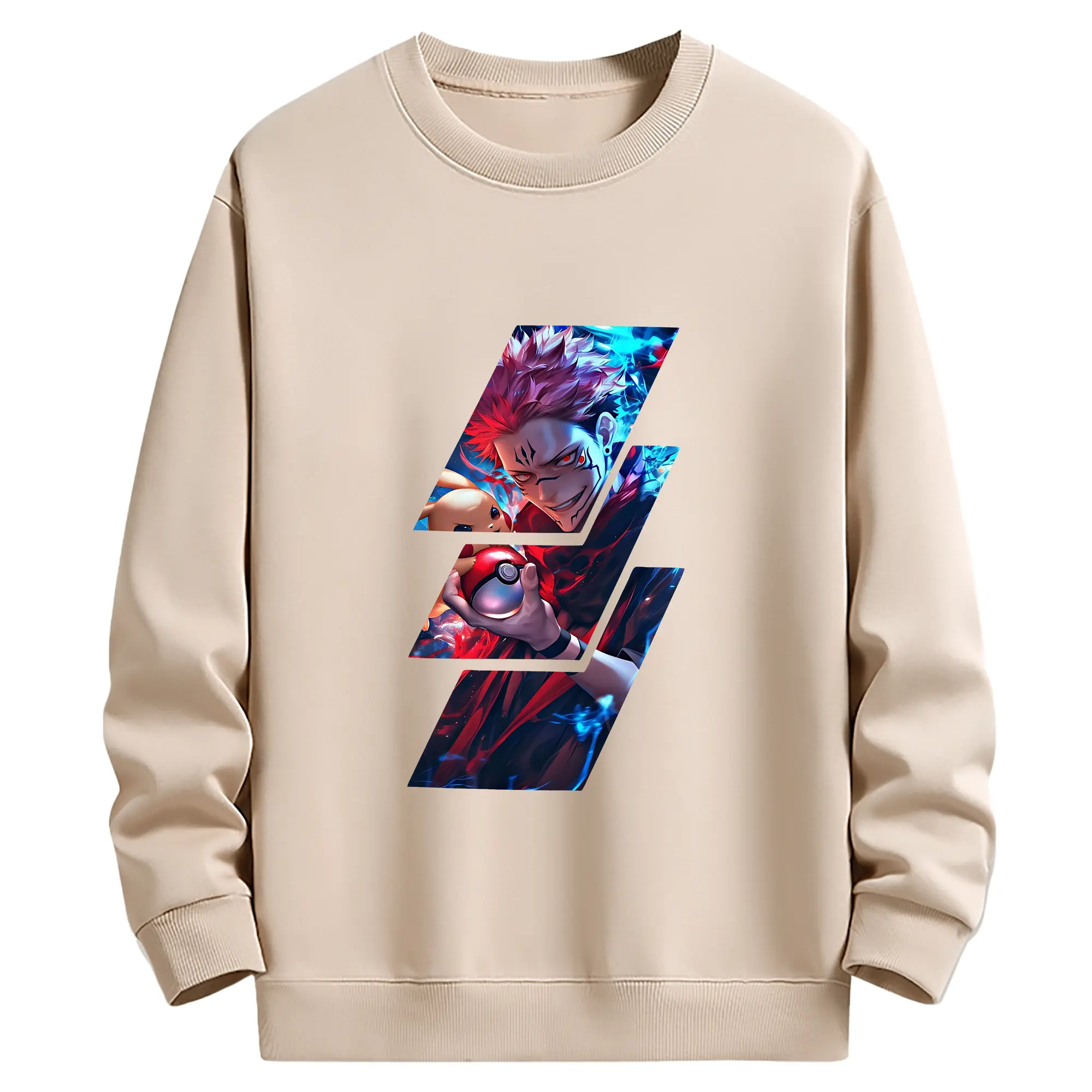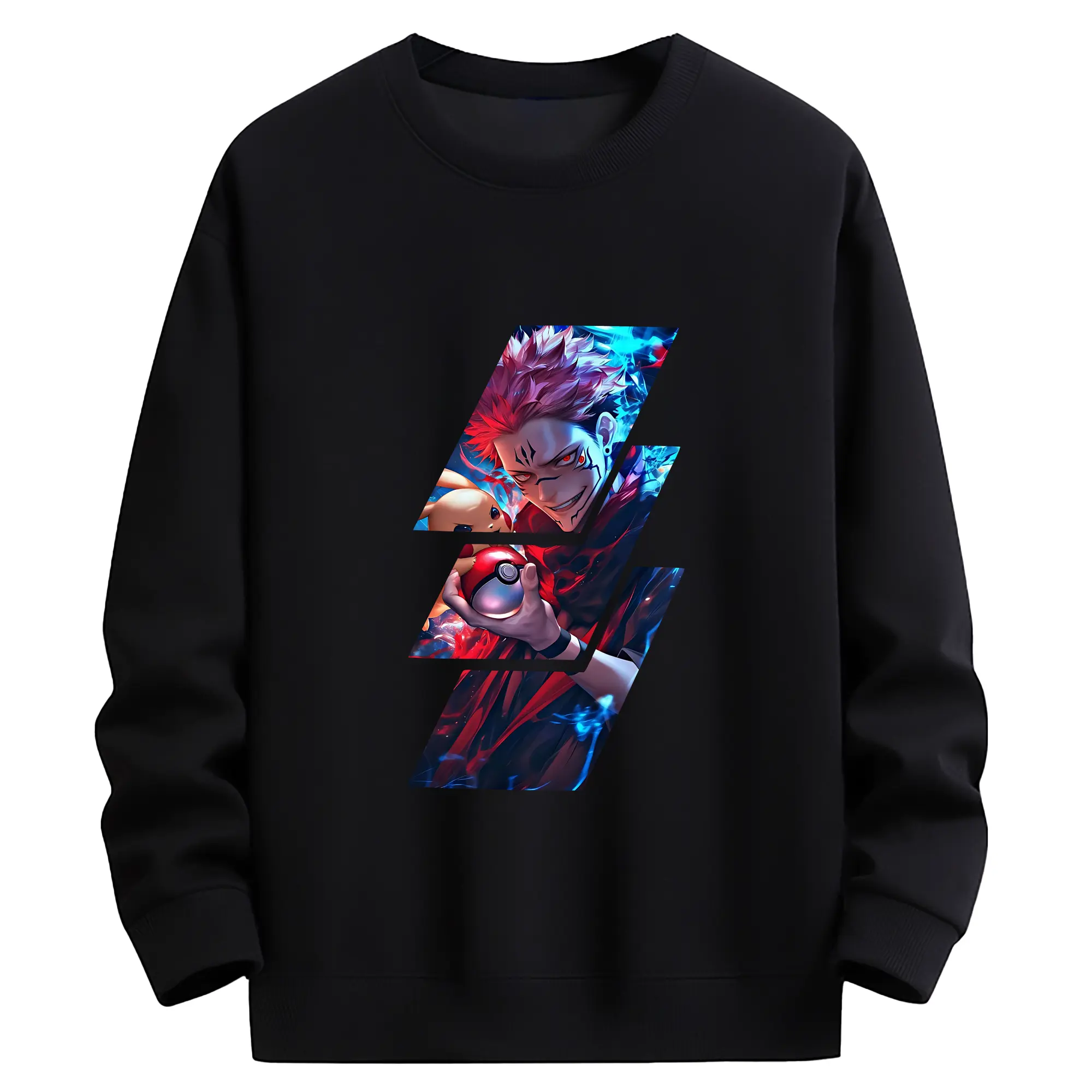 呪術廻戦 グッズ,両面宿儺 - 薄手 クルーネック スウェット 裏毛260g · ポリエステル 春秋向け カジュアル 男女兼用 · トレーナー デイリー スポーツ 散歩に最適
