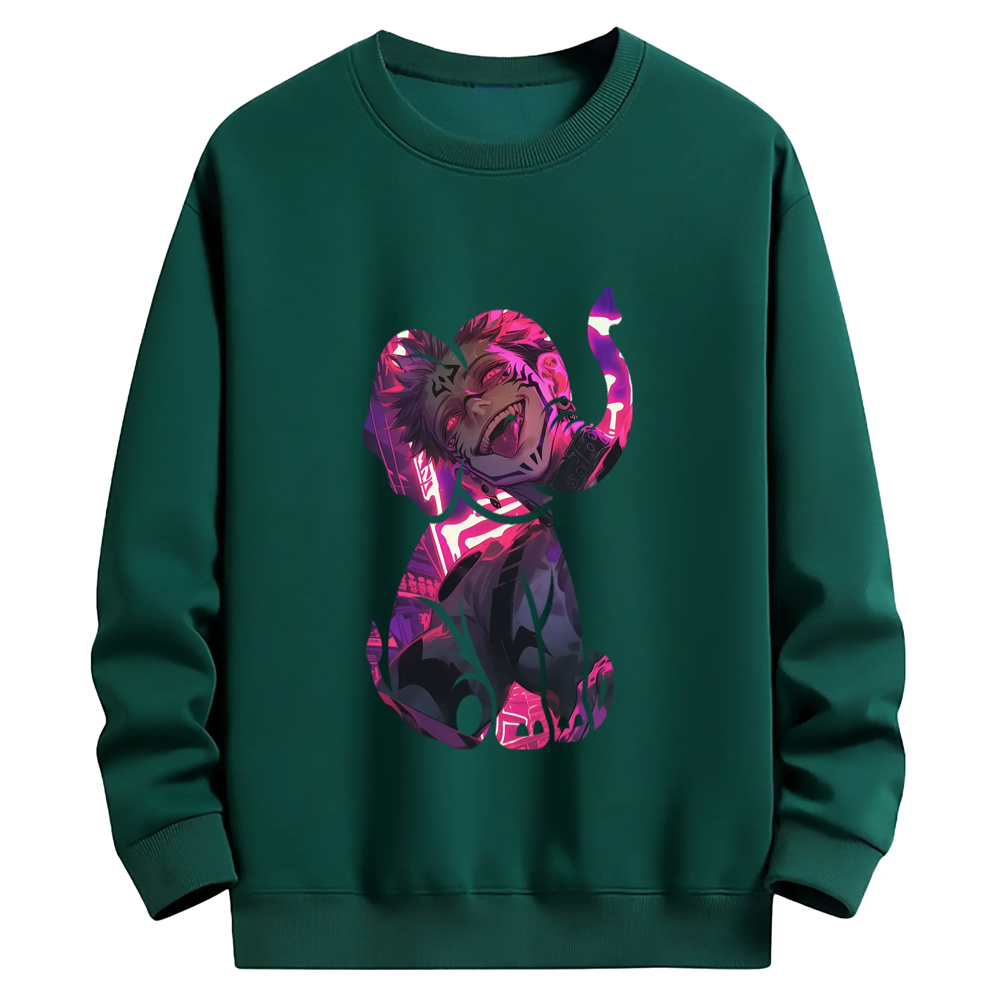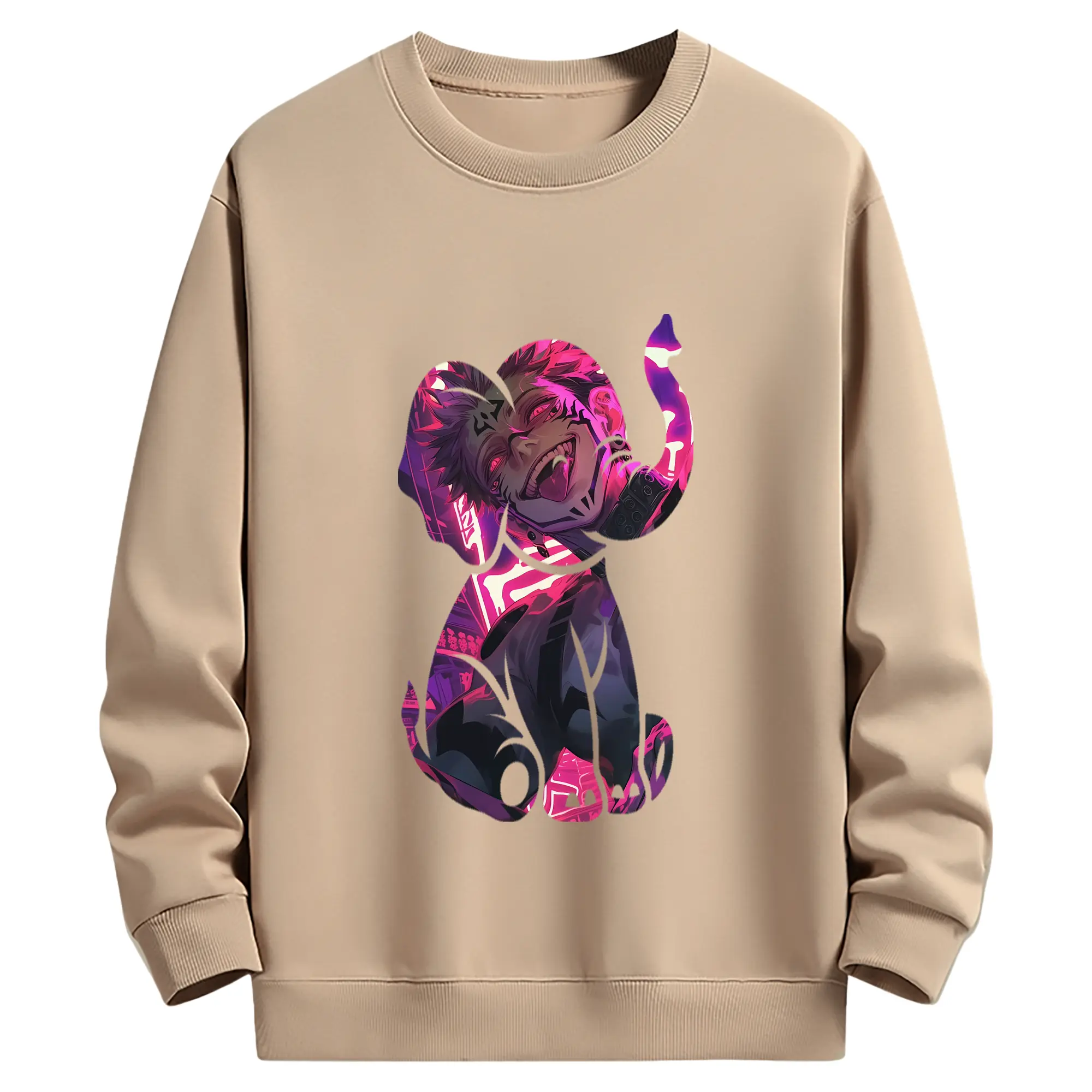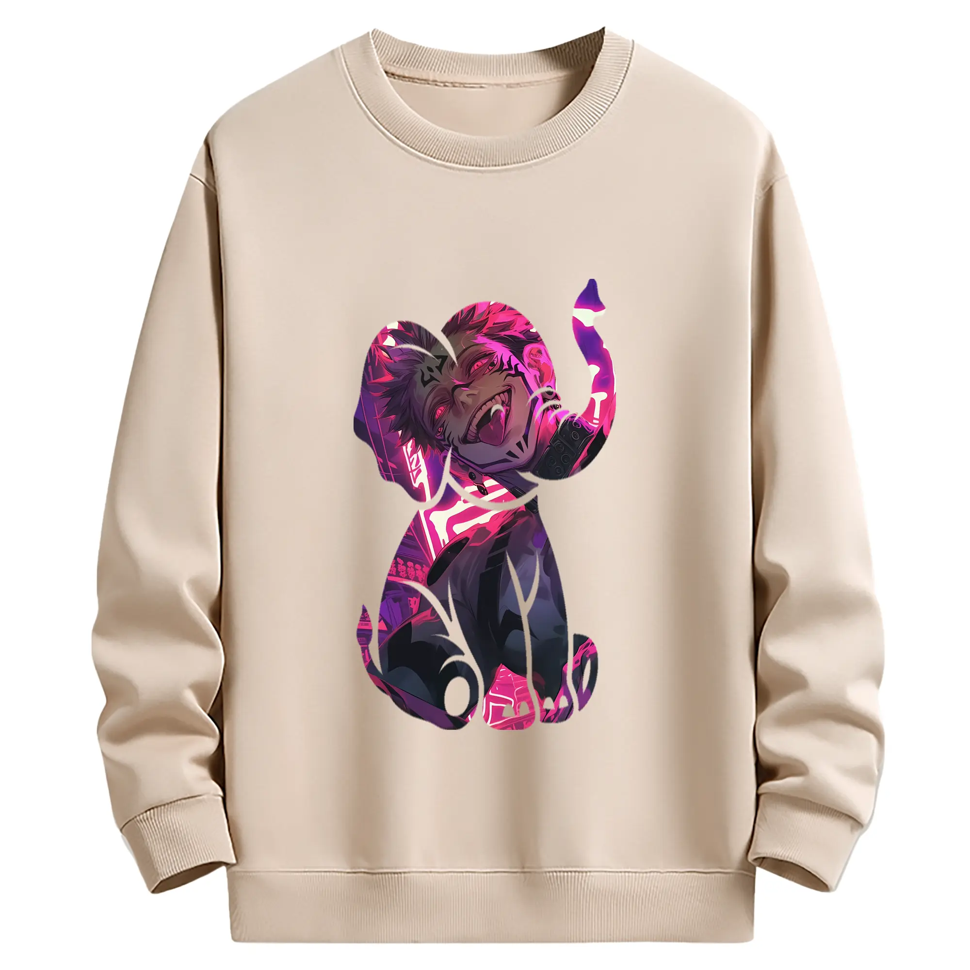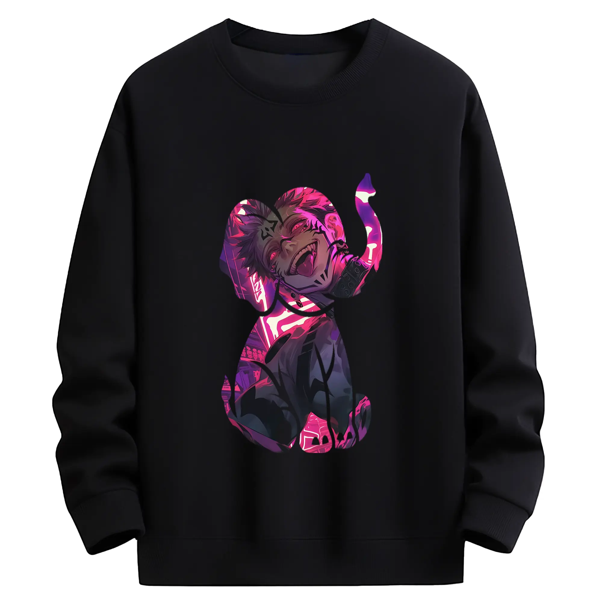 呪術廻戦 グッズ,両面宿儺 - 薄手 クルーネック スウェット 裏毛260g · ポリエステル 春秋向け カジュアル 男女兼用 · トレーナー デイリー スポーツ 散歩に最適