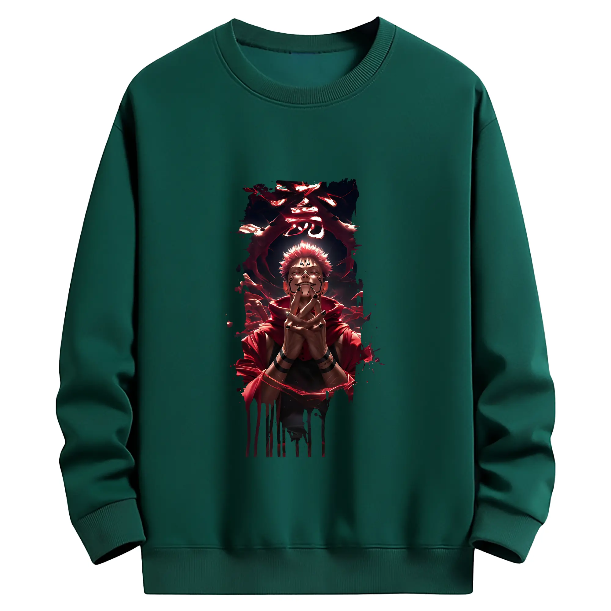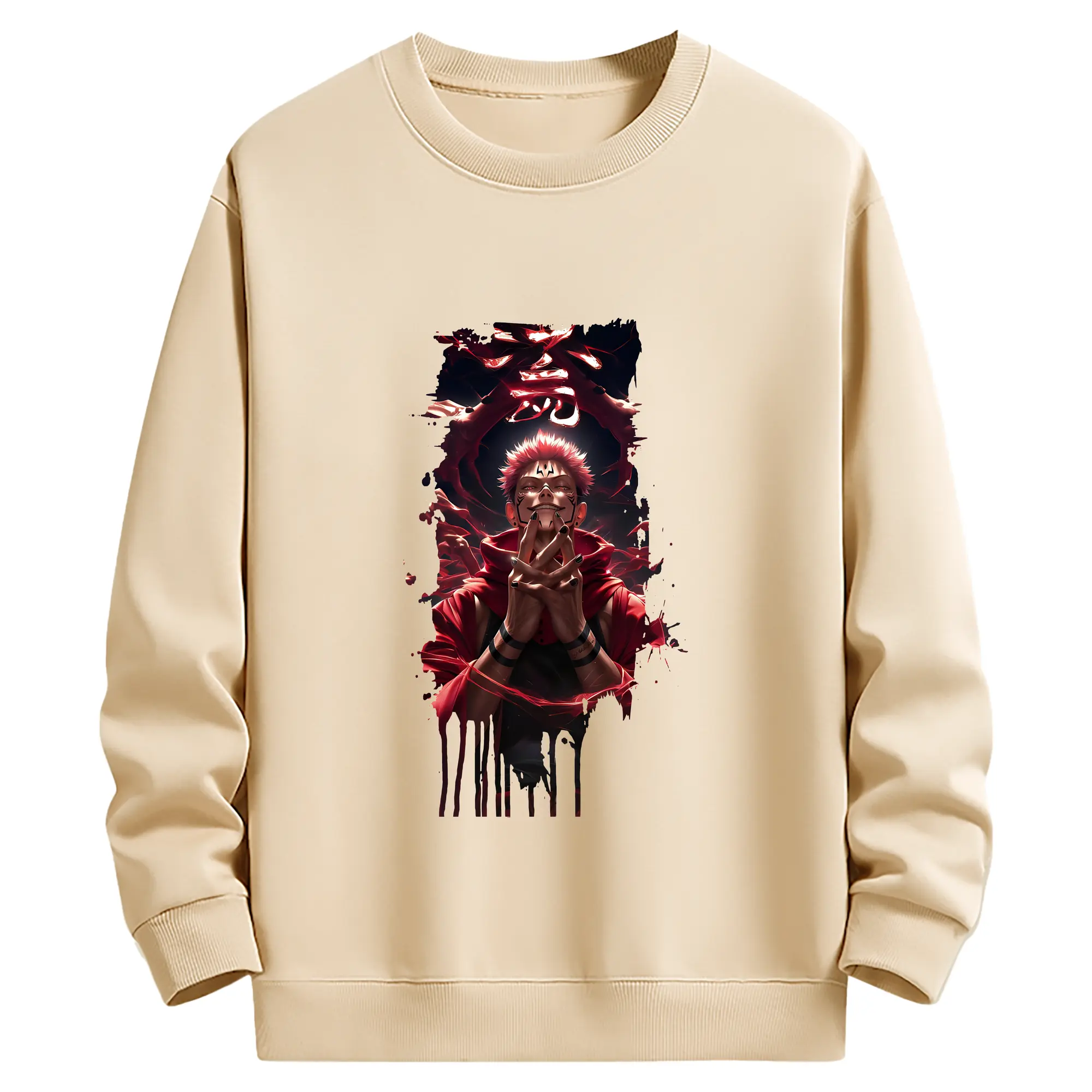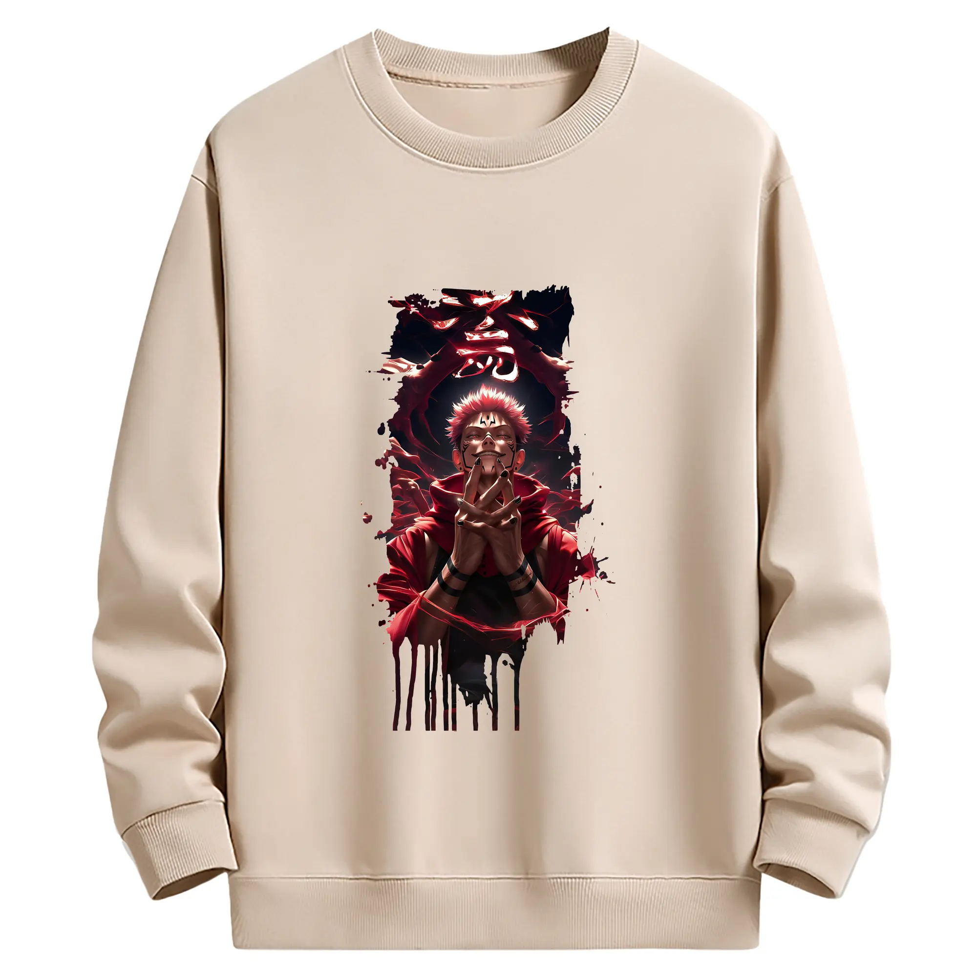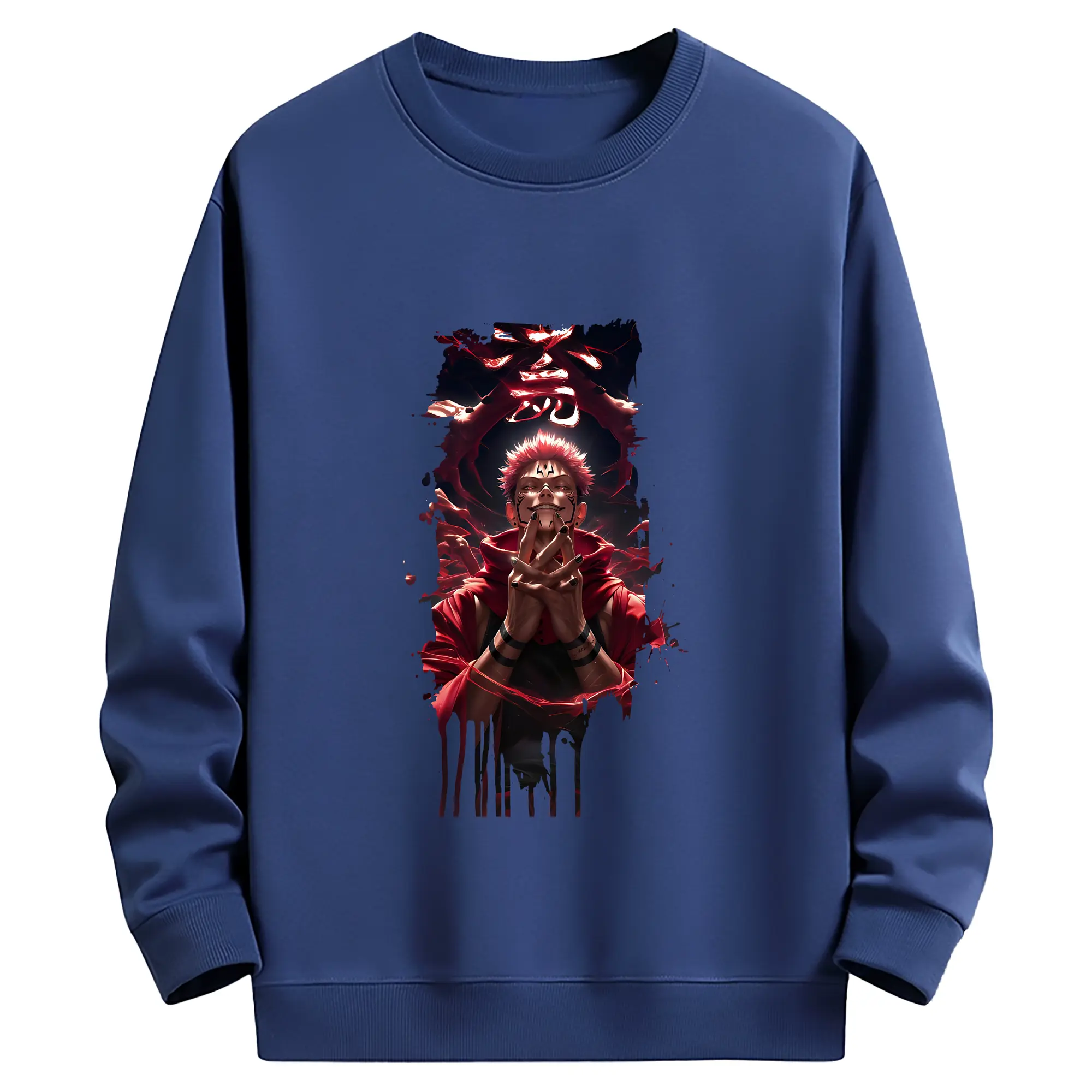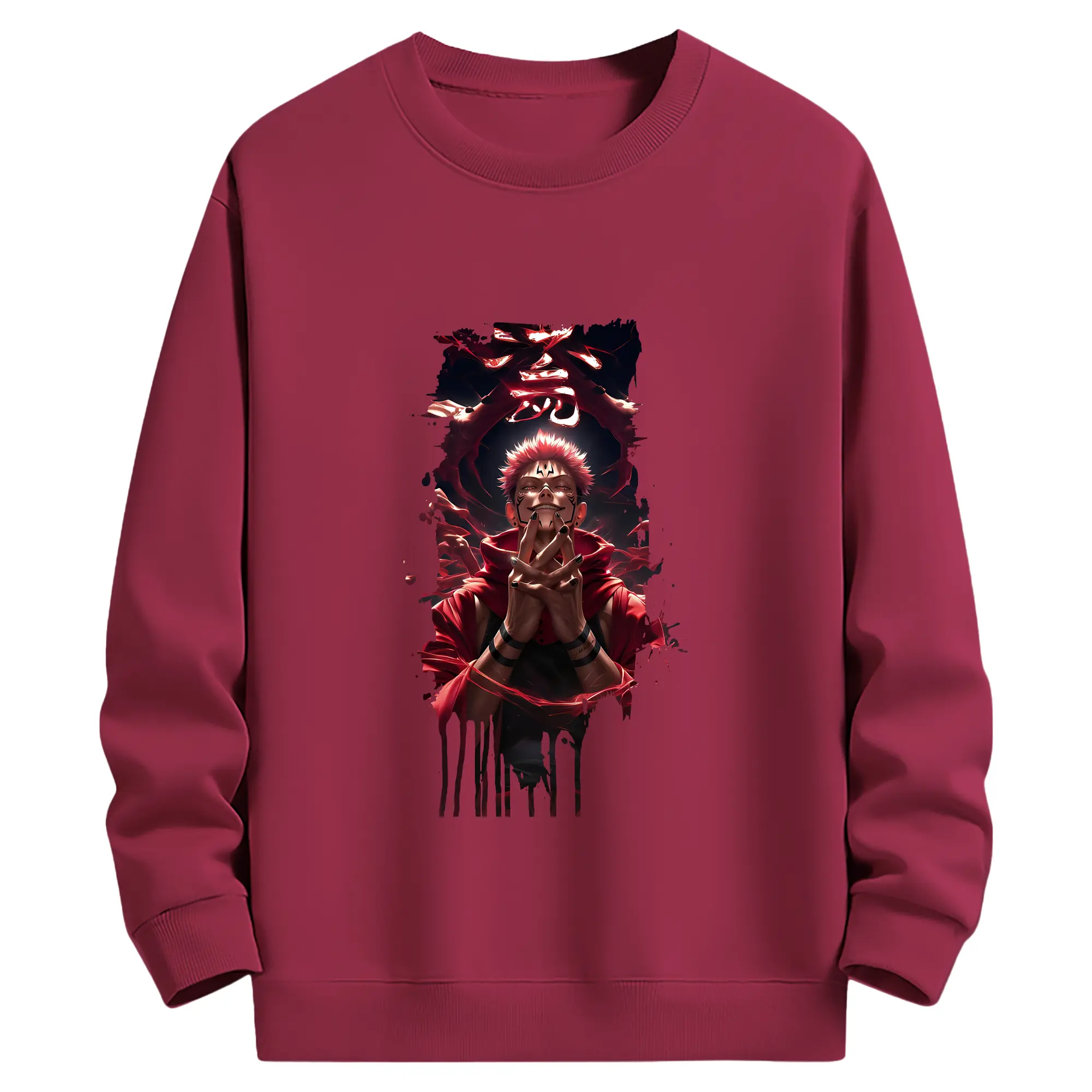 呪術廻戦 グッズ,両面宿儺 - 薄手 クルーネック スウェット 裏毛260g · ポリエステル 春秋向け カジュアル 男女兼用 · トレーナー デイリー スポーツ 散歩に最適