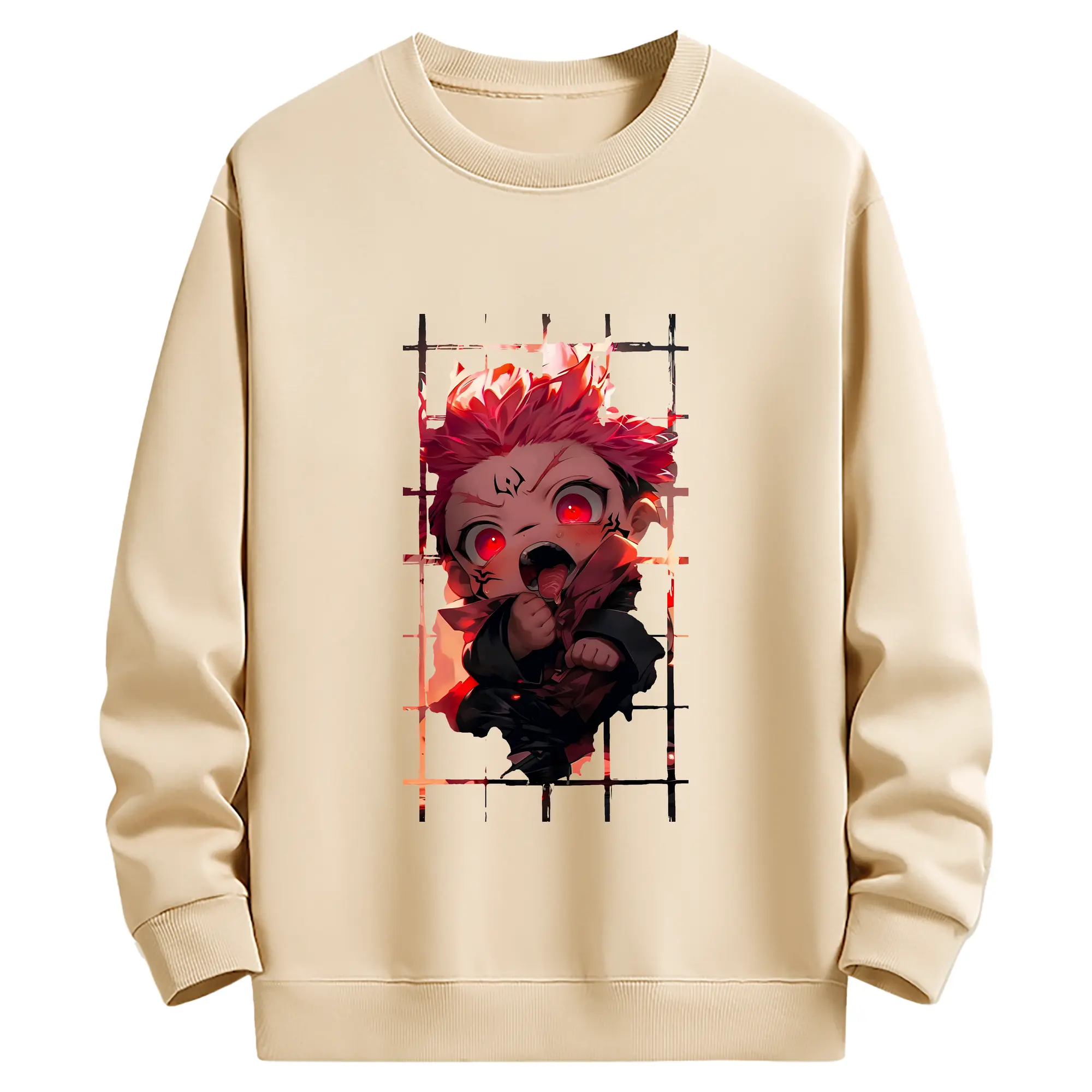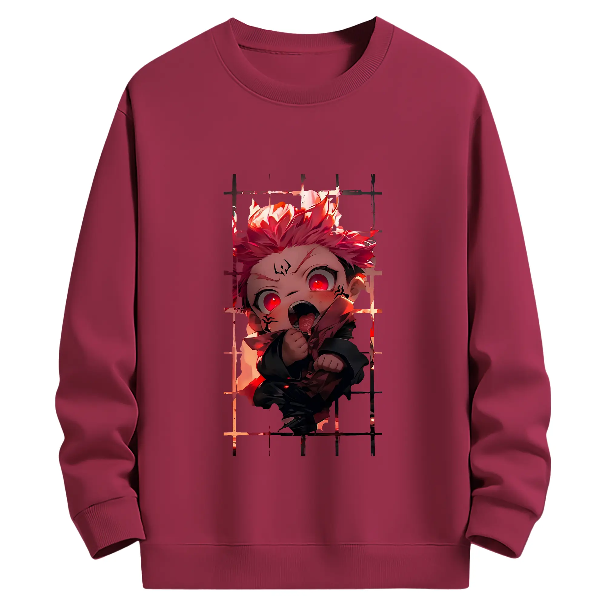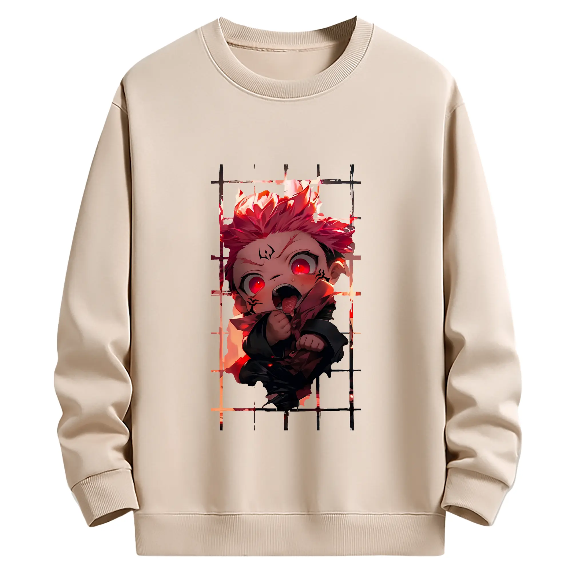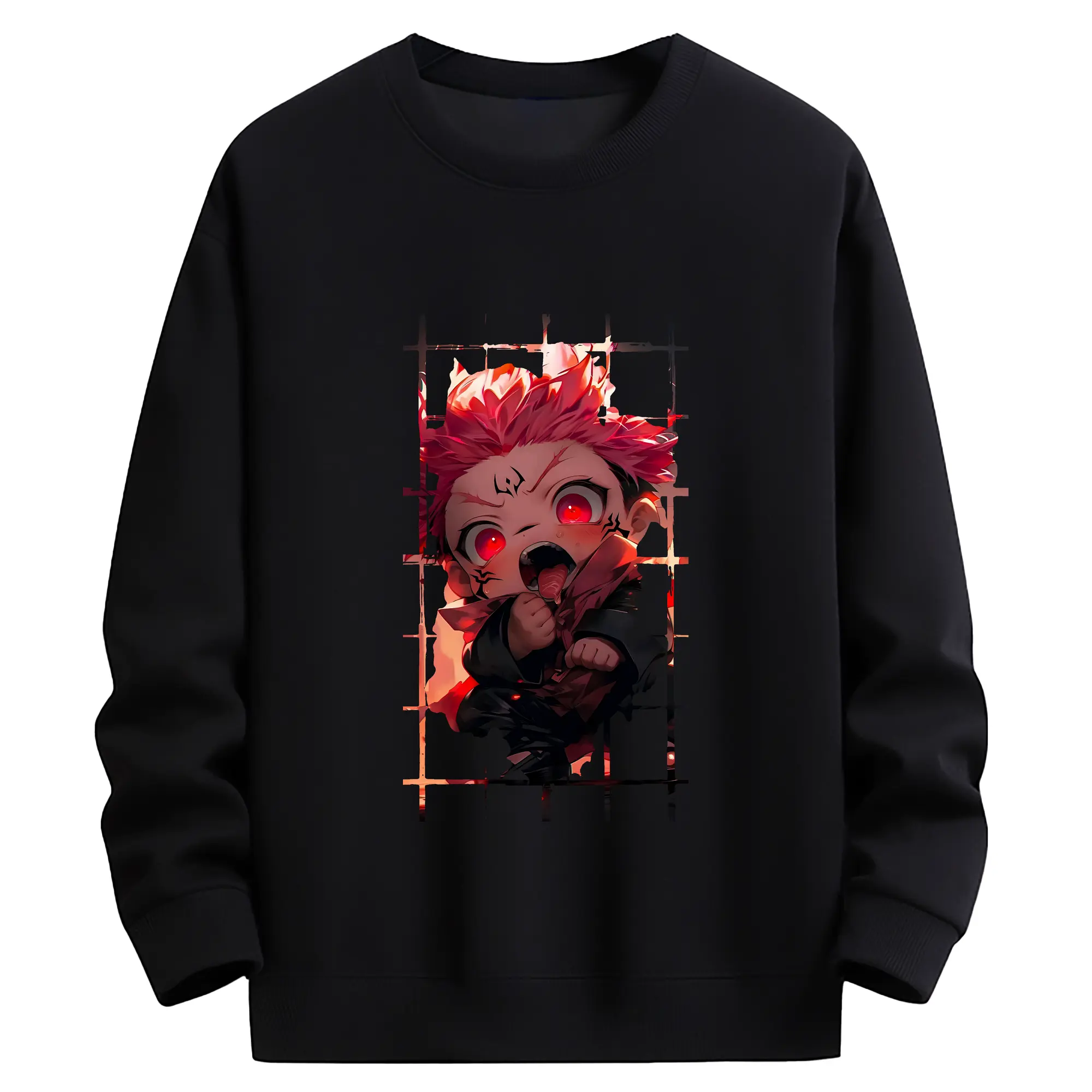 呪術廻戦 グッズ,両面宿儺 - 薄手 クルーネック スウェット 裏毛260g · ポリエステル 春秋向け カジュアル 男女兼用 · トレーナー デイリー スポーツ 散歩に最適