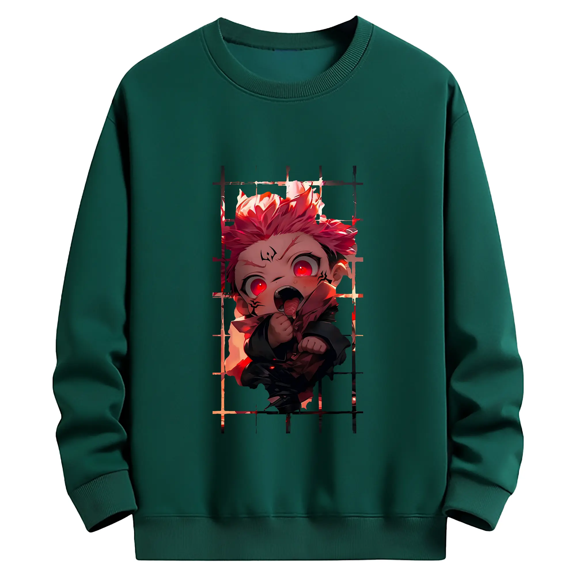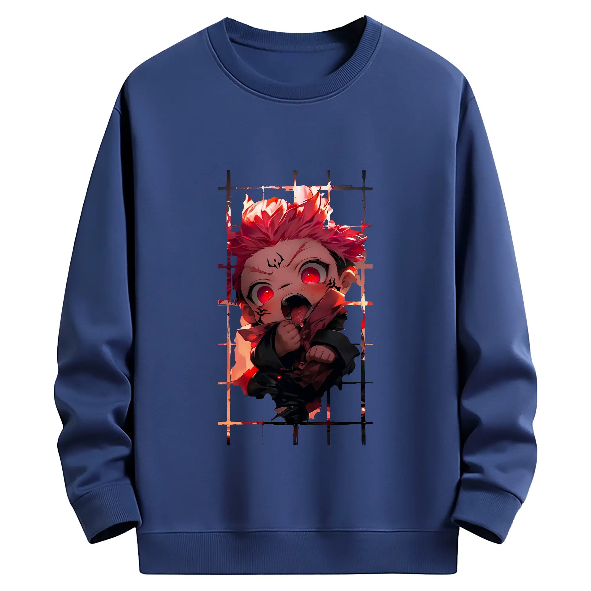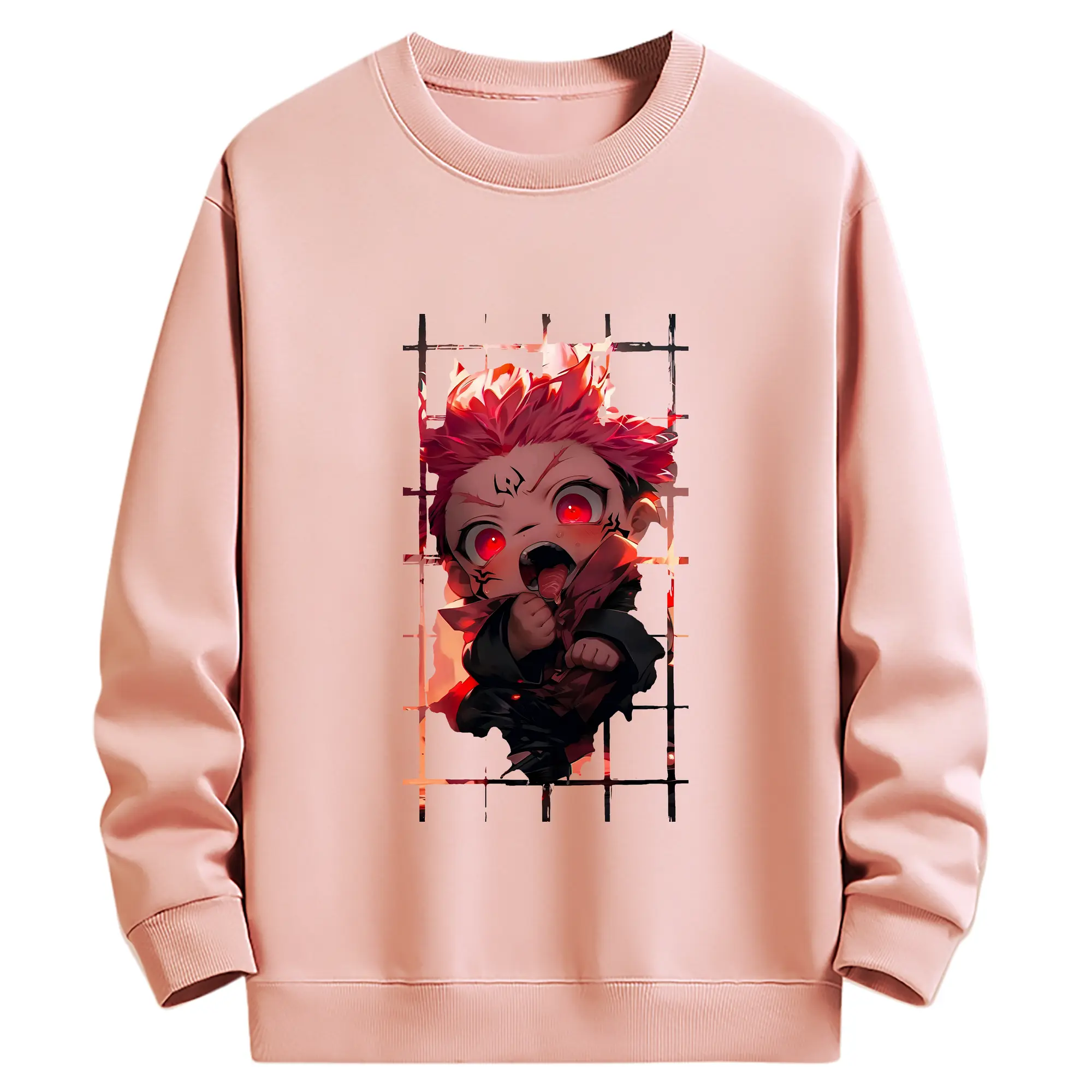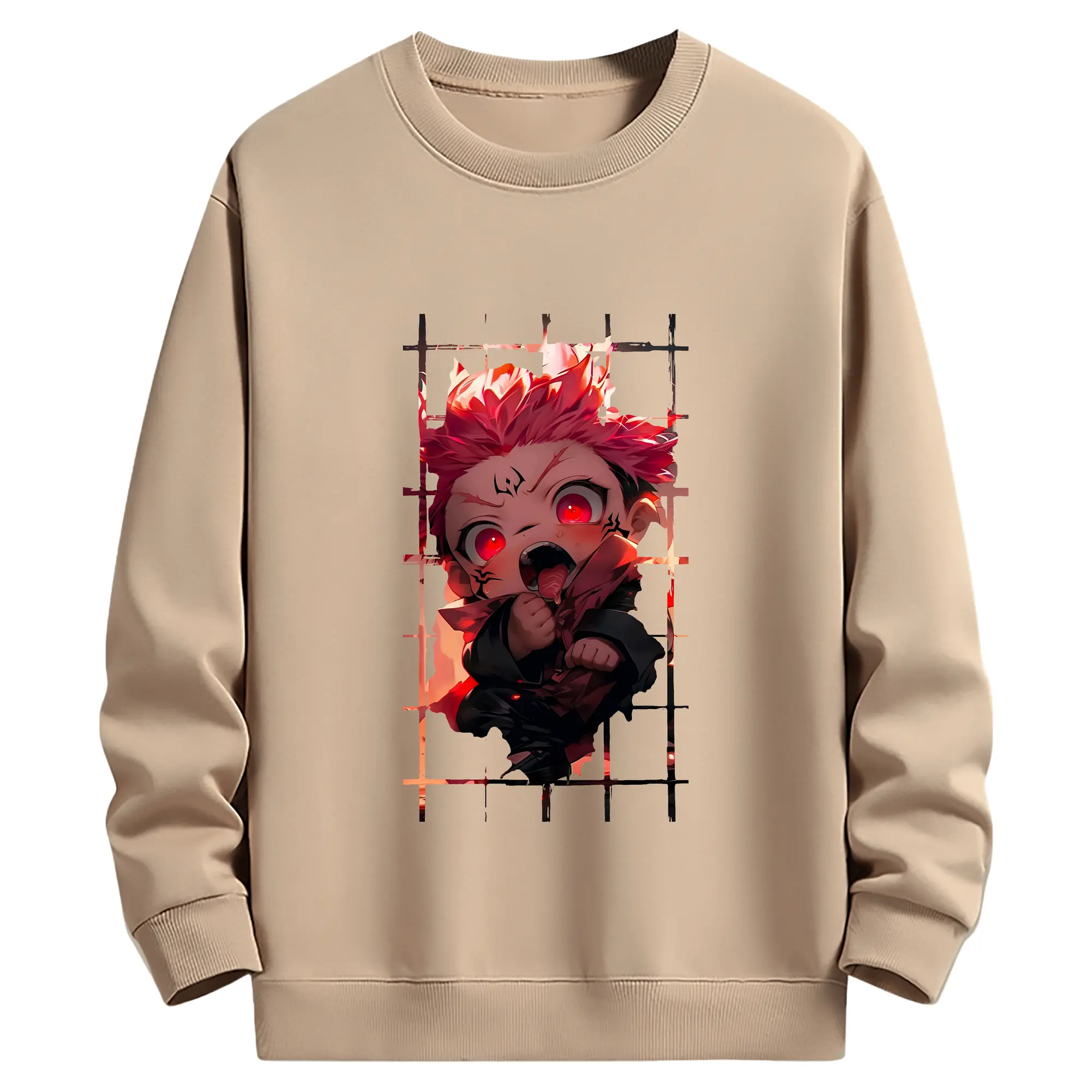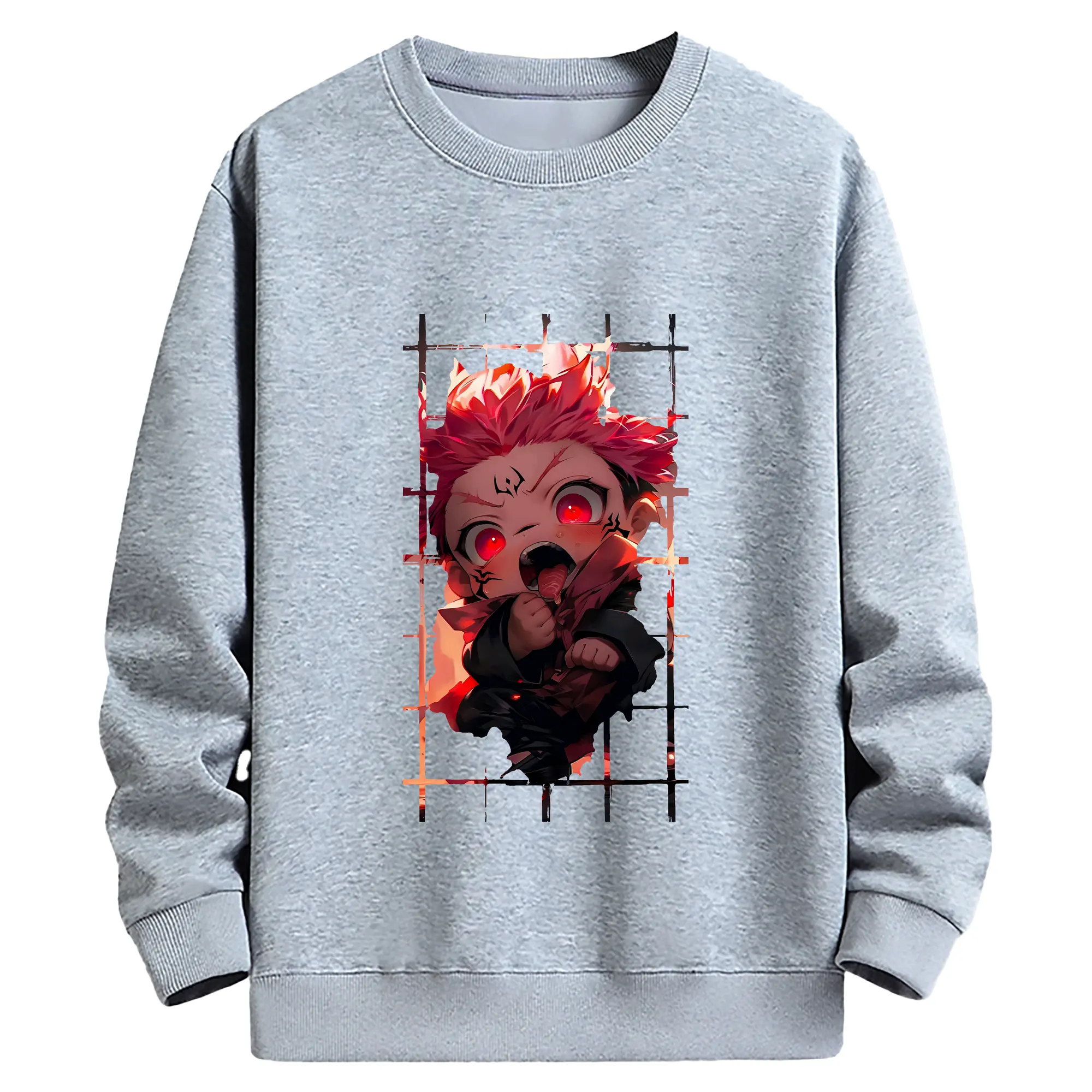 呪術廻戦 グッズ,両面宿儺 - 薄手 クルーネック スウェット 裏毛260g · ポリエステル 春秋向け カジュアル 男女兼用 · トレーナー デイリー スポーツ 散歩に最適