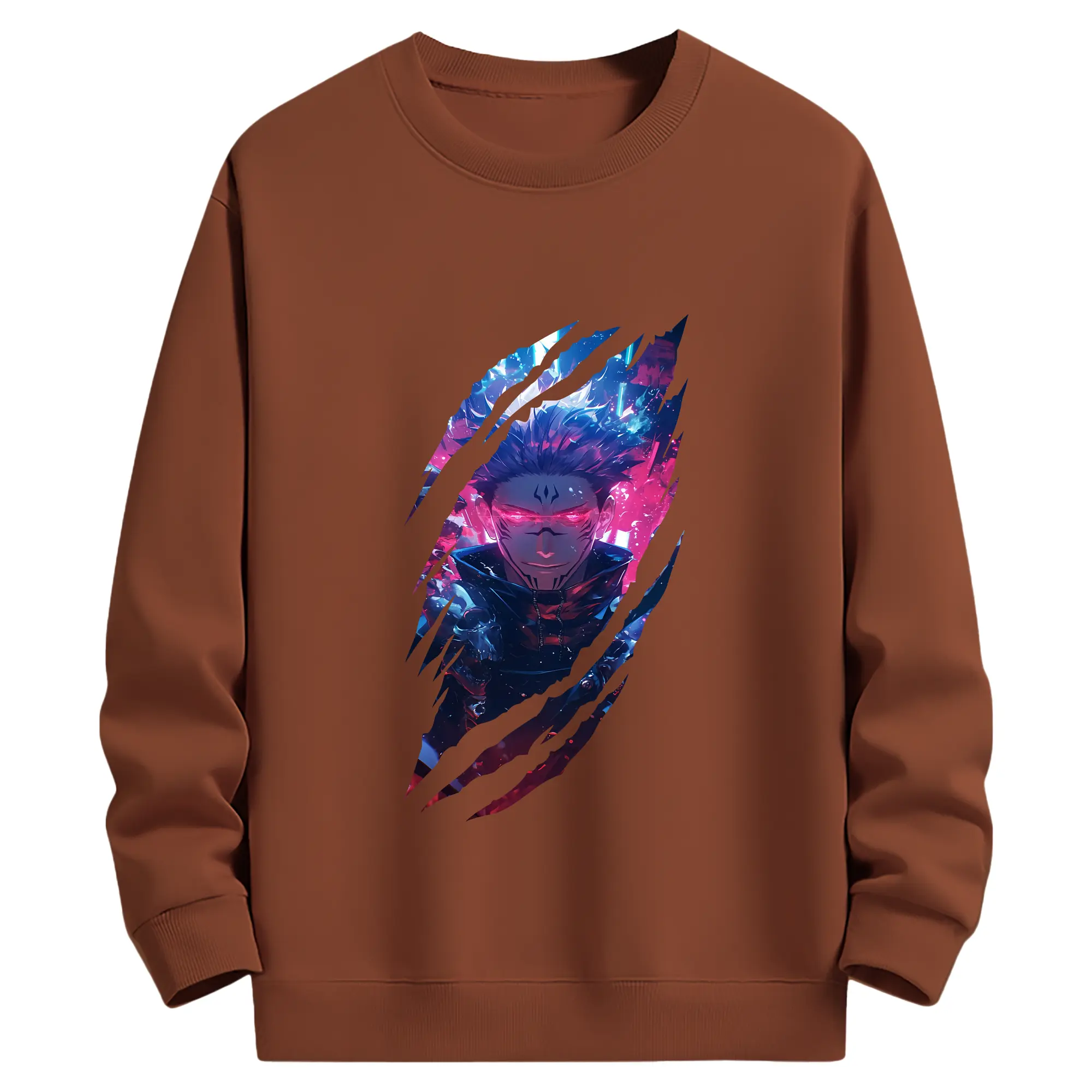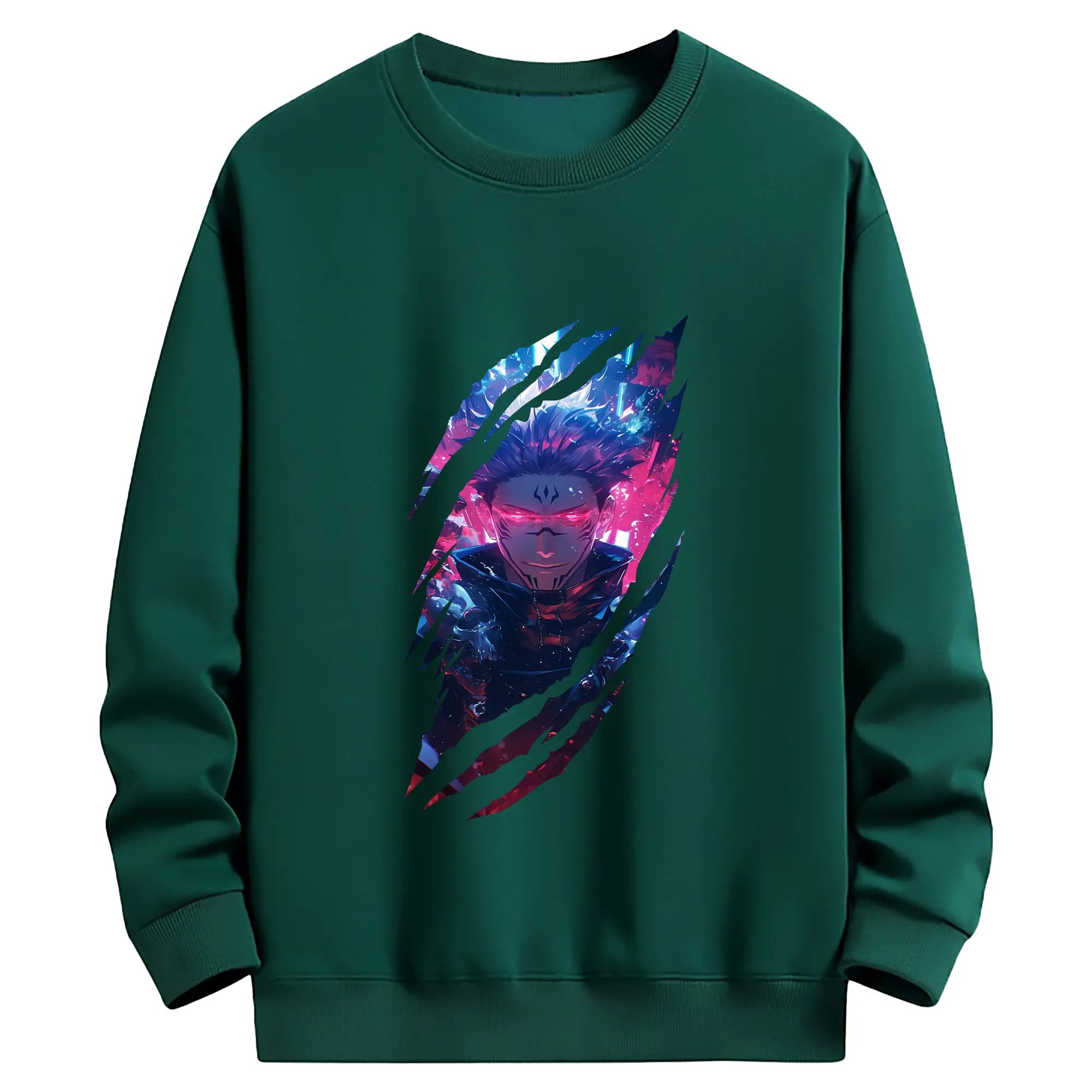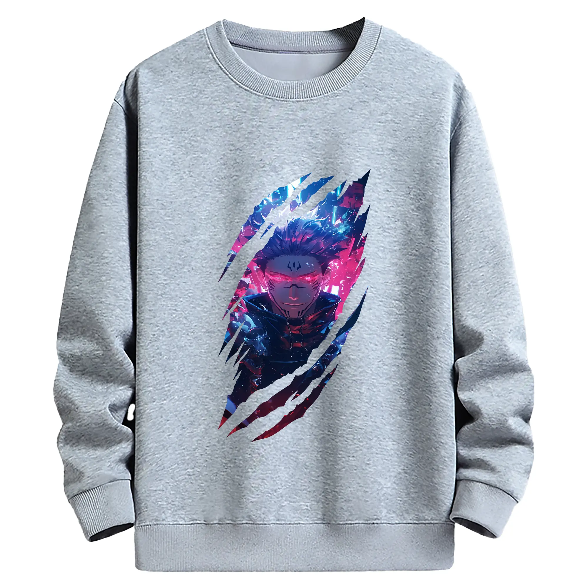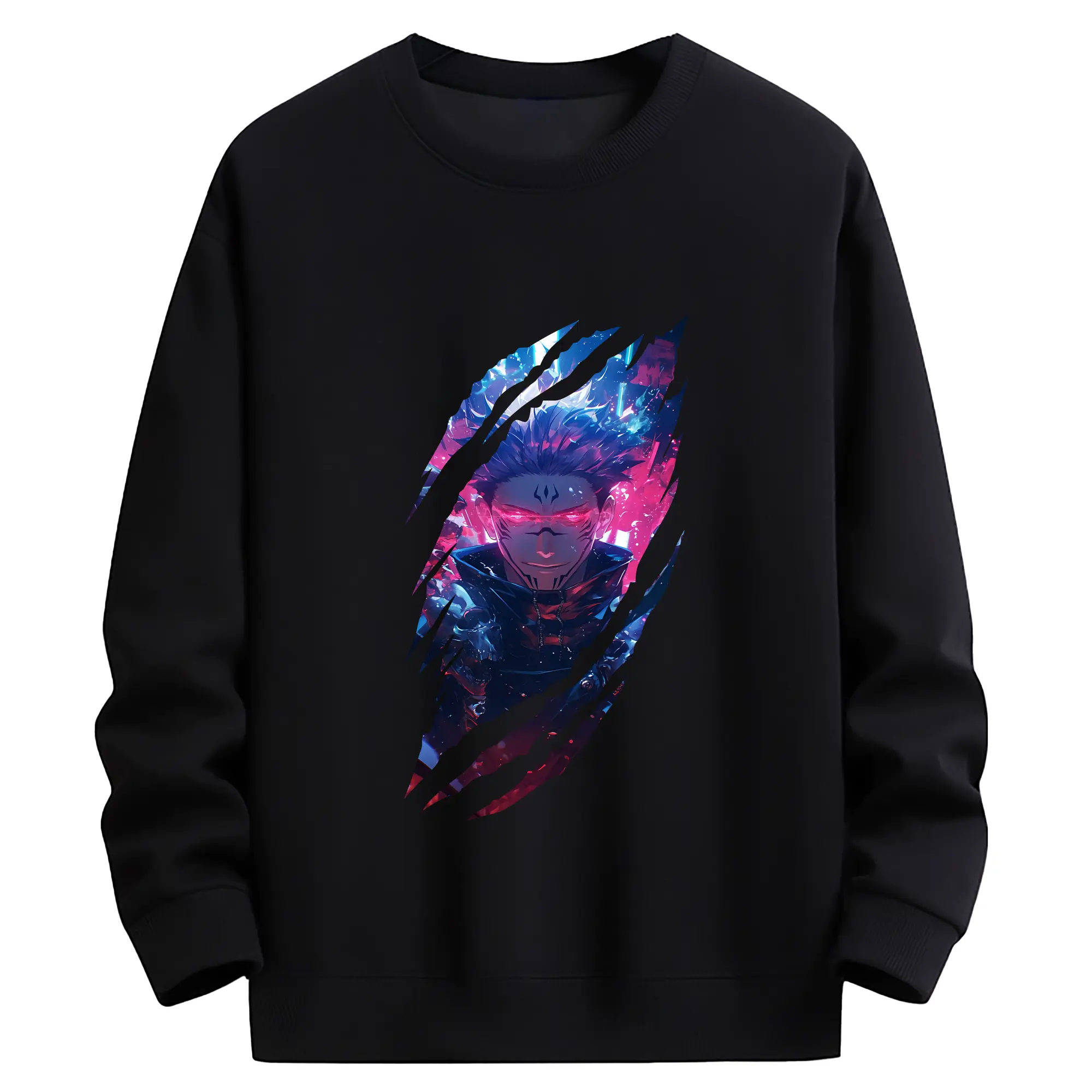 呪術廻戦 グッズ,両面宿儺 - 薄手 クルーネック スウェット 裏毛260g · ポリエステル 春秋向け カジュアル 男女兼用 · トレーナー デイリー スポーツ 散歩に最適