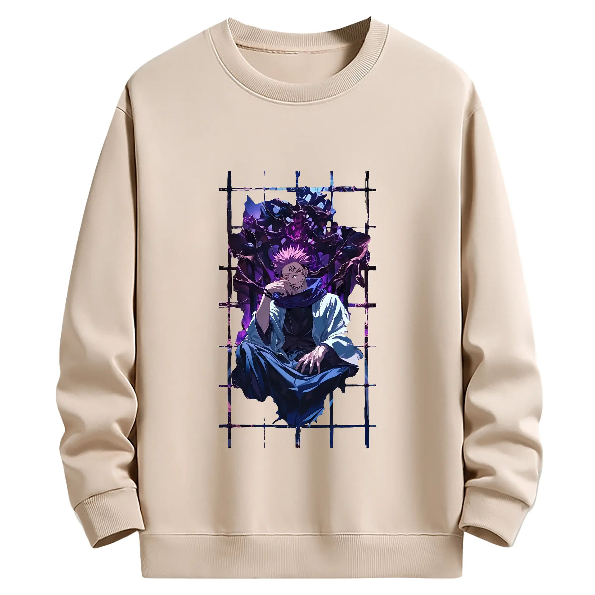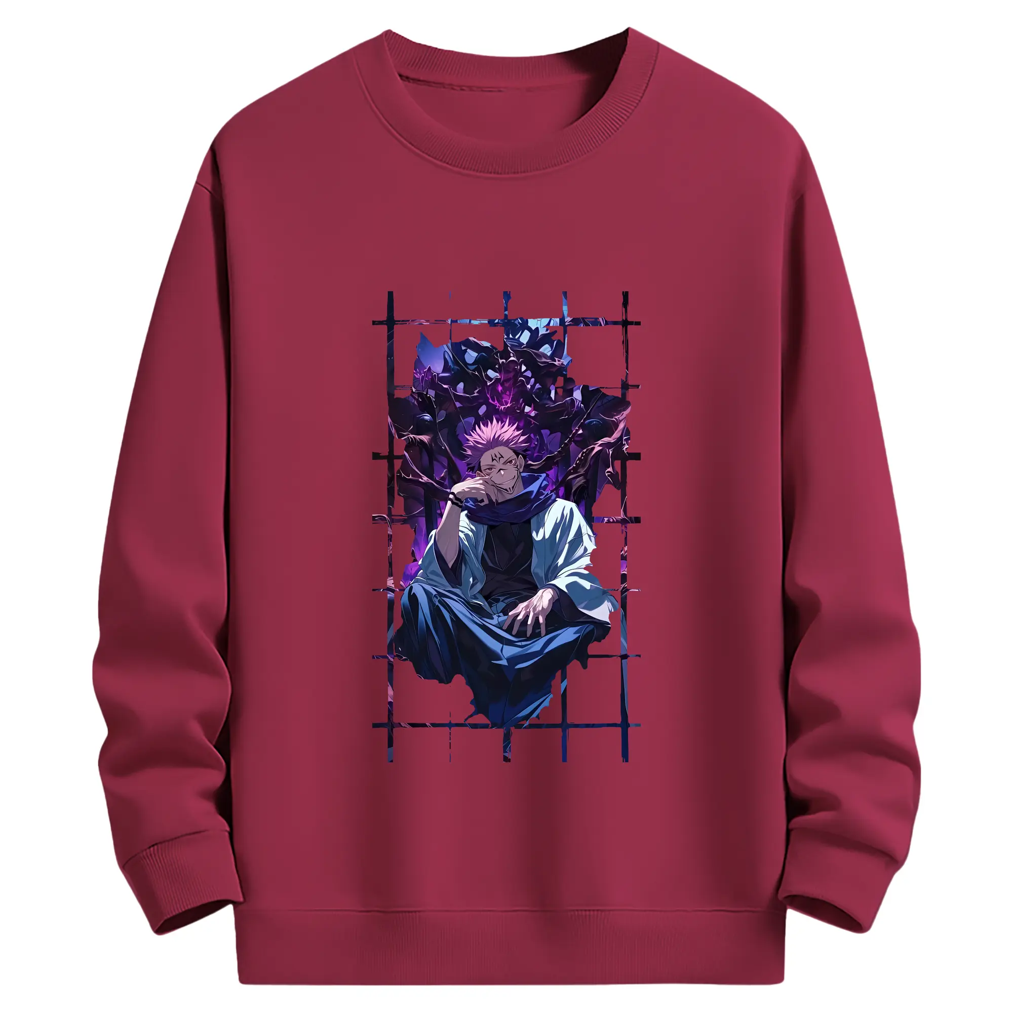 呪術廻戦 グッズ,両面宿儺 - 薄手 クルーネック スウェット 裏毛260g · ポリエステル 春秋向け カジュアル 男女兼用 · トレーナー デイリー スポーツ 散歩に最適