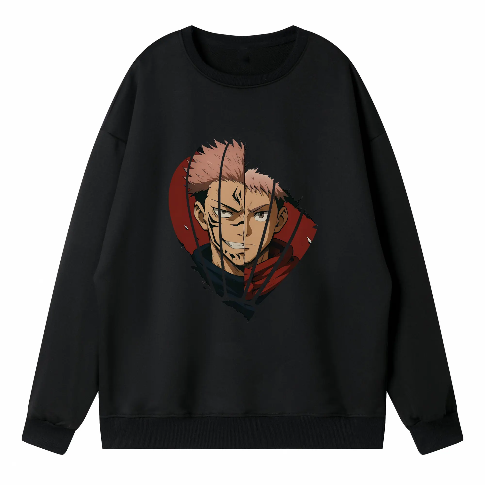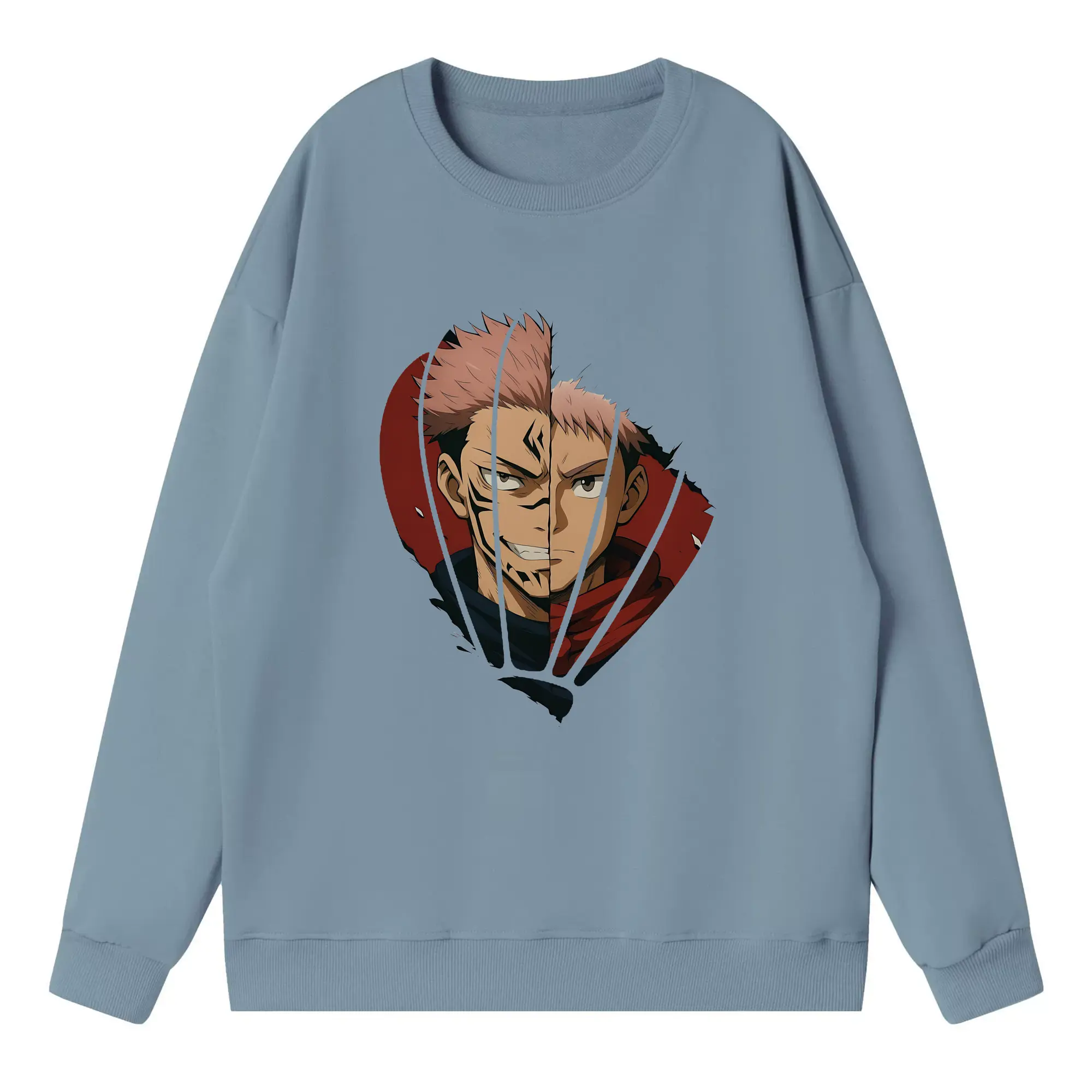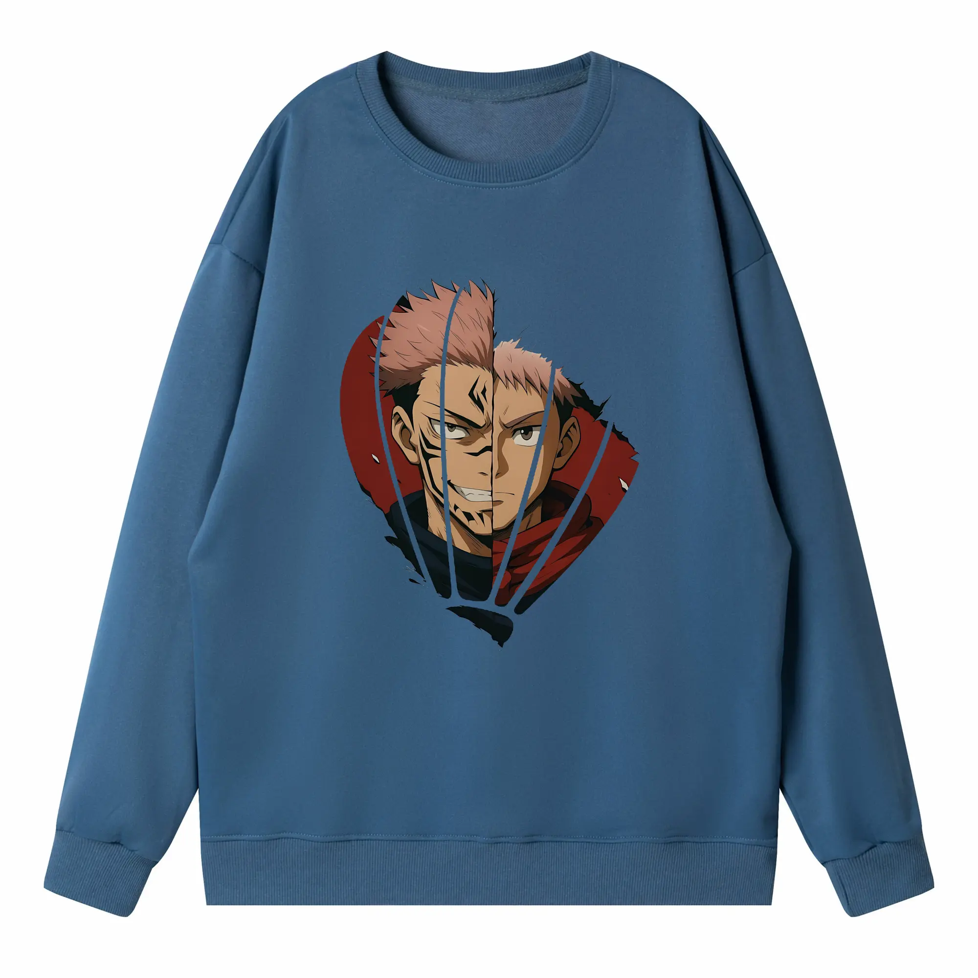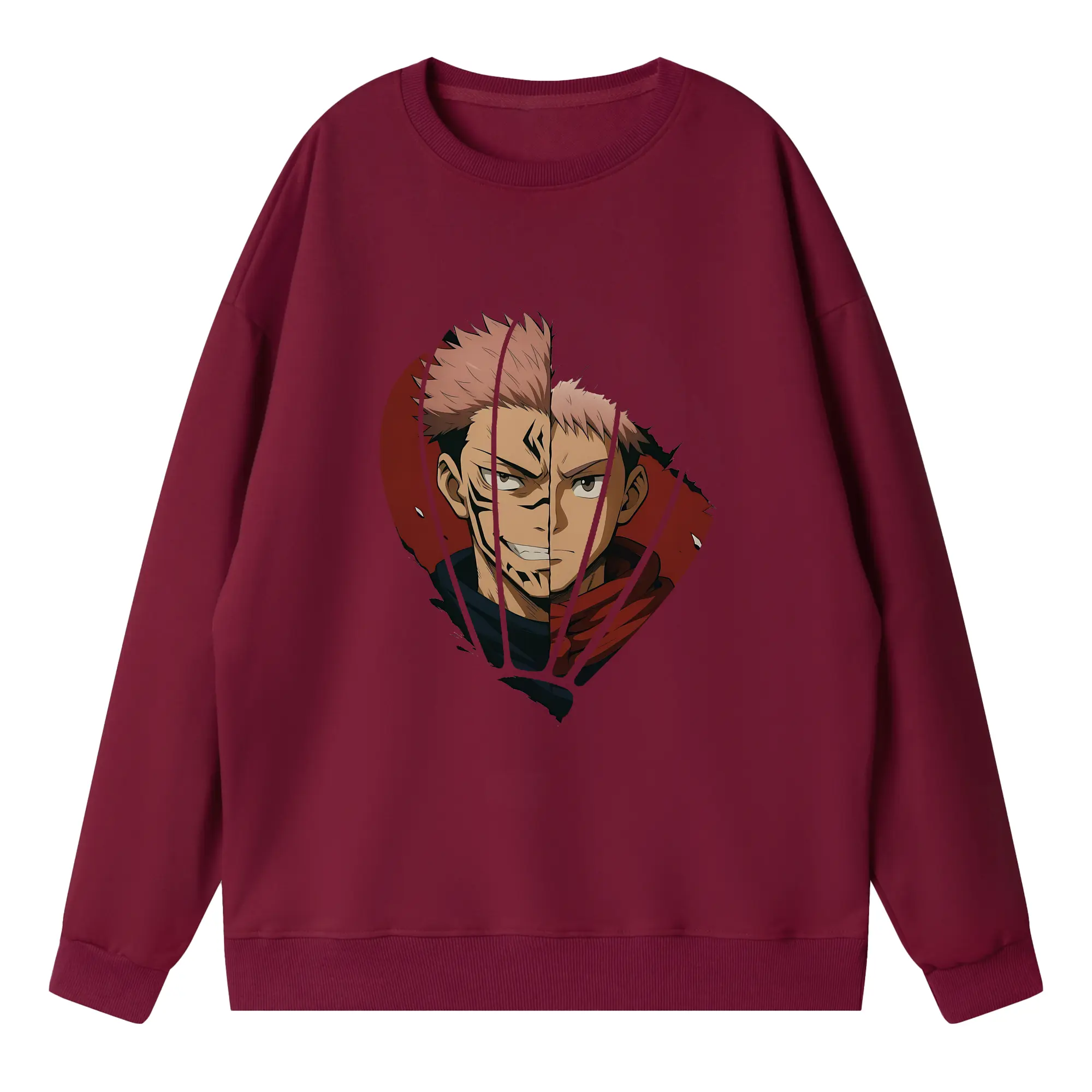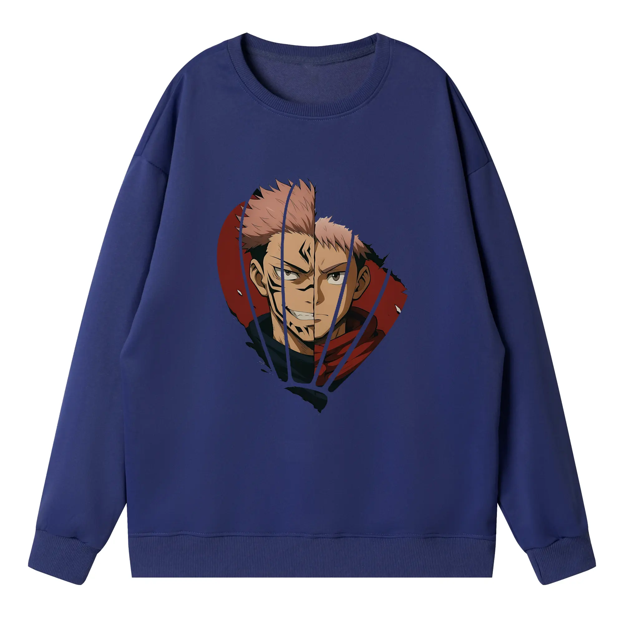 呪術廻戦 グッズ,両面宿儺 - 高品質 クルーネック スウェット ・ コットン59% ポリエステル41% ・ ユニセックス 長袖 トレーナー ・ カジュアル デイリー スポーツ 散歩用