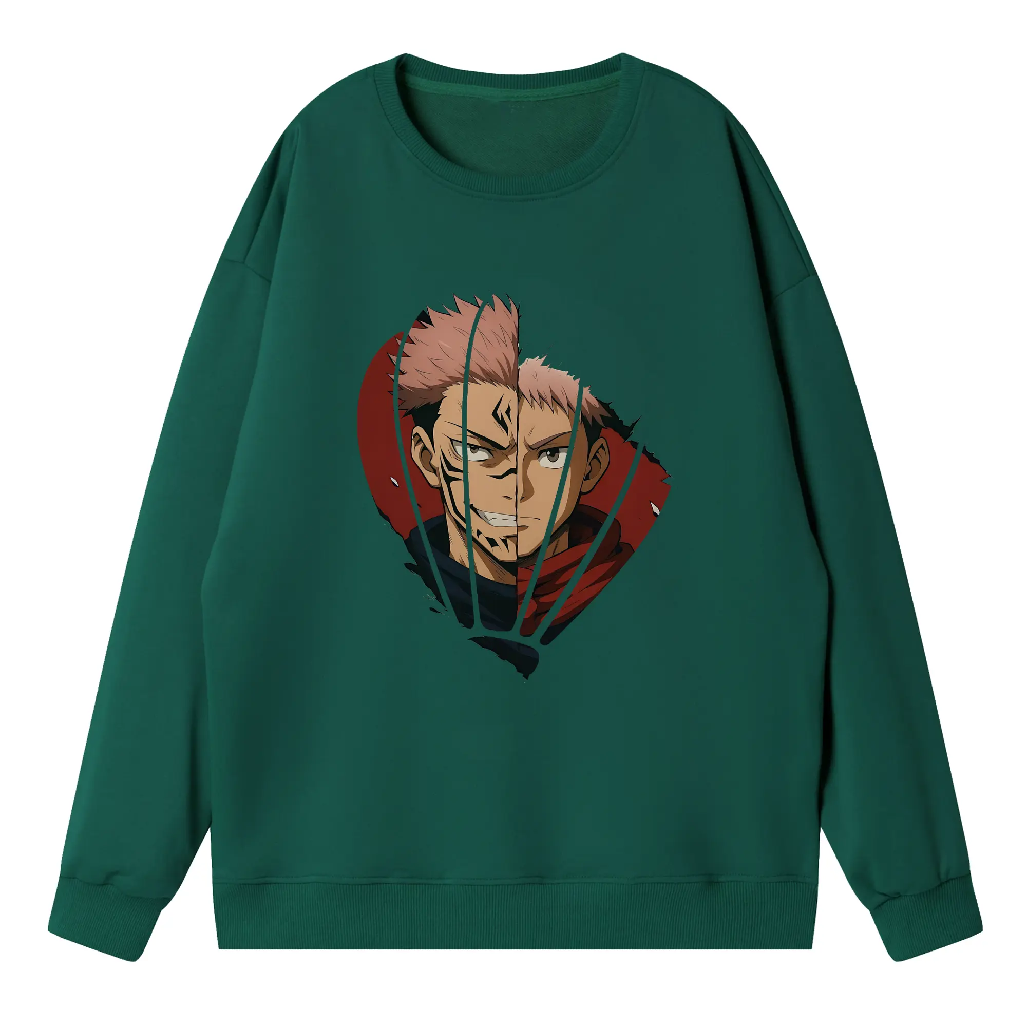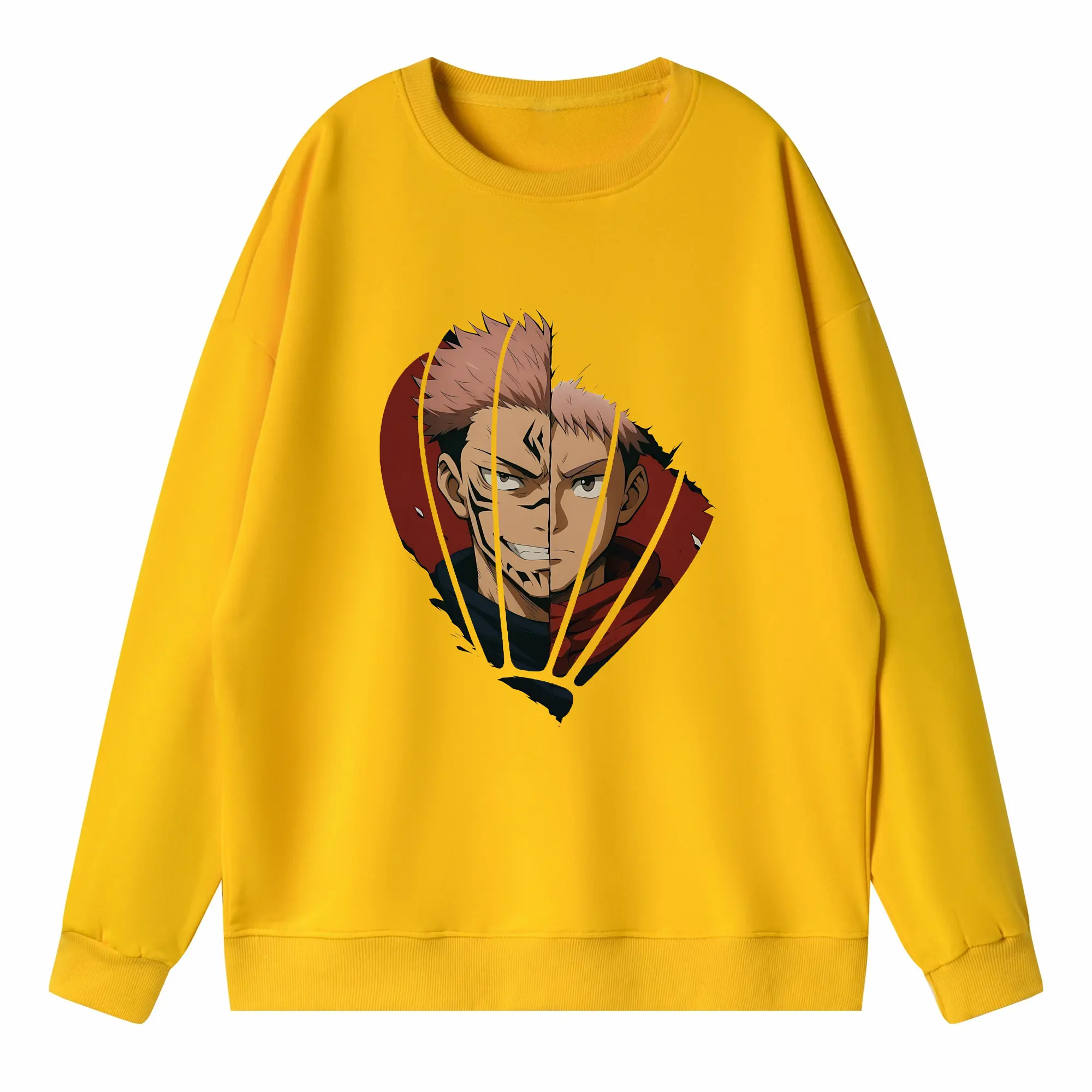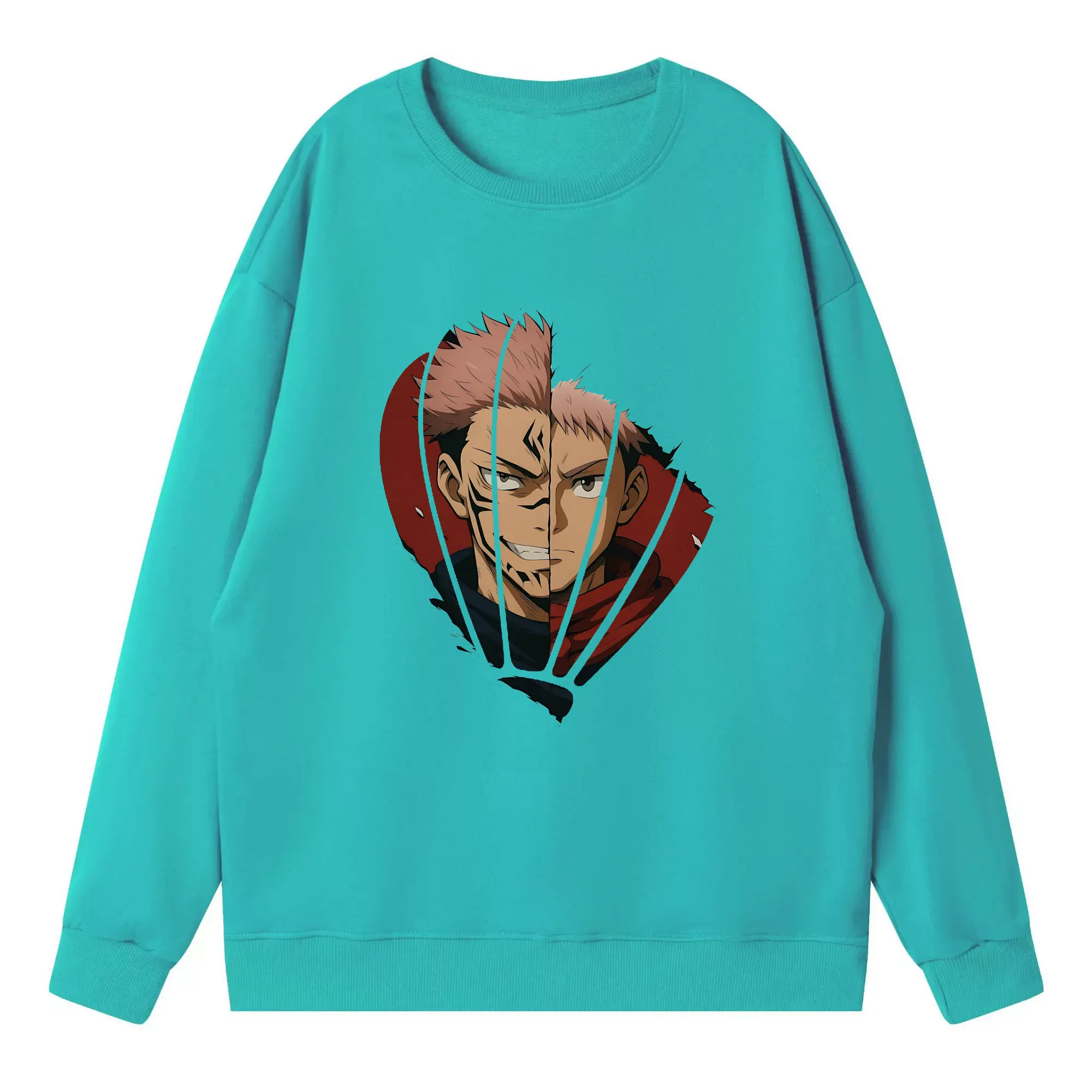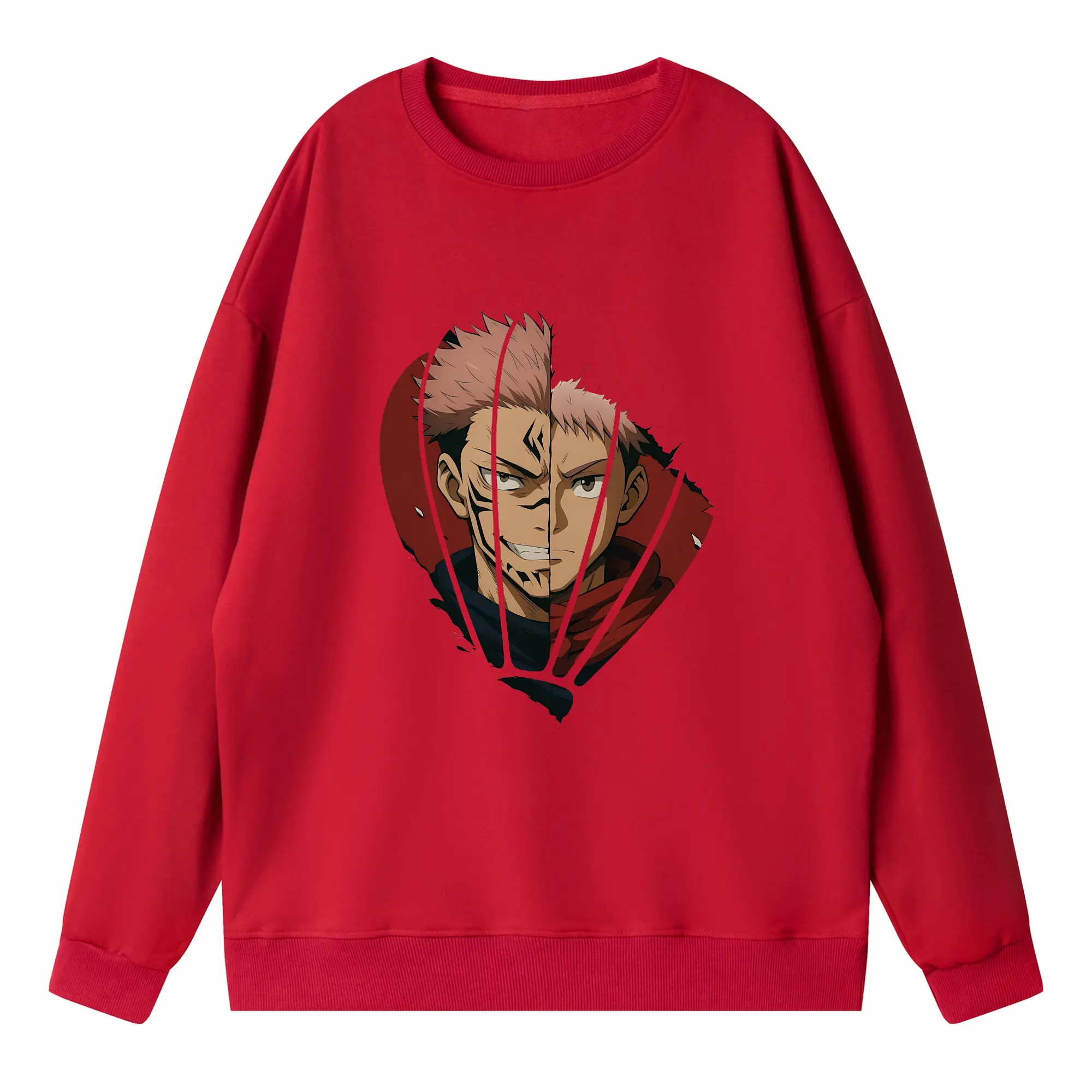 呪術廻戦 グッズ,両面宿儺 - 高品質 クルーネック スウェット ・ コットン59% ポリエステル41% ・ ユニセックス 長袖 トレーナー ・ カジュアル デイリー スポーツ 散歩用