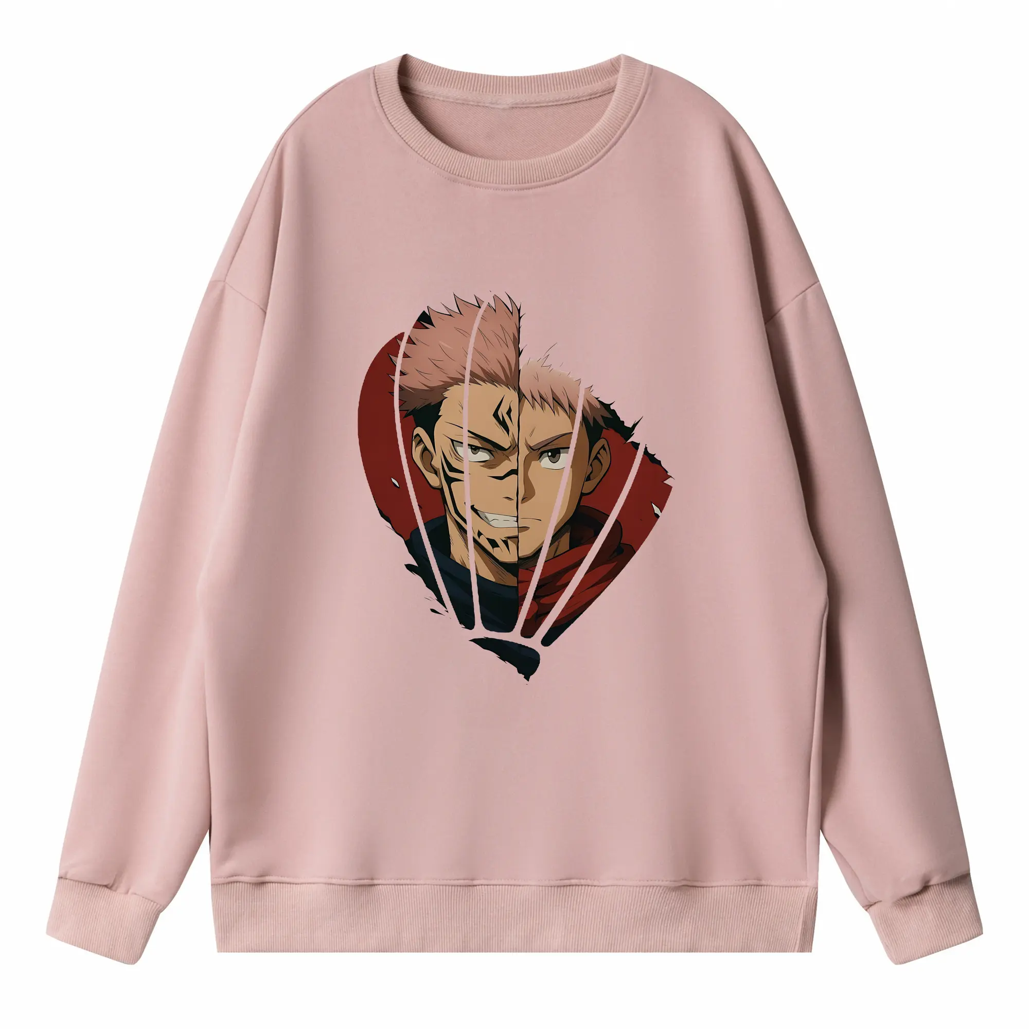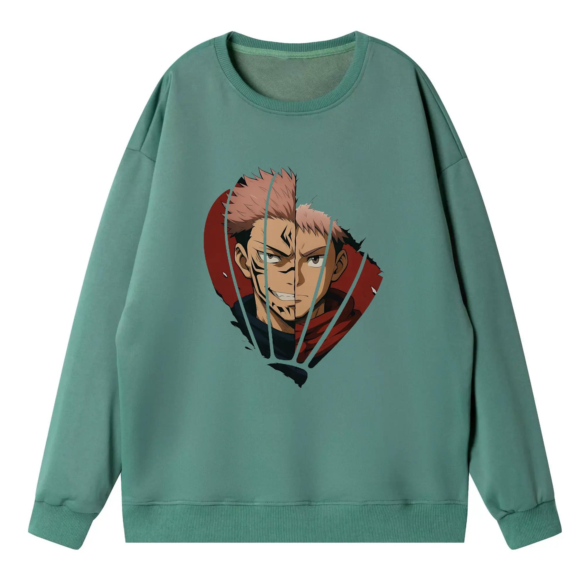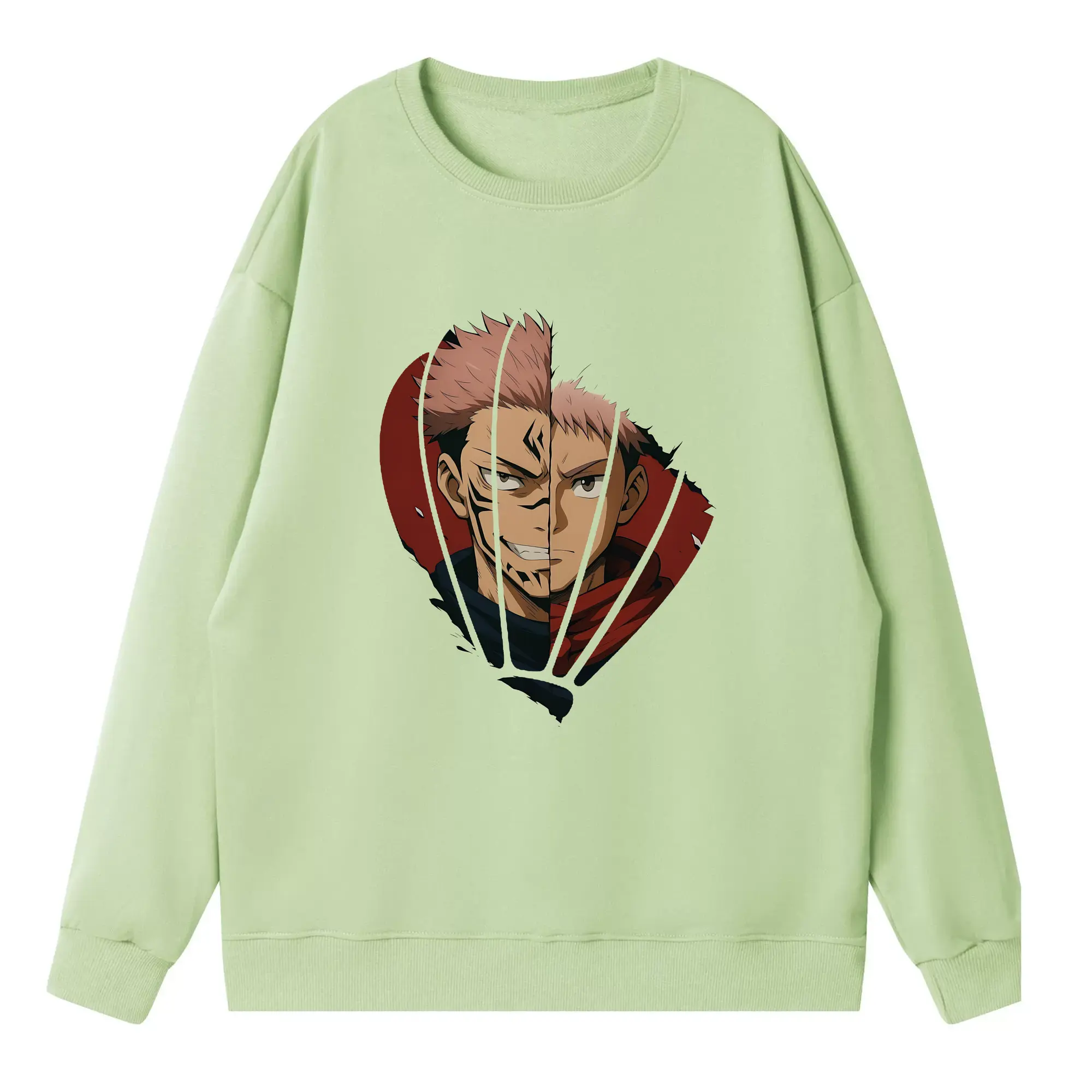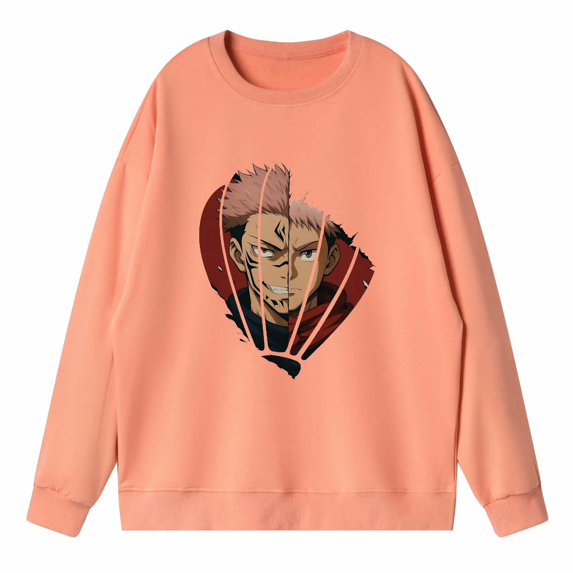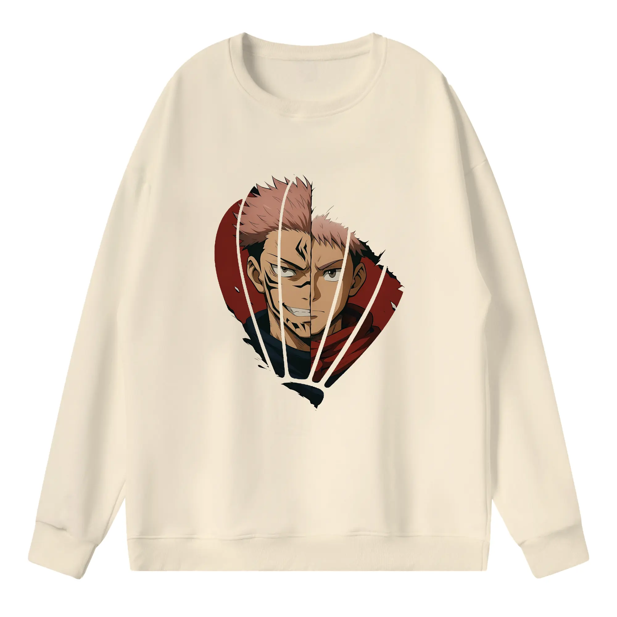 呪術廻戦 グッズ,両面宿儺 - 高品質 クルーネック スウェット ・ コットン59% ポリエステル41% ・ ユニセックス 長袖 トレーナー ・ カジュアル デイリー スポーツ 散歩用