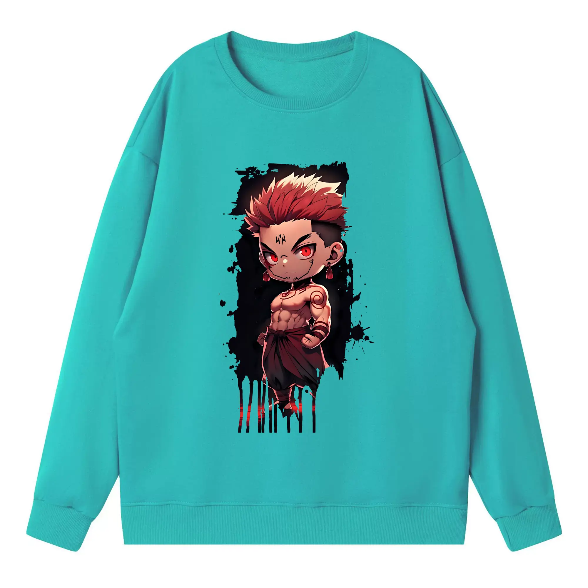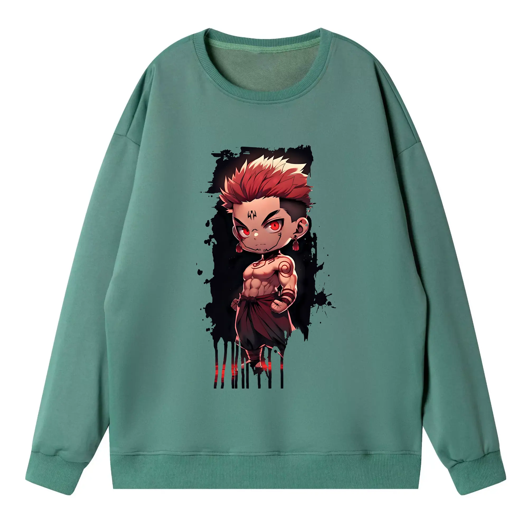 呪術廻戦 グッズ,両面宿儺 - 高品質 クルーネック スウェット ・ コットン59% ポリエステル41% ・ ユニセックス 長袖 トレーナー ・ カジュアル デイリー スポーツ 散歩用