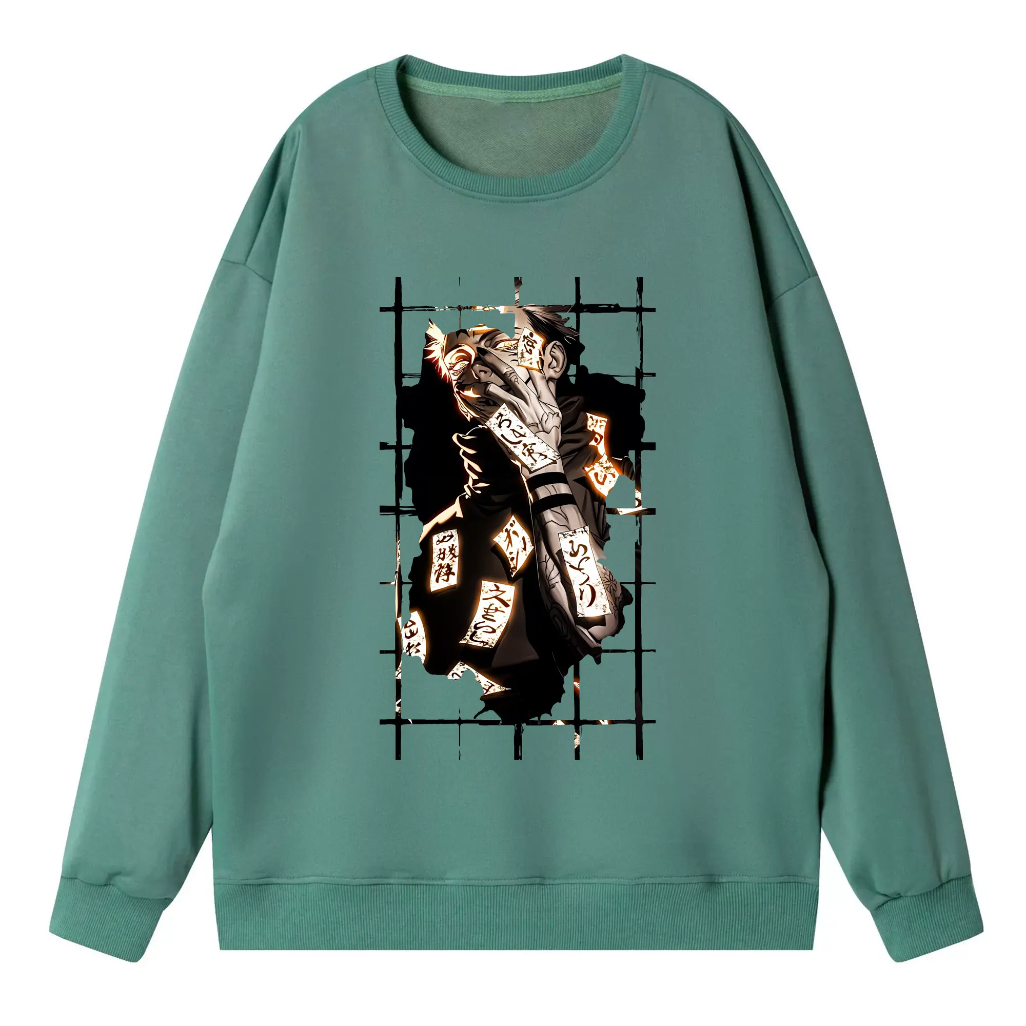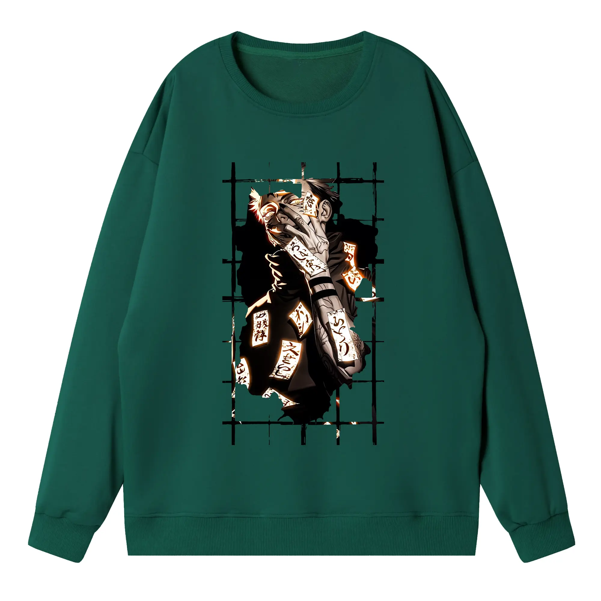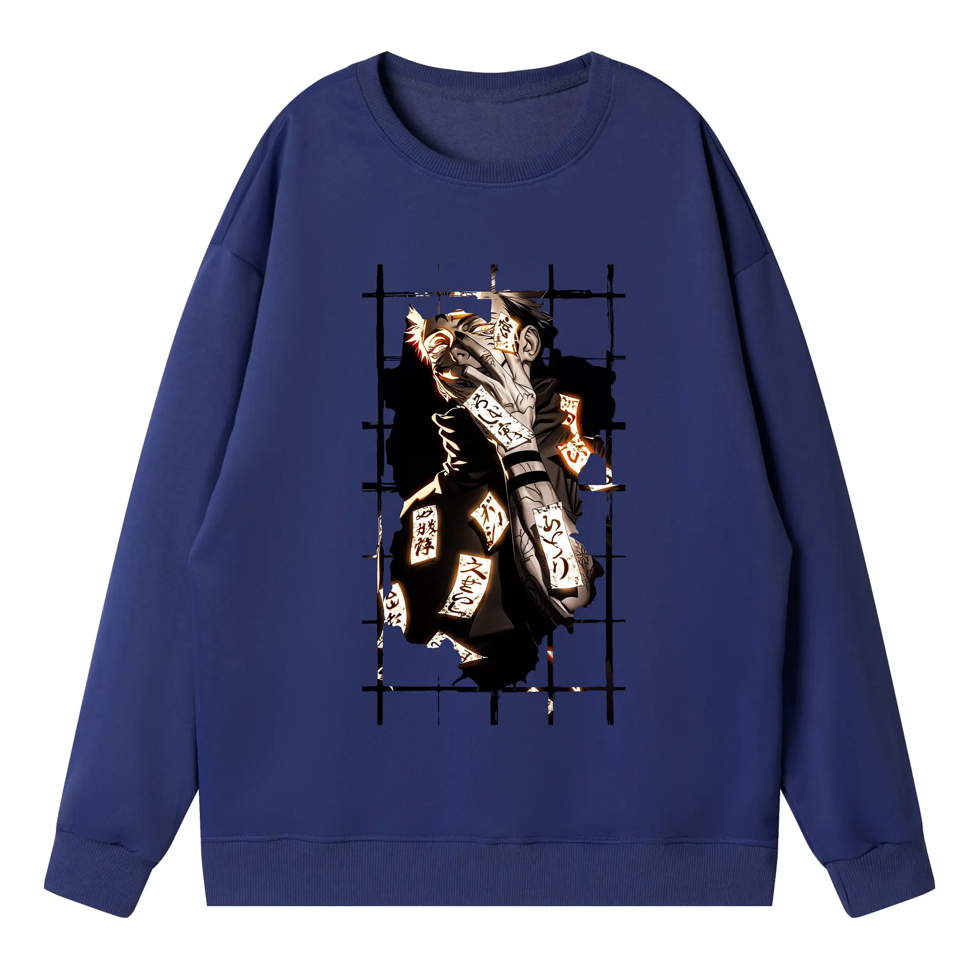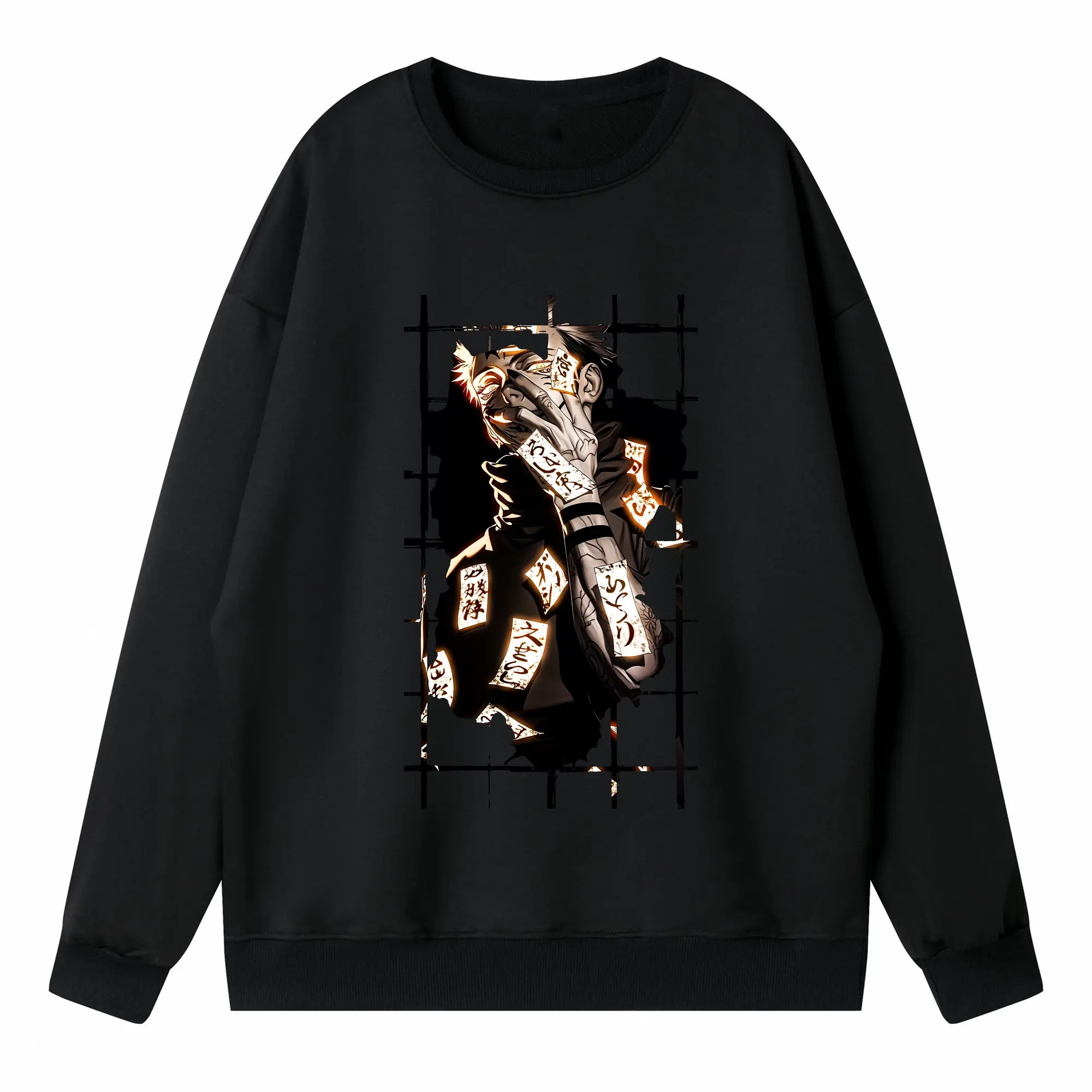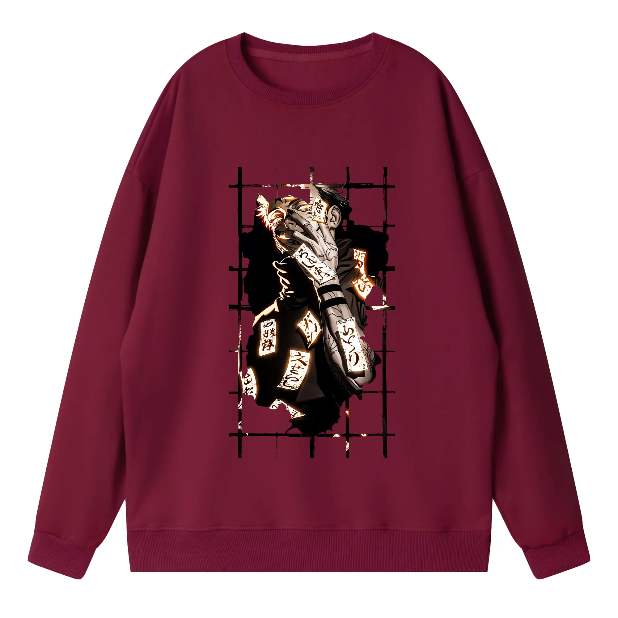 呪術廻戦 グッズ,両面宿儺 - 高品質 クルーネック スウェット ・ コットン59% ポリエステル41% ・ ユニセックス 長袖 トレーナー ・ カジュアル デイリー スポーツ 散歩用