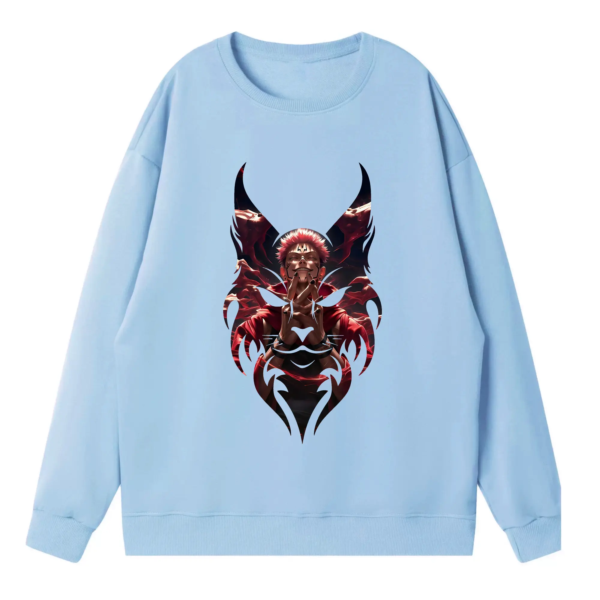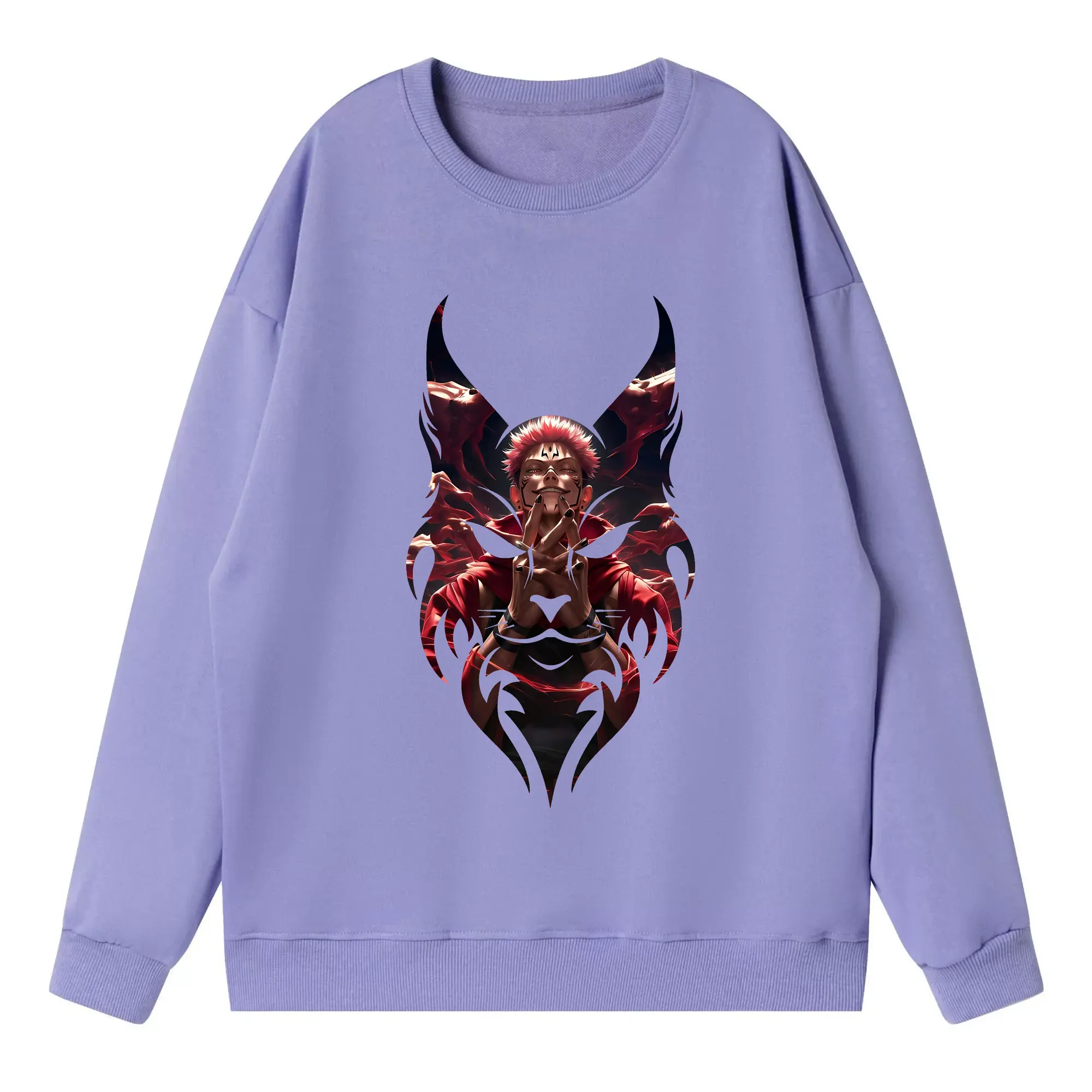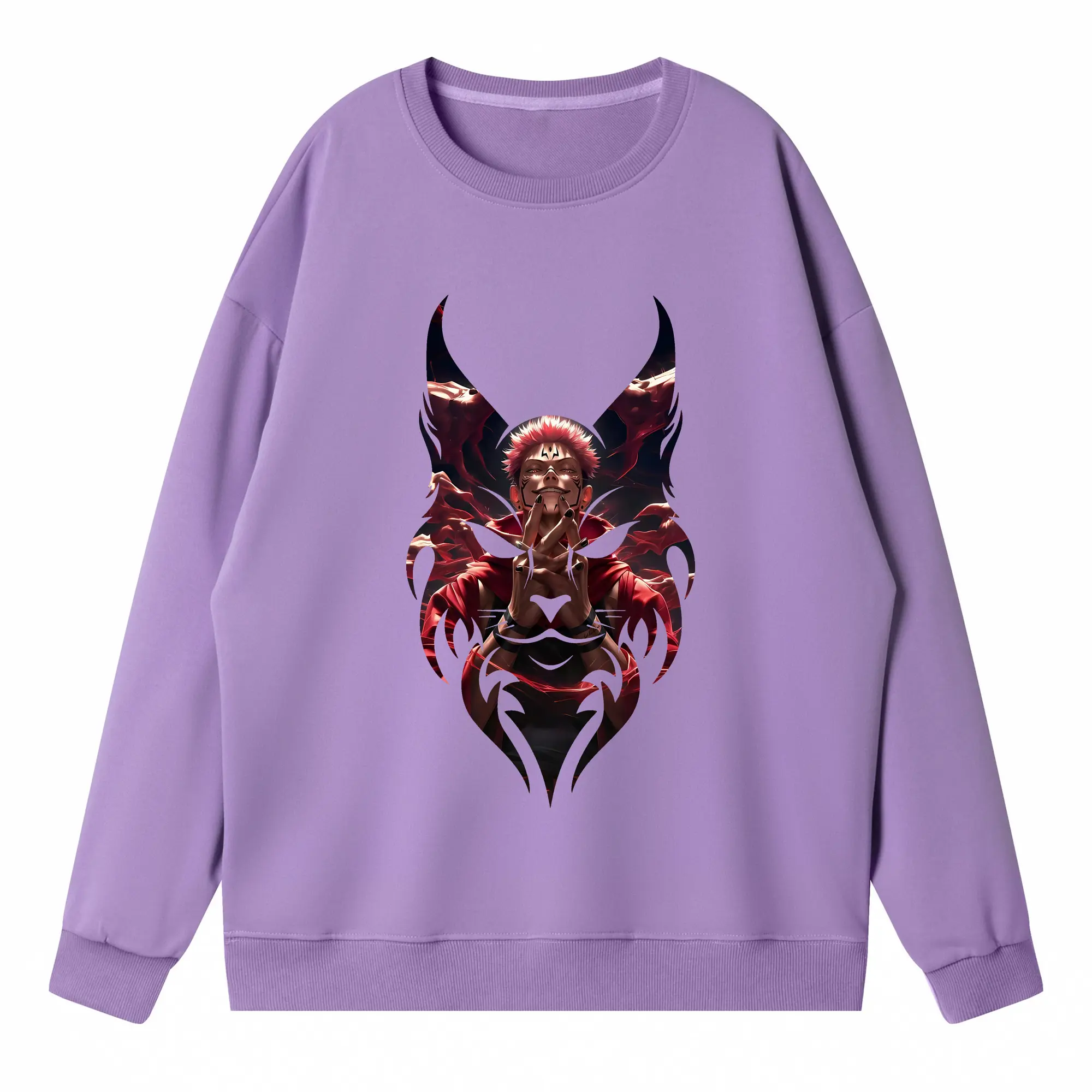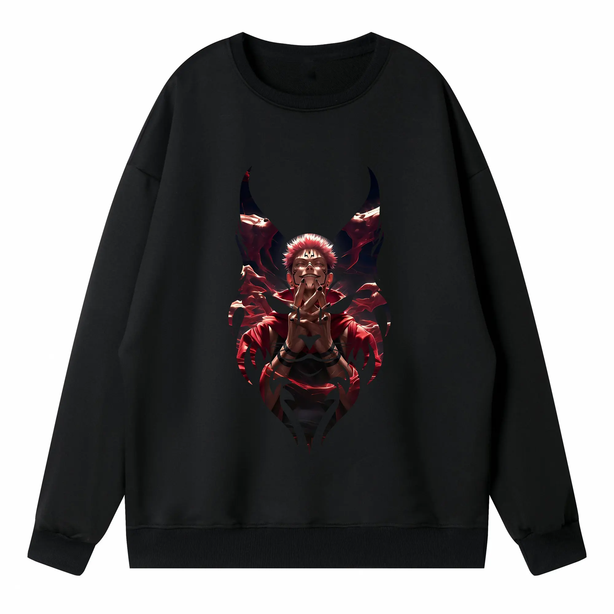 呪術廻戦 グッズ,両面宿儺 - 高品質 クルーネック スウェット ・ コットン59% ポリエステル41% ・ ユニセックス 長袖 トレーナー ・ カジュアル デイリー スポーツ 散歩用