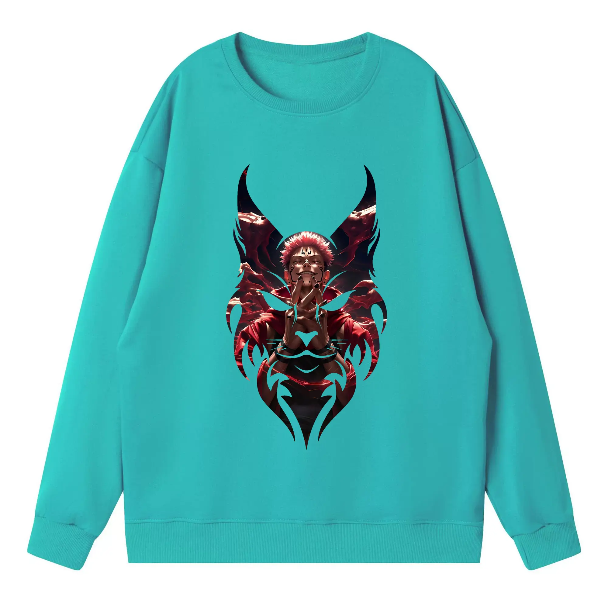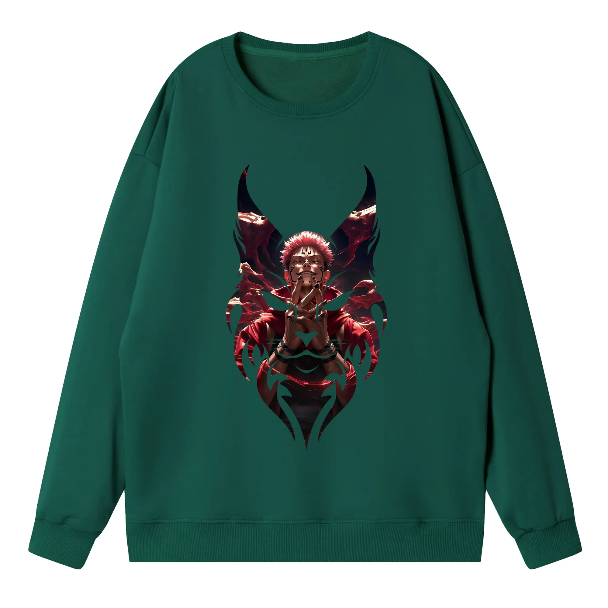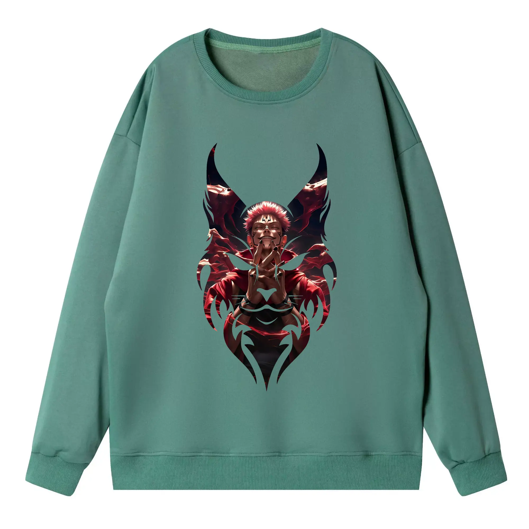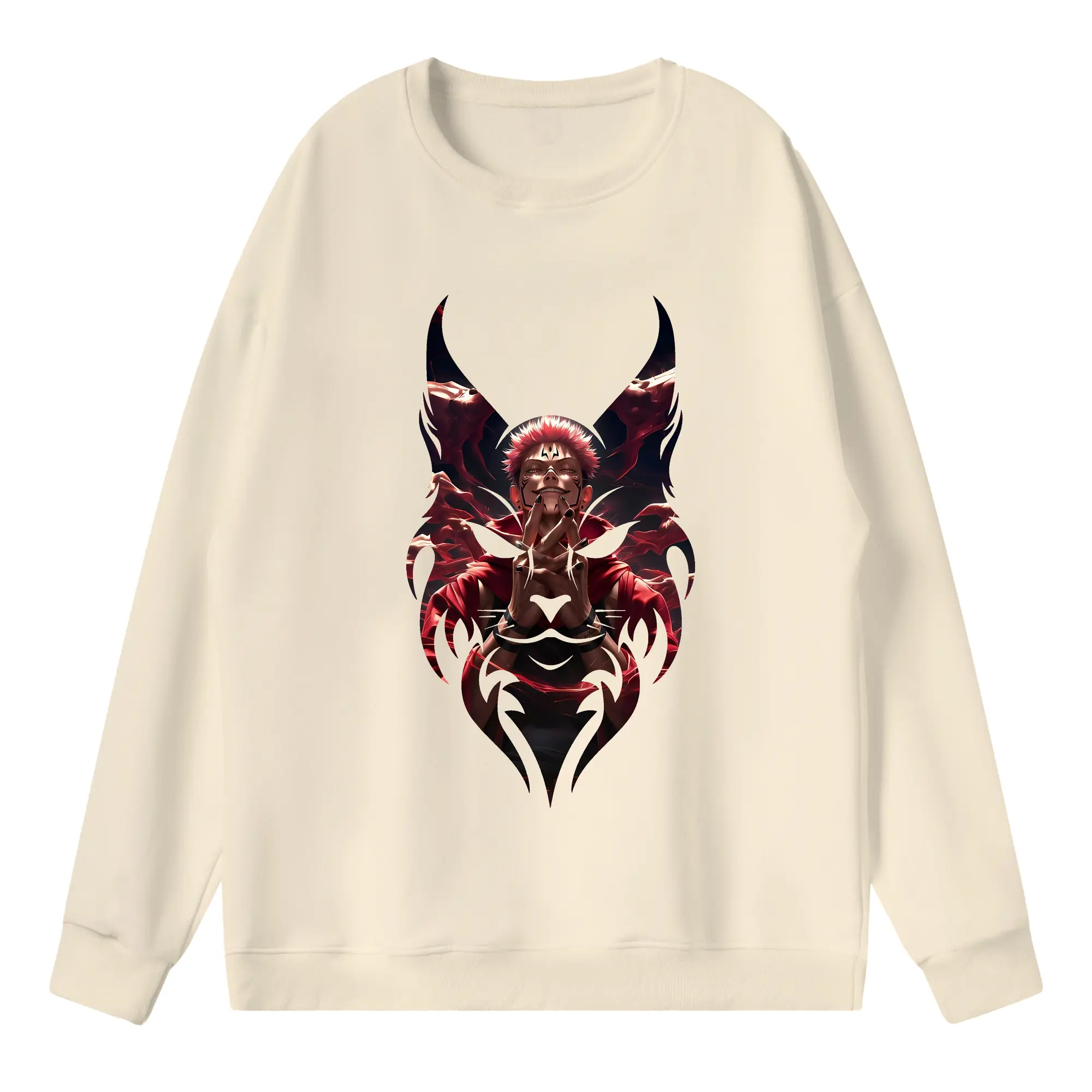 呪術廻戦 グッズ,両面宿儺 - 高品質 クルーネック スウェット ・ コットン59% ポリエステル41% ・ ユニセックス 長袖 トレーナー ・ カジュアル デイリー スポーツ 散歩用