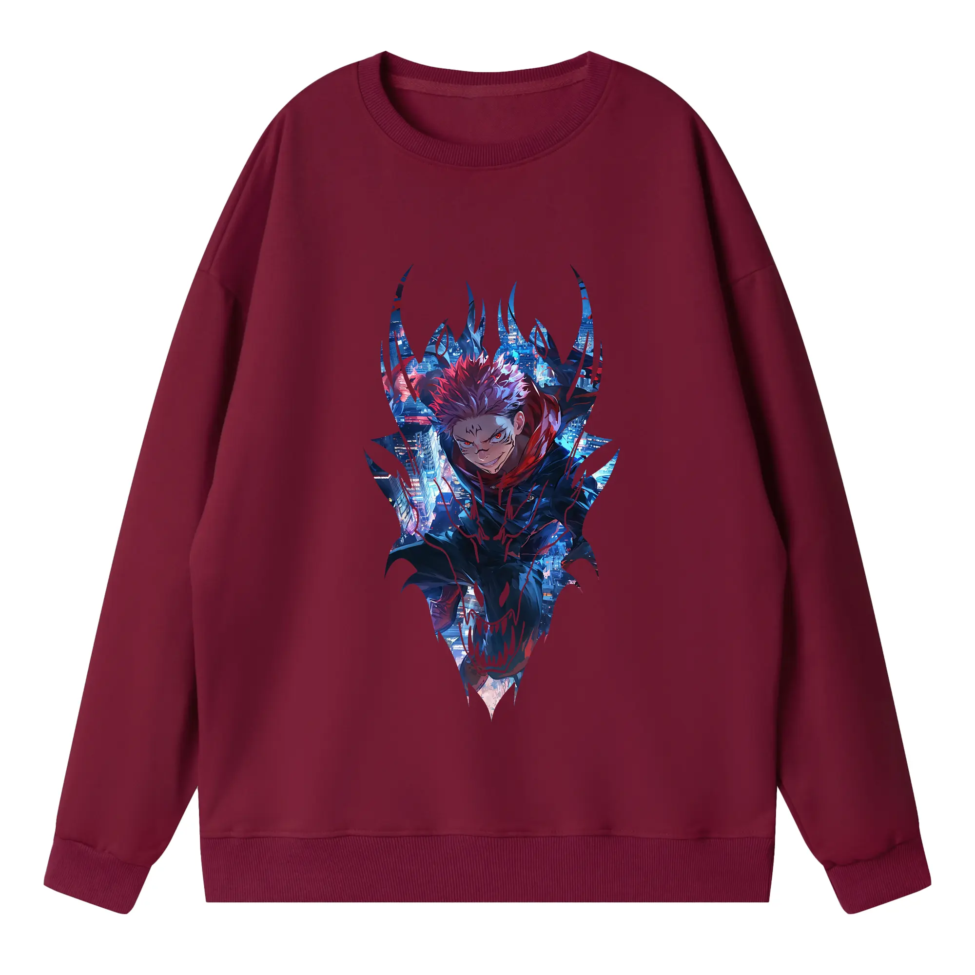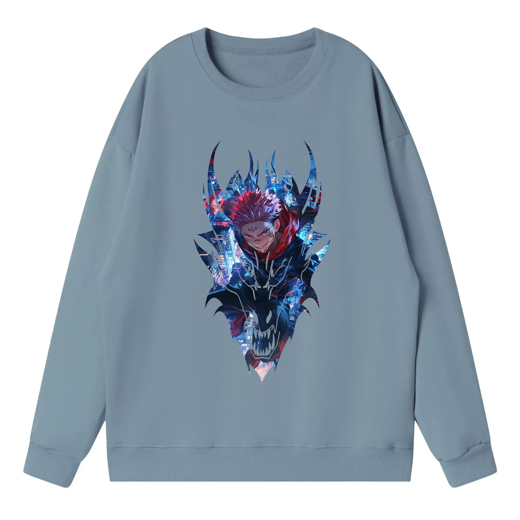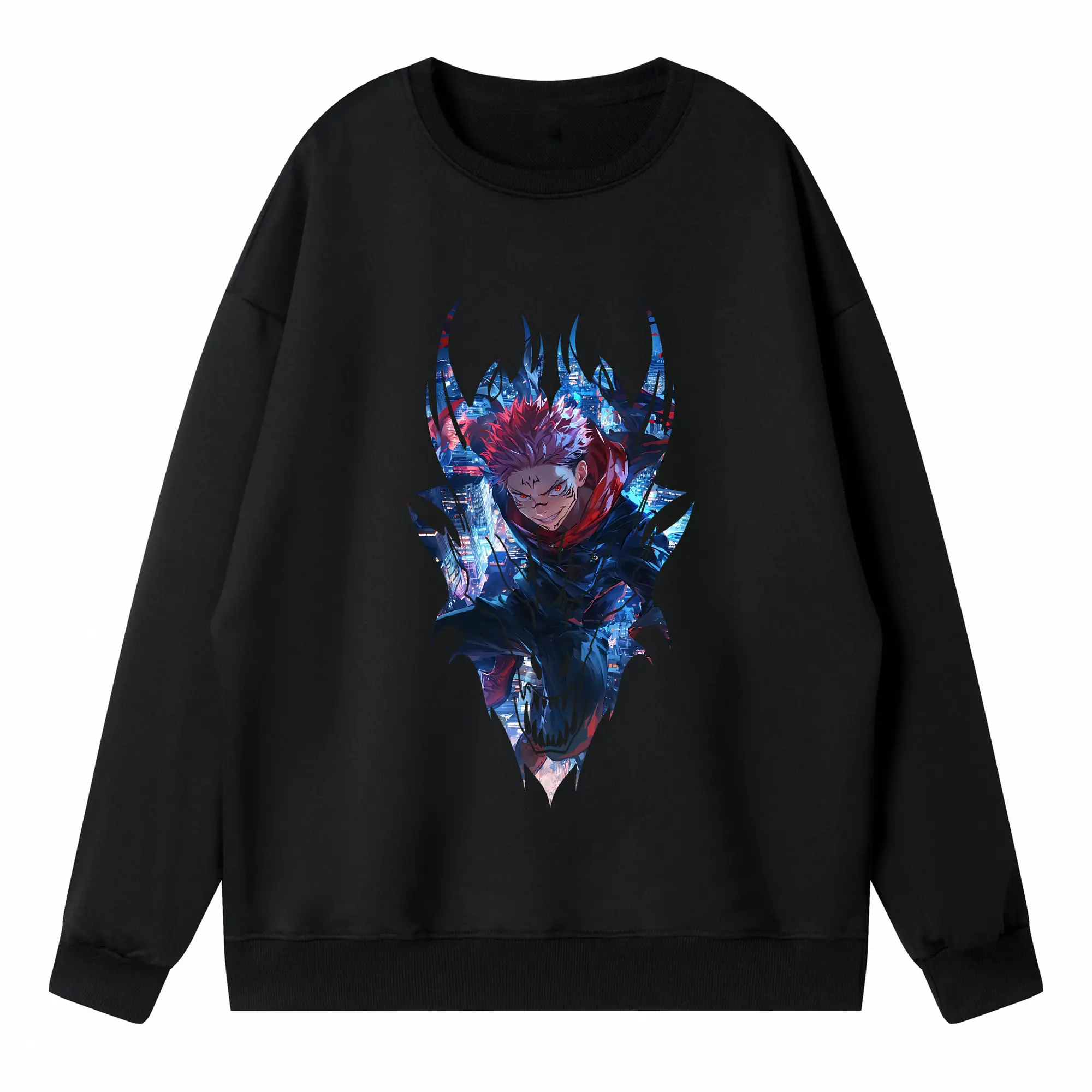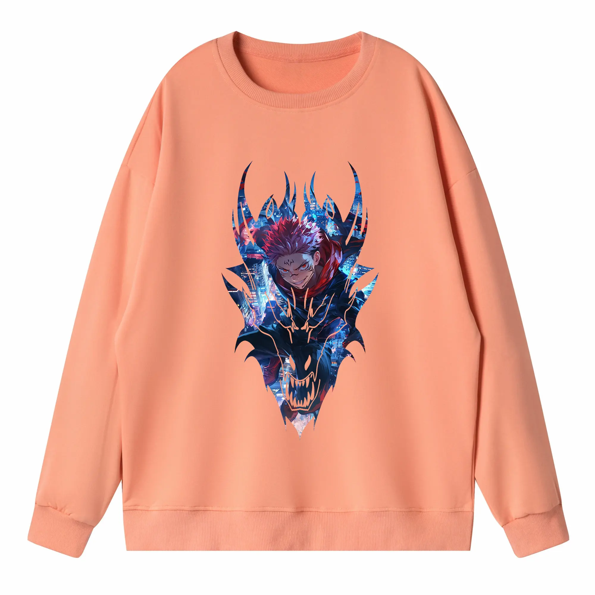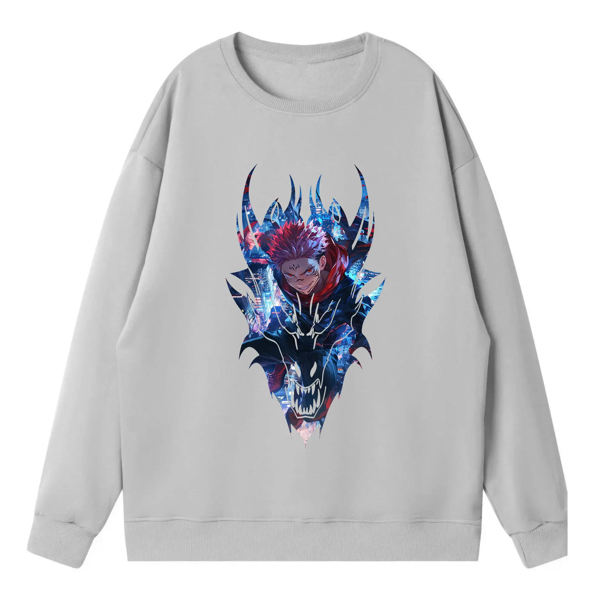 呪術廻戦 グッズ,両面宿儺 - 高品質 クルーネック スウェット ・ コットン59% ポリエステル41% ・ ユニセックス 長袖 トレーナー ・ カジュアル デイリー スポーツ 散歩用