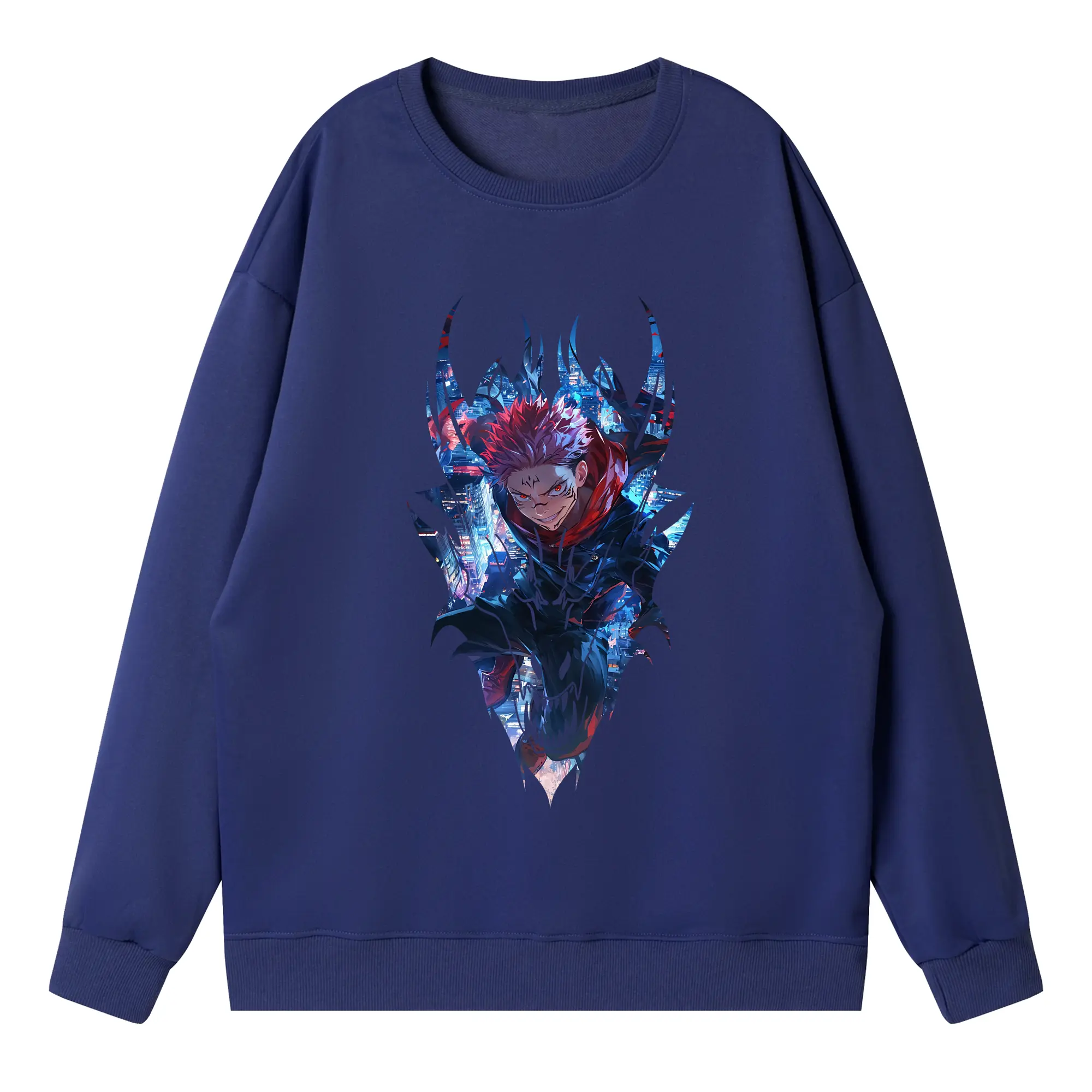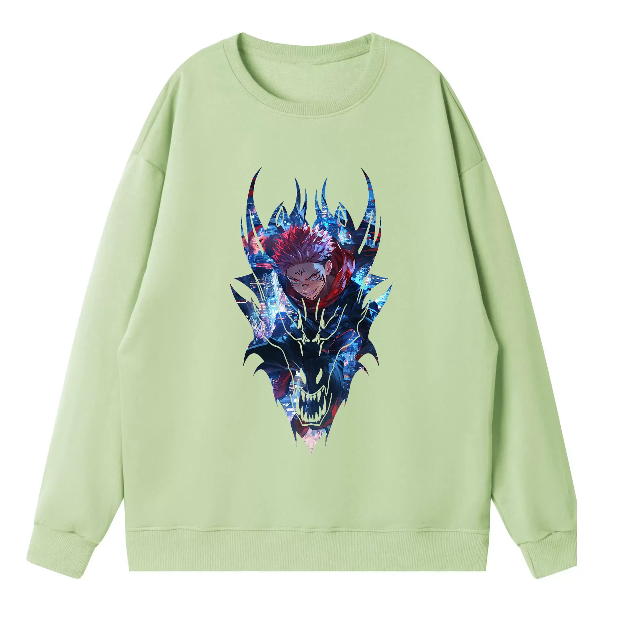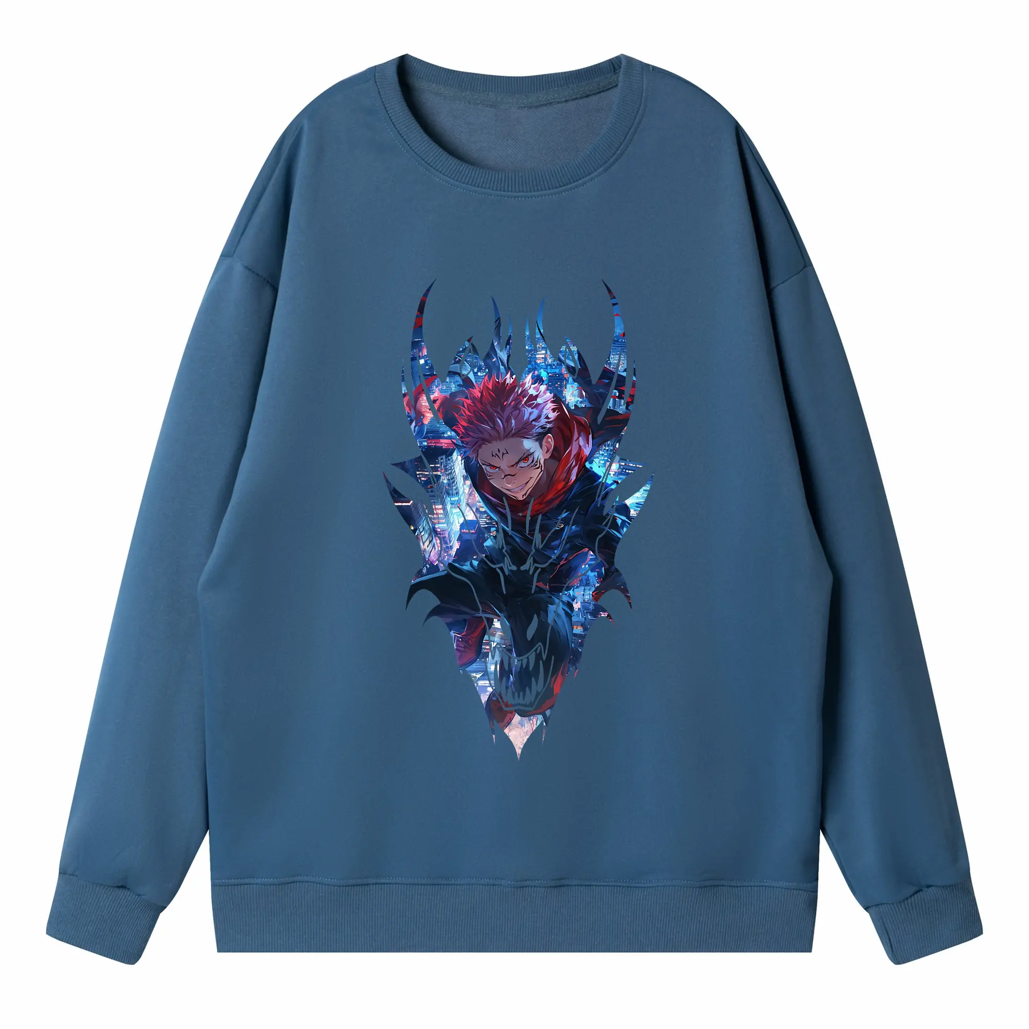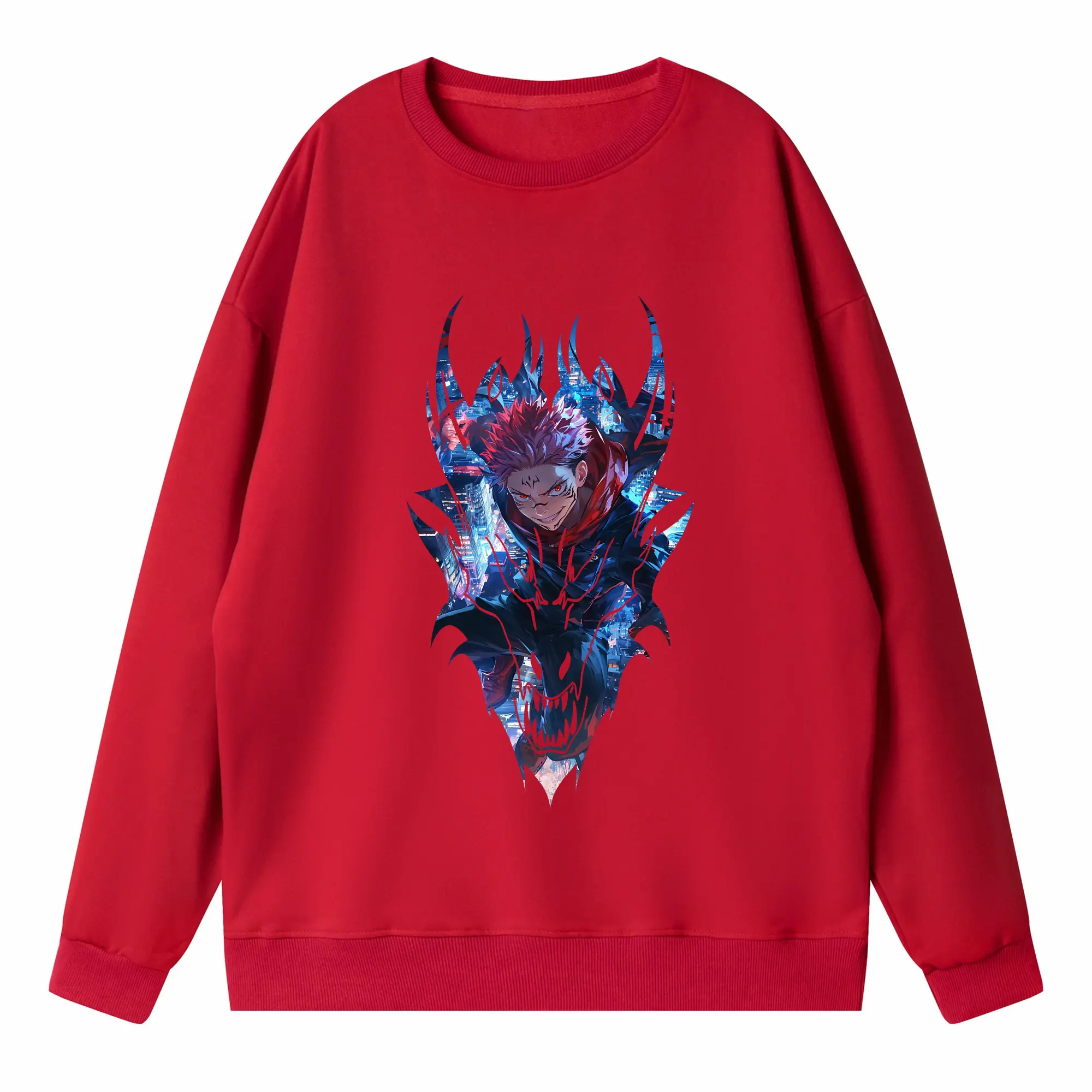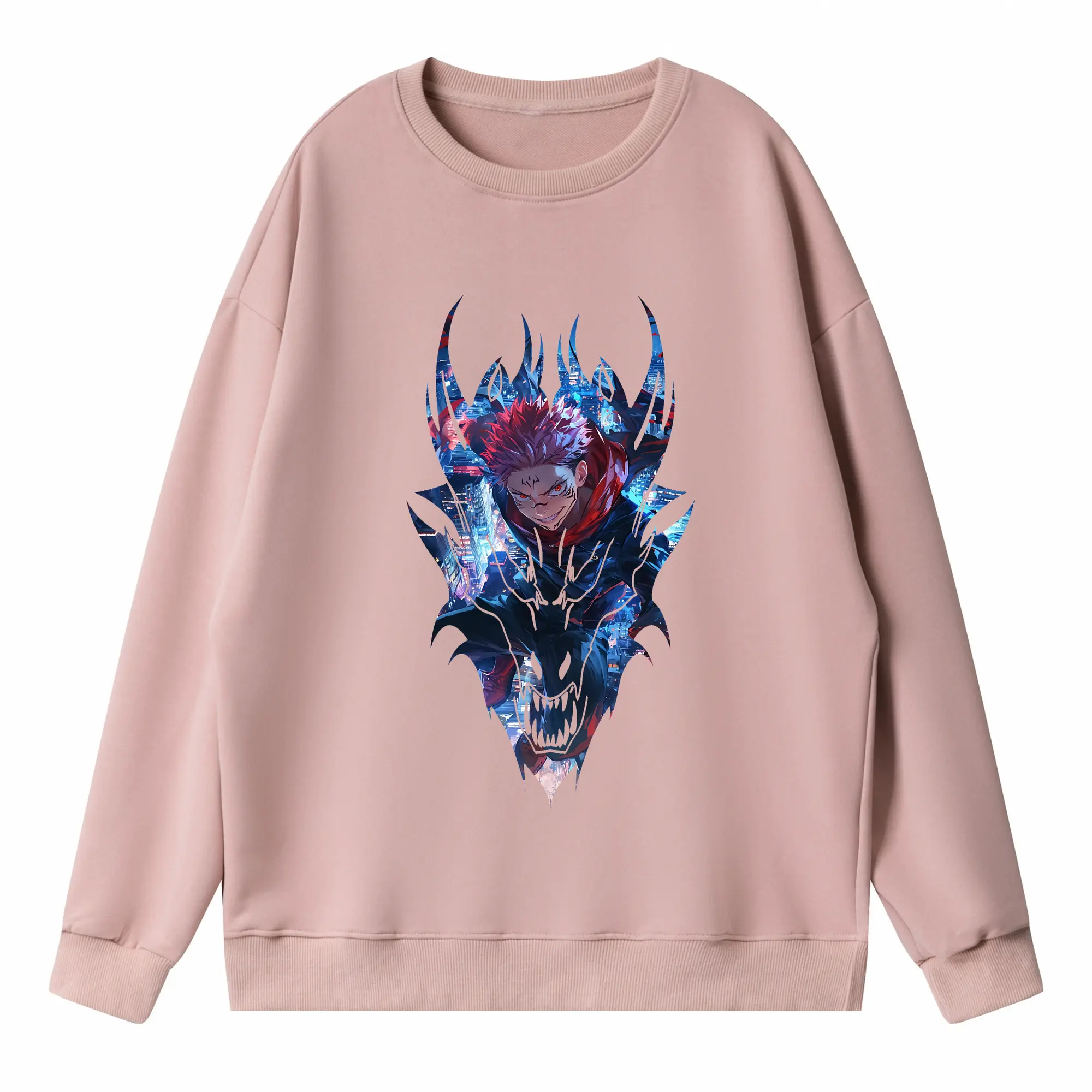 呪術廻戦 グッズ,両面宿儺 - 高品質 クルーネック スウェット ・ コットン59% ポリエステル41% ・ ユニセックス 長袖 トレーナー ・ カジュアル デイリー スポーツ 散歩用