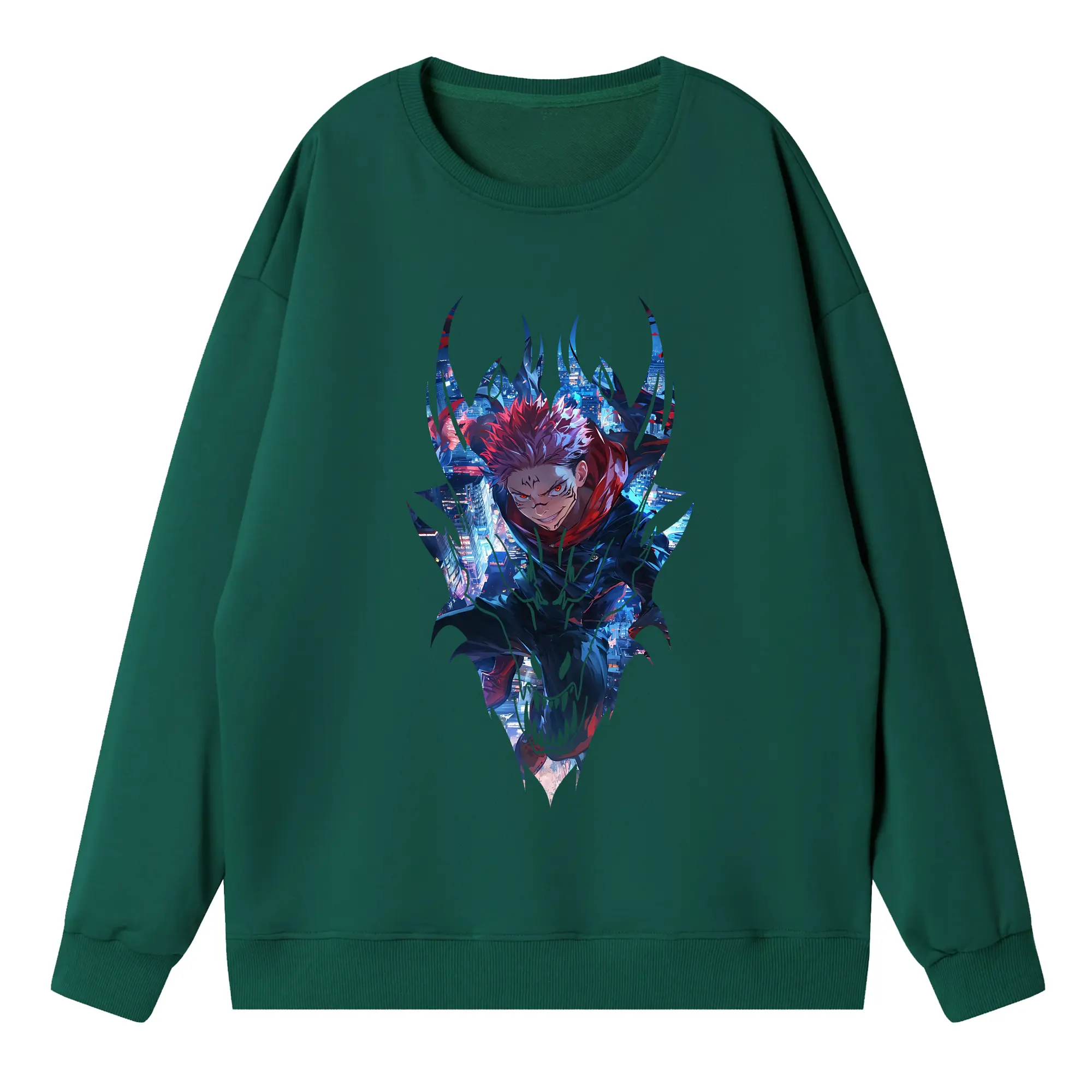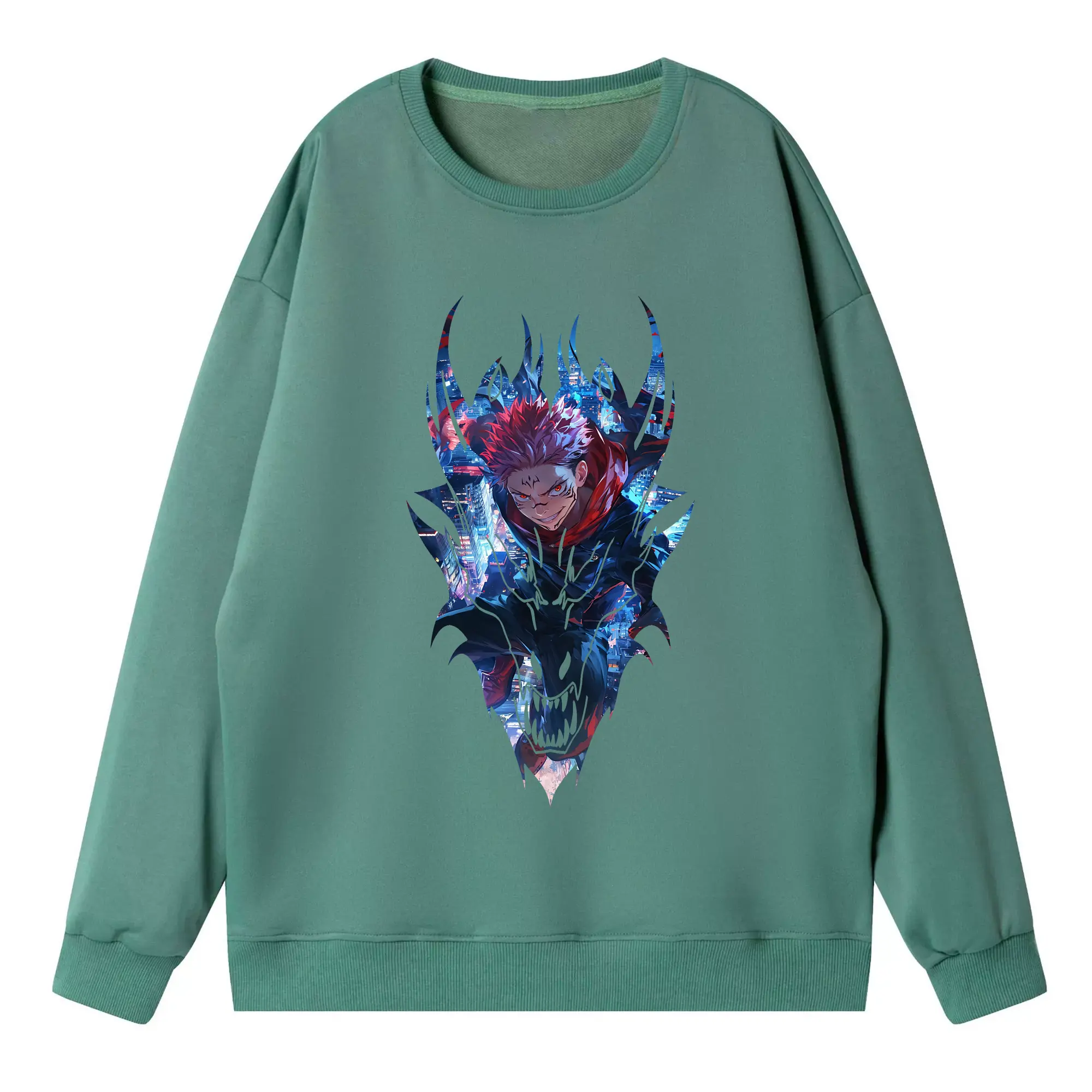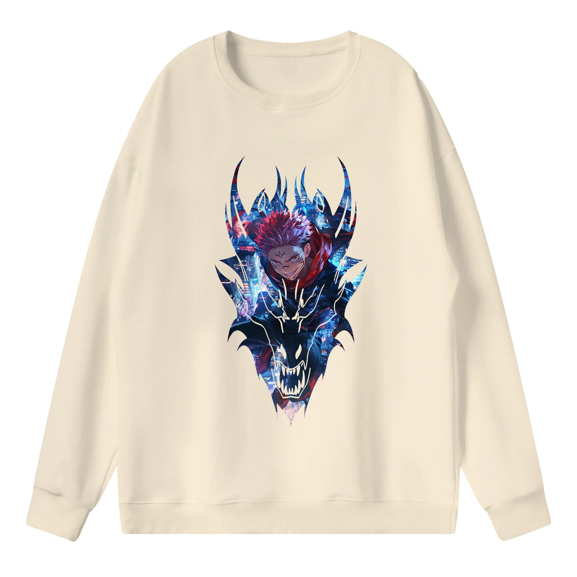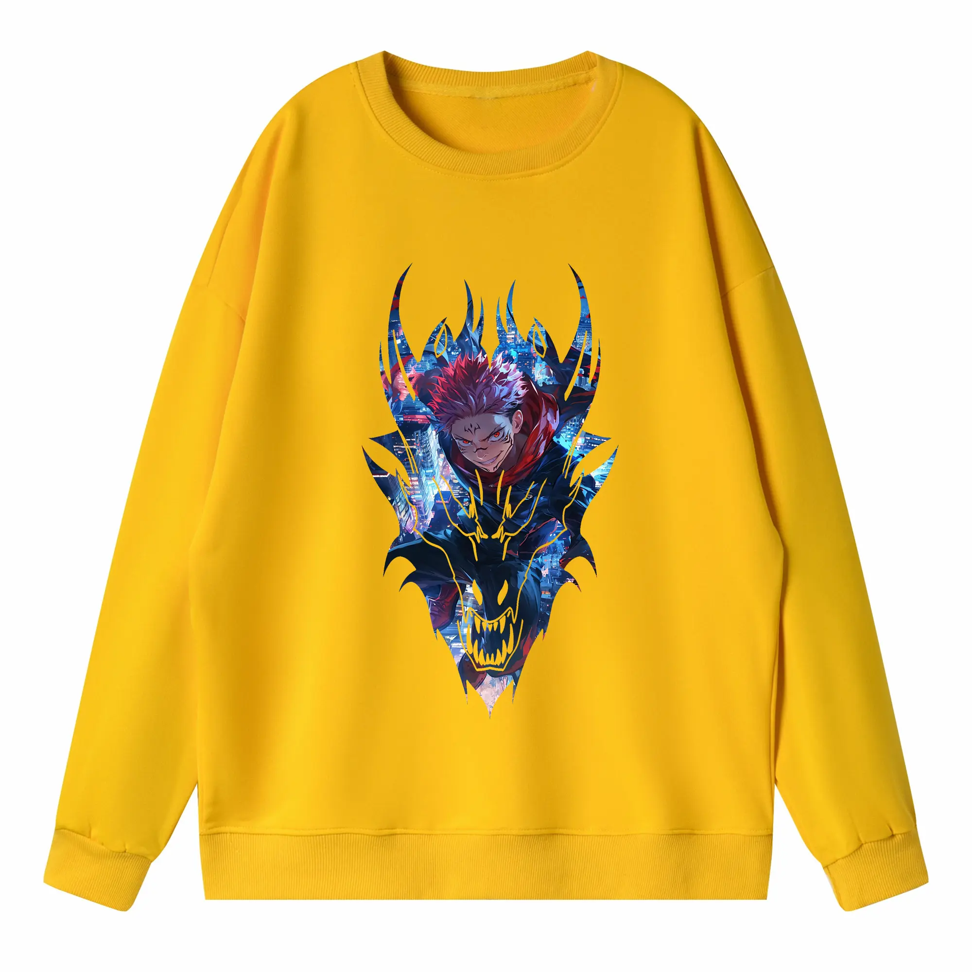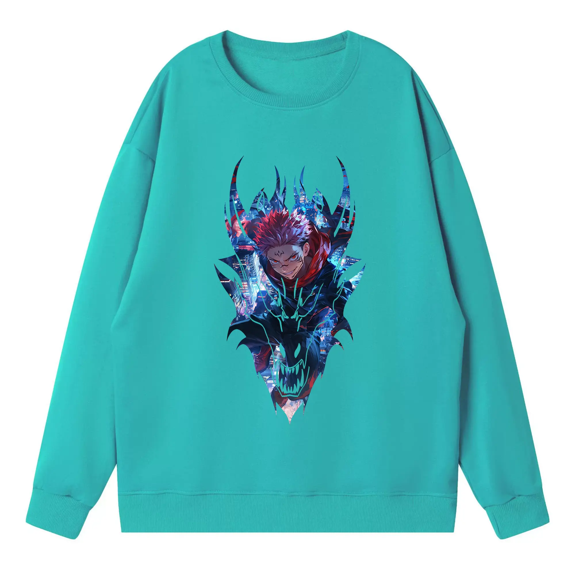 呪術廻戦 グッズ,両面宿儺 - 高品質 クルーネック スウェット ・ コットン59% ポリエステル41% ・ ユニセックス 長袖 トレーナー ・ カジュアル デイリー スポーツ 散歩用