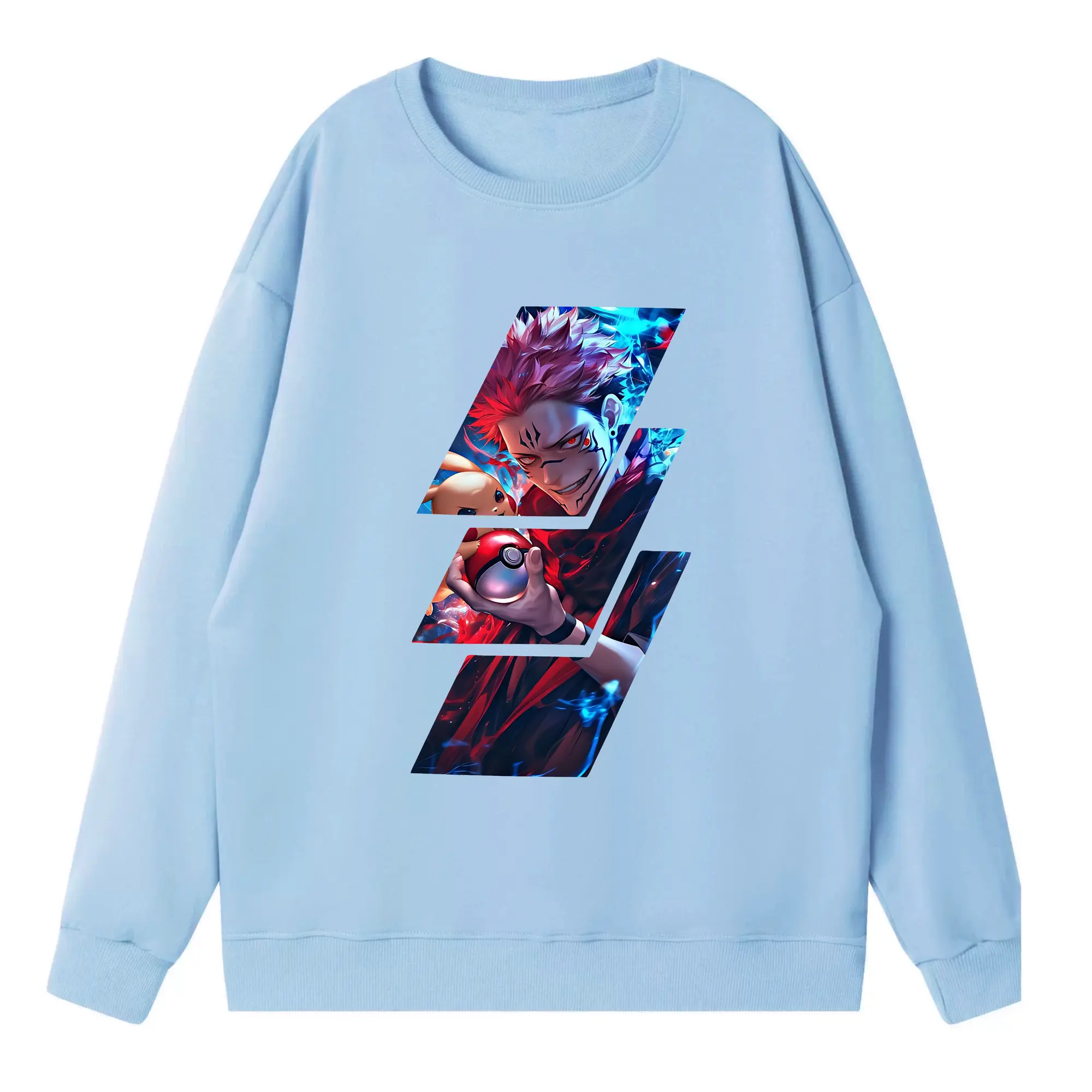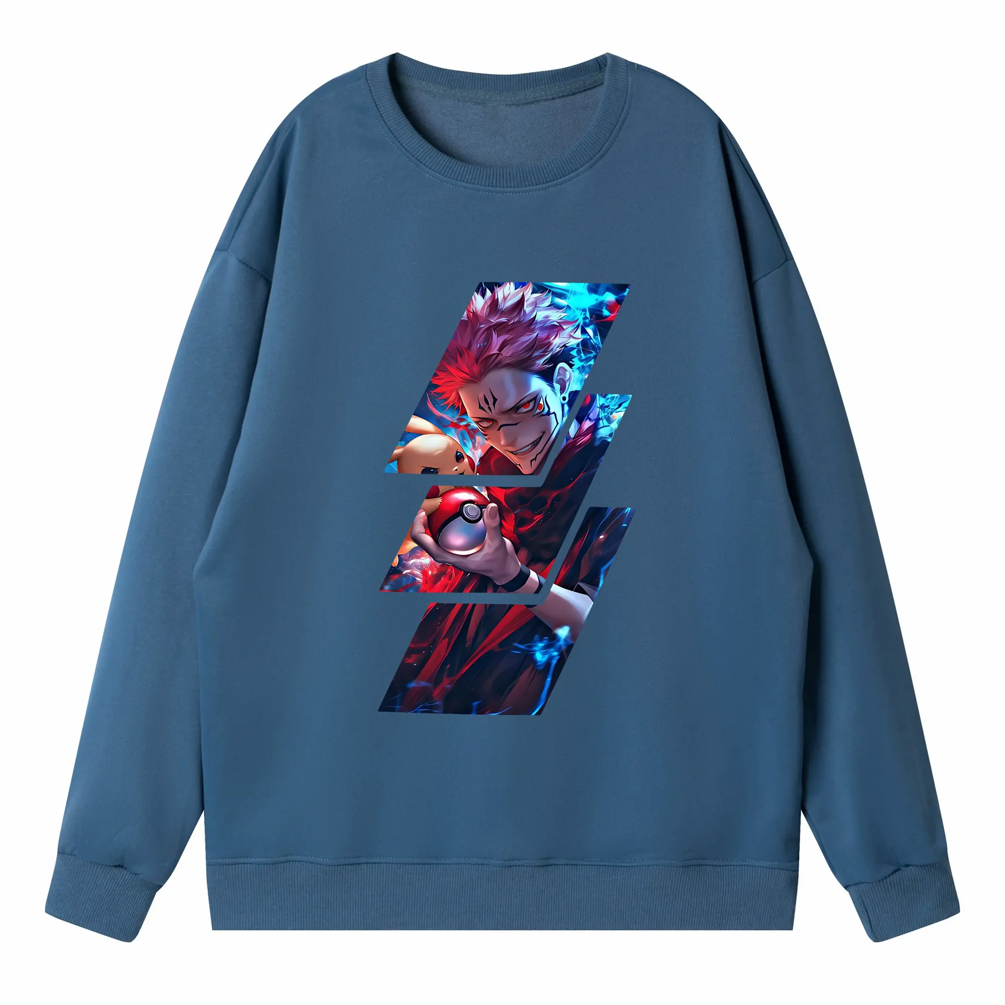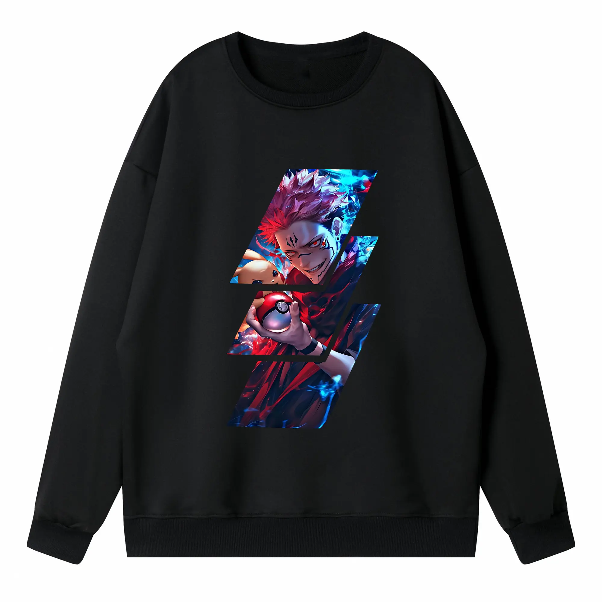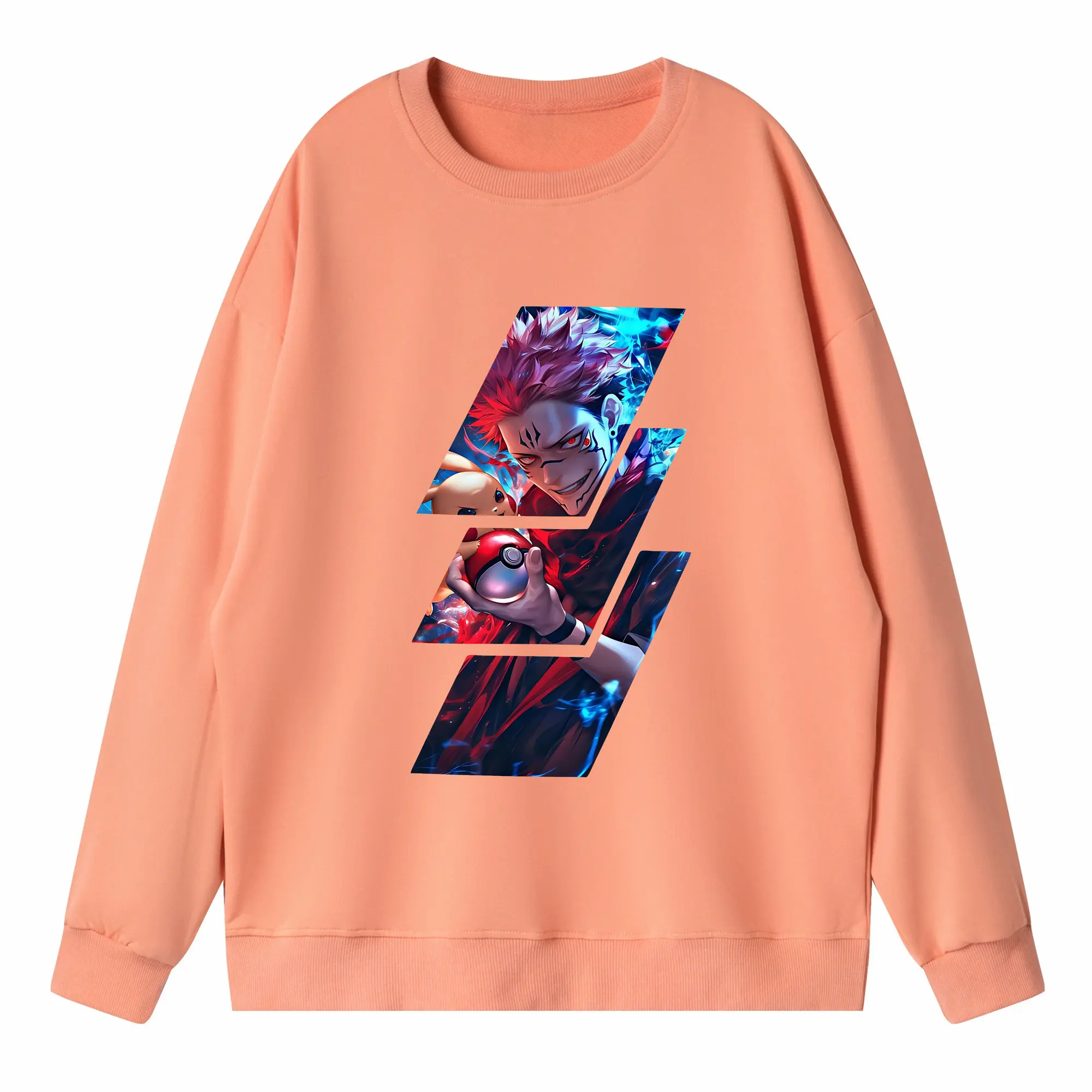 呪術廻戦 グッズ,両面宿儺 - 高品質 クルーネック スウェット ・ コットン59% ポリエステル41% ・ ユニセックス 長袖 トレーナー ・ カジュアル デイリー スポーツ 散歩用