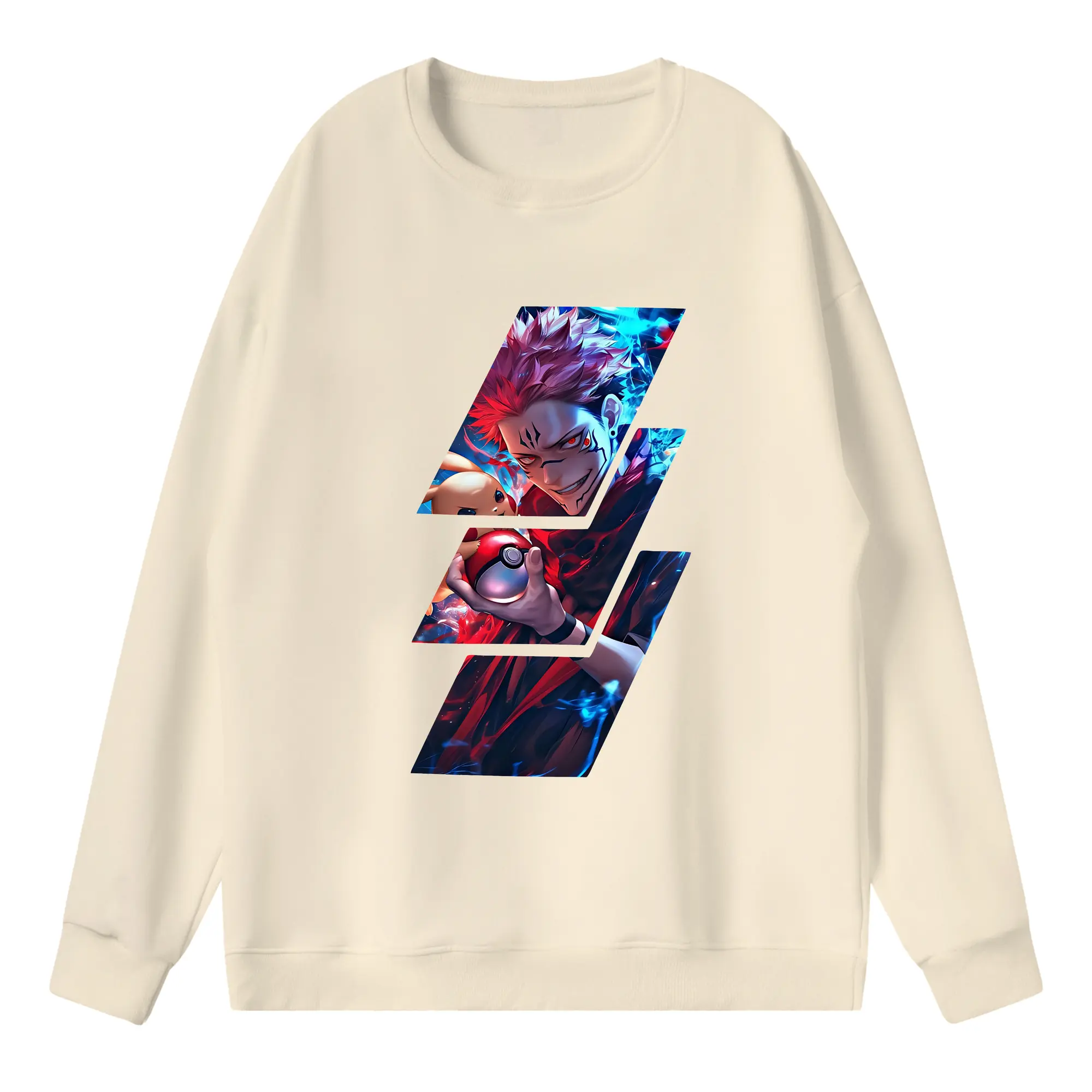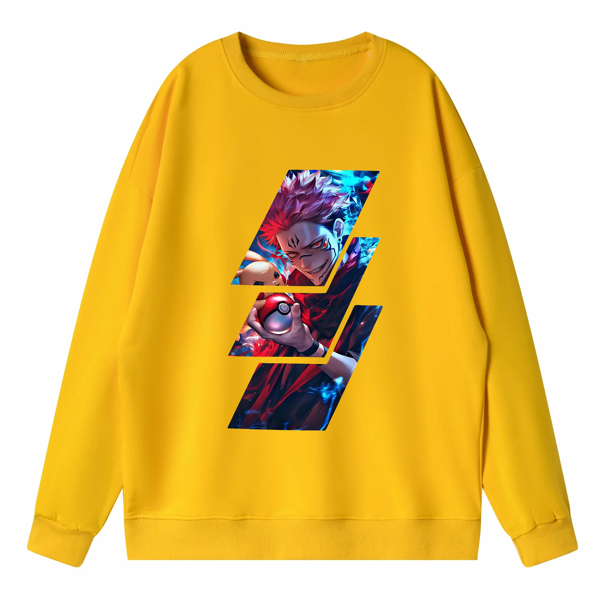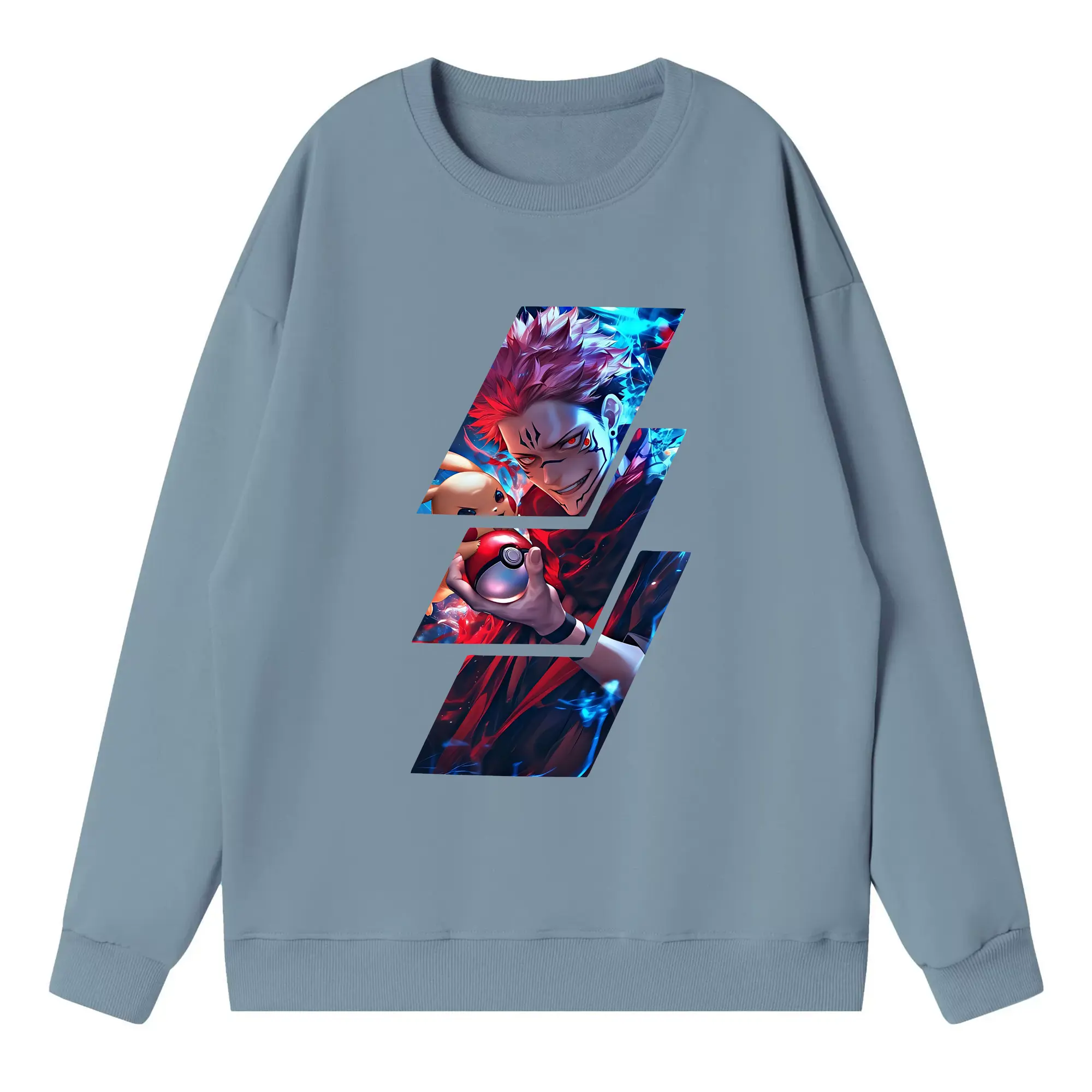 呪術廻戦 グッズ,両面宿儺 - 高品質 クルーネック スウェット ・ コットン59% ポリエステル41% ・ ユニセックス 長袖 トレーナー ・ カジュアル デイリー スポーツ 散歩用
