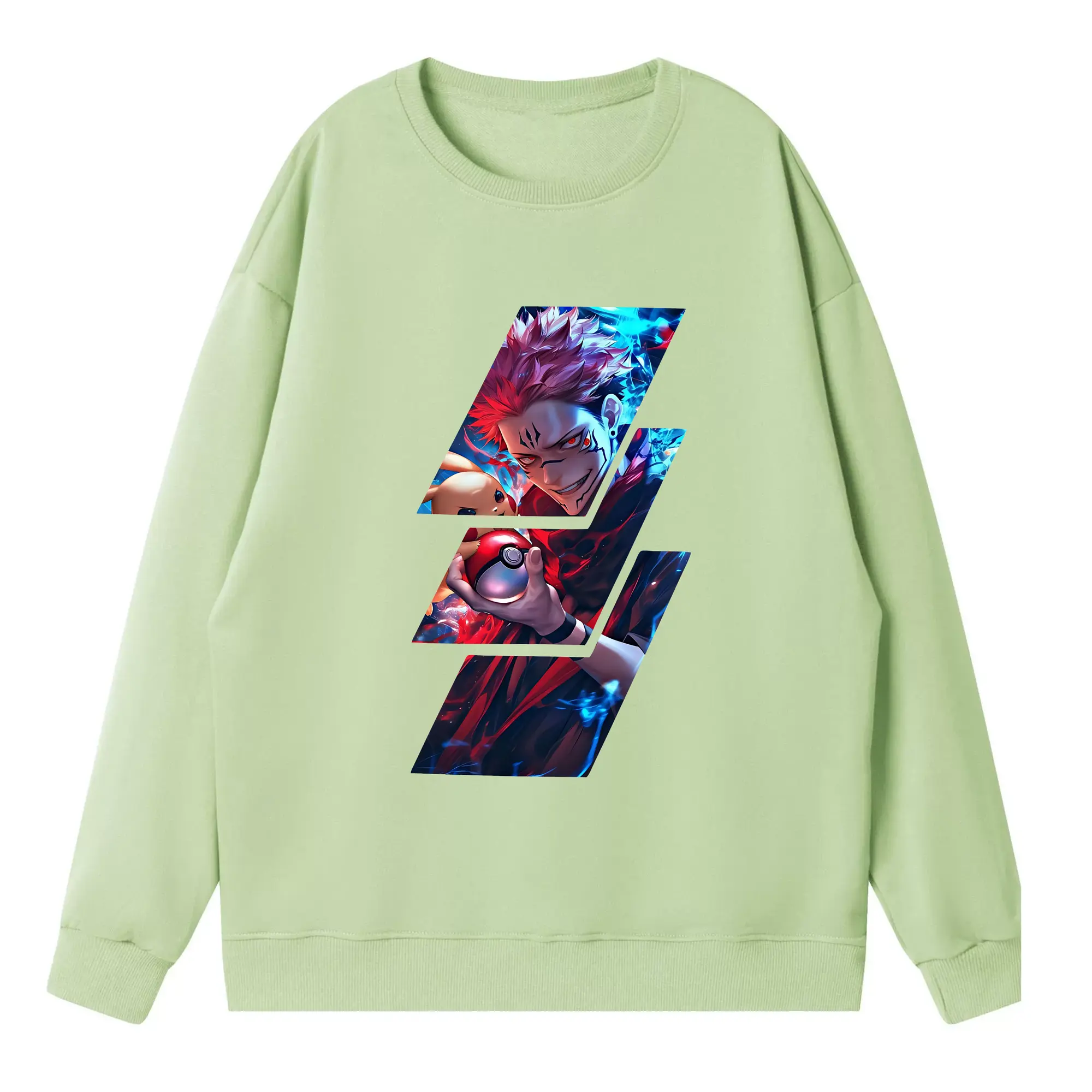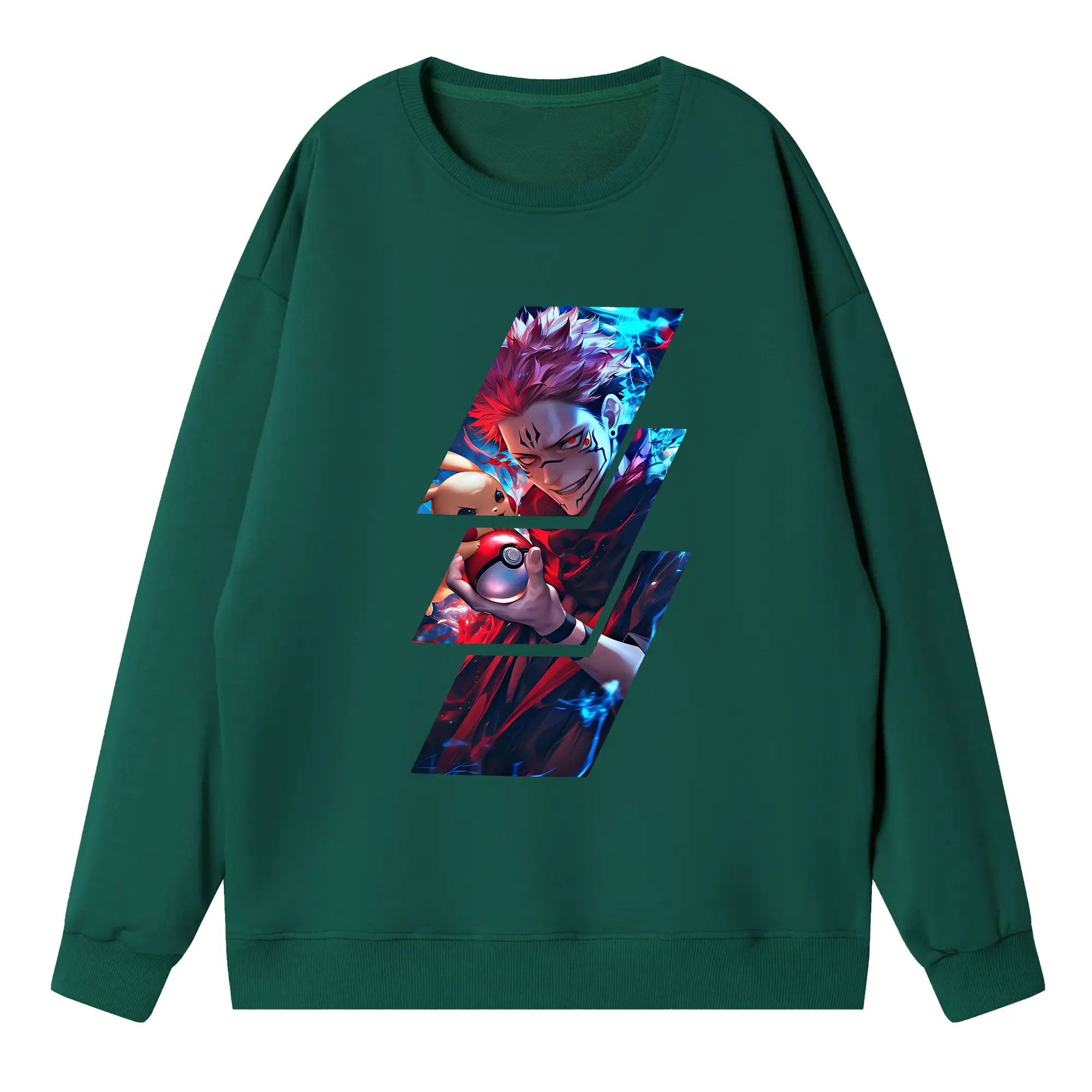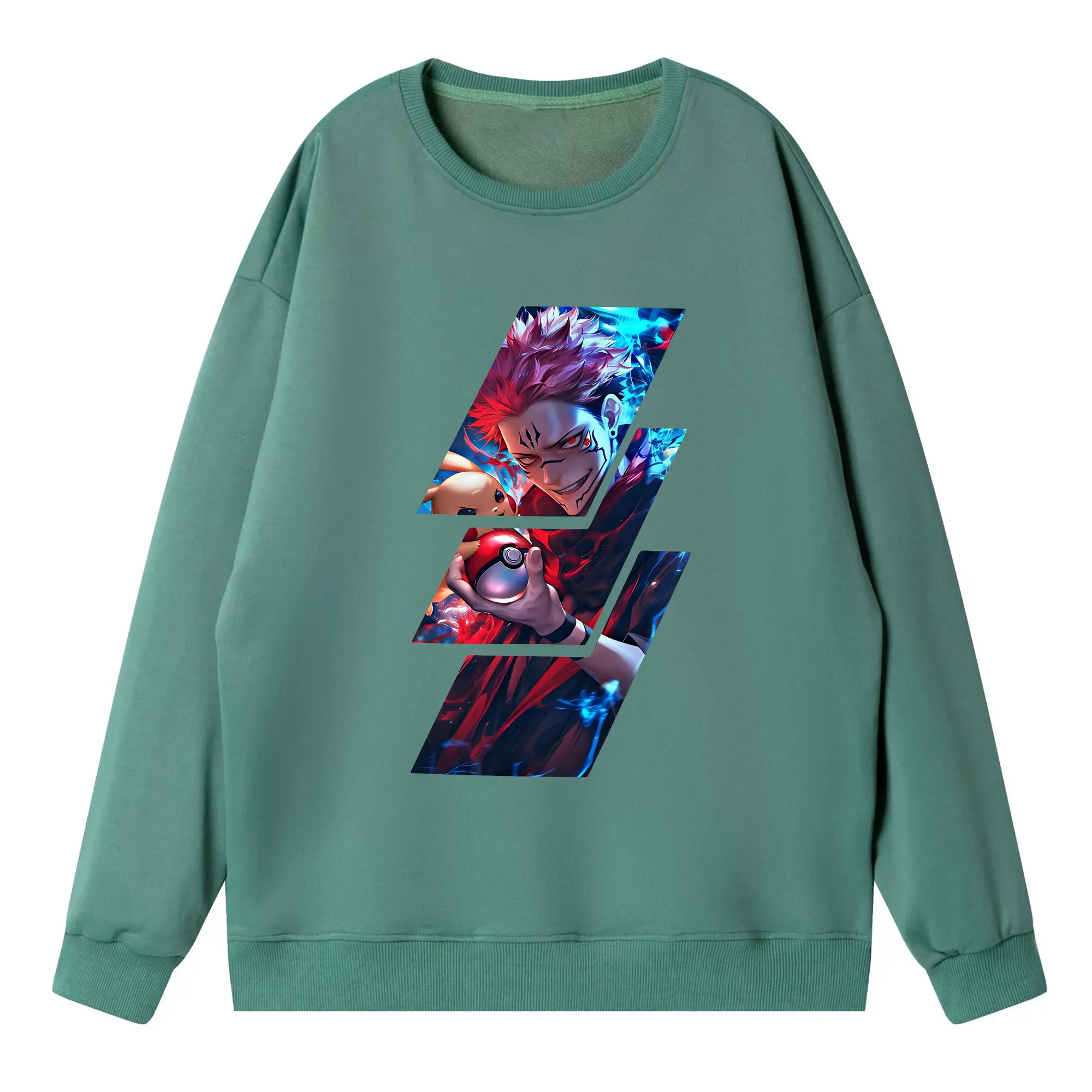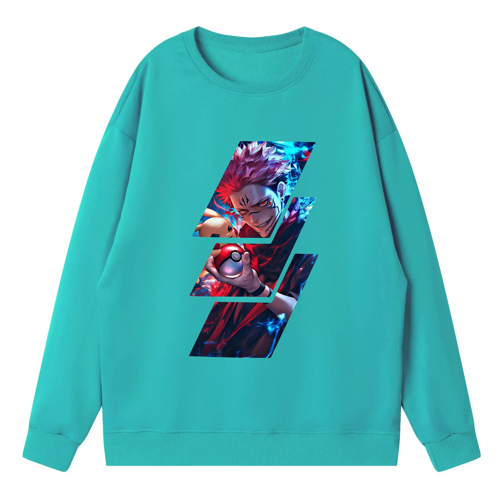 呪術廻戦 グッズ,両面宿儺 - 高品質 クルーネック スウェット ・ コットン59% ポリエステル41% ・ ユニセックス 長袖 トレーナー ・ カジュアル デイリー スポーツ 散歩用