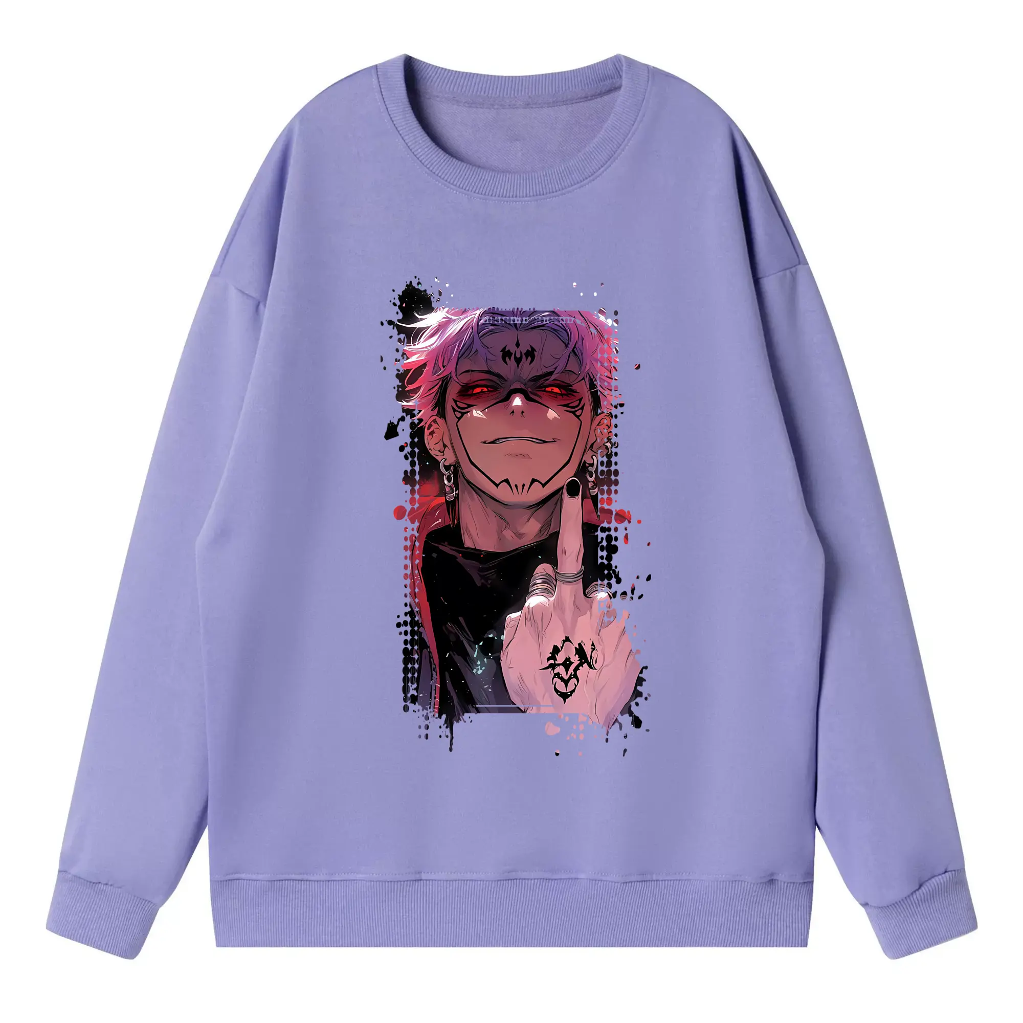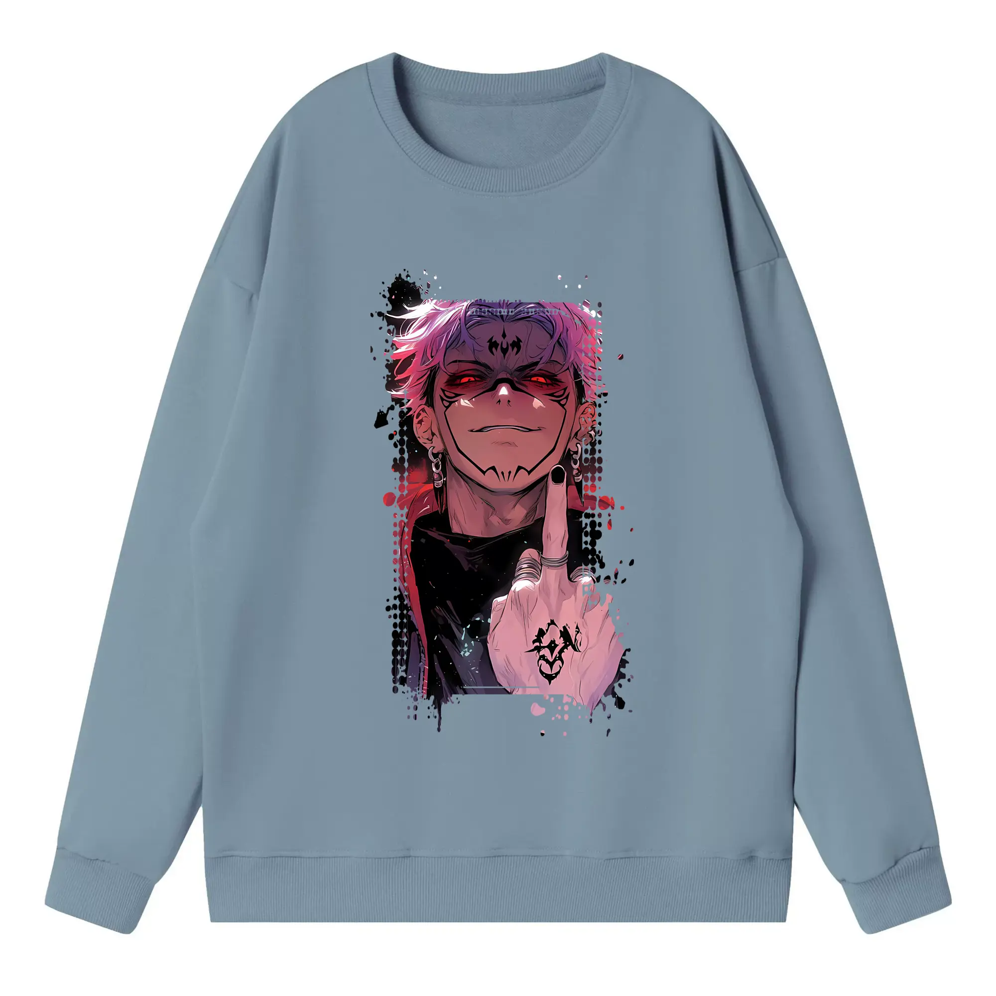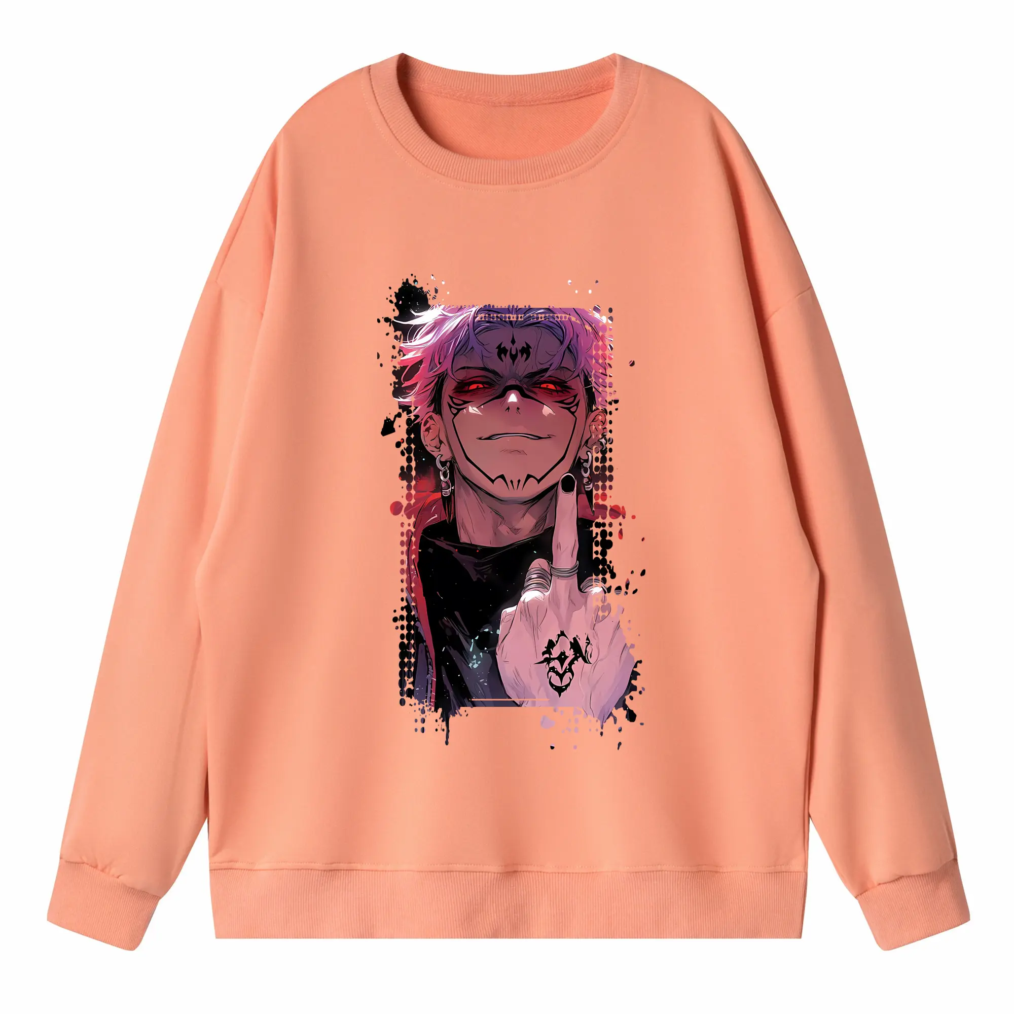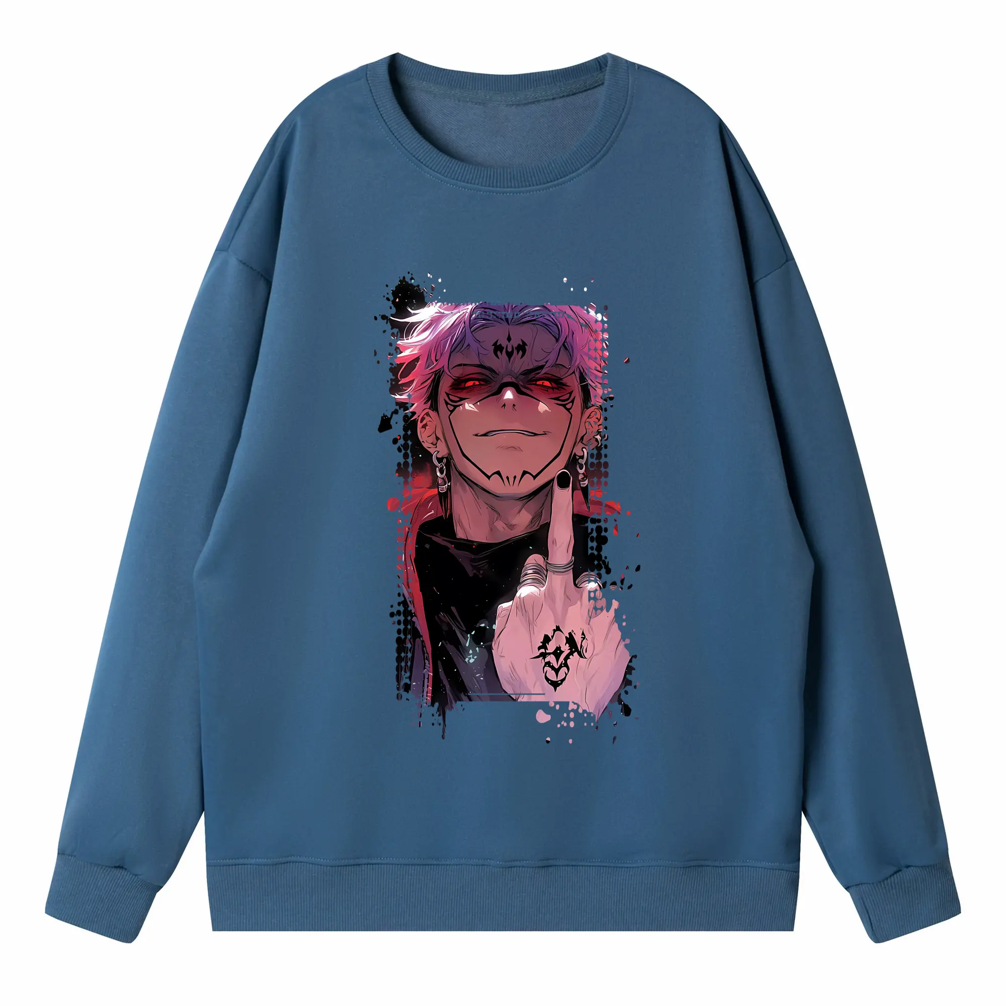 呪術廻戦 グッズ,両面宿儺 - 高品質 クルーネック スウェット ・ コットン59% ポリエステル41% ・ ユニセックス 長袖 トレーナー ・ カジュアル デイリー スポーツ 散歩用