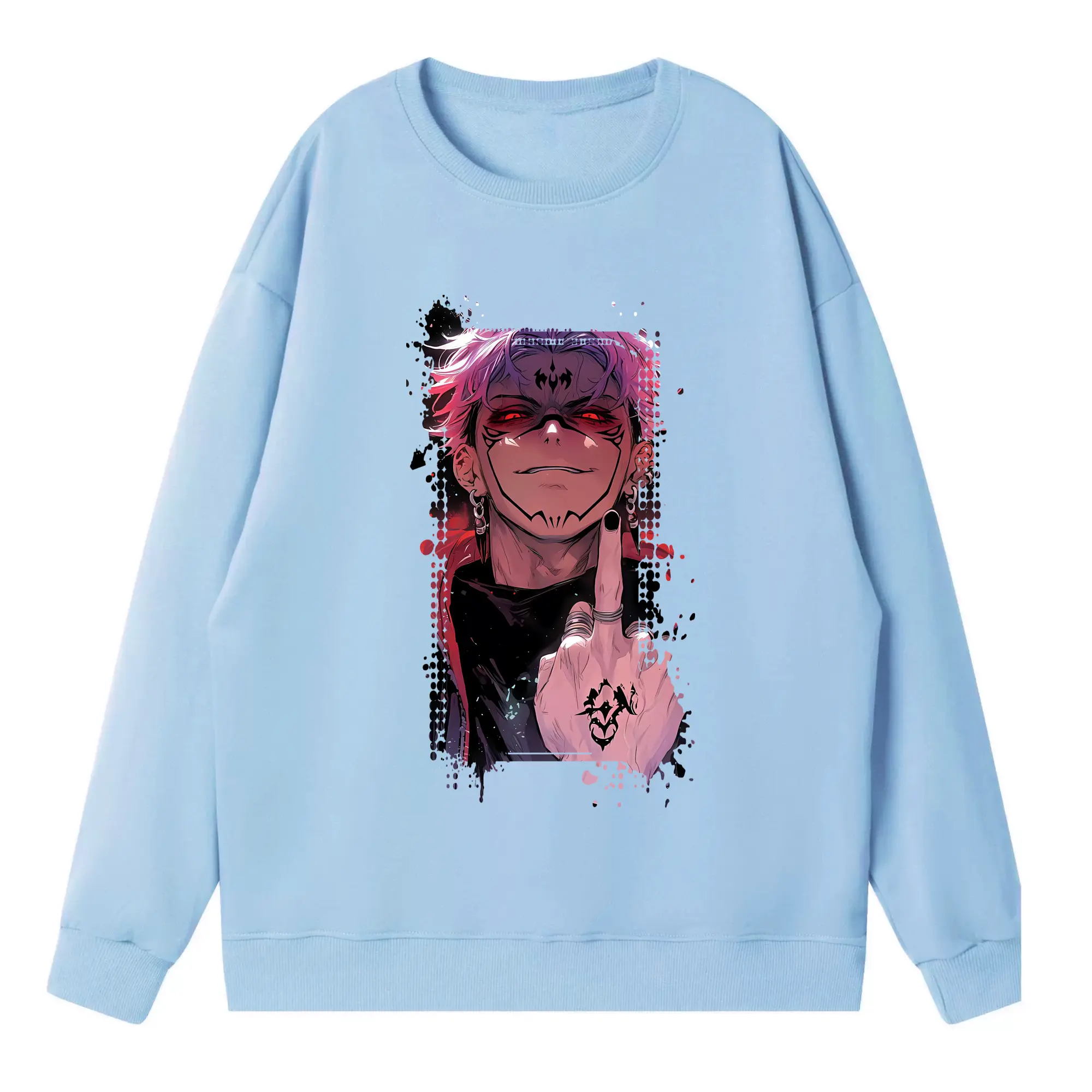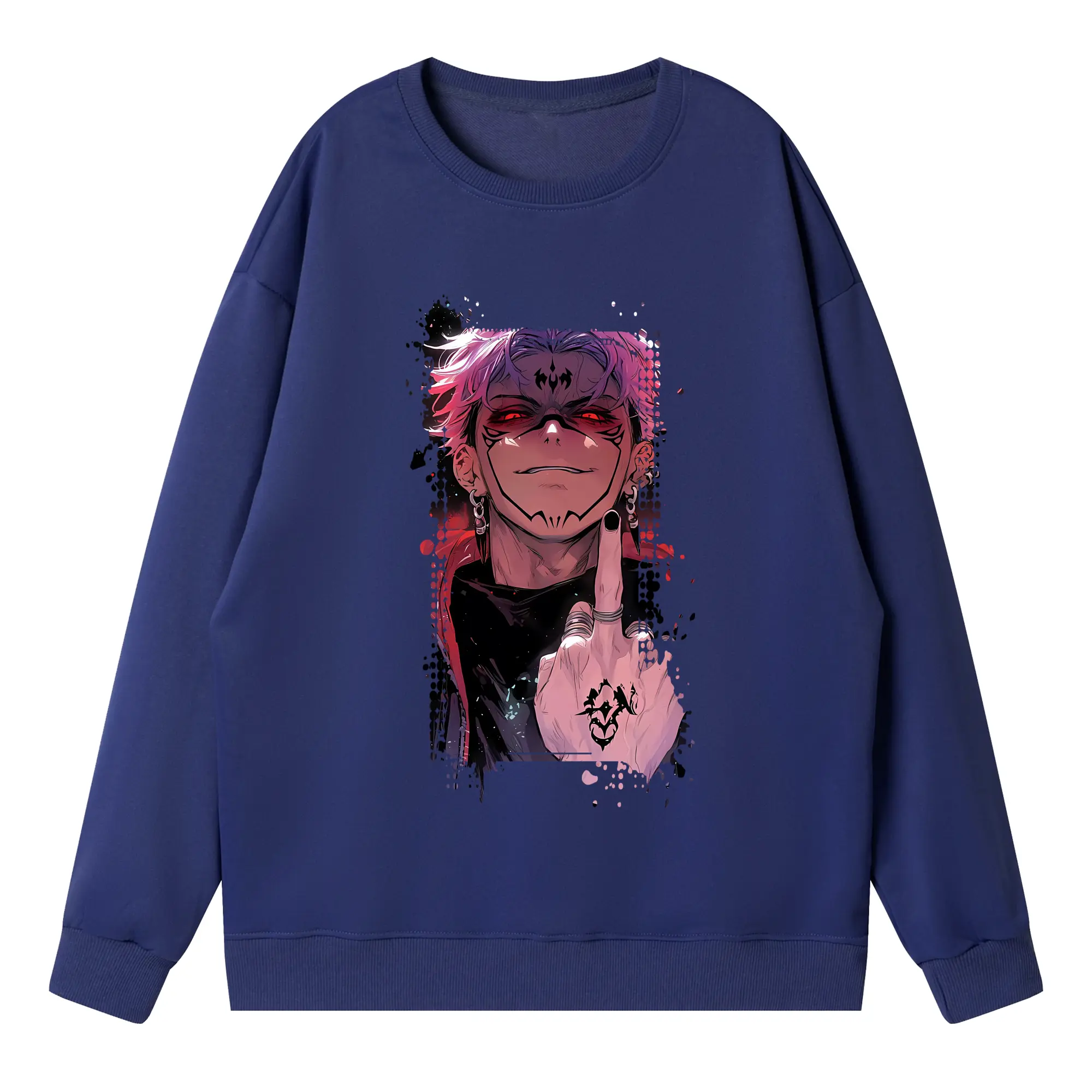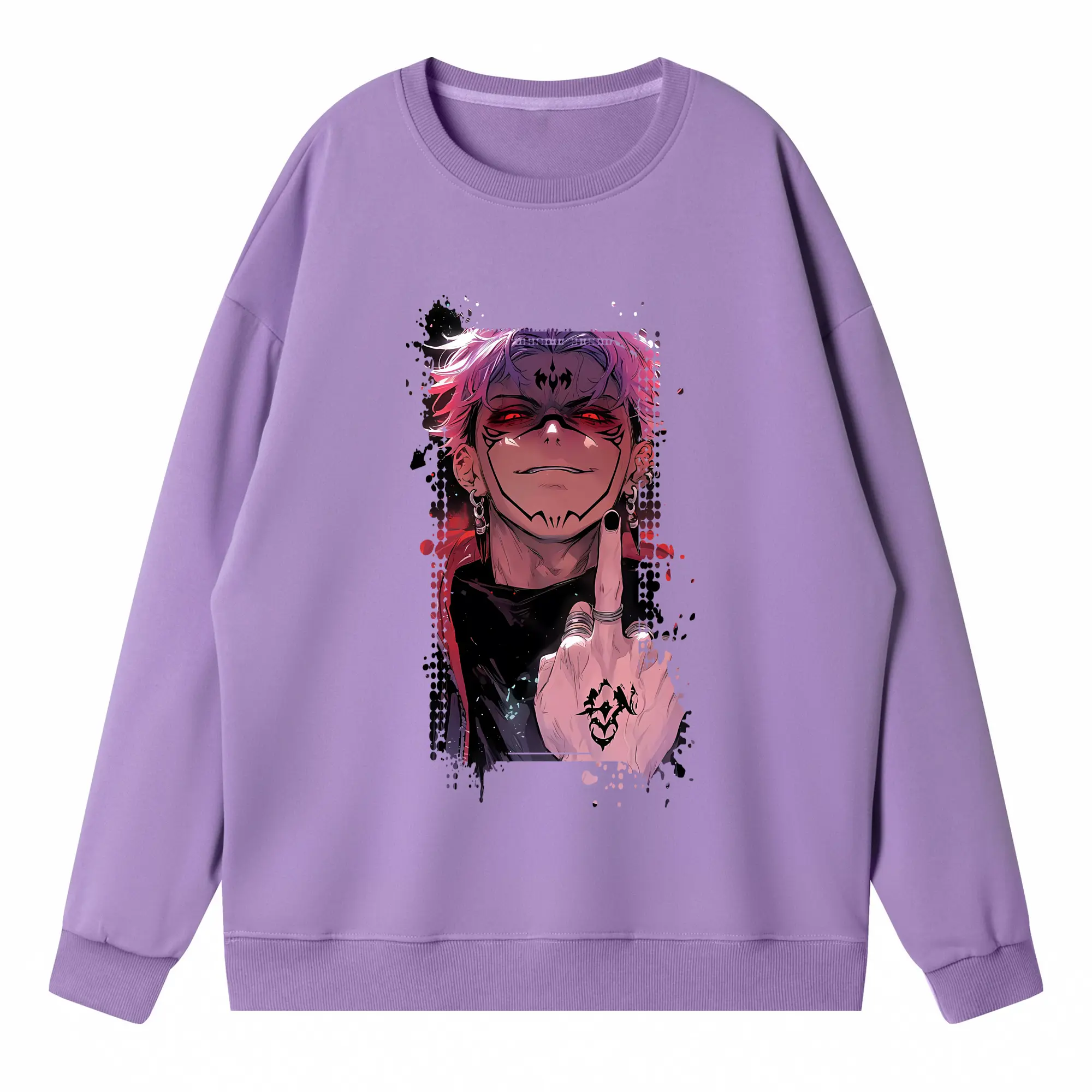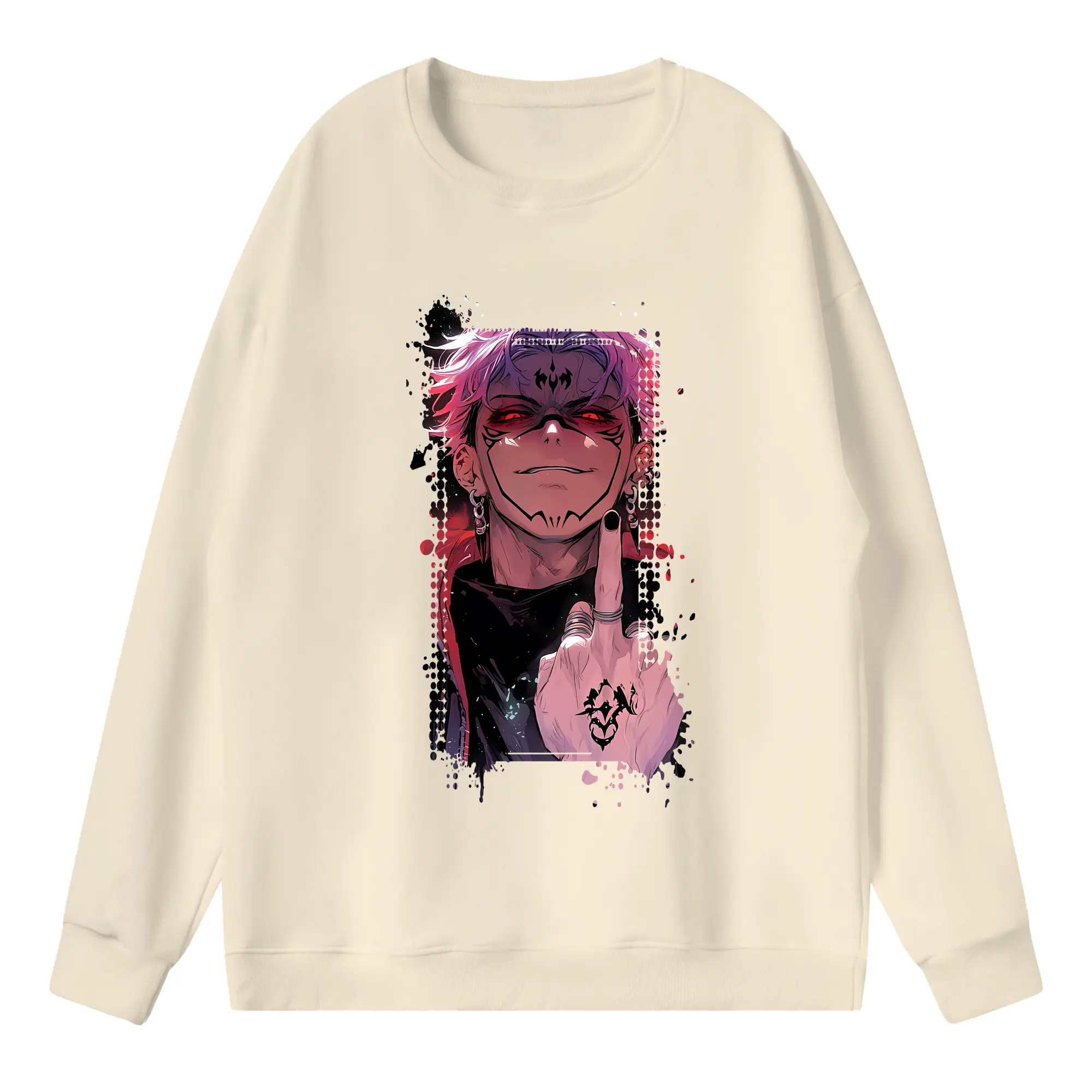 呪術廻戦 グッズ,両面宿儺 - 高品質 クルーネック スウェット ・ コットン59% ポリエステル41% ・ ユニセックス 長袖 トレーナー ・ カジュアル デイリー スポーツ 散歩用