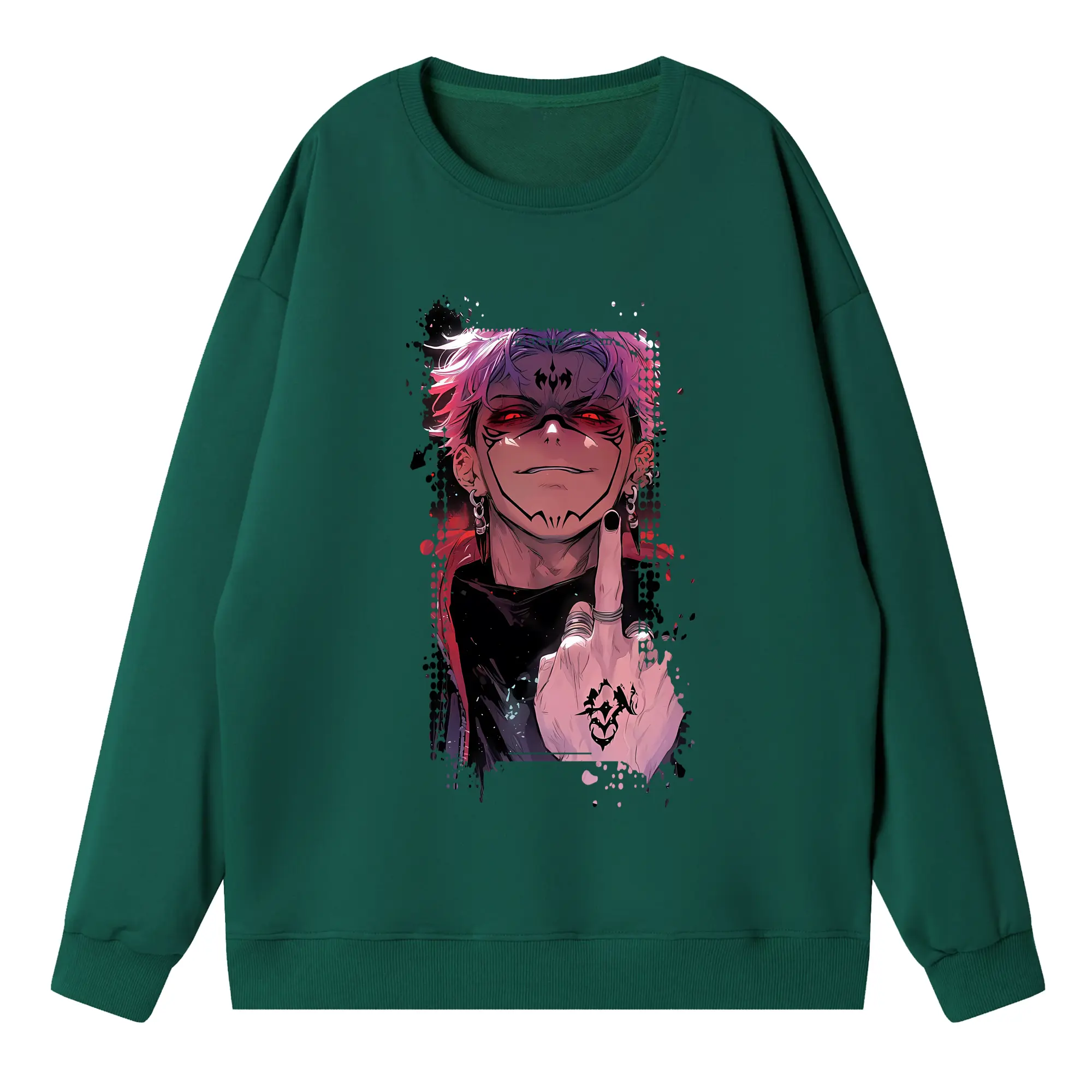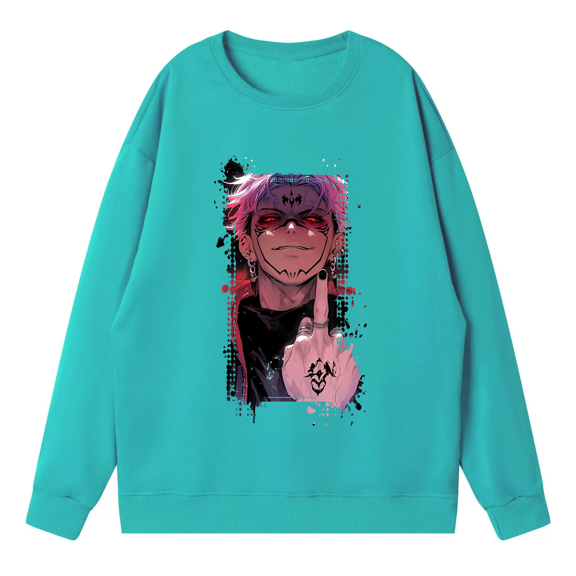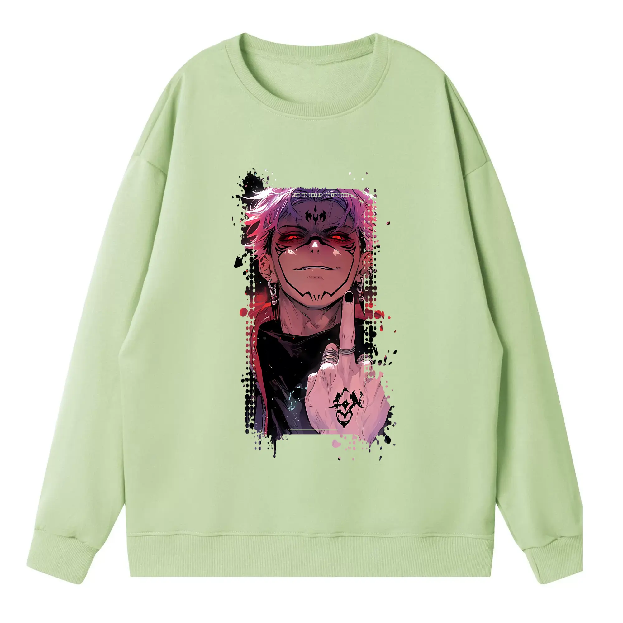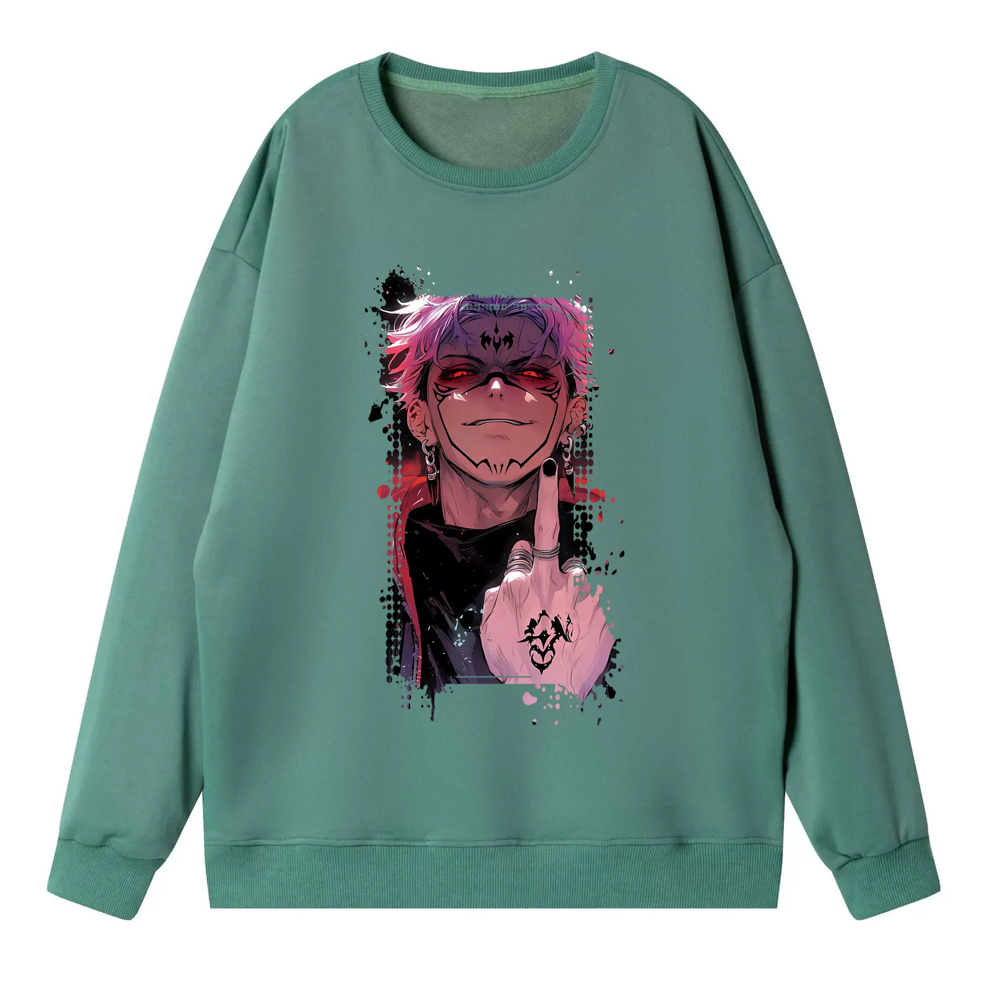 呪術廻戦 グッズ,両面宿儺 - 高品質 クルーネック スウェット ・ コットン59% ポリエステル41% ・ ユニセックス 長袖 トレーナー ・ カジュアル デイリー スポーツ 散歩用