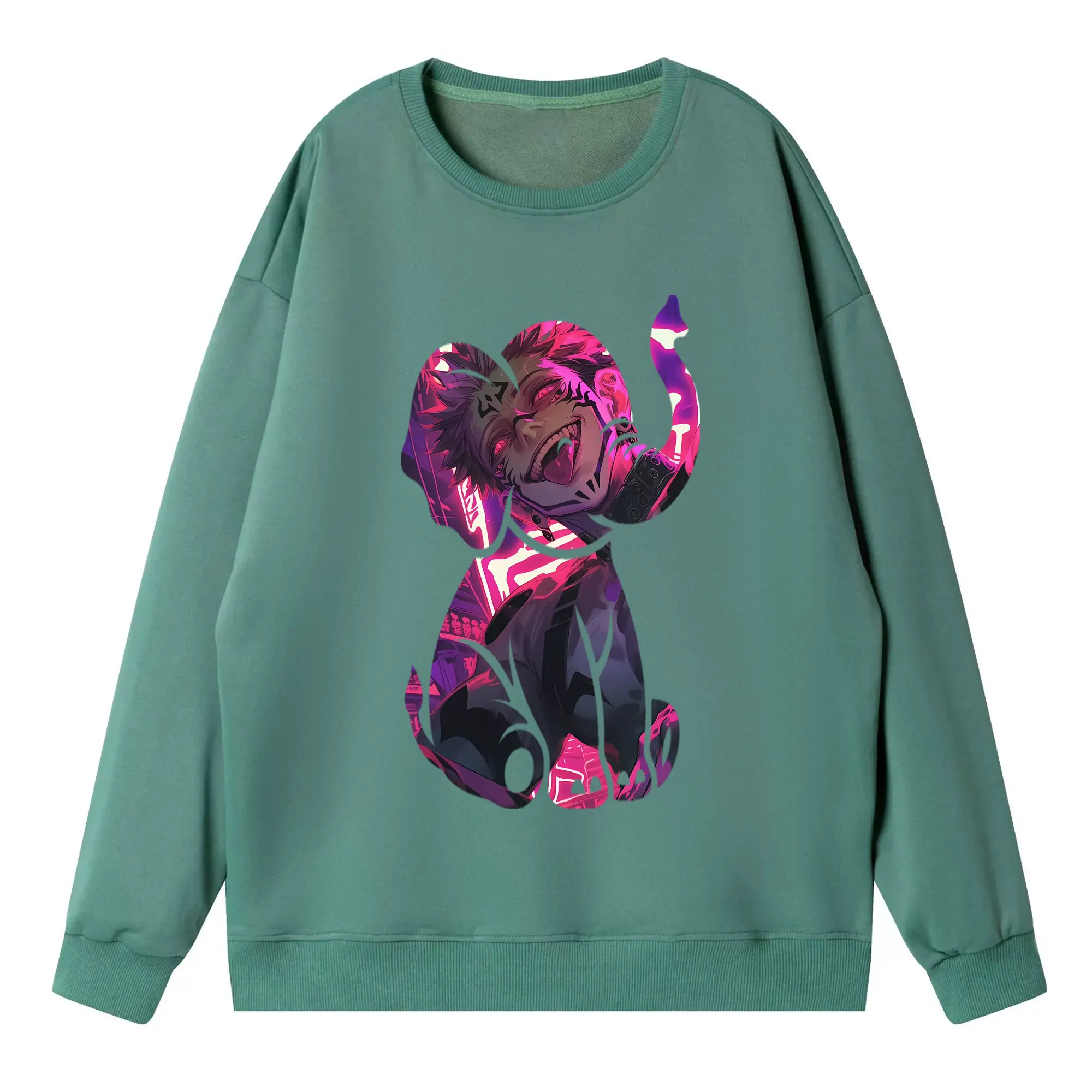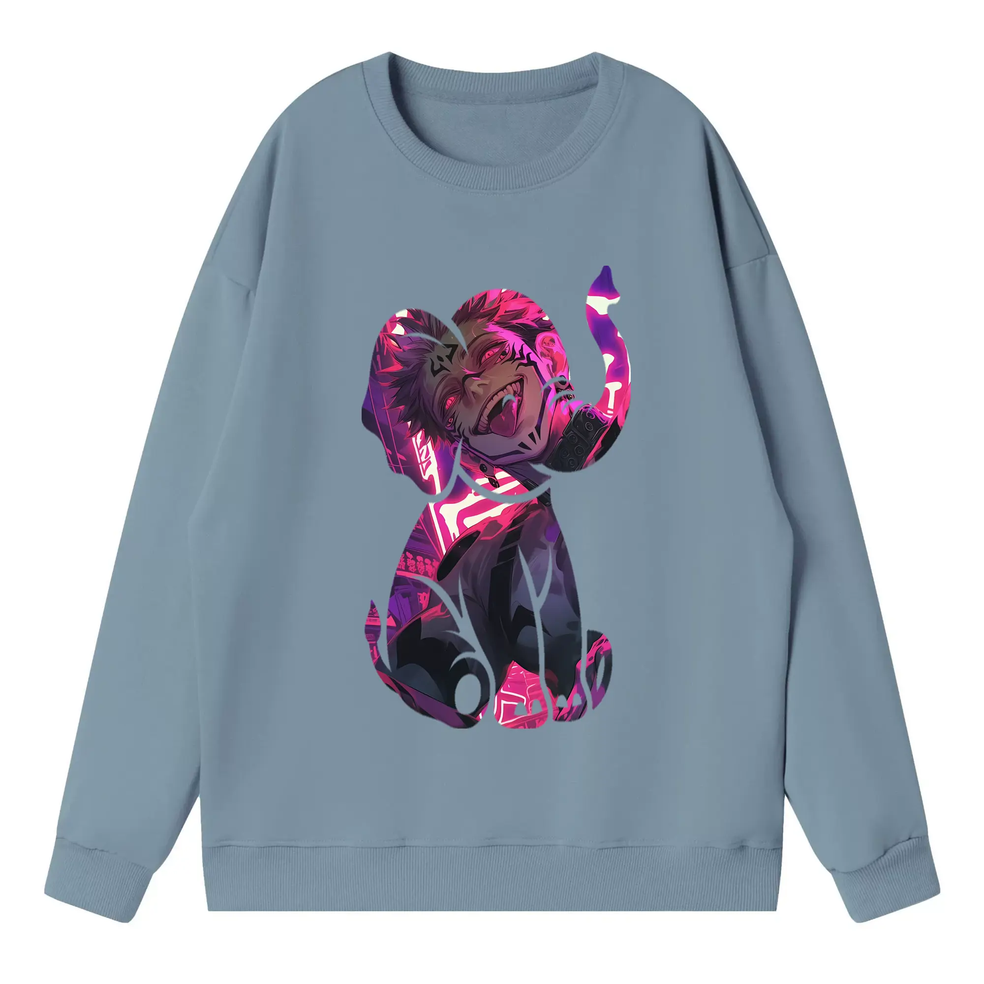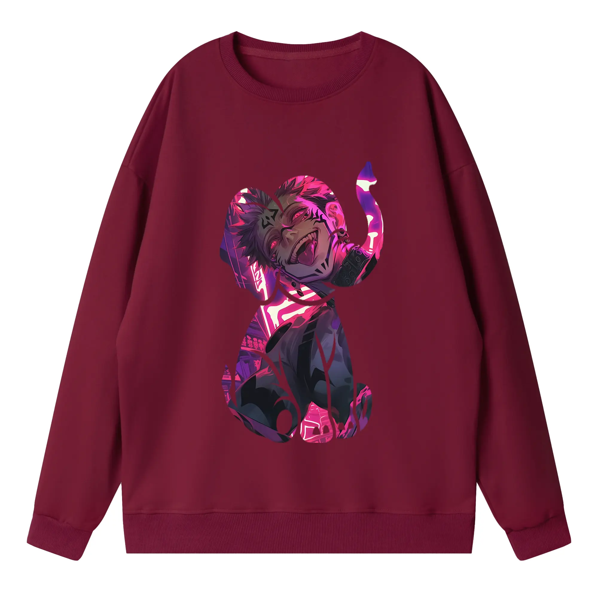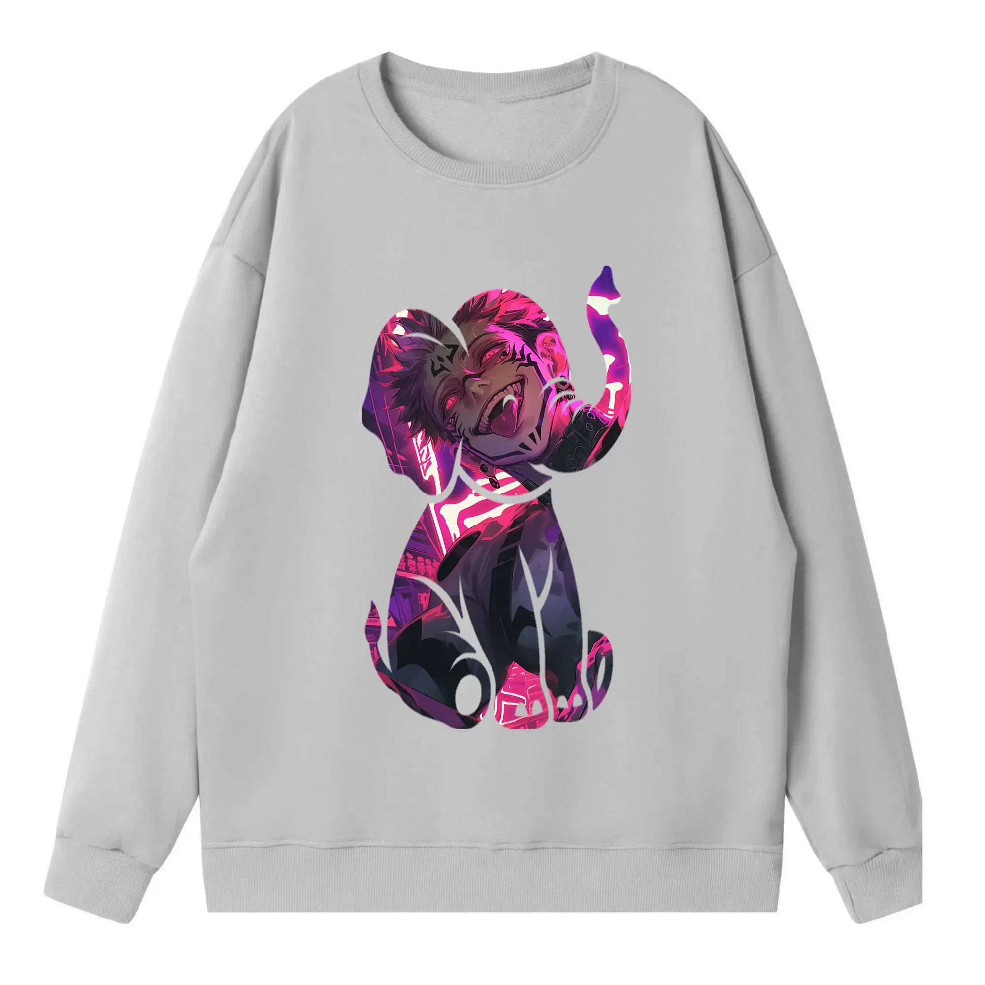 呪術廻戦 グッズ,両面宿儺 - 高品質 クルーネック スウェット ・ コットン59% ポリエステル41% ・ ユニセックス 長袖 トレーナー ・ カジュアル デイリー スポーツ 散歩用