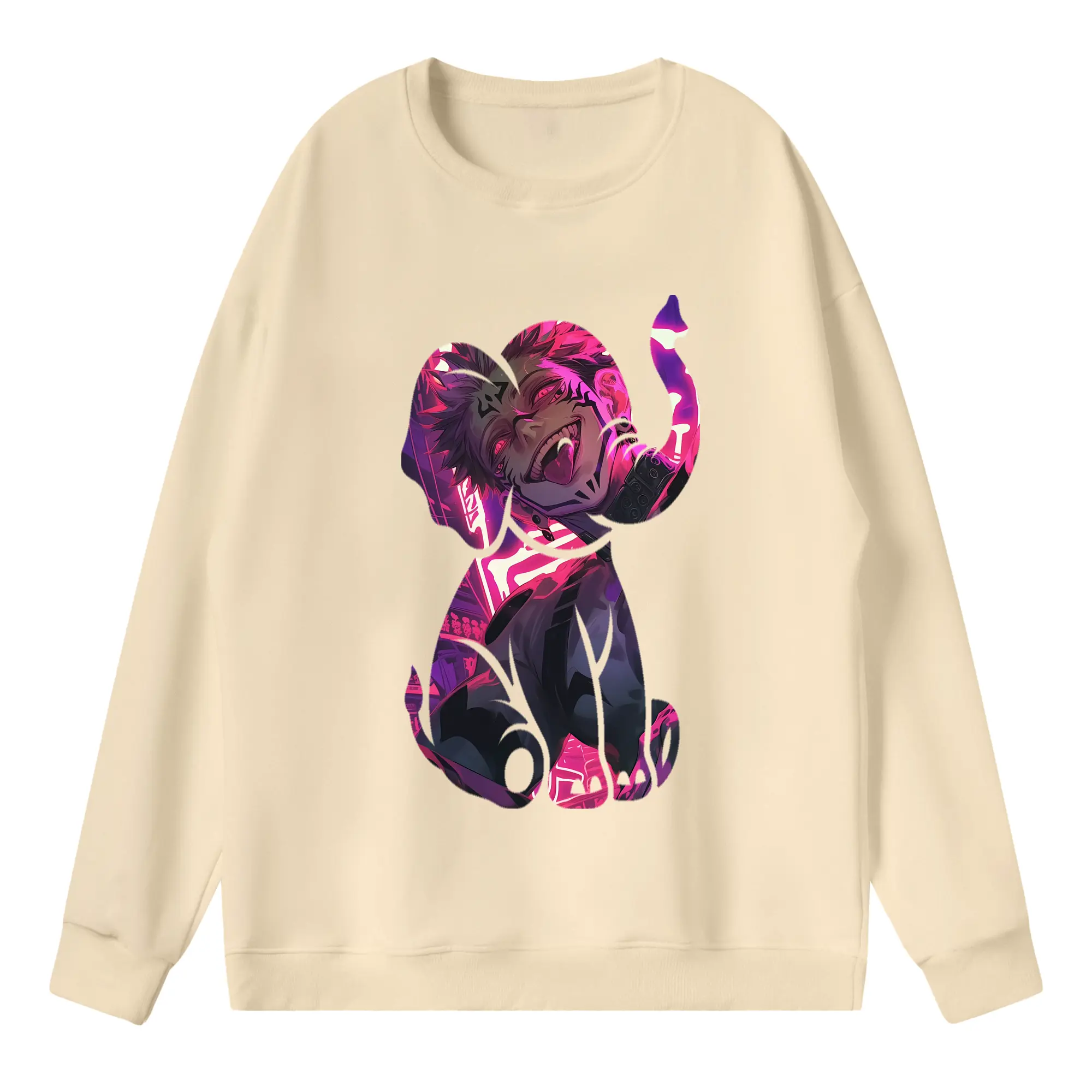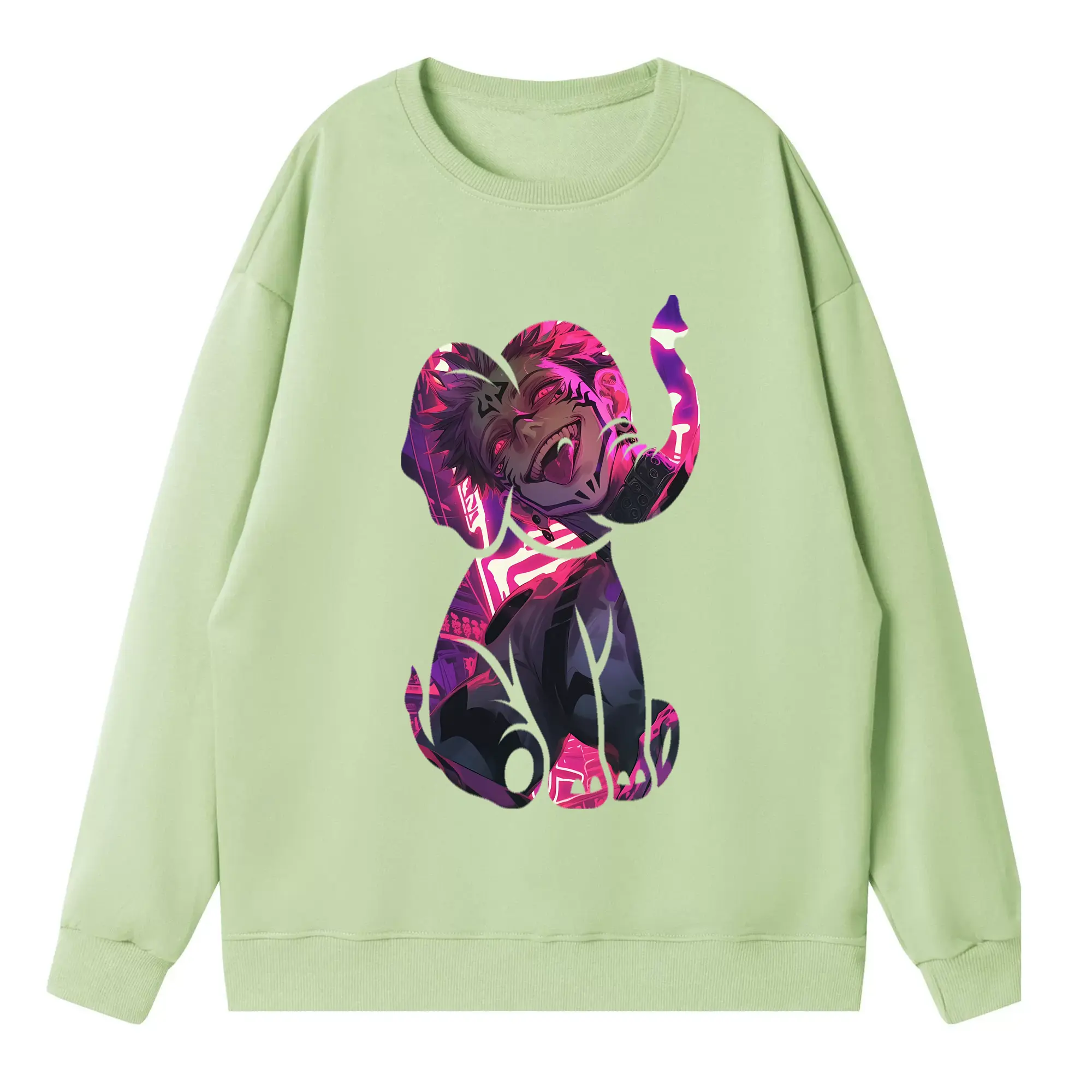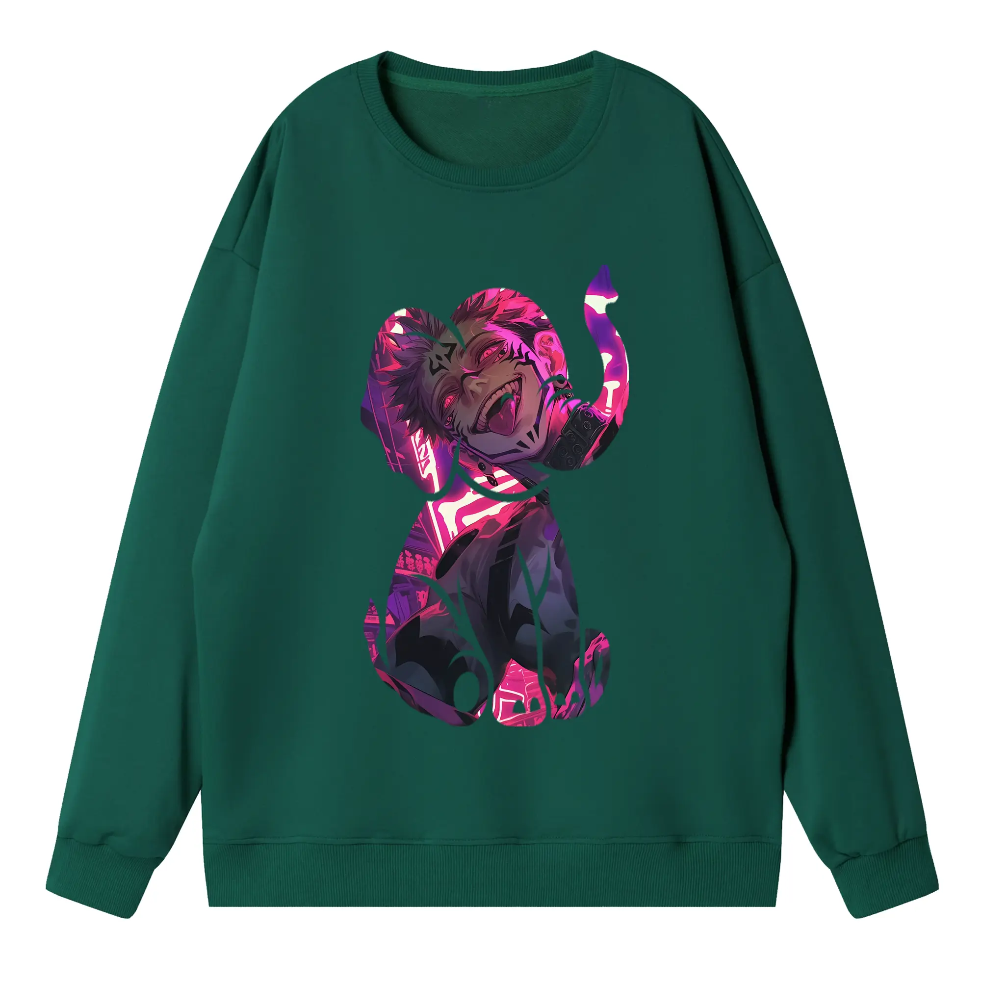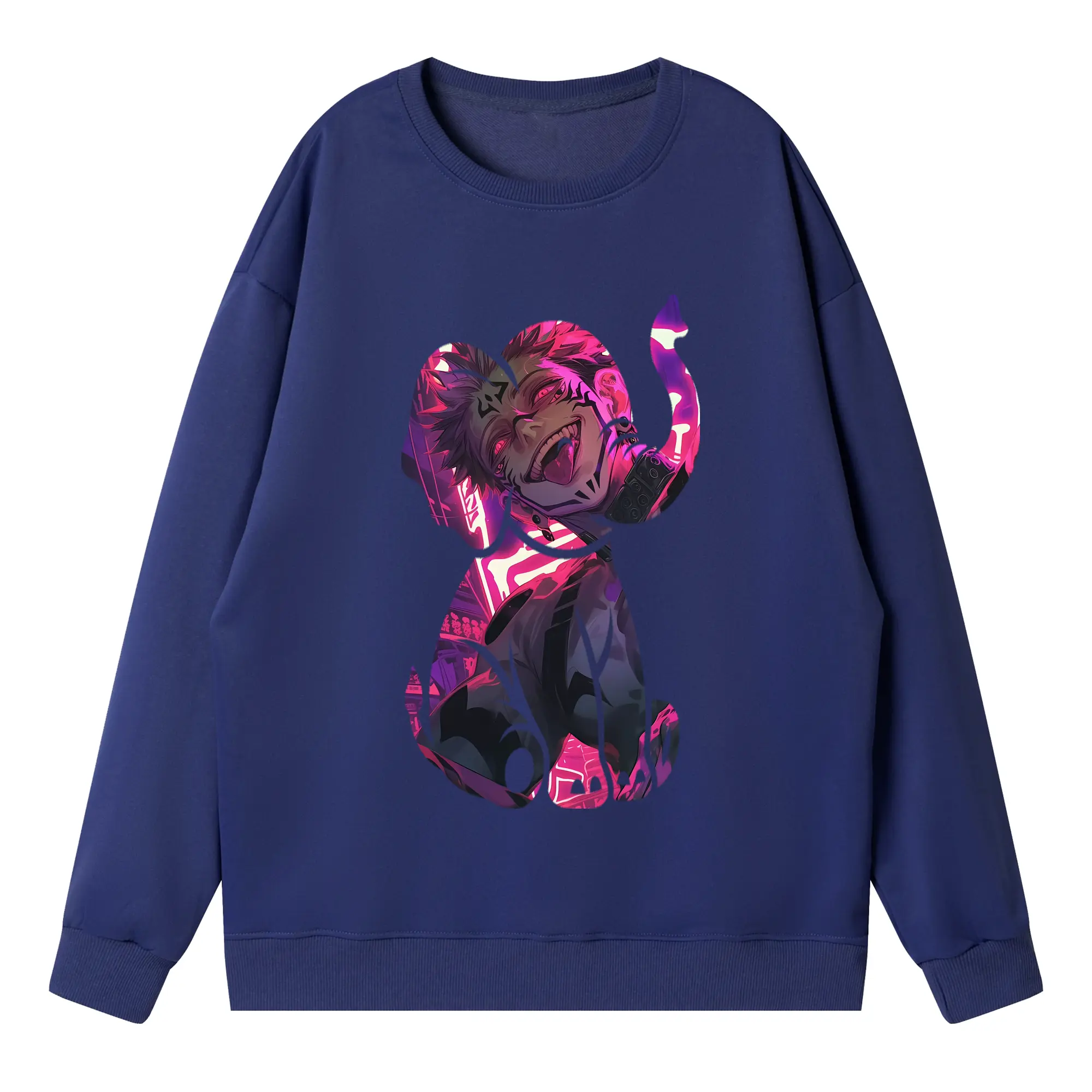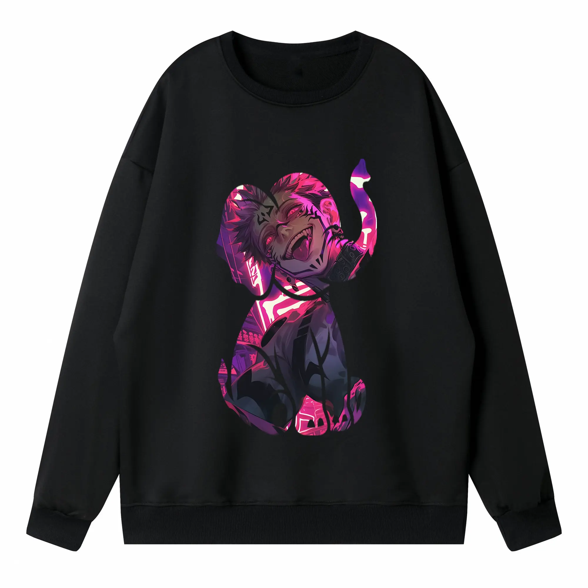 呪術廻戦 グッズ,両面宿儺 - 高品質 クルーネック スウェット ・ コットン59% ポリエステル41% ・ ユニセックス 長袖 トレーナー ・ カジュアル デイリー スポーツ 散歩用