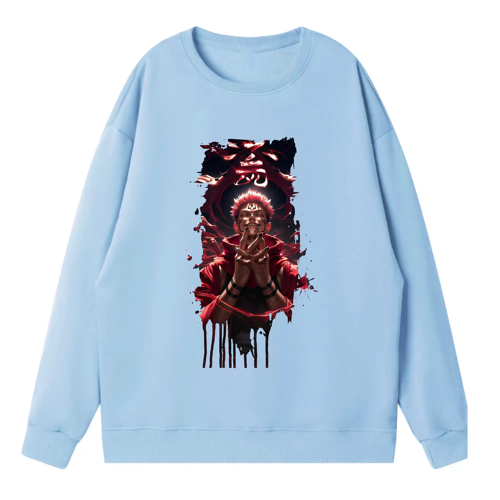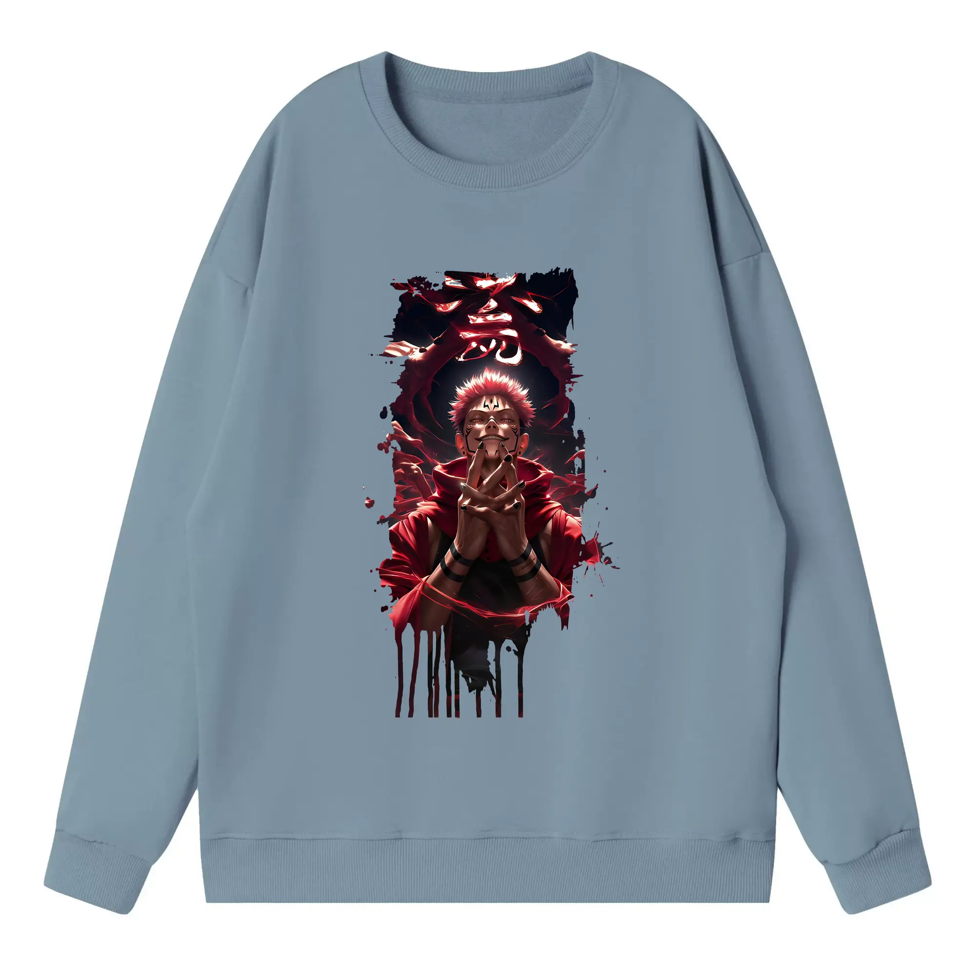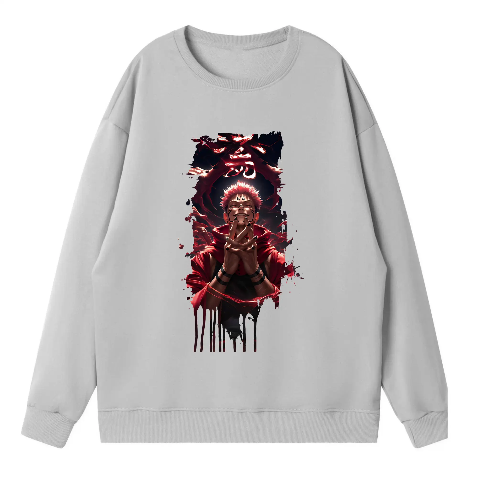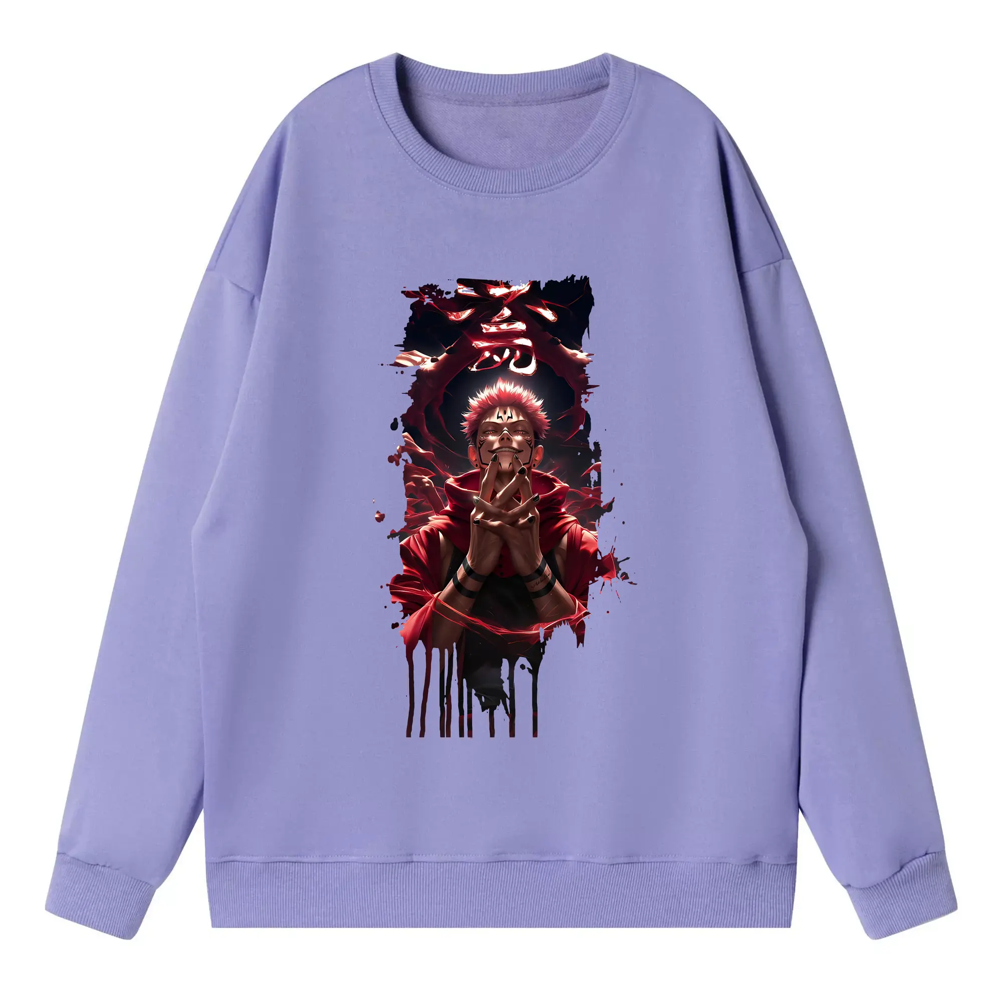 呪術廻戦 グッズ,両面宿儺 - 高品質 クルーネック スウェット ・ コットン59% ポリエステル41% ・ ユニセックス 長袖 トレーナー ・ カジュアル デイリー スポーツ 散歩用