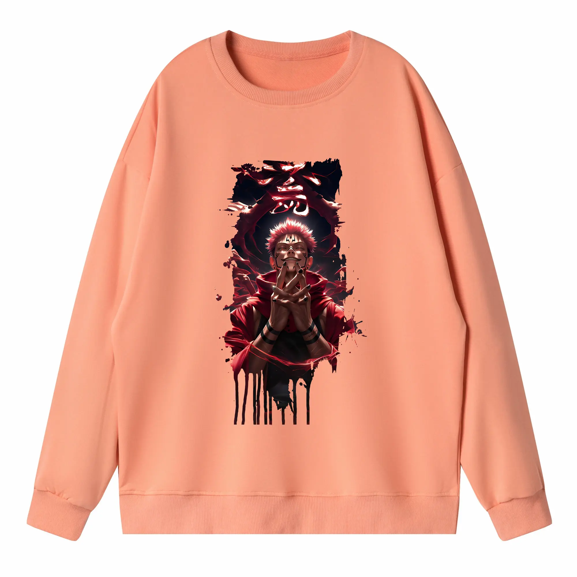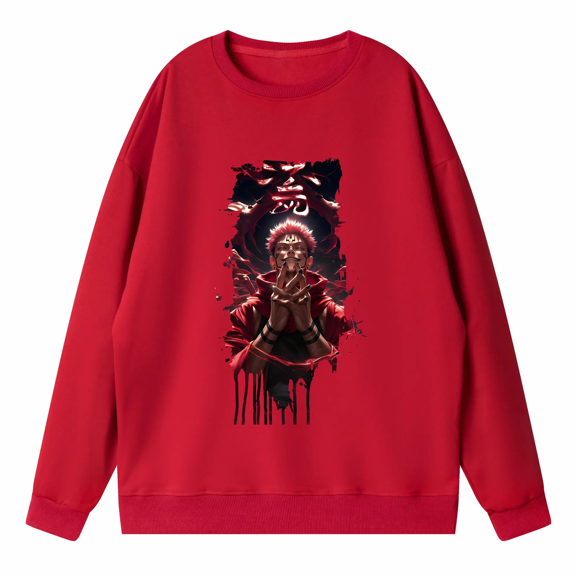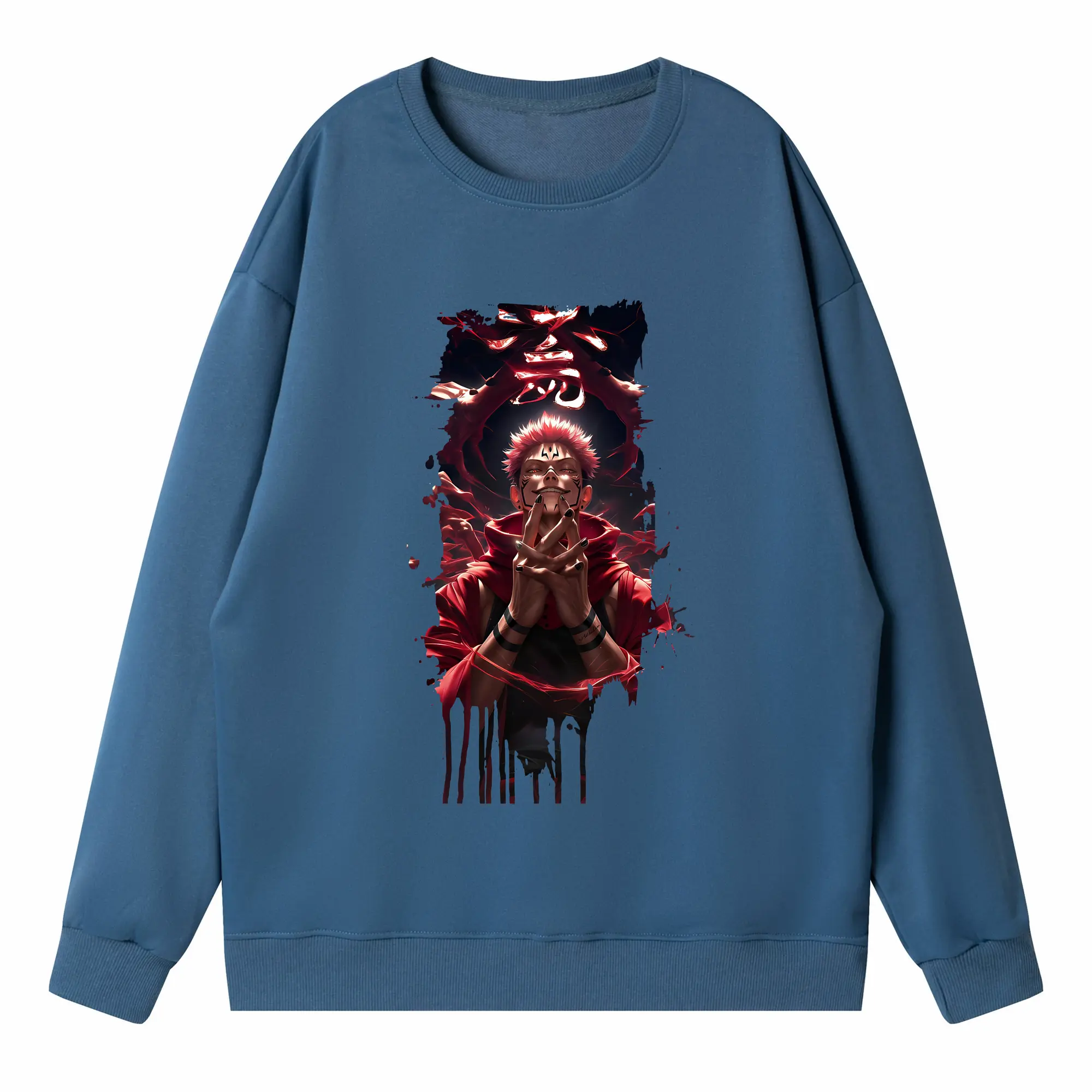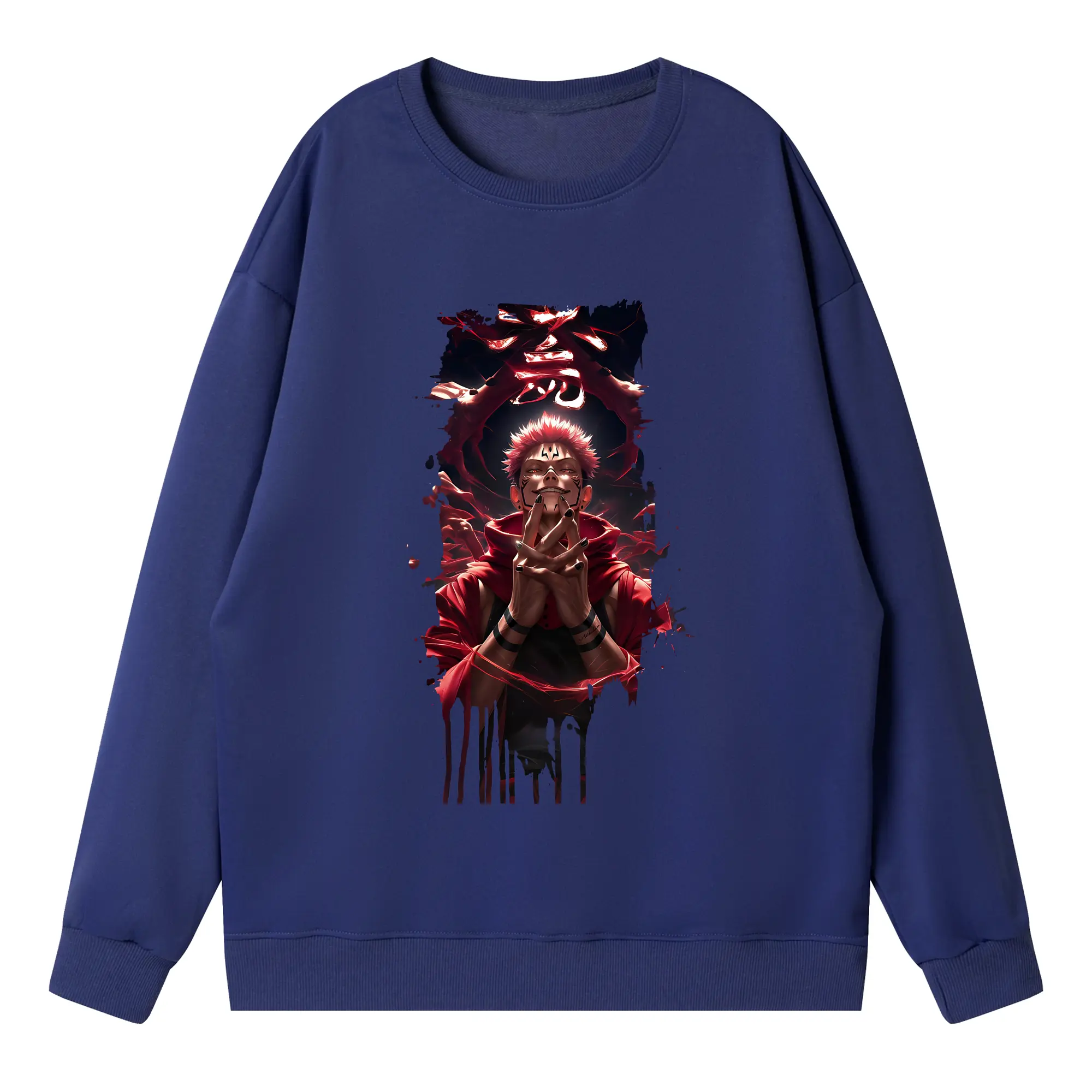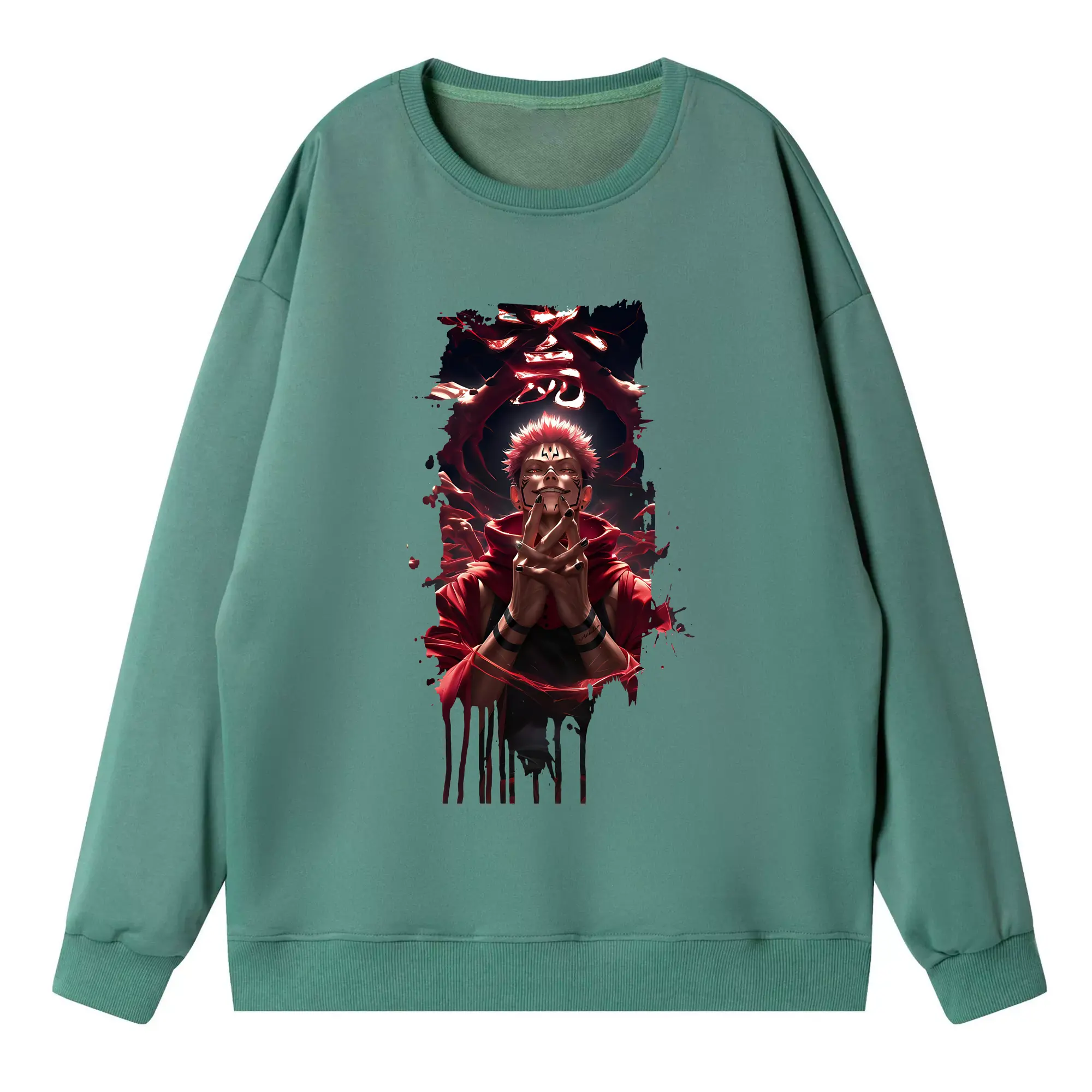 呪術廻戦 グッズ,両面宿儺 - 高品質 クルーネック スウェット ・ コットン59% ポリエステル41% ・ ユニセックス 長袖 トレーナー ・ カジュアル デイリー スポーツ 散歩用