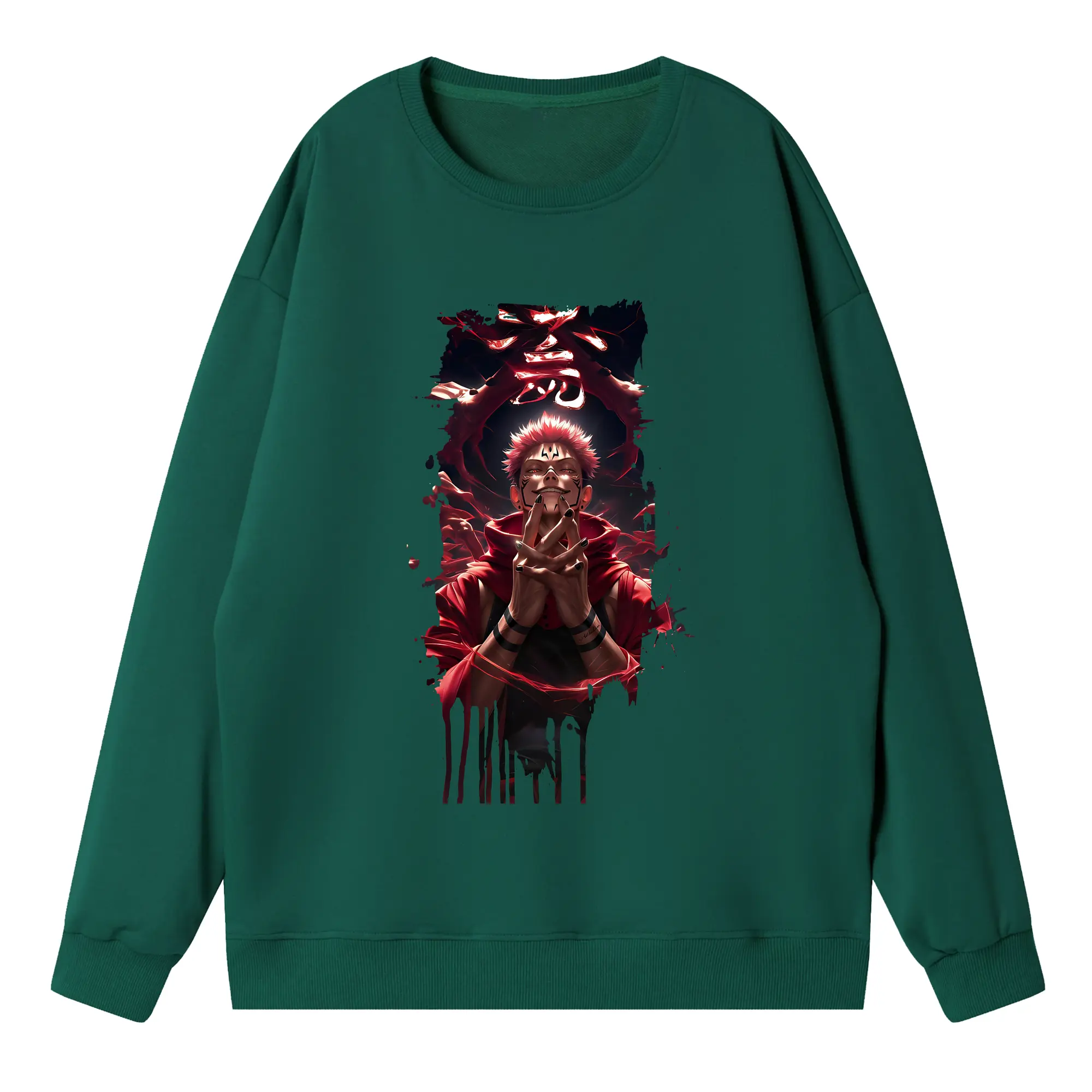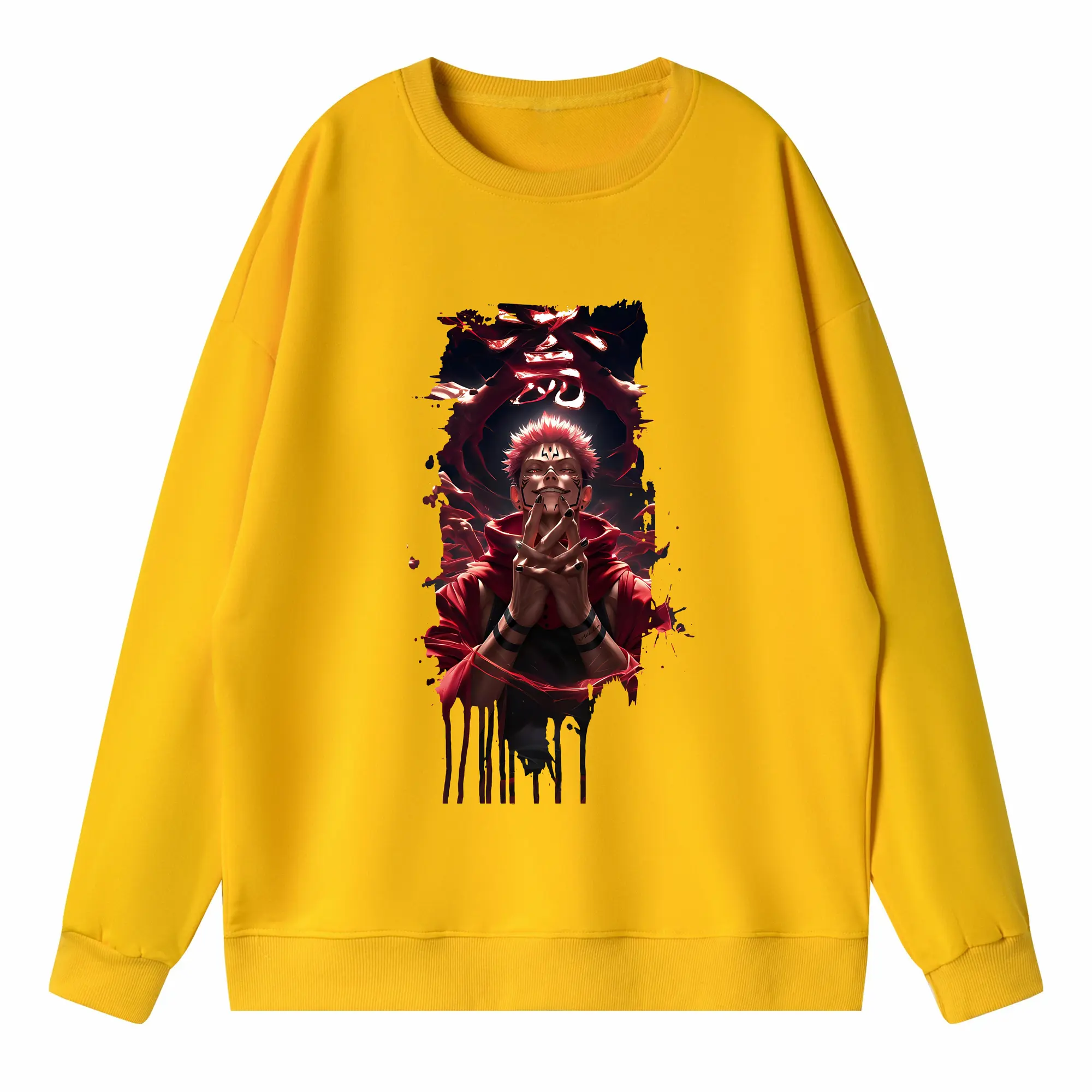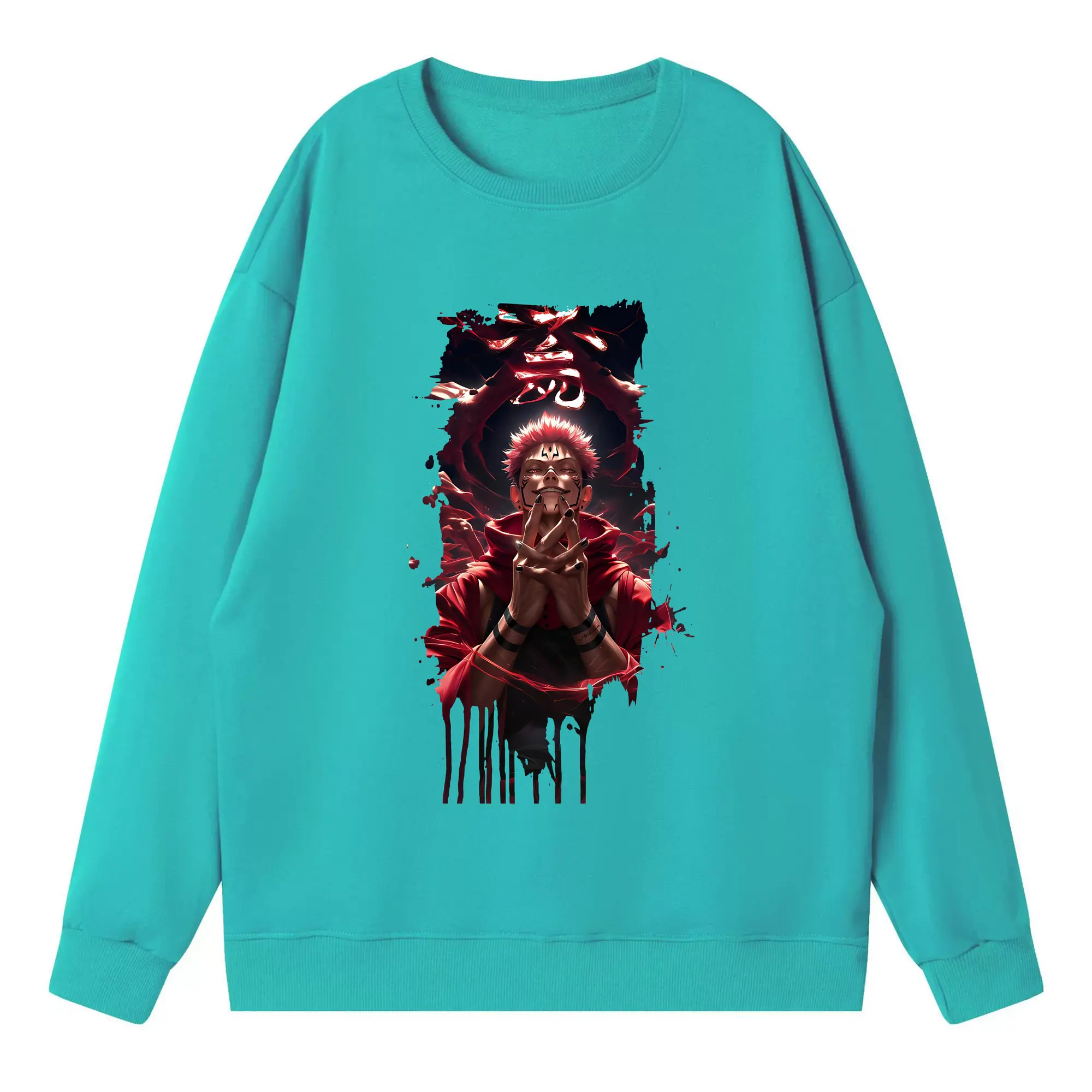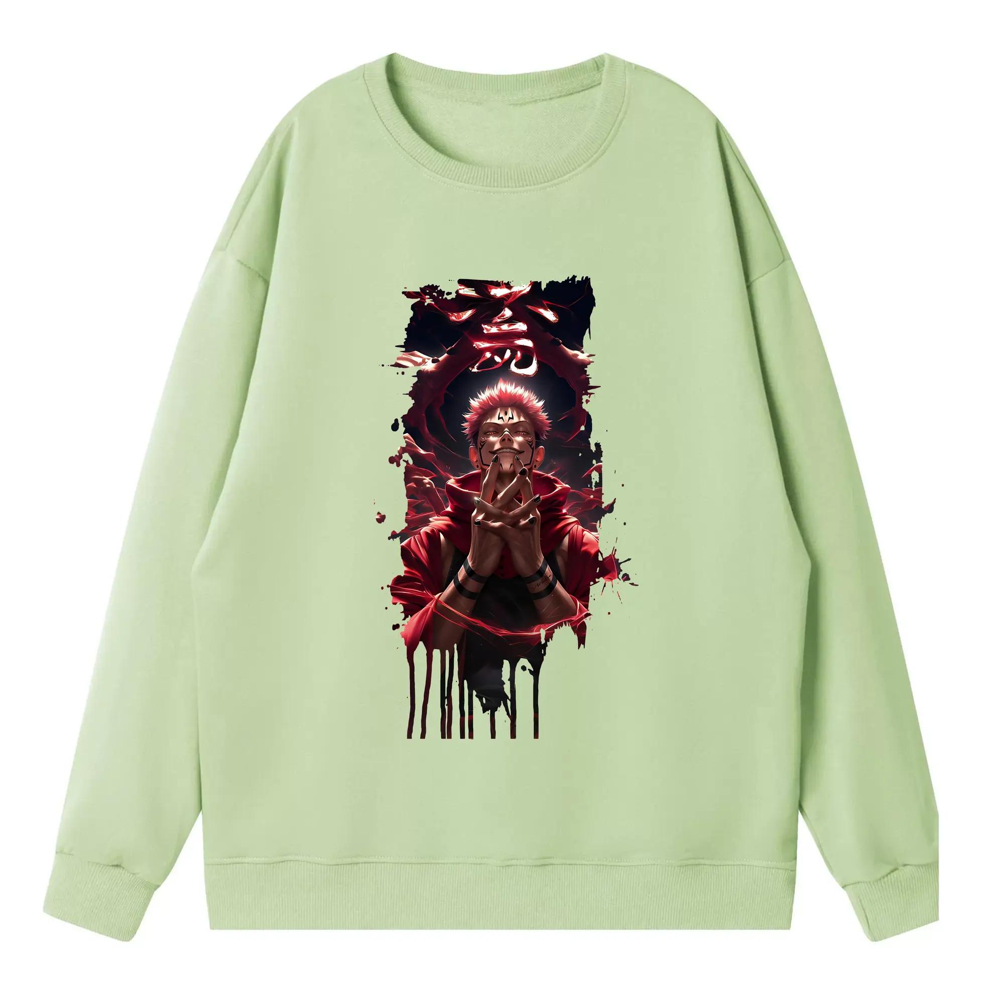 呪術廻戦 グッズ,両面宿儺 - 高品質 クルーネック スウェット ・ コットン59% ポリエステル41% ・ ユニセックス 長袖 トレーナー ・ カジュアル デイリー スポーツ 散歩用